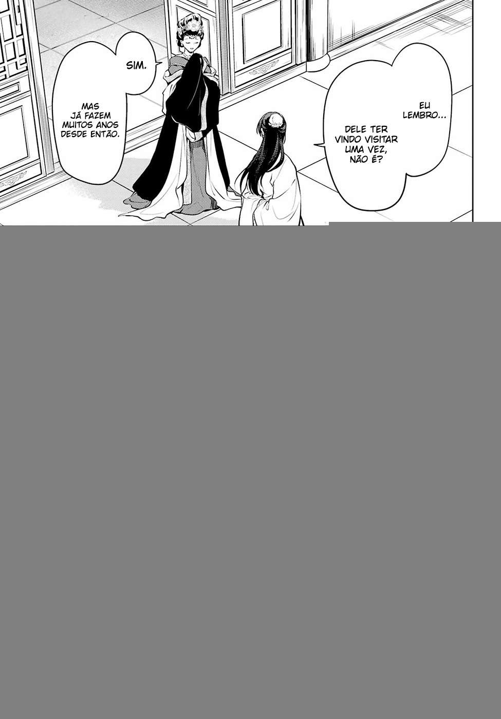 Capítulo 1 - A Maldição do HarémCapítulo 2 - Cientista LoucaCapítulo 3 - A Ninfa da Corte ImperialCapítulo 4 - O Fantasma do LuarCapítulo 5 - Sendo a EnfermeiraCapítulo 6 - Festa do Jardim (Parte 1)Capítulo 7 - Festa do Jardim (Parte 2)Capítulo 8 - Festa do Jardim (Parte 3)Capítulo 9 - A perspicácia de MaomaoCapítulo 10 - O significado da presilhaCapítulo 11 - De volta ao larCapítulo 12 - Canudo de PalhaCapítulo 13 - DesentendimentoCapítulo 14 - SaquêCapítulo 15 - Um pedido para MaomaoCapítulo 16 - Mel parte 1Capítulo 17 - Mel (parte 2)Capítulo 18 - A companheira AaduoCapítulo 19 - EncruzilhadaCapítulo 20 - O Eunuco e a CortesãCapítulo 21 - Cercada por irmãs...Capítulo 22 - Os Deveres do Pátio ExteriorCapítulo 23 - Lições do Pátio InteriorCapítulo 24 - Um CachimboCapítulo 25 - NamasuCapítulo 26 - O PrincipalCapítulo 27 - CosméticosCapítulo 28.1 - Um Passeio pela Cidade - ICapítulo 28.2 - Um Passeio pela Cidade - IICapítulo 29.1 - Sífilis - ICapítulo 29.2 - Sífilis - IICapítulo 30 - Sui ReiCapítulo 31 - Coincidência ou Inevitável?Capítulo 32 - O Mestre de Rituais MédiosCapítulo 33 - A Trombeta do DiaboCapítulo 34 - Gao ShunCapítulo 35.1 - De Volta ao Palácio Interior - ICapítulo 35.2 - De Volta ao Palácio Interior - IICapítulo 36.1 - Rosas e Esmaltes - ICapítulo 36.2 - Rosas e Esmaltes - IICapítulo 36.3 - Rosas e Esmaltes - IIICapítulo 37 - Bálsamo e Oxalis - ICapítulo 38 - Bálsamo e Oxalis - IICapítulo 39 - Bálsamo e Oxalis - IIICapítulo 40 - DespacheCapítulo 41 - O LivroCapítulo 42.1 - Gato (parte 1)Capítulo 42.2 - Gato (parte 2)Capítulo 43.1 - Caravana (parte 1)Capítulo 43.2 - Caravana (parte 2)Capítulo 44.1 - Cordyceps (parte 1)Capítulo 44.2 - Cordyceps humano (parte 2)Capítulo 45.1 - Cordyceps (epílogo)Capítulo 45.2 - Cordyceps (epílogo, parte 2)Capítulo 46 - EspelhoCapítulo 47 - Fada da lua (parte 1)Capítulo 48.1 - Fada da lua (parte 2)Capítulo 48.2 - Fada da lua (parte 3)Capítulo 49 - A clínicaCapítulo 50 - Na terceira vez dá certo (parte 1)Capítulo 51 - Na terceira vez dá certo (parte 2)Capítulo 52.1 - Na terceira vez dá certo (parte 3)Capítulo 52.2 - Na terceira vez dá certo (parte 4)Capítulo 53 - O Templo da Escolha (Parte 1)Capítulo 54 - O templo da escolha (parte 2)Capítulo 55.1 - Imperatriz Viúva (Parte 1)Capítulo 55.2 - Imperatriz Viúva (Parte 2)Capítulo 56Capítulo 57Capítulo 58Capítulo 59.1 - História de Terror (Parte 1)Capítulo 60.1 - Retiro de Verão (Parte 1)Capítulo 60.2 - Retiro de Verão (Parte 2)Capítulo 61 - A Caçada (Parte 1)Capítulo 62 - A Caçada (Parte 2)Capítulo 63.1 - A Caçada (Parte 3)Capítulo 63.2 - A Caçada (Parte 4)Capítulo 64 - O homem mascaradoCapítulo 65 - O BanhoCapítulo 66 - SekiuCapítulo 67 - O Fantasma DançarinoCapítulo 68 - O Famoso Eunuco e SorveteCapítulo 68 - O Eunuco dos rumores e o SorveteCapítulo 69 - Parto PélvicoCapítulo 69 - Feto em Posição PodálicaCapítulo 70 - Malícia Repulsiva Parte 1Capítulo 71 - Malícia Repulsiva Parte 2Capítulo 71 - Malícia Oculta (Parte 2)Capítulo 72 - A Raposa e o Texugo se enfrentam Capítulo 73 - PegadasCapítulo 73 - Rastreando os PassosCapítulo 74.1 - A vila da Raposa (1)Capítulo 74.1 - A Terra da Raposa (Parte I)Capítulo 74.2 - A vila da Raposa (2)Capítulo 74.2 - A Terra da Raposa (parte 2)Capítulo 75 - Physalis (Parte 1)Capítulo 75.1 - Hozuki ①Capítulo 75.2 - Physalis (Parte 2)Capítulo 76.1 - Festival (Parte 1)Capítulo 76.1 - Festival ①Capítulo 76.2 - Festival (parte 2)Capítulo 76.2 - Festival ②Capítulo 77 - Local da TransaçãoCapítulo 77.1 - Área de trocaCapítulo 77.2 - Local de transação ②Capítulo 77.2 - Local da Transação (Parte 2)Capítulo 78 - A Fortaleza (Parte 1)Capítulo 78.1 - Fortaleza ①Capítulo 78.2 - Fortaleza (2)Capítulo 78.2 - A Fortaleza (Parte 2)Capítulo 79.1 - O Poço ①Capítulo 79.1 - Taibon (parte 1)Capítulo 79.2 - O poço (2)Capítulo 79.2 - Taibon (parte 2)Capítulo 80 - Feifa