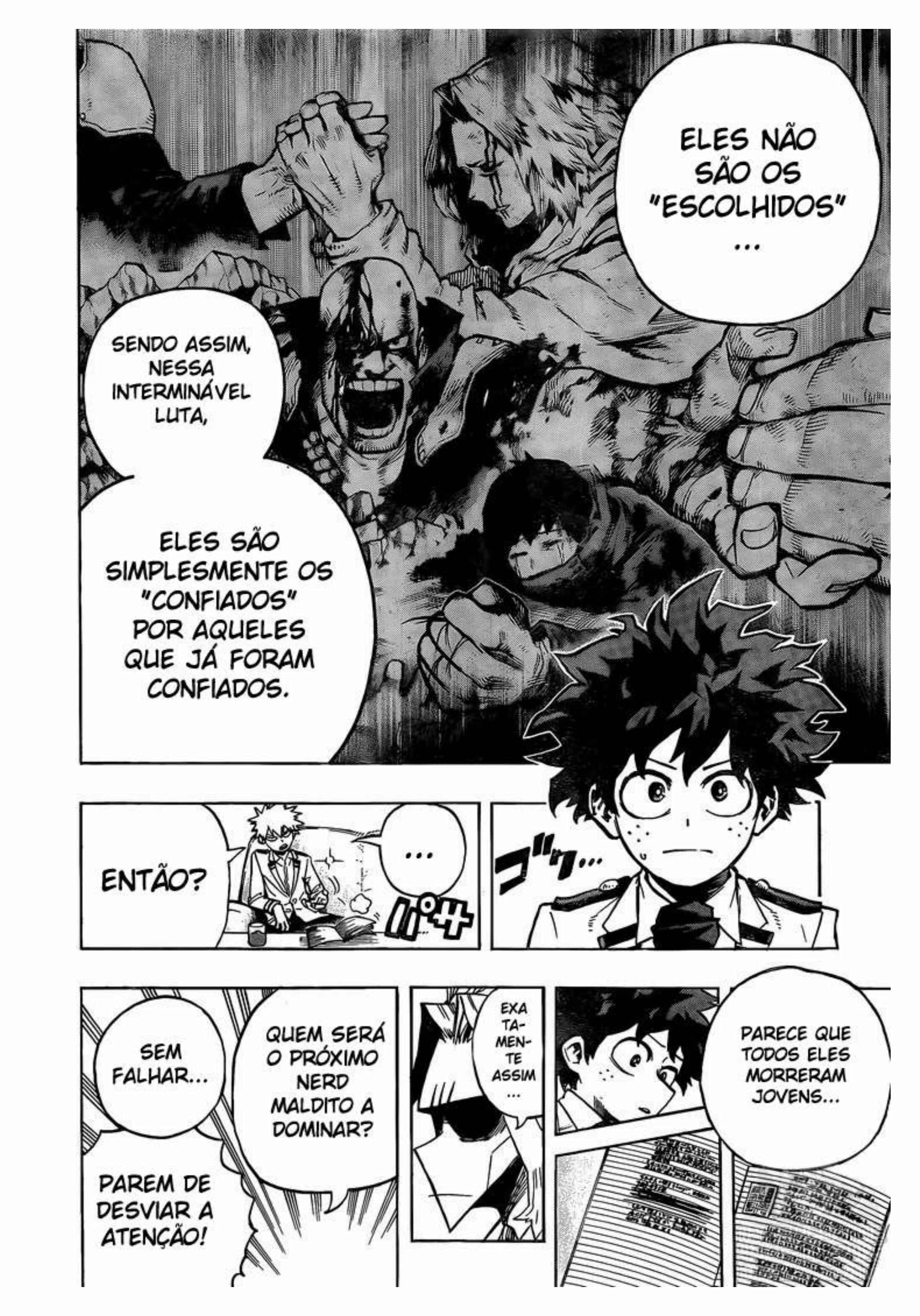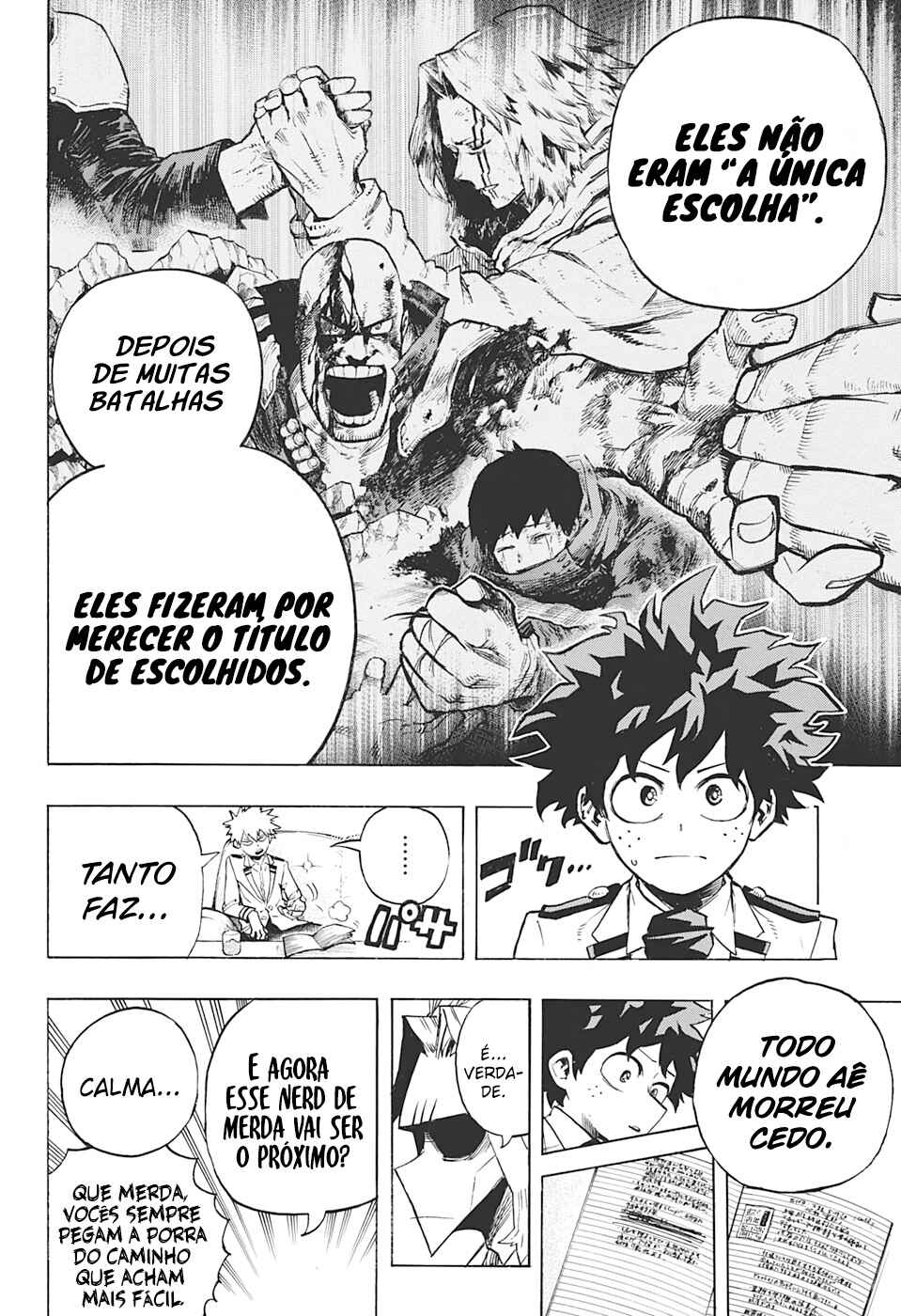 Capítulo 1 - Midoriya Izuku: A OrigemCapítulo 1 - Midoriya Izuku: OrigemCapítulo 2 - Músculos Rugidores!Capítulo 3 - Exame de EntradaCapítulo 3 - O Exame de AdmissãoCapítulo 4 - O Ponto de PartidaCapítulo 5 - Entrada Na Academia!Capítulo 6 - O Que eu Posso Fazer por EnquantoCapítulo 7 - Nós Devemos Vestir isso?Capítulo 7.5Capítulo 8 - A Ferocidade de um Maldito NerdCapítulo 9 - Deku Vs Kacchan 2Capítulo 10 - Estalos de BakugouCapítulo 10.5Capítulo 11 - O Ponto de Partida de BakugouCapítulo 12 - Tudo Certo, Dê o seu Melhor, IIda!Capítulo 13 - Treinamento de Resga--Capítulo 14 - Face a Face Contra o DesconhecidoCapítulo 15 - VersusCapítulo 16 - Estes São Seus InimigosCapítulo 17 - Game OverCapítulo 17.5Capítulo 18 - O Contra Ataque dos Heróis!Capítulo 19 - All MightCapítulo 20 - O Mundo dos ProfissionaisCapítulo 21 - Sobre os Corações de Cada UmCapítulo 22 - É Disso Que Estamos Falando, Uraraka!Capítulo 23 - Festival de Esportes RugindoCapítulo 24 - Corra e Derrube-osCapítulo 25 - Uau, as Peculiaridades de Todo Mundo São Demais!Capítulo 26 - A Perseguição ComeçaCapítulo 26.5Capítulo 27 - Negociações DecisivasCapítulo 28 - Tramas, Truques e JogadasCapítulo 29 - O Que eles Não SabemCapítulo 30 - A Batalha de Cavalo Humano TerminaCapítulo 31 - O Garoto Que Nasceu Com TudoCapítulo 32 - Sorria, Ó Príncipe do Mundo Sem Sentido!Capítulo 33 - As Circunstâncias de ShinsouCapítulo 34 - Vencedores e PerdedoresCapítulo 34.5Capítulo 35 - Estremeçam, DesafiantesCapítulo 36 - Bakugou Vs UrarakaCapítulo 37 - Midoriya e EndeavorCapítulo 38 - Todoroki Vs MidoriyaCapítulo 39 - Todoroki Shouto: A OrigemCapítulo 40 - EmancipaçãoCapítulo 41 - Lute, IIda, Lute!Capítulo 42 - Combate Final em MãosCapítulo 43 - Todoroki Vs BakugouCapítulo 44 - Dias de FolgaCapítulo 45 - Um Encontro Para Idealizar Os Novos NomesCapítulo 46 - Bizarro!! Gran Torino Aparece !!!!Capítulo 47 - Contorcer-seCapítulo 48 - Pegando o Jeito da CoisaCapítulo 49 - Midoriya e ShigarakiCapítulo 50 - Matar o LixoCapítulo 51 - Não, IIda, Pare!Capítulo 52 - Stain, O Assassino de Heróis Vs Alunos da YuueiCapítulo 53 - De Todoroki Para IIdaCapítulo 54 - Re-IngeniumCapítulo 55 - A Conclusão !?Capítulo 56 - ConclusãoCapítulo 57 - Assassino de Heróis Stain - As ConsequênciasCapítulo 58 - Fim do EstágioCapítulo 59 - Conheça a Sua História!!Capítulo 60 - Preparem-se Para as Provas Finais!Capítulo 61 - A Pior Dupla MaravilhaCapítulo 62 - Bakugou Katsuki: A OrigemCapítulo 63 - Yaoyorozu: AscensãoCapítulo 64 - Desafios AtribuídosCapítulo 65 - MurosCapítulo 66 - O Registro da Classe de MidoriyaCapítulo 67 - MetamorfoseCapítulo 68 - EncontroCapítulo 68.5Capítulo 69 - Uma Entrevista Com MidoriyaCapítulo 70 - Wild Wild PussyCatsCapítulo 71 - KoutaCapítulo 72 - Segundo DiaCapítulo 73 - Boa NoiteCapítulo 74 - Sinais de FumaçaCapítulo 75 - Aposte a Sua Vida, Herói!Capítulo 76 - Meu HeróiCapítulo 77 - Está Tudo BemCapítulo 78 - Turbilhão CaóticoCapítulo 79 - Acabe Com ele, Punho de Aço!!!Capítulo 80 - Estabelecendo a Brigada de Escolta do BakugouCapítulo 81 - Agitação VociferanteCapítulo 82 - Que Reviravolta!Capítulo 83 - DerrotaCapítulo 84 - De IIda Para MidoriyaCapítulo 85 - Nada Além de TolosCapítulo 86 - Antes da TempestadeCapítulo 87 - ConflitoCapítulo 88 - All For OneCapítulo 89 - Todos Por Um Certo "Um"Capítulo 90 - AlcanceCapítulo 91 - O Símbolo da PazCapítulo 92 - One For AllCapítulo 93 - A Brasa do One For AllCapítulo 94 - De Professor Para DiscípuloCapítulo 95 - Fim do Início; Início do FimCapítulo 96 - Visitas DomiciliaresCapítulo 97 - Uma Bronca da MãeCapítulo 98 - Mudando-se aos DormitóriosCapítulo 99 - Adeus, Números de Dois Dígitos E Olá, Números de Três Dígitos!Capítulo 100 - Movimentos EspeciaisCapítulo 101 - A Garota Chamada Hatsume MeiCapítulo 102 - Pensamentos FlutuantesCapítulo 103 - O ExameCapítulo 104 - Clímax! Cada Um de Nossas HabilidadesCapítulo 105 - A Escola Shiketsu Ataca!Capítulo 106 - Classe 1-ACapítulo 107 - O Que Kaminari Denki PensaCapítulo 108 - Rush!!Capítulo 109 - Prática de ResgateCapítulo 110 - O Exercício de Resgate ContinuaCapítulo 111 - O Início da FumaçaCapítulo 112 - O Que Vocês Estão Fazendo?!Capítulo 113 - Depois do ExameCapítulo 114 - Depois dos ResultadosCapítulo 115 - LiberadoCapítulo 116 - Recepção de TartarusCapítulo 117 - É Sobre a Sua IndividualidadeCapítulo 118 - Uma Luta Sem SentidoCapítulo 119 - Kacchan 2Capítulo 120 - Três PessoasCapítulo 121 - Cerimônia de Abertura do Segundo SemestreCapítulo 122 - Temporada de EncontrosCapítulo 123 - InvencívelCapítulo 124 - Acelerando! O Episódio do Estágio!Capítulo 125 - OverhaulCapítulo 126 - Abra-se, Mundo!Capítulo 127 - Sir Nighteye e Midoriya Izuku e Toogata Mirio e All MightCapítulo 128 - O Garoto Se Encontra Com...Capítulo 129 - EriCapítulo 130 - Exija Toda a VerdadeCapítulo 131 - Um Destino HostilCapítulo 132 - PlanoCapítulo 133 - Persiga, KirishimaCapítulo 134 - Mostre do que Você é Feito, Red RiotCapítulo 135 - Uma Conversa DesagradávelCapítulo 136 - Ao Alcance!!Capítulo 137 - Façam a Interdição!!Capítulo 138 - Go!!Capítulo 139 - Arrepiante!! O Labirinto SubterrâneoCapítulo 140 - Suneater, Dos Big ThreeCapítulo 141 - Gangue Hassai: AtrásCapítulo 142 - Escudo e Escudo; Lança e EscudoCapítulo 143 - Vamos Brigar, Rappa!!Capítulo 144 - Red Riot 1Capítulo 145 - Red Riot 2Capítulo 146 - Transferência TemporáriaCapítulo 146 - Transferência TemporáriaCapítulo 147 - Twoga!!Capítulo 147 - TogawiceCapítulo 148 - A Tristeza do Jovem TogawiceCapítulo 149 - Acalme-se, IrinakaCapítulo 149 - Acalme-se, IrinakaCapítulo 150 - Mirio TogataCapítulo 150 - Mirio ToogataCapítulo 151 - Toogata Mirio!!Capítulo 152 - LemillionCapítulo 153 - TransformaçãoCapítulo 154 - Esperança que Não Pode Ser VistaCapítulo 155 - Salvadores, Resgatados e o