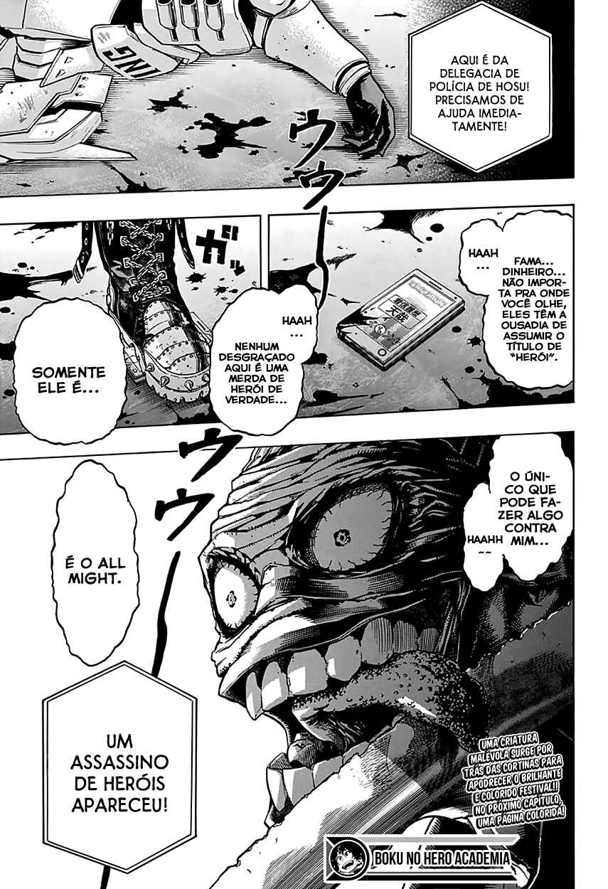 Capítulo 1 - Midoriya Izuku: A OrigemCapítulo 1 - Midoriya Izuku: OrigemCapítulo 2 - Músculos Rugidores!Capítulo 3 - Exame de EntradaCapítulo 3 - O Exame de AdmissãoCapítulo 4 - O Ponto de PartidaCapítulo 5 - Entrada Na Academia!Capítulo 6 - O Que eu Posso Fazer por EnquantoCapítulo 7 - Nós Devemos Vestir isso?Capítulo 7.5Capítulo 8 - A Ferocidade de um Maldito NerdCapítulo 9 - Deku Vs Kacchan 2Capítulo 10 - Estalos de BakugouCapítulo 10.5Capítulo 11 - O Ponto de Partida de BakugouCapítulo 12 - Tudo Certo, Dê o seu Melhor, IIda!Capítulo 13 - Treinamento de Resga--Capítulo 14 - Face a Face Contra o DesconhecidoCapítulo 15 - VersusCapítulo 16 - Estes São Seus InimigosCapítulo 17 - Game OverCapítulo 17.5Capítulo 18 - O Contra Ataque dos Heróis!Capítulo 19 - All MightCapítulo 20 - O Mundo dos ProfissionaisCapítulo 21 - Sobre os Corações de Cada UmCapítulo 22 - É Disso Que Estamos Falando, Uraraka!Capítulo 23 - Festival de Esportes RugindoCapítulo 24 - Corra e Derrube-osCapítulo 25 - Uau, as Peculiaridades de Todo Mundo São Demais!Capítulo 26 - A Perseguição ComeçaCapítulo 26.5Capítulo 27 - Negociações DecisivasCapítulo 28 - Tramas, Truques e JogadasCapítulo 29 - O Que eles Não SabemCapítulo 30 - A Batalha de Cavalo Humano TerminaCapítulo 31 - O Garoto Que Nasceu Com TudoCapítulo 32 - Sorria, Ó Príncipe do Mundo Sem Sentido!Capítulo 33 - As Circunstâncias de ShinsouCapítulo 34 - Vencedores e PerdedoresCapítulo 34.5Capítulo 35 - Estremeçam, DesafiantesCapítulo 36 - Bakugou Vs UrarakaCapítulo 37 - Midoriya e EndeavorCapítulo 38 - Todoroki Vs MidoriyaCapítulo 39 - Todoroki Shouto: A OrigemCapítulo 40 - EmancipaçãoCapítulo 41 - Lute, IIda, Lute!Capítulo 42 - Combate Final em MãosCapítulo 43 - Todoroki Vs BakugouCapítulo 44 - Dias de FolgaCapítulo 45 - Um Encontro Para Idealizar Os Novos NomesCapítulo 46 - Bizarro!! Gran Torino Aparece !!!!Capítulo 47 - Contorcer-seCapítulo 48 - Pegando o Jeito da CoisaCapítulo 49 - Midoriya e ShigarakiCapítulo 50 - Matar o LixoCapítulo 51 - Não, IIda, Pare!Capítulo 52 - Stain, O Assassino de Heróis Vs Alunos da YuueiCapítulo 53 - De Todoroki Para IIdaCapítulo 54 - Re-IngeniumCapítulo 55 - A Conclusão !?Capítulo 56 - ConclusãoCapítulo 57 - Assassino de Heróis Stain - As ConsequênciasCapítulo 58 - Fim do EstágioCapítulo 59 - Conheça a Sua História!!Capítulo 60 - Preparem-se Para as Provas Finais!Capítulo 61 - A Pior Dupla MaravilhaCapítulo 62 - Bakugou Katsuki: A OrigemCapítulo 63 - Yaoyorozu: AscensãoCapítulo 64 - Desafios AtribuídosCapítulo 65 - MurosCapítulo 66 - O Registro da Classe de MidoriyaCapítulo 67 - MetamorfoseCapítulo 68 - EncontroCapítulo 68.5Capítulo 69 - Uma Entrevista Com MidoriyaCapítulo 70 - Wild Wild PussyCatsCapítulo 71 - KoutaCapítulo 72 - Segundo DiaCapítulo 73 - Boa NoiteCapítulo 74 - Sinais de FumaçaCapítulo 75 - Aposte a Sua Vida, Herói!Capítulo 76 - Meu HeróiCapítulo 77 - Está Tudo BemCapítulo 78 - Turbilhão CaóticoCapítulo 79 - Acabe Com ele, Punho de Aço!!!Capítulo 80 - Estabelecendo a Brigada de Escolta do BakugouCapítulo 81 - Agitação VociferanteCapítulo 82 - Que Reviravolta!Capítulo 83 - DerrotaCapítulo 84 - De IIda Para MidoriyaCapítulo 85 - Nada Além de TolosCapítulo 86 - Antes da TempestadeCapítulo 87 - ConflitoCapítulo 88 - All For OneCapítulo 89 - Todos Por Um Certo "Um"Capítulo 90 - AlcanceCapítulo 91 - O Símbolo da PazCapítulo 92 - One For AllCapítulo 93 - A Brasa do One For AllCapítulo 94 - De Professor Para DiscípuloCapítulo 95 - Fim do Início; Início do FimCapítulo 96 - Visitas DomiciliaresCapítulo 97 - Uma Bronca da MãeCapítulo 98 - Mudando-se aos DormitóriosCapítulo 99 - Adeus, Números de Dois Dígitos E Olá, Números de Três Dígitos!Capítulo 100 - Movimentos EspeciaisCapítulo 101 - A Garota Chamada Hatsume MeiCapítulo 102 - Pensamentos FlutuantesCapítulo 103 - O ExameCapítulo 104 - Clímax! Cada Um de Nossas HabilidadesCapítulo 105 - A Escola Shiketsu Ataca!Capítulo 106 - Classe 1-ACapítulo 107 - O Que Kaminari Denki PensaCapítulo 108 - Rush!!Capítulo 109 - Prática de ResgateCapítulo 110 - O Exercício de Resgate ContinuaCapítulo 111 - O Início da FumaçaCapítulo 112 - O Que Vocês Estão Fazendo?!Capítulo 113 - Depois do ExameCapítulo 114 - Depois dos ResultadosCapítulo 115 - LiberadoCapítulo 116 - Recepção de TartarusCapítulo 117 - É Sobre a Sua IndividualidadeCapítulo 118 - Uma Luta Sem SentidoCapítulo 119 - Kacchan 2Capítulo 120 - Três PessoasCapítulo 121 - Cerimônia de Abertura do Segundo SemestreCapítulo 122 - Temporada de EncontrosCapítulo 123 - InvencívelCapítulo 124 - Acelerando! O Episódio do Estágio!Capítulo 125 - OverhaulCapítulo 126 - Abra-se, Mundo!Capítulo 127 - Sir Nighteye e Midoriya Izuku e Toogata Mirio e All MightCapítulo 128 - O Garoto Se Encontra Com...Capítulo 129 - EriCapítulo 130 - Exija Toda a VerdadeCapítulo 131 - Um Destino HostilCapítulo 132 - PlanoCapítulo 133 - Persiga, KirishimaCapítulo 134 - Mostre do que Você é Feito, Red RiotCapítulo 135 - Uma Conversa DesagradávelCapítulo 136 - Ao Alcance!!Capítulo 137 - Façam a Interdição!!Capítulo 138 - Go!!Capítulo 139 - Arrepiante!! O Labirinto SubterrâneoCapítulo 140 - Suneater, Dos Big ThreeCapítulo 141 - Gangue Hassai: AtrásCapítulo 142 - Escudo e Escudo; Lança e EscudoCapítulo 143 - Vamos Brigar, Rappa!!Capítulo 144 - Red Riot 1Capítulo 145 - Red Riot 2Capítulo 146 - Transferência TemporáriaCapítulo 146 - Transferência TemporáriaCapítulo 147 - Twoga!!Capítulo 147 - TogawiceCapítulo 148 - A Tristeza do Jovem TogawiceCapítulo 149 - Acalme-se, IrinakaCapítulo 149 - Acalme-se, IrinakaCapítulo 150 - Mirio TogataCapítulo 150 - Mirio ToogataCapítulo 151 - Toogata Mirio!!Capítulo 152 - LemillionCapítulo 153 - TransformaçãoCapítulo 154 - Esperança que Não Pode Ser VistaCapítulo 155 - Salvadores, Resgatados e o