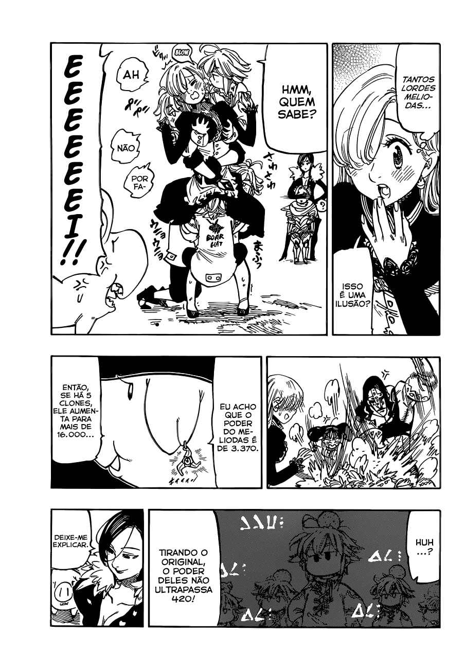 Capítulo 0Capítulo 1 - Os Sete Pecados CapitaisCapítulo 2 - A Espada do PaladinoCapítulo 3 - Algo que Eu Devo FazerCapítulo 4 - O Pecado da Floresta AdormecidaCapítulo 5 - Memória na EscuridãoCapítulo 6 - O Paladino GilthunderCapítulo 7 - O Prisioneiro da EscuridãoCapítulo 8 - O Sonho da GarotaCapítulo 9 - Não Pode Ser TocadoCapítulo 10 - A Maldade InvisívelCapítulo 11 - Mesmo se Você MorrerCapítulo 12 - Uma Festa de ConfusõesCapítulo 13 - Determinação DedicadaCapítulo 14 - ExplosãoCapítulo 15 - O Pequeno EncontroCapítulo 16 - Balada do ComeçoCapítulo 17 - Premonição de TempestadeCapítulo 18 - Reunião TocanteCapítulo 19 - Pecado da GanânciaCapítulo 20 - Dois CaminhosCapítulo 21 - Cavaleiro VingadorCapítulo 22 - Perseguidor TerrívelCapítulo 23 - Algum Dia, DefinitivamenteCapítulo 24 - Lendas EncurraladasCapítulo 25 - Quatro Contra Um, Por FavorCapítulo 26 - Partindo com o MortoCapítulo 27 - A Chuva Sem EmoçõesCapítulo 28 - Homem PerigosoCapítulo 29 - Pulso SombrioCapítulo 30 - Venham! O Festival dos CanalhasCapítulo 31 - Festival de Luta de ByzelCapítulo 32 - Grupo de Lutadores PoderososCapítulo 33 - Previsão de Grande CaosCapítulo 34 - Meliodaz Contra BaanCapítulo 35 - Meliodas RoubadoCapítulo 36 - O Momento de PiscarCapítulo 37 - Se Aproximando da Chance de EncontroCapítulo 38 - Necessidade e AcasoCapítulo 39 - Sentimento de MuitosCapítulo 40 - As Finais do Festival de Luta de ByzelCapítulo 41 - O Choque AssustadorCapítulo 42 - Reator DemônioCapítulo 43 - Aposta PerigosaCapítulo 44 - Contagem Regressiva para o DesesperoCapítulo 45 - Carnaval ViolentoCapítulo 46 - Porque Somos IrmãsCapítulo 47 - Discípulo da DestruiçãoCapítulo 48 - Feliz AniquilaçãoCapítulo 49 - Retirada ForçadaCapítulo 50 - Após o FestivalCapítulo 51 - Profundamente no CoraçãoCapítulo 52 - A Verdade do RumorCapítulo 53 - O Gigante Armado Contra Dawn RoarCapítulo 54 - O Homem que Não se MoveCapítulo 55 - Aquele Homem que Não tem EmoçõesCapítulo 56 - O Cavaleiro ProfanoCapítulo 57 - Acontecimentos de Muito Tempo AtrásCapítulo 58 - Decisão ForçadaCapítulo 59 - Um Homem Imprevisível Entra em CenaCapítulo 60 - Se Metendo em ConfusãoCapítulo 61 - Lendas Não CitadasCapítulo 62 - Vilões ImparáveisCapítulo 63 - Arthur PendragonCapítulo 64 - A Estratégia de Infiltração do Reino!!Capítulo 65 - Um Conflito InevitávelCapítulo 66 - Primeiro InfortúnioCapítulo 67 - FendaCapítulo 68 - Diferença Esmagadora de PoderCapítulo 69 - Todo Mundo Tem uma Primeira VezCapítulo 70 - Grande Paladino AtormentadoCapítulo 71 - Aquilo que Vive na EscuridãoCapítulo 72 - O Homem que Estava Muito AtrasadoCapítulo 73 - Mesmo que Eu Tenha que Destruir Minha VidaCapítulo 74 - A Promessa CumpridaCapítulo 75 - O Que Faz um ReiCapítulo 76 - As Convicções das PrincesasCapítulo 77 - Sentimentos por ElaCapítulo 78 - Em Troca da Minha VidaCapítulo 79 - Mais Uma VezCapítulo 80 - Virando a MesaCapítulo 81 - Único Ataque do MeliodasCapítulo 82 - Feitiço da CoragemCapítulo 83 - Porco CarmesimCapítulo 84 - Tudo Está Bem Quando Termina BemCapítulo 85 - O Começo da FestaCapítulo 86 - Ameaça IminenteCapítulo 87 - A Fúria e a GanânciaCapítulo 88 - Esse Mundo é Como um InfernoCapítulo 89 - Desejo SinceroCapítulo 90 - O Que eu Posso Fazer Por VocêCapítulo 91 - Existência DetestávelCapítulo 92 - A Luta Final ComeçaCapítulo 93 - Vermelho e CinzaCapítulo 94 - Caindo em DesesperoCapítulo 95 - Esperança que DesvaneceCapítulo 96 - HawkCapítulo 97 - ElizabethCapítulo 98 - PreceCapítulo 99 - ConclusãoCapítulo 100 - Os HeróisCapítulo 101 - O Poder do AmorCapítulo 102 - Premonição de um AdeusCapítulo 103 - A Nova JornadaCapítulo 104 - O Retorno do Rei das FadasCapítulo 105 - Um NinguémCapítulo 106 - O Olho Demoníaco de BalorCapítulo 107 - À Procura da VerdadeCapítulo 108 - Despertar GentilCapítulo 109 - TerremotoCapítulo 110 - ConfissãoCapítulo 111 - Como Um Homem DiziaCapítulo 112 - Existência e ProvaCapítulo 113 - RevelaçãoCapítulo 114 - Heróis HesitantesCapítulo 115 - De Volta ao PesadeloCapítulo 116 - O Tesouro Sagrado LostvayneCapítulo 117 - Os Dois Reis das FadasCapítulo 118 - Confronto!! A Floresta do Rei das FadasCapítulo 119 - Os Dez Mandamentos Começam a AgirCapítulo 120 - Violência EsmagadoraCapítulo 121 - Previsão ImpossívelCapítulo 122 - O Massacre dos DemôniosCapítulo 123 - A Redenção do Capitão dos PaladinosCapítulo 124 - O Que a Amizade nos TrouxeCapítulo 125 - Acabem com os "Dez Mandamentos"!!Capítulo 126 - Para Onde as Memórias VãoCapítulo 127 - Reunião com o DesesperoCapítulo 128 - Existência ArroganteCapítulo 129 - A Terra Sagrada dos DruidasCapítulo 130 - A Dor que Gentilmente MataCapítulo 131 - A Promessa Com a Minha AmadaCapítulo 132 - Aquilo que nos FaltaCapítulo 133 - Impaciência e AnsiedadeCapítulo 134 - À Você, Que Não é Mais Meu CapitãoCapítulo 135 - Meras Boas VindasCapítulo 136 - Disseminando o MedoCapítulo 137 - Aqui Entre Eu e VocêCapítulo 138 - Batalha Contra as TrevasCapítulo 139 - Conte-me Sobre o Seu PassadoCapítulo 140 - O Ladrão e o GarotoCapítulo 141 - Pai e FilhoCapítulo 142 - Onde o Amor EstáCapítulo 143 - O Grito da Donzela SagradaCapítulo 144 - Aquele Homem da "Ganância"Capítulo 145 - Bela AlmaCapítulo 146 - Adeus, Meu Amado LadrãoCapítulo 147 - Perseguição MortalCapítulo 148 - Galan GameCapítulo 149 - A Magia de GalanCapítulo 150 - Mestre do SolCapítulo 151 - O Palco Espera por NósCapítulo 152 - Atraídos pela Luz da VelaCapítulo 153 - A Confissão AterrorizanteCapítulo 154 - O Diabo SorriCapítulo 155 - Labirinto da Armadilha da MorteCapítulo 156 - Desafio de Exploração do LabirintoCapítulo 157 - A Dança Caótica dos DesafiantesCapítulo 158 - Os Heróis da FoliaCapítulo 159 - Palavras Não São NecessáriasCapítulo 160 - Vão!! SuperemCapítulo 161 - Aqueles da LendaCapítulo 162 -