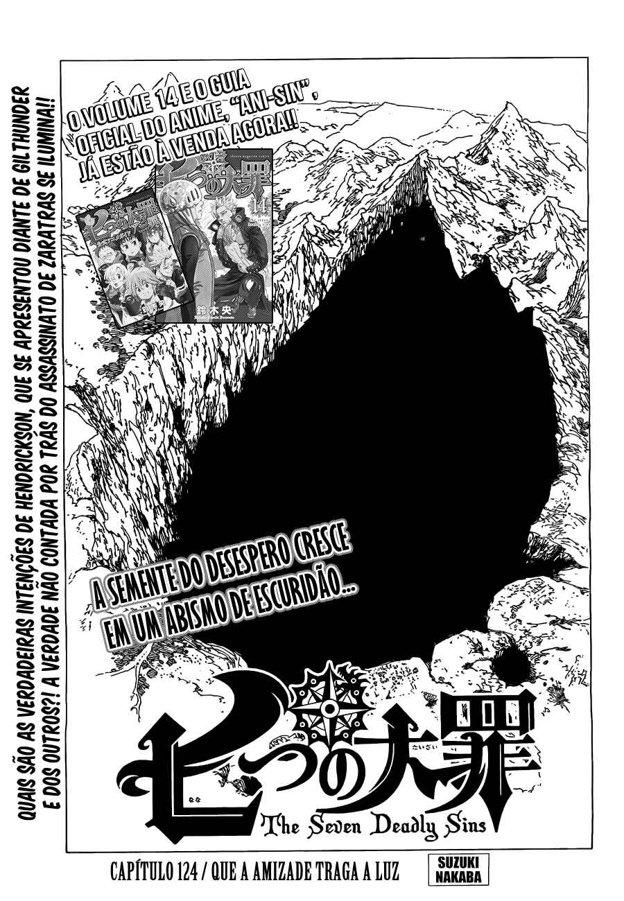 Capítulo 0Capítulo 1 - Os Sete Pecados CapitaisCapítulo 2 - A Espada do PaladinoCapítulo 3 - Algo que Eu Devo FazerCapítulo 4 - O Pecado da Floresta AdormecidaCapítulo 5 - Memória na EscuridãoCapítulo 6 - O Paladino GilthunderCapítulo 7 - O Prisioneiro da EscuridãoCapítulo 8 - O Sonho da GarotaCapítulo 9 - Não Pode Ser TocadoCapítulo 10 - A Maldade InvisívelCapítulo 11 - Mesmo se Você MorrerCapítulo 12 - Uma Festa de ConfusõesCapítulo 13 - Determinação DedicadaCapítulo 14 - ExplosãoCapítulo 15 - O Pequeno EncontroCapítulo 16 - Balada do ComeçoCapítulo 17 - Premonição de TempestadeCapítulo 18 - Reunião TocanteCapítulo 19 - Pecado da GanânciaCapítulo 20 - Dois CaminhosCapítulo 21 - Cavaleiro VingadorCapítulo 22 - Perseguidor TerrívelCapítulo 23 - Algum Dia, DefinitivamenteCapítulo 24 - Lendas EncurraladasCapítulo 25 - Quatro Contra Um, Por FavorCapítulo 26 - Partindo com o MortoCapítulo 27 - A Chuva Sem EmoçõesCapítulo 28 - Homem PerigosoCapítulo 29 - Pulso SombrioCapítulo 30 - Venham! O Festival dos CanalhasCapítulo 31 - Festival de Luta de ByzelCapítulo 32 - Grupo de Lutadores PoderososCapítulo 33 - Previsão de Grande CaosCapítulo 34 - Meliodaz Contra BaanCapítulo 35 - Meliodas RoubadoCapítulo 36 - O Momento de PiscarCapítulo 37 - Se Aproximando da Chance de EncontroCapítulo 38 - Necessidade e AcasoCapítulo 39 - Sentimento de MuitosCapítulo 40 - As Finais do Festival de Luta de ByzelCapítulo 41 - O Choque AssustadorCapítulo 42 - Reator DemônioCapítulo 43 - Aposta PerigosaCapítulo 44 - Contagem Regressiva para o DesesperoCapítulo 45 - Carnaval ViolentoCapítulo 46 - Porque Somos IrmãsCapítulo 47 - Discípulo da DestruiçãoCapítulo 48 - Feliz AniquilaçãoCapítulo 49 - Retirada ForçadaCapítulo 50 - Após o FestivalCapítulo 51 - Profundamente no CoraçãoCapítulo 52 - A Verdade do RumorCapítulo 53 - O Gigante Armado Contra Dawn RoarCapítulo 54 - O Homem que Não se MoveCapítulo 55 - Aquele Homem que Não tem EmoçõesCapítulo 56 - O Cavaleiro ProfanoCapítulo 57 - Acontecimentos de Muito Tempo AtrásCapítulo 58 - Decisão ForçadaCapítulo 59 - Um Homem Imprevisível Entra em CenaCapítulo 60 - Se Metendo em ConfusãoCapítulo 61 - Lendas Não CitadasCapítulo 62 - Vilões ImparáveisCapítulo 63 - Arthur PendragonCapítulo 64 - A Estratégia de Infiltração do Reino!!Capítulo 65 - Um Conflito InevitávelCapítulo 66 - Primeiro InfortúnioCapítulo 67 - FendaCapítulo 68 - Diferença Esmagadora de PoderCapítulo 69 - Todo Mundo Tem uma Primeira VezCapítulo 70 - Grande Paladino AtormentadoCapítulo 71 - Aquilo que Vive na EscuridãoCapítulo 72 - O Homem que Estava Muito AtrasadoCapítulo 73 - Mesmo que Eu Tenha que Destruir Minha VidaCapítulo 74 - A Promessa CumpridaCapítulo 75 - O Que Faz um ReiCapítulo 76 - As Convicções das PrincesasCapítulo 77 - Sentimentos por ElaCapítulo 78 - Em Troca da Minha VidaCapítulo 79 - Mais Uma VezCapítulo 80 - Virando a MesaCapítulo 81 - Único Ataque do MeliodasCapítulo 82 - Feitiço da CoragemCapítulo 83 - Porco CarmesimCapítulo 84 - Tudo Está Bem Quando Termina BemCapítulo 85 - O Começo da FestaCapítulo 86 - Ameaça IminenteCapítulo 87 - A Fúria e a GanânciaCapítulo 88 - Esse Mundo é Como um InfernoCapítulo 89 - Desejo SinceroCapítulo 90 - O Que eu Posso Fazer Por VocêCapítulo 91 - Existência DetestávelCapítulo 92 - A Luta Final ComeçaCapítulo 93 - Vermelho e CinzaCapítulo 94 - Caindo em DesesperoCapítulo 95 - Esperança que DesvaneceCapítulo 96 - HawkCapítulo 97 - ElizabethCapítulo 98 - PreceCapítulo 99 - ConclusãoCapítulo 100 - Os HeróisCapítulo 101 - O Poder do AmorCapítulo 102 - Premonição de um AdeusCapítulo 103 - A Nova JornadaCapítulo 104 - O Retorno do Rei das FadasCapítulo 105 - Um NinguémCapítulo 106 - O Olho Demoníaco de BalorCapítulo 107 - À Procura da VerdadeCapítulo 108 - Despertar GentilCapítulo 109 - TerremotoCapítulo 110 - ConfissãoCapítulo 111 - Como Um Homem DiziaCapítulo 112 - Existência e ProvaCapítulo 113 - RevelaçãoCapítulo 114 - Heróis HesitantesCapítulo 115 - De Volta ao PesadeloCapítulo 116 - O Tesouro Sagrado LostvayneCapítulo 117 - Os Dois Reis das FadasCapítulo 118 - Confronto!! A Floresta do Rei das FadasCapítulo 119 - Os Dez Mandamentos Começam a AgirCapítulo 120 - Violência EsmagadoraCapítulo 121 - Previsão ImpossívelCapítulo 122 - O Massacre dos DemôniosCapítulo 123 - A Redenção do Capitão dos PaladinosCapítulo 124 - O Que a Amizade nos TrouxeCapítulo 125 - Acabem com os "Dez Mandamentos"!!Capítulo 126 - Para Onde as Memórias VãoCapítulo 127 - Reunião com o DesesperoCapítulo 128 - Existência ArroganteCapítulo 129 - A Terra Sagrada dos DruidasCapítulo 130 - A Dor que Gentilmente MataCapítulo 131 - A Promessa Com a Minha AmadaCapítulo 132 - Aquilo que nos FaltaCapítulo 133 - Impaciência e AnsiedadeCapítulo 134 - À Você, Que Não é Mais Meu CapitãoCapítulo 135 - Meras Boas VindasCapítulo 136 - Disseminando o MedoCapítulo 137 - Aqui Entre Eu e VocêCapítulo 138 - Batalha Contra as TrevasCapítulo 139 - Conte-me Sobre o Seu PassadoCapítulo 140 - O Ladrão e o GarotoCapítulo 141 - Pai e FilhoCapítulo 142 - Onde o Amor EstáCapítulo 143 - O Grito da Donzela SagradaCapítulo 144 - Aquele Homem da "Ganância"Capítulo 145 - Bela AlmaCapítulo 146 - Adeus, Meu Amado LadrãoCapítulo 147 - Perseguição MortalCapítulo 148 - Galan GameCapítulo 149 - A Magia de GalanCapítulo 150 - Mestre do SolCapítulo 151 - O Palco Espera por NósCapítulo 152 - Atraídos pela Luz da VelaCapítulo 153 - A Confissão AterrorizanteCapítulo 154 - O Diabo SorriCapítulo 155 - Labirinto da Armadilha da MorteCapítulo 156 - Desafio de Exploração do LabirintoCapítulo 157 - A Dança Caótica dos DesafiantesCapítulo 158 - Os Heróis da FoliaCapítulo 159 - Palavras Não São NecessáriasCapítulo 160 - Vão!! SuperemCapítulo 161 - Aqueles da LendaCapítulo 162 -