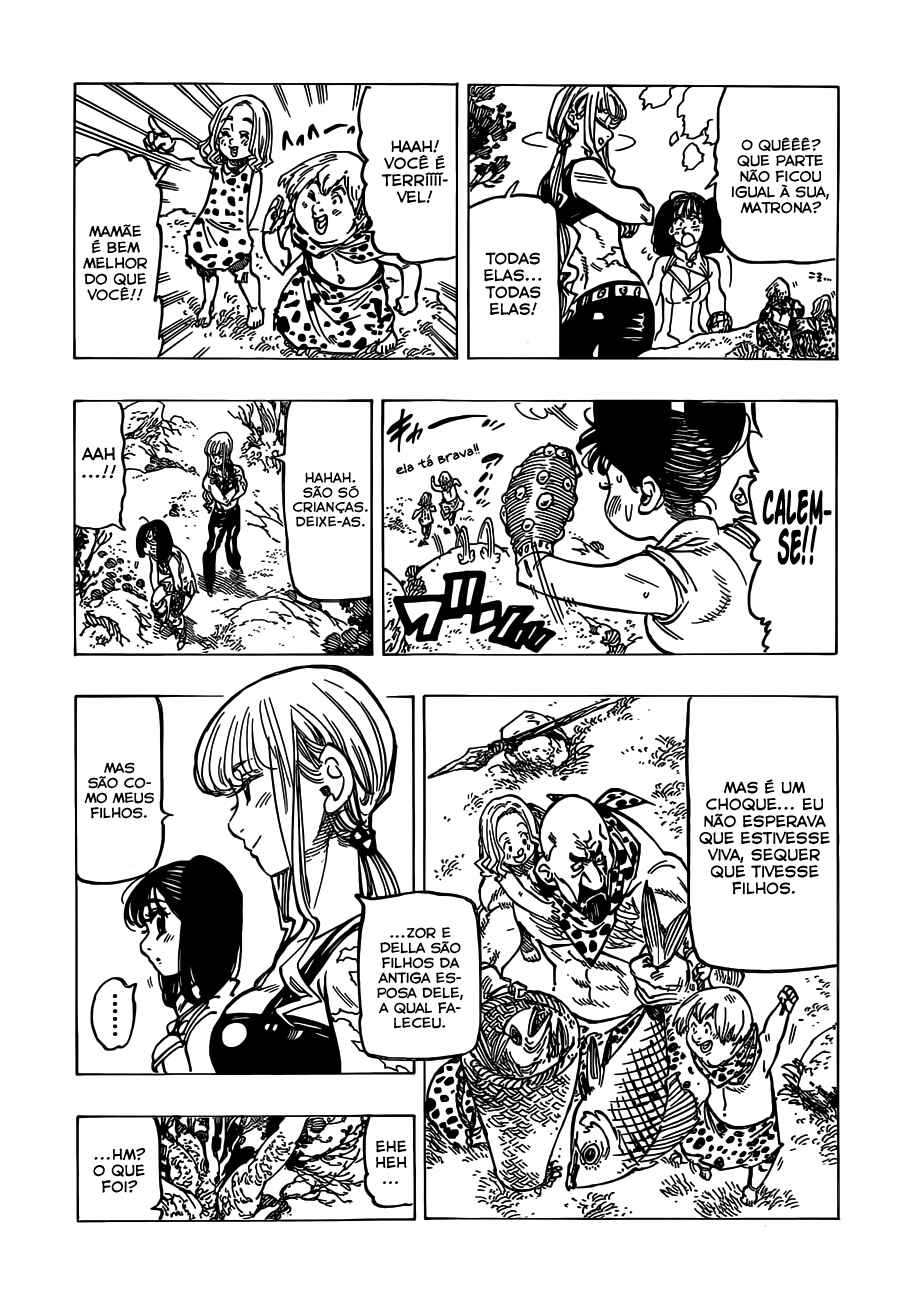 Capítulo 0Capítulo 1 - Os Sete Pecados CapitaisCapítulo 2 - A Espada do PaladinoCapítulo 3 - Algo que Eu Devo FazerCapítulo 4 - O Pecado da Floresta AdormecidaCapítulo 5 - Memória na EscuridãoCapítulo 6 - O Paladino GilthunderCapítulo 7 - O Prisioneiro da EscuridãoCapítulo 8 - O Sonho da GarotaCapítulo 9 - Não Pode Ser TocadoCapítulo 10 - A Maldade InvisívelCapítulo 11 - Mesmo se Você MorrerCapítulo 12 - Uma Festa de ConfusõesCapítulo 13 - Determinação DedicadaCapítulo 14 - ExplosãoCapítulo 15 - O Pequeno EncontroCapítulo 16 - Balada do ComeçoCapítulo 17 - Premonição de TempestadeCapítulo 18 - Reunião TocanteCapítulo 19 - Pecado da GanânciaCapítulo 20 - Dois CaminhosCapítulo 21 - Cavaleiro VingadorCapítulo 22 - Perseguidor TerrívelCapítulo 23 - Algum Dia, DefinitivamenteCapítulo 24 - Lendas EncurraladasCapítulo 25 - Quatro Contra Um, Por FavorCapítulo 26 - Partindo com o MortoCapítulo 27 - A Chuva Sem EmoçõesCapítulo 28 - Homem PerigosoCapítulo 29 - Pulso SombrioCapítulo 30 - Venham! O Festival dos CanalhasCapítulo 31 - Festival de Luta de ByzelCapítulo 32 - Grupo de Lutadores PoderososCapítulo 33 - Previsão de Grande CaosCapítulo 34 - Meliodaz Contra BaanCapítulo 35 - Meliodas RoubadoCapítulo 36 - O Momento de PiscarCapítulo 37 - Se Aproximando da Chance de EncontroCapítulo 38 - Necessidade e AcasoCapítulo 39 - Sentimento de MuitosCapítulo 40 - As Finais do Festival de Luta de ByzelCapítulo 41 - O Choque AssustadorCapítulo 42 - Reator DemônioCapítulo 43 - Aposta PerigosaCapítulo 44 - Contagem Regressiva para o DesesperoCapítulo 45 - Carnaval ViolentoCapítulo 46 - Porque Somos IrmãsCapítulo 47 - Discípulo da DestruiçãoCapítulo 48 - Feliz AniquilaçãoCapítulo 49 - Retirada ForçadaCapítulo 50 - Após o FestivalCapítulo 51 - Profundamente no CoraçãoCapítulo 52 - A Verdade do RumorCapítulo 53 - O Gigante Armado Contra Dawn RoarCapítulo 54 - O Homem que Não se MoveCapítulo 55 - Aquele Homem que Não tem EmoçõesCapítulo 56 - O Cavaleiro ProfanoCapítulo 57 - Acontecimentos de Muito Tempo AtrásCapítulo 58 - Decisão ForçadaCapítulo 59 - Um Homem Imprevisível Entra em CenaCapítulo 60 - Se Metendo em ConfusãoCapítulo 61 - Lendas Não CitadasCapítulo 62 - Vilões ImparáveisCapítulo 63 - Arthur PendragonCapítulo 64 - A Estratégia de Infiltração do Reino!!Capítulo 65 - Um Conflito InevitávelCapítulo 66 - Primeiro InfortúnioCapítulo 67 - FendaCapítulo 68 - Diferença Esmagadora de PoderCapítulo 69 - Todo Mundo Tem uma Primeira VezCapítulo 70 - Grande Paladino AtormentadoCapítulo 71 - Aquilo que Vive na EscuridãoCapítulo 72 - O Homem que Estava Muito AtrasadoCapítulo 73 - Mesmo que Eu Tenha que Destruir Minha VidaCapítulo 74 - A Promessa CumpridaCapítulo 75 - O Que Faz um ReiCapítulo 76 - As Convicções das PrincesasCapítulo 77 - Sentimentos por ElaCapítulo 78 - Em Troca da Minha VidaCapítulo 79 - Mais Uma VezCapítulo 80 - Virando a MesaCapítulo 81 - Único Ataque do MeliodasCapítulo 82 - Feitiço da CoragemCapítulo 83 - Porco CarmesimCapítulo 84 - Tudo Está Bem Quando Termina BemCapítulo 85 - O Começo da FestaCapítulo 86 - Ameaça IminenteCapítulo 87 - A Fúria e a GanânciaCapítulo 88 - Esse Mundo é Como um InfernoCapítulo 89 - Desejo SinceroCapítulo 90 - O Que eu Posso Fazer Por VocêCapítulo 91 - Existência DetestávelCapítulo 92 - A Luta Final ComeçaCapítulo 93 - Vermelho e CinzaCapítulo 94 - Caindo em DesesperoCapítulo 95 - Esperança que DesvaneceCapítulo 96 - HawkCapítulo 97 - ElizabethCapítulo 98 - PreceCapítulo 99 - ConclusãoCapítulo 100 - Os HeróisCapítulo 101 - O Poder do AmorCapítulo 102 - Premonição de um AdeusCapítulo 103 - A Nova JornadaCapítulo 104 - O Retorno do Rei das FadasCapítulo 105 - Um NinguémCapítulo 106 - O Olho Demoníaco de BalorCapítulo 107 - À Procura da VerdadeCapítulo 108 - Despertar GentilCapítulo 109 - TerremotoCapítulo 110 - ConfissãoCapítulo 111 - Como Um Homem DiziaCapítulo 112 - Existência e ProvaCapítulo 113 - RevelaçãoCapítulo 114 - Heróis HesitantesCapítulo 115 - De Volta ao PesadeloCapítulo 116 - O Tesouro Sagrado LostvayneCapítulo 117 - Os Dois Reis das FadasCapítulo 118 - Confronto!! A Floresta do Rei das FadasCapítulo 119 - Os Dez Mandamentos Começam a AgirCapítulo 120 - Violência EsmagadoraCapítulo 121 - Previsão ImpossívelCapítulo 122 - O Massacre dos DemôniosCapítulo 123 - A Redenção do Capitão dos PaladinosCapítulo 124 - O Que a Amizade nos TrouxeCapítulo 125 - Acabem com os "Dez Mandamentos"!!Capítulo 126 - Para Onde as Memórias VãoCapítulo 127 - Reunião com o DesesperoCapítulo 128 - Existência ArroganteCapítulo 129 - A Terra Sagrada dos DruidasCapítulo 130 - A Dor que Gentilmente MataCapítulo 131 - A Promessa Com a Minha AmadaCapítulo 132 - Aquilo que nos FaltaCapítulo 133 - Impaciência e AnsiedadeCapítulo 134 - À Você, Que Não é Mais Meu CapitãoCapítulo 135 - Meras Boas VindasCapítulo 136 - Disseminando o MedoCapítulo 137 - Aqui Entre Eu e VocêCapítulo 138 - Batalha Contra as TrevasCapítulo 139 - Conte-me Sobre o Seu PassadoCapítulo 140 - O Ladrão e o GarotoCapítulo 141 - Pai e FilhoCapítulo 142 - Onde o Amor EstáCapítulo 143 - O Grito da Donzela SagradaCapítulo 144 - Aquele Homem da "Ganância"Capítulo 145 - Bela AlmaCapítulo 146 - Adeus, Meu Amado LadrãoCapítulo 147 - Perseguição MortalCapítulo 148 - Galan GameCapítulo 149 - A Magia de GalanCapítulo 150 - Mestre do SolCapítulo 151 - O Palco Espera por NósCapítulo 152 - Atraídos pela Luz da VelaCapítulo 153 - A Confissão AterrorizanteCapítulo 154 - O Diabo SorriCapítulo 155 - Labirinto da Armadilha da MorteCapítulo 156 - Desafio de Exploração do LabirintoCapítulo 157 - A Dança Caótica dos DesafiantesCapítulo 158 - Os Heróis da FoliaCapítulo 159 - Palavras Não São NecessáriasCapítulo 160 - Vão!! SuperemCapítulo 161 - Aqueles da LendaCapítulo 162 -