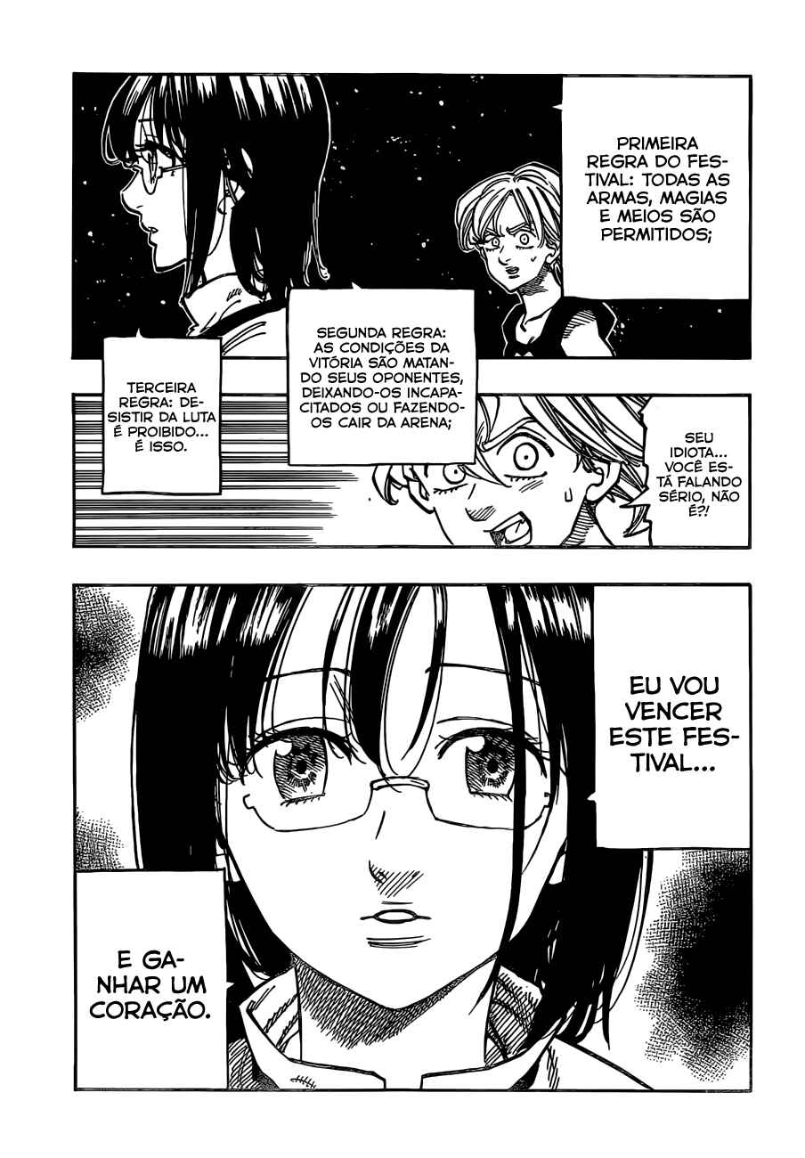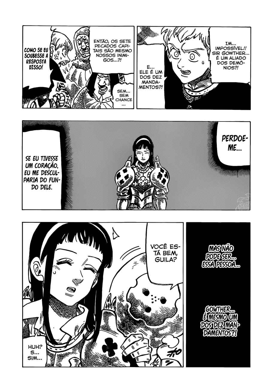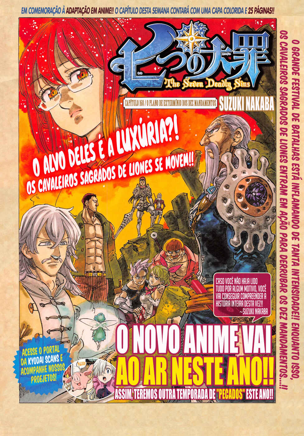 Capítulo 0Capítulo 1 - Os Sete Pecados CapitaisCapítulo 2 - A Espada do PaladinoCapítulo 3 - Algo que Eu Devo FazerCapítulo 4 - O Pecado da Floresta AdormecidaCapítulo 5 - Memória na EscuridãoCapítulo 6 - O Paladino GilthunderCapítulo 7 - O Prisioneiro da EscuridãoCapítulo 8 - O Sonho da GarotaCapítulo 9 - Não Pode Ser TocadoCapítulo 10 - A Maldade InvisívelCapítulo 11 - Mesmo se Você MorrerCapítulo 12 - Uma Festa de ConfusõesCapítulo 13 - Determinação DedicadaCapítulo 14 - ExplosãoCapítulo 15 - O Pequeno EncontroCapítulo 16 - Balada do ComeçoCapítulo 17 - Premonição de TempestadeCapítulo 18 - Reunião TocanteCapítulo 19 - Pecado da GanânciaCapítulo 20 - Dois CaminhosCapítulo 21 - Cavaleiro VingadorCapítulo 22 - Perseguidor TerrívelCapítulo 23 - Algum Dia, DefinitivamenteCapítulo 24 - Lendas EncurraladasCapítulo 25 - Quatro Contra Um, Por FavorCapítulo 26 - Partindo com o MortoCapítulo 27 - A Chuva Sem EmoçõesCapítulo 28 - Homem PerigosoCapítulo 29 - Pulso SombrioCapítulo 30 - Venham! O Festival dos CanalhasCapítulo 31 - Festival de Luta de ByzelCapítulo 32 - Grupo de Lutadores PoderososCapítulo 33 - Previsão de Grande CaosCapítulo 34 - Meliodaz Contra BaanCapítulo 35 - Meliodas RoubadoCapítulo 36 - O Momento de PiscarCapítulo 37 - Se Aproximando da Chance de EncontroCapítulo 38 - Necessidade e AcasoCapítulo 39 - Sentimento de MuitosCapítulo 40 - As Finais do Festival de Luta de ByzelCapítulo 41 - O Choque AssustadorCapítulo 42 - Reator DemônioCapítulo 43 - Aposta PerigosaCapítulo 44 - Contagem Regressiva para o DesesperoCapítulo 45 - Carnaval ViolentoCapítulo 46 - Porque Somos IrmãsCapítulo 47 - Discípulo da DestruiçãoCapítulo 48 - Feliz AniquilaçãoCapítulo 49 - Retirada ForçadaCapítulo 50 - Após o FestivalCapítulo 51 - Profundamente no CoraçãoCapítulo 52 - A Verdade do RumorCapítulo 53 - O Gigante Armado Contra Dawn RoarCapítulo 54 - O Homem que Não se MoveCapítulo 55 - Aquele Homem que Não tem EmoçõesCapítulo 56 - O Cavaleiro ProfanoCapítulo 57 - Acontecimentos de Muito Tempo AtrásCapítulo 58 - Decisão ForçadaCapítulo 59 - Um Homem Imprevisível Entra em CenaCapítulo 60 - Se Metendo em ConfusãoCapítulo 61 - Lendas Não CitadasCapítulo 62 - Vilões ImparáveisCapítulo 63 - Arthur PendragonCapítulo 64 - A Estratégia de Infiltração do Reino!!Capítulo 65 - Um Conflito InevitávelCapítulo 66 - Primeiro InfortúnioCapítulo 67 - FendaCapítulo 68 - Diferença Esmagadora de PoderCapítulo 69 - Todo Mundo Tem uma Primeira VezCapítulo 70 - Grande Paladino AtormentadoCapítulo 71 - Aquilo que Vive na EscuridãoCapítulo 72 - O Homem que Estava Muito AtrasadoCapítulo 73 - Mesmo que Eu Tenha que Destruir Minha VidaCapítulo 74 - A Promessa CumpridaCapítulo 75 - O Que Faz um ReiCapítulo 76 - As Convicções das PrincesasCapítulo 77 - Sentimentos por ElaCapítulo 78 - Em Troca da Minha VidaCapítulo 79 - Mais Uma VezCapítulo 80 - Virando a MesaCapítulo 81 - Único Ataque do MeliodasCapítulo 82 - Feitiço da CoragemCapítulo 83 - Porco CarmesimCapítulo 84 - Tudo Está Bem Quando Termina BemCapítulo 85 - O Começo da FestaCapítulo 86 - Ameaça IminenteCapítulo 87 - A Fúria e a GanânciaCapítulo 88 - Esse Mundo é Como um InfernoCapítulo 89 - Desejo SinceroCapítulo 90 - O Que eu Posso Fazer Por VocêCapítulo 91 - Existência DetestávelCapítulo 92 - A Luta Final ComeçaCapítulo 93 - Vermelho e CinzaCapítulo 94 - Caindo em DesesperoCapítulo 95 - Esperança que DesvaneceCapítulo 96 - HawkCapítulo 97 - ElizabethCapítulo 98 - PreceCapítulo 99 - ConclusãoCapítulo 100 - Os HeróisCapítulo 101 - O Poder do AmorCapítulo 102 - Premonição de um AdeusCapítulo 103 - A Nova JornadaCapítulo 104 - O Retorno do Rei das FadasCapítulo 105 - Um NinguémCapítulo 106 - O Olho Demoníaco de BalorCapítulo 107 - À Procura da VerdadeCapítulo 108 - Despertar GentilCapítulo 109 - TerremotoCapítulo 110 - ConfissãoCapítulo 111 - Como Um Homem DiziaCapítulo 112 - Existência e ProvaCapítulo 113 - RevelaçãoCapítulo 114 - Heróis HesitantesCapítulo 115 - De Volta ao PesadeloCapítulo 116 - O Tesouro Sagrado LostvayneCapítulo 117 - Os Dois Reis das FadasCapítulo 118 - Confronto!! A Floresta do Rei das FadasCapítulo 119 - Os Dez Mandamentos Começam a AgirCapítulo 120 - Violência EsmagadoraCapítulo 121 - Previsão ImpossívelCapítulo 122 - O Massacre dos DemôniosCapítulo 123 - A Redenção do Capitão dos PaladinosCapítulo 124 - O Que a Amizade nos TrouxeCapítulo 125 - Acabem com os "Dez Mandamentos"!!Capítulo 126 - Para Onde as Memórias VãoCapítulo 127 - Reunião com o DesesperoCapítulo 128 - Existência ArroganteCapítulo 129 - A Terra Sagrada dos DruidasCapítulo 130 - A Dor que Gentilmente MataCapítulo 131 - A Promessa Com a Minha AmadaCapítulo 132 - Aquilo que nos FaltaCapítulo 133 - Impaciência e AnsiedadeCapítulo 134 - À Você, Que Não é Mais Meu CapitãoCapítulo 135 - Meras Boas VindasCapítulo 136 - Disseminando o MedoCapítulo 137 - Aqui Entre Eu e VocêCapítulo 138 - Batalha Contra as TrevasCapítulo 139 - Conte-me Sobre o Seu PassadoCapítulo 140 - O Ladrão e o GarotoCapítulo 141 - Pai e FilhoCapítulo 142 - Onde o Amor EstáCapítulo 143 - O Grito da Donzela SagradaCapítulo 144 - Aquele Homem da "Ganância"Capítulo 145 - Bela AlmaCapítulo 146 - Adeus, Meu Amado LadrãoCapítulo 147 - Perseguição MortalCapítulo 148 - Galan GameCapítulo 149 - A Magia de GalanCapítulo 150 - Mestre do SolCapítulo 151 - O Palco Espera por NósCapítulo 152 - Atraídos pela Luz da VelaCapítulo 153 - A Confissão AterrorizanteCapítulo 154 - O Diabo SorriCapítulo 155 - Labirinto da Armadilha da MorteCapítulo 156 - Desafio de Exploração do LabirintoCapítulo 157 - A Dança Caótica dos DesafiantesCapítulo 158 - Os Heróis da FoliaCapítulo 159 - Palavras Não São NecessáriasCapítulo 160 - Vão!! SuperemCapítulo 161 - Aqueles da LendaCapítulo 162 -
