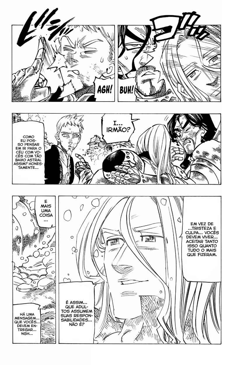 Capítulo 0Capítulo 1 - Os Sete Pecados CapitaisCapítulo 2 - A Espada do PaladinoCapítulo 3 - Algo que Eu Devo FazerCapítulo 4 - O Pecado da Floresta AdormecidaCapítulo 5 - Memória na EscuridãoCapítulo 6 - O Paladino GilthunderCapítulo 7 - O Prisioneiro da EscuridãoCapítulo 8 - O Sonho da GarotaCapítulo 9 - Não Pode Ser TocadoCapítulo 10 - A Maldade InvisívelCapítulo 11 - Mesmo se Você MorrerCapítulo 12 - Uma Festa de ConfusõesCapítulo 13 - Determinação DedicadaCapítulo 14 - ExplosãoCapítulo 15 - O Pequeno EncontroCapítulo 16 - Balada do ComeçoCapítulo 17 - Premonição de TempestadeCapítulo 18 - Reunião TocanteCapítulo 19 - Pecado da GanânciaCapítulo 20 - Dois CaminhosCapítulo 21 - Cavaleiro VingadorCapítulo 22 - Perseguidor TerrívelCapítulo 23 - Algum Dia, DefinitivamenteCapítulo 24 - Lendas EncurraladasCapítulo 25 - Quatro Contra Um, Por FavorCapítulo 26 - Partindo com o MortoCapítulo 27 - A Chuva Sem EmoçõesCapítulo 28 - Homem PerigosoCapítulo 29 - Pulso SombrioCapítulo 30 - Venham! O Festival dos CanalhasCapítulo 31 - Festival de Luta de ByzelCapítulo 32 - Grupo de Lutadores PoderososCapítulo 33 - Previsão de Grande CaosCapítulo 34 - Meliodaz Contra BaanCapítulo 35 - Meliodas RoubadoCapítulo 36 - O Momento de PiscarCapítulo 37 - Se Aproximando da Chance de EncontroCapítulo 38 - Necessidade e AcasoCapítulo 39 - Sentimento de MuitosCapítulo 40 - As Finais do Festival de Luta de ByzelCapítulo 41 - O Choque AssustadorCapítulo 42 - Reator DemônioCapítulo 43 - Aposta PerigosaCapítulo 44 - Contagem Regressiva para o DesesperoCapítulo 45 - Carnaval ViolentoCapítulo 46 - Porque Somos IrmãsCapítulo 47 - Discípulo da DestruiçãoCapítulo 48 - Feliz AniquilaçãoCapítulo 49 - Retirada ForçadaCapítulo 50 - Após o FestivalCapítulo 51 - Profundamente no CoraçãoCapítulo 52 - A Verdade do RumorCapítulo 53 - O Gigante Armado Contra Dawn RoarCapítulo 54 - O Homem que Não se MoveCapítulo 55 - Aquele Homem que Não tem EmoçõesCapítulo 56 - O Cavaleiro ProfanoCapítulo 57 - Acontecimentos de Muito Tempo AtrásCapítulo 58 - Decisão ForçadaCapítulo 59 - Um Homem Imprevisível Entra em CenaCapítulo 60 - Se Metendo em ConfusãoCapítulo 61 - Lendas Não CitadasCapítulo 62 - Vilões ImparáveisCapítulo 63 - Arthur PendragonCapítulo 64 - A Estratégia de Infiltração do Reino!!Capítulo 65 - Um Conflito InevitávelCapítulo 66 - Primeiro InfortúnioCapítulo 67 - FendaCapítulo 68 - Diferença Esmagadora de PoderCapítulo 69 - Todo Mundo Tem uma Primeira VezCapítulo 70 - Grande Paladino AtormentadoCapítulo 71 - Aquilo que Vive na EscuridãoCapítulo 72 - O Homem que Estava Muito AtrasadoCapítulo 73 - Mesmo que Eu Tenha que Destruir Minha VidaCapítulo 74 - A Promessa CumpridaCapítulo 75 - O Que Faz um ReiCapítulo 76 - As Convicções das PrincesasCapítulo 77 - Sentimentos por ElaCapítulo 78 - Em Troca da Minha VidaCapítulo 79 - Mais Uma VezCapítulo 80 - Virando a MesaCapítulo 81 - Único Ataque do MeliodasCapítulo 82 - Feitiço da CoragemCapítulo 83 - Porco CarmesimCapítulo 84 - Tudo Está Bem Quando Termina BemCapítulo 85 - O Começo da FestaCapítulo 86 - Ameaça IminenteCapítulo 87 - A Fúria e a GanânciaCapítulo 88 - Esse Mundo é Como um InfernoCapítulo 89 - Desejo SinceroCapítulo 90 - O Que eu Posso Fazer Por VocêCapítulo 91 - Existência DetestávelCapítulo 92 - A Luta Final ComeçaCapítulo 93 - Vermelho e CinzaCapítulo 94 - Caindo em DesesperoCapítulo 95 - Esperança que DesvaneceCapítulo 96 - HawkCapítulo 97 - ElizabethCapítulo 98 - PreceCapítulo 99 - ConclusãoCapítulo 100 - Os HeróisCapítulo 101 - O Poder do AmorCapítulo 102 - Premonição de um AdeusCapítulo 103 - A Nova JornadaCapítulo 104 - O Retorno do Rei das FadasCapítulo 105 - Um NinguémCapítulo 106 - O Olho Demoníaco de BalorCapítulo 107 - À Procura da VerdadeCapítulo 108 - Despertar GentilCapítulo 109 - TerremotoCapítulo 110 - ConfissãoCapítulo 111 - Como Um Homem DiziaCapítulo 112 - Existência e ProvaCapítulo 113 - RevelaçãoCapítulo 114 - Heróis HesitantesCapítulo 115 - De Volta ao PesadeloCapítulo 116 - O Tesouro Sagrado LostvayneCapítulo 117 - Os Dois Reis das FadasCapítulo 118 - Confronto!! A Floresta do Rei das FadasCapítulo 119 - Os Dez Mandamentos Começam a AgirCapítulo 120 - Violência EsmagadoraCapítulo 121 - Previsão ImpossívelCapítulo 122 - O Massacre dos DemôniosCapítulo 123 - A Redenção do Capitão dos PaladinosCapítulo 124 - O Que a Amizade nos TrouxeCapítulo 125 - Acabem com os "Dez Mandamentos"!!Capítulo 126 - Para Onde as Memórias VãoCapítulo 127 - Reunião com o DesesperoCapítulo 128 - Existência ArroganteCapítulo 129 - A Terra Sagrada dos DruidasCapítulo 130 - A Dor que Gentilmente MataCapítulo 131 - A Promessa Com a Minha AmadaCapítulo 132 - Aquilo que nos FaltaCapítulo 133 - Impaciência e AnsiedadeCapítulo 134 - À Você, Que Não é Mais Meu CapitãoCapítulo 135 - Meras Boas VindasCapítulo 136 - Disseminando o MedoCapítulo 137 - Aqui Entre Eu e VocêCapítulo 138 - Batalha Contra as TrevasCapítulo 139 - Conte-me Sobre o Seu PassadoCapítulo 140 - O Ladrão e o GarotoCapítulo 141 - Pai e FilhoCapítulo 142 - Onde o Amor EstáCapítulo 143 - O Grito da Donzela SagradaCapítulo 144 - Aquele Homem da "Ganância"Capítulo 145 - Bela AlmaCapítulo 146 - Adeus, Meu Amado LadrãoCapítulo 147 - Perseguição MortalCapítulo 148 - Galan GameCapítulo 149 - A Magia de GalanCapítulo 150 - Mestre do SolCapítulo 151 - O Palco Espera por NósCapítulo 152 - Atraídos pela Luz da VelaCapítulo 153 - A Confissão AterrorizanteCapítulo 154 - O Diabo SorriCapítulo 155 - Labirinto da Armadilha da MorteCapítulo 156 - Desafio de Exploração do LabirintoCapítulo 157 - A Dança Caótica dos DesafiantesCapítulo 158 - Os Heróis da FoliaCapítulo 159 - Palavras Não São NecessáriasCapítulo 160 - Vão!! SuperemCapítulo 161 - Aqueles da LendaCapítulo 162 -