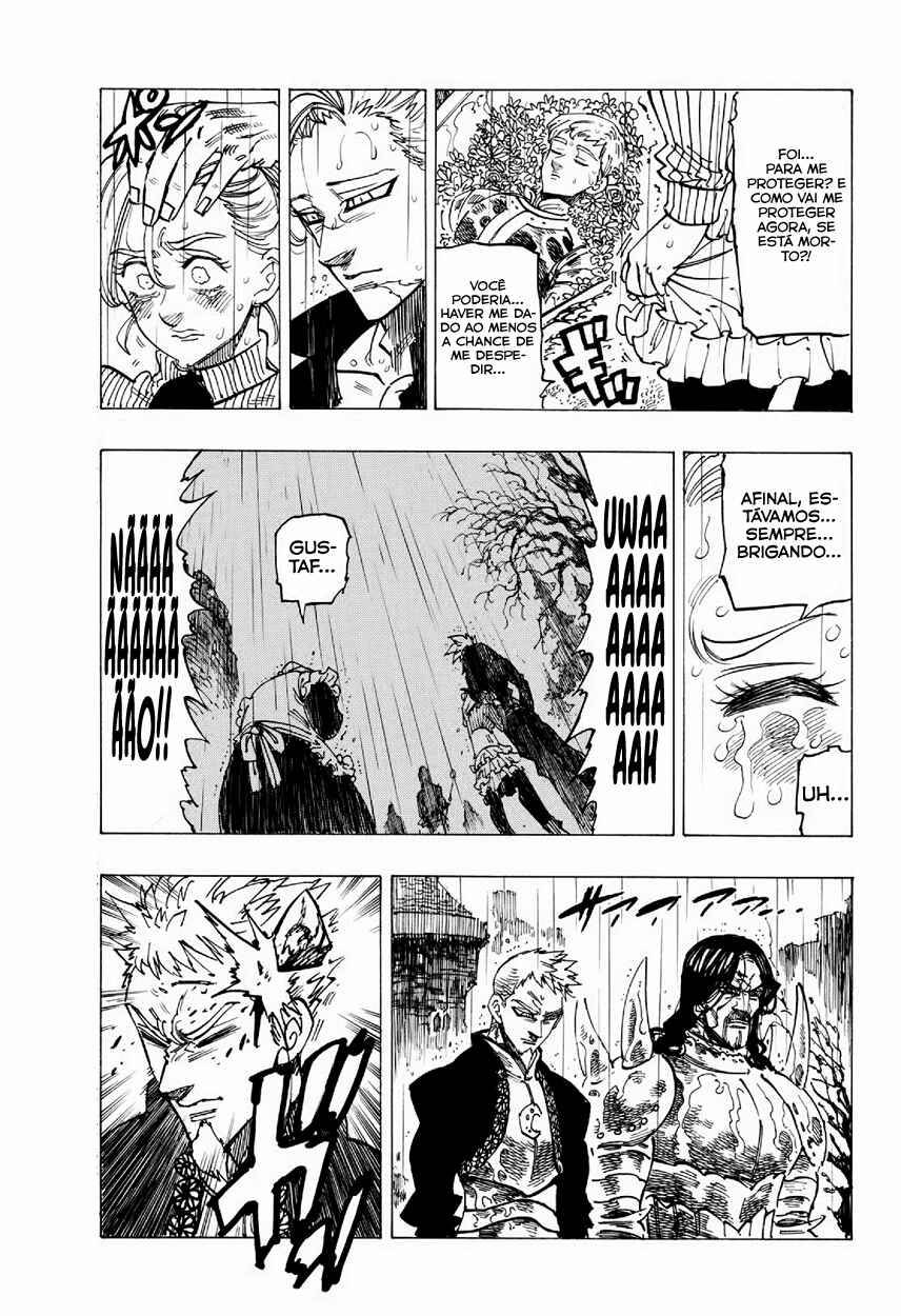 Capítulo 0Capítulo 1 - Os Sete Pecados CapitaisCapítulo 2 - A Espada do PaladinoCapítulo 3 - Algo que Eu Devo FazerCapítulo 4 - O Pecado da Floresta AdormecidaCapítulo 5 - Memória na EscuridãoCapítulo 6 - O Paladino GilthunderCapítulo 7 - O Prisioneiro da EscuridãoCapítulo 8 - O Sonho da GarotaCapítulo 9 - Não Pode Ser TocadoCapítulo 10 - A Maldade InvisívelCapítulo 11 - Mesmo se Você MorrerCapítulo 12 - Uma Festa de ConfusõesCapítulo 13 - Determinação DedicadaCapítulo 14 - ExplosãoCapítulo 15 - O Pequeno EncontroCapítulo 16 - Balada do ComeçoCapítulo 17 - Premonição de TempestadeCapítulo 18 - Reunião TocanteCapítulo 19 - Pecado da GanânciaCapítulo 20 - Dois CaminhosCapítulo 21 - Cavaleiro VingadorCapítulo 22 - Perseguidor TerrívelCapítulo 23 - Algum Dia, DefinitivamenteCapítulo 24 - Lendas EncurraladasCapítulo 25 - Quatro Contra Um, Por FavorCapítulo 26 - Partindo com o MortoCapítulo 27 - A Chuva Sem EmoçõesCapítulo 28 - Homem PerigosoCapítulo 29 - Pulso SombrioCapítulo 30 - Venham! O Festival dos CanalhasCapítulo 31 - Festival de Luta de ByzelCapítulo 32 - Grupo de Lutadores PoderososCapítulo 33 - Previsão de Grande CaosCapítulo 34 - Meliodaz Contra BaanCapítulo 35 - Meliodas RoubadoCapítulo 36 - O Momento de PiscarCapítulo 37 - Se Aproximando da Chance de EncontroCapítulo 38 - Necessidade e AcasoCapítulo 39 - Sentimento de MuitosCapítulo 40 - As Finais do Festival de Luta de ByzelCapítulo 41 - O Choque AssustadorCapítulo 42 - Reator DemônioCapítulo 43 - Aposta PerigosaCapítulo 44 - Contagem Regressiva para o DesesperoCapítulo 45 - Carnaval ViolentoCapítulo 46 - Porque Somos IrmãsCapítulo 47 - Discípulo da DestruiçãoCapítulo 48 - Feliz AniquilaçãoCapítulo 49 - Retirada ForçadaCapítulo 50 - Após o FestivalCapítulo 51 - Profundamente no CoraçãoCapítulo 52 - A Verdade do RumorCapítulo 53 - O Gigante Armado Contra Dawn RoarCapítulo 54 - O Homem que Não se MoveCapítulo 55 - Aquele Homem que Não tem EmoçõesCapítulo 56 - O Cavaleiro ProfanoCapítulo 57 - Acontecimentos de Muito Tempo AtrásCapítulo 58 - Decisão ForçadaCapítulo 59 - Um Homem Imprevisível Entra em CenaCapítulo 60 - Se Metendo em ConfusãoCapítulo 61 - Lendas Não CitadasCapítulo 62 - Vilões ImparáveisCapítulo 63 - Arthur PendragonCapítulo 64 - A Estratégia de Infiltração do Reino!!Capítulo 65 - Um Conflito InevitávelCapítulo 66 - Primeiro InfortúnioCapítulo 67 - FendaCapítulo 68 - Diferença Esmagadora de PoderCapítulo 69 - Todo Mundo Tem uma Primeira VezCapítulo 70 - Grande Paladino AtormentadoCapítulo 71 - Aquilo que Vive na EscuridãoCapítulo 72 - O Homem que Estava Muito AtrasadoCapítulo 73 - Mesmo que Eu Tenha que Destruir Minha VidaCapítulo 74 - A Promessa CumpridaCapítulo 75 - O Que Faz um ReiCapítulo 76 - As Convicções das PrincesasCapítulo 77 - Sentimentos por ElaCapítulo 78 - Em Troca da Minha VidaCapítulo 79 - Mais Uma VezCapítulo 80 - Virando a MesaCapítulo 81 - Único Ataque do MeliodasCapítulo 82 - Feitiço da CoragemCapítulo 83 - Porco CarmesimCapítulo 84 - Tudo Está Bem Quando Termina BemCapítulo 85 - O Começo da FestaCapítulo 86 - Ameaça IminenteCapítulo 87 - A Fúria e a GanânciaCapítulo 88 - Esse Mundo é Como um InfernoCapítulo 89 - Desejo SinceroCapítulo 90 - O Que eu Posso Fazer Por VocêCapítulo 91 - Existência DetestávelCapítulo 92 - A Luta Final ComeçaCapítulo 93 - Vermelho e CinzaCapítulo 94 - Caindo em DesesperoCapítulo 95 - Esperança que DesvaneceCapítulo 96 - HawkCapítulo 97 - ElizabethCapítulo 98 - PreceCapítulo 99 - ConclusãoCapítulo 100 - Os HeróisCapítulo 101 - O Poder do AmorCapítulo 102 - Premonição de um AdeusCapítulo 103 - A Nova JornadaCapítulo 104 - O Retorno do Rei das FadasCapítulo 105 - Um NinguémCapítulo 106 - O Olho Demoníaco de BalorCapítulo 107 - À Procura da VerdadeCapítulo 108 - Despertar GentilCapítulo 109 - TerremotoCapítulo 110 - ConfissãoCapítulo 111 - Como Um Homem DiziaCapítulo 112 - Existência e ProvaCapítulo 113 - RevelaçãoCapítulo 114 - Heróis HesitantesCapítulo 115 - De Volta ao PesadeloCapítulo 116 - O Tesouro Sagrado LostvayneCapítulo 117 - Os Dois Reis das FadasCapítulo 118 - Confronto!! A Floresta do Rei das FadasCapítulo 119 - Os Dez Mandamentos Começam a AgirCapítulo 120 - Violência EsmagadoraCapítulo 121 - Previsão ImpossívelCapítulo 122 - O Massacre dos DemôniosCapítulo 123 - A Redenção do Capitão dos PaladinosCapítulo 124 - O Que a Amizade nos TrouxeCapítulo 125 - Acabem com os "Dez Mandamentos"!!Capítulo 126 - Para Onde as Memórias VãoCapítulo 127 - Reunião com o DesesperoCapítulo 128 - Existência ArroganteCapítulo 129 - A Terra Sagrada dos DruidasCapítulo 130 - A Dor que Gentilmente MataCapítulo 131 - A Promessa Com a Minha AmadaCapítulo 132 - Aquilo que nos FaltaCapítulo 133 - Impaciência e AnsiedadeCapítulo 134 - À Você, Que Não é Mais Meu CapitãoCapítulo 135 - Meras Boas VindasCapítulo 136 - Disseminando o MedoCapítulo 137 - Aqui Entre Eu e VocêCapítulo 138 - Batalha Contra as TrevasCapítulo 139 - Conte-me Sobre o Seu PassadoCapítulo 140 - O Ladrão e o GarotoCapítulo 141 - Pai e FilhoCapítulo 142 - Onde o Amor EstáCapítulo 143 - O Grito da Donzela SagradaCapítulo 144 - Aquele Homem da "Ganância"Capítulo 145 - Bela AlmaCapítulo 146 - Adeus, Meu Amado LadrãoCapítulo 147 - Perseguição MortalCapítulo 148 - Galan GameCapítulo 149 - A Magia de GalanCapítulo 150 - Mestre do SolCapítulo 151 - O Palco Espera por NósCapítulo 152 - Atraídos pela Luz da VelaCapítulo 153 - A Confissão AterrorizanteCapítulo 154 - O Diabo SorriCapítulo 155 - Labirinto da Armadilha da MorteCapítulo 156 - Desafio de Exploração do LabirintoCapítulo 157 - A Dança Caótica dos DesafiantesCapítulo 158 - Os Heróis da FoliaCapítulo 159 - Palavras Não São NecessáriasCapítulo 160 - Vão!! SuperemCapítulo 161 - Aqueles da LendaCapítulo 162 -