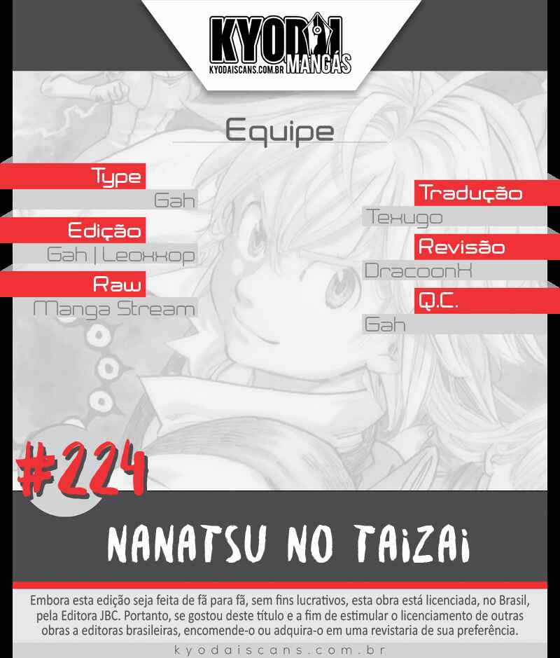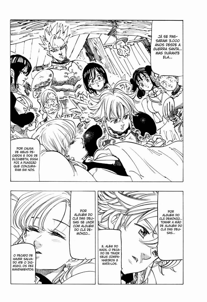 Capítulo 0Capítulo 1 - Os Sete Pecados CapitaisCapítulo 2 - A Espada do PaladinoCapítulo 3 - Algo que Eu Devo FazerCapítulo 4 - O Pecado da Floresta AdormecidaCapítulo 5 - Memória na EscuridãoCapítulo 6 - O Paladino GilthunderCapítulo 7 - O Prisioneiro da EscuridãoCapítulo 8 - O Sonho da GarotaCapítulo 9 - Não Pode Ser TocadoCapítulo 10 - A Maldade InvisívelCapítulo 11 - Mesmo se Você MorrerCapítulo 12 - Uma Festa de ConfusõesCapítulo 13 - Determinação DedicadaCapítulo 14 - ExplosãoCapítulo 15 - O Pequeno EncontroCapítulo 16 - Balada do ComeçoCapítulo 17 - Premonição de TempestadeCapítulo 18 - Reunião TocanteCapítulo 19 - Pecado da GanânciaCapítulo 20 - Dois CaminhosCapítulo 21 - Cavaleiro VingadorCapítulo 22 - Perseguidor TerrívelCapítulo 23 - Algum Dia, DefinitivamenteCapítulo 24 - Lendas EncurraladasCapítulo 25 - Quatro Contra Um, Por FavorCapítulo 26 - Partindo com o MortoCapítulo 27 - A Chuva Sem EmoçõesCapítulo 28 - Homem PerigosoCapítulo 29 - Pulso SombrioCapítulo 30 - Venham! O Festival dos CanalhasCapítulo 31 - Festival de Luta de ByzelCapítulo 32 - Grupo de Lutadores PoderososCapítulo 33 - Previsão de Grande CaosCapítulo 34 - Meliodaz Contra BaanCapítulo 35 - Meliodas RoubadoCapítulo 36 - O Momento de PiscarCapítulo 37 - Se Aproximando da Chance de EncontroCapítulo 38 - Necessidade e AcasoCapítulo 39 - Sentimento de MuitosCapítulo 40 - As Finais do Festival de Luta de ByzelCapítulo 41 - O Choque AssustadorCapítulo 42 - Reator DemônioCapítulo 43 - Aposta PerigosaCapítulo 44 - Contagem Regressiva para o DesesperoCapítulo 45 - Carnaval ViolentoCapítulo 46 - Porque Somos IrmãsCapítulo 47 - Discípulo da DestruiçãoCapítulo 48 - Feliz AniquilaçãoCapítulo 49 - Retirada ForçadaCapítulo 50 - Após o FestivalCapítulo 51 - Profundamente no CoraçãoCapítulo 52 - A Verdade do RumorCapítulo 53 - O Gigante Armado Contra Dawn RoarCapítulo 54 - O Homem que Não se MoveCapítulo 55 - Aquele Homem que Não tem EmoçõesCapítulo 56 - O Cavaleiro ProfanoCapítulo 57 - Acontecimentos de Muito Tempo AtrásCapítulo 58 - Decisão ForçadaCapítulo 59 - Um Homem Imprevisível Entra em CenaCapítulo 60 - Se Metendo em ConfusãoCapítulo 61 - Lendas Não CitadasCapítulo 62 - Vilões ImparáveisCapítulo 63 - Arthur PendragonCapítulo 64 - A Estratégia de Infiltração do Reino!!Capítulo 65 - Um Conflito InevitávelCapítulo 66 - Primeiro InfortúnioCapítulo 67 - FendaCapítulo 68 - Diferença Esmagadora de PoderCapítulo 69 - Todo Mundo Tem uma Primeira VezCapítulo 70 - Grande Paladino AtormentadoCapítulo 71 - Aquilo que Vive na EscuridãoCapítulo 72 - O Homem que Estava Muito AtrasadoCapítulo 73 - Mesmo que Eu Tenha que Destruir Minha VidaCapítulo 74 - A Promessa CumpridaCapítulo 75 - O Que Faz um ReiCapítulo 76 - As Convicções das PrincesasCapítulo 77 - Sentimentos por ElaCapítulo 78 - Em Troca da Minha VidaCapítulo 79 - Mais Uma VezCapítulo 80 - Virando a MesaCapítulo 81 - Único Ataque do MeliodasCapítulo 82 - Feitiço da CoragemCapítulo 83 - Porco CarmesimCapítulo 84 - Tudo Está Bem Quando Termina BemCapítulo 85 - O Começo da FestaCapítulo 86 - Ameaça IminenteCapítulo 87 - A Fúria e a GanânciaCapítulo 88 - Esse Mundo é Como um InfernoCapítulo 89 - Desejo SinceroCapítulo 90 - O Que eu Posso Fazer Por VocêCapítulo 91 - Existência DetestávelCapítulo 92 - A Luta Final ComeçaCapítulo 93 - Vermelho e CinzaCapítulo 94 - Caindo em DesesperoCapítulo 95 - Esperança que DesvaneceCapítulo 96 - HawkCapítulo 97 - ElizabethCapítulo 98 - PreceCapítulo 99 - ConclusãoCapítulo 100 - Os HeróisCapítulo 101 - O Poder do AmorCapítulo 102 - Premonição de um AdeusCapítulo 103 - A Nova JornadaCapítulo 104 - O Retorno do Rei das FadasCapítulo 105 - Um NinguémCapítulo 106 - O Olho Demoníaco de BalorCapítulo 107 - À Procura da VerdadeCapítulo 108 - Despertar GentilCapítulo 109 - TerremotoCapítulo 110 - ConfissãoCapítulo 111 - Como Um Homem DiziaCapítulo 112 - Existência e ProvaCapítulo 113 - RevelaçãoCapítulo 114 - Heróis HesitantesCapítulo 115 - De Volta ao PesadeloCapítulo 116 - O Tesouro Sagrado LostvayneCapítulo 117 - Os Dois Reis das FadasCapítulo 118 - Confronto!! A Floresta do Rei das FadasCapítulo 119 - Os Dez Mandamentos Começam a AgirCapítulo 120 - Violência EsmagadoraCapítulo 121 - Previsão ImpossívelCapítulo 122 - O Massacre dos DemôniosCapítulo 123 - A Redenção do Capitão dos PaladinosCapítulo 124 - O Que a Amizade nos TrouxeCapítulo 125 - Acabem com os "Dez Mandamentos"!!Capítulo 126 - Para Onde as Memórias VãoCapítulo 127 - Reunião com o DesesperoCapítulo 128 - Existência ArroganteCapítulo 129 - A Terra Sagrada dos DruidasCapítulo 130 - A Dor que Gentilmente MataCapítulo 131 - A Promessa Com a Minha AmadaCapítulo 132 - Aquilo que nos FaltaCapítulo 133 - Impaciência e AnsiedadeCapítulo 134 - À Você, Que Não é Mais Meu CapitãoCapítulo 135 - Meras Boas VindasCapítulo 136 - Disseminando o MedoCapítulo 137 - Aqui Entre Eu e VocêCapítulo 138 - Batalha Contra as TrevasCapítulo 139 - Conte-me Sobre o Seu PassadoCapítulo 140 - O Ladrão e o GarotoCapítulo 141 - Pai e FilhoCapítulo 142 - Onde o Amor EstáCapítulo 143 - O Grito da Donzela SagradaCapítulo 144 - Aquele Homem da "Ganância"Capítulo 145 - Bela AlmaCapítulo 146 - Adeus, Meu Amado LadrãoCapítulo 147 - Perseguição MortalCapítulo 148 - Galan GameCapítulo 149 - A Magia de GalanCapítulo 150 - Mestre do SolCapítulo 151 - O Palco Espera por NósCapítulo 152 - Atraídos pela Luz da VelaCapítulo 153 - A Confissão AterrorizanteCapítulo 154 - O Diabo SorriCapítulo 155 - Labirinto da Armadilha da MorteCapítulo 156 - Desafio de Exploração do LabirintoCapítulo 157 - A Dança Caótica dos DesafiantesCapítulo 158 - Os Heróis da FoliaCapítulo 159 - Palavras Não São NecessáriasCapítulo 160 - Vão!! SuperemCapítulo 161 - Aqueles da LendaCapítulo 162 -