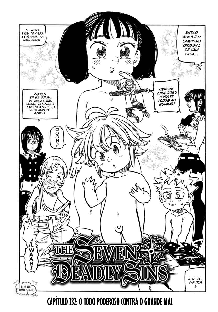 Capítulo 0Capítulo 1 - Os Sete Pecados CapitaisCapítulo 2 - A Espada do PaladinoCapítulo 3 - Algo que Eu Devo FazerCapítulo 4 - O Pecado da Floresta AdormecidaCapítulo 5 - Memória na EscuridãoCapítulo 6 - O Paladino GilthunderCapítulo 7 - O Prisioneiro da EscuridãoCapítulo 8 - O Sonho da GarotaCapítulo 9 - Não Pode Ser TocadoCapítulo 10 - A Maldade InvisívelCapítulo 11 - Mesmo se Você MorrerCapítulo 12 - Uma Festa de ConfusõesCapítulo 13 - Determinação DedicadaCapítulo 14 - ExplosãoCapítulo 15 - O Pequeno EncontroCapítulo 16 - Balada do ComeçoCapítulo 17 - Premonição de TempestadeCapítulo 18 - Reunião TocanteCapítulo 19 - Pecado da GanânciaCapítulo 20 - Dois CaminhosCapítulo 21 - Cavaleiro VingadorCapítulo 22 - Perseguidor TerrívelCapítulo 23 - Algum Dia, DefinitivamenteCapítulo 24 - Lendas EncurraladasCapítulo 25 - Quatro Contra Um, Por FavorCapítulo 26 - Partindo com o MortoCapítulo 27 - A Chuva Sem EmoçõesCapítulo 28 - Homem PerigosoCapítulo 29 - Pulso SombrioCapítulo 30 - Venham! O Festival dos CanalhasCapítulo 31 - Festival de Luta de ByzelCapítulo 32 - Grupo de Lutadores PoderososCapítulo 33 - Previsão de Grande CaosCapítulo 34 - Meliodaz Contra BaanCapítulo 35 - Meliodas RoubadoCapítulo 36 - O Momento de PiscarCapítulo 37 - Se Aproximando da Chance de EncontroCapítulo 38 - Necessidade e AcasoCapítulo 39 - Sentimento de MuitosCapítulo 40 - As Finais do Festival de Luta de ByzelCapítulo 41 - O Choque AssustadorCapítulo 42 - Reator DemônioCapítulo 43 - Aposta PerigosaCapítulo 44 - Contagem Regressiva para o DesesperoCapítulo 45 - Carnaval ViolentoCapítulo 46 - Porque Somos IrmãsCapítulo 47 - Discípulo da DestruiçãoCapítulo 48 - Feliz AniquilaçãoCapítulo 49 - Retirada ForçadaCapítulo 50 - Após o FestivalCapítulo 51 - Profundamente no CoraçãoCapítulo 52 - A Verdade do RumorCapítulo 53 - O Gigante Armado Contra Dawn RoarCapítulo 54 - O Homem que Não se MoveCapítulo 55 - Aquele Homem que Não tem EmoçõesCapítulo 56 - O Cavaleiro ProfanoCapítulo 57 - Acontecimentos de Muito Tempo AtrásCapítulo 58 - Decisão ForçadaCapítulo 59 - Um Homem Imprevisível Entra em CenaCapítulo 60 - Se Metendo em ConfusãoCapítulo 61 - Lendas Não CitadasCapítulo 62 - Vilões ImparáveisCapítulo 63 - Arthur PendragonCapítulo 64 - A Estratégia de Infiltração do Reino!!Capítulo 65 - Um Conflito InevitávelCapítulo 66 - Primeiro InfortúnioCapítulo 67 - FendaCapítulo 68 - Diferença Esmagadora de PoderCapítulo 69 - Todo Mundo Tem uma Primeira VezCapítulo 70 - Grande Paladino AtormentadoCapítulo 71 - Aquilo que Vive na EscuridãoCapítulo 72 - O Homem que Estava Muito AtrasadoCapítulo 73 - Mesmo que Eu Tenha que Destruir Minha VidaCapítulo 74 - A Promessa CumpridaCapítulo 75 - O Que Faz um ReiCapítulo 76 - As Convicções das PrincesasCapítulo 77 - Sentimentos por ElaCapítulo 78 - Em Troca da Minha VidaCapítulo 79 - Mais Uma VezCapítulo 80 - Virando a MesaCapítulo 81 - Único Ataque do MeliodasCapítulo 82 - Feitiço da CoragemCapítulo 83 - Porco CarmesimCapítulo 84 - Tudo Está Bem Quando Termina BemCapítulo 85 - O Começo da FestaCapítulo 86 - Ameaça IminenteCapítulo 87 - A Fúria e a GanânciaCapítulo 88 - Esse Mundo é Como um InfernoCapítulo 89 - Desejo SinceroCapítulo 90 - O Que eu Posso Fazer Por VocêCapítulo 91 - Existência DetestávelCapítulo 92 - A Luta Final ComeçaCapítulo 93 - Vermelho e CinzaCapítulo 94 - Caindo em DesesperoCapítulo 95 - Esperança que DesvaneceCapítulo 96 - HawkCapítulo 97 - ElizabethCapítulo 98 - PreceCapítulo 99 - ConclusãoCapítulo 100 - Os HeróisCapítulo 101 - O Poder do AmorCapítulo 102 - Premonição de um AdeusCapítulo 103 - A Nova JornadaCapítulo 104 - O Retorno do Rei das FadasCapítulo 105 - Um NinguémCapítulo 106 - O Olho Demoníaco de BalorCapítulo 107 - À Procura da VerdadeCapítulo 108 - Despertar GentilCapítulo 109 - TerremotoCapítulo 110 - ConfissãoCapítulo 111 - Como Um Homem DiziaCapítulo 112 - Existência e ProvaCapítulo 113 - RevelaçãoCapítulo 114 - Heróis HesitantesCapítulo 115 - De Volta ao PesadeloCapítulo 116 - O Tesouro Sagrado LostvayneCapítulo 117 - Os Dois Reis das FadasCapítulo 118 - Confronto!! A Floresta do Rei das FadasCapítulo 119 - Os Dez Mandamentos Começam a AgirCapítulo 120 - Violência EsmagadoraCapítulo 121 - Previsão ImpossívelCapítulo 122 - O Massacre dos DemôniosCapítulo 123 - A Redenção do Capitão dos PaladinosCapítulo 124 - O Que a Amizade nos TrouxeCapítulo 125 - Acabem com os "Dez Mandamentos"!!Capítulo 126 - Para Onde as Memórias VãoCapítulo 127 - Reunião com o DesesperoCapítulo 128 - Existência ArroganteCapítulo 129 - A Terra Sagrada dos DruidasCapítulo 130 - A Dor que Gentilmente MataCapítulo 131 - A Promessa Com a Minha AmadaCapítulo 132 - Aquilo que nos FaltaCapítulo 133 - Impaciência e AnsiedadeCapítulo 134 - À Você, Que Não é Mais Meu CapitãoCapítulo 135 - Meras Boas VindasCapítulo 136 - Disseminando o MedoCapítulo 137 - Aqui Entre Eu e VocêCapítulo 138 - Batalha Contra as TrevasCapítulo 139 - Conte-me Sobre o Seu PassadoCapítulo 140 - O Ladrão e o GarotoCapítulo 141 - Pai e FilhoCapítulo 142 - Onde o Amor EstáCapítulo 143 - O Grito da Donzela SagradaCapítulo 144 - Aquele Homem da "Ganância"Capítulo 145 - Bela AlmaCapítulo 146 - Adeus, Meu Amado LadrãoCapítulo 147 - Perseguição MortalCapítulo 148 - Galan GameCapítulo 149 - A Magia de GalanCapítulo 150 - Mestre do SolCapítulo 151 - O Palco Espera por NósCapítulo 152 - Atraídos pela Luz da VelaCapítulo 153 - A Confissão AterrorizanteCapítulo 154 - O Diabo SorriCapítulo 155 - Labirinto da Armadilha da MorteCapítulo 156 - Desafio de Exploração do LabirintoCapítulo 157 - A Dança Caótica dos DesafiantesCapítulo 158 - Os Heróis da FoliaCapítulo 159 - Palavras Não São NecessáriasCapítulo 160 - Vão!! SuperemCapítulo 161 - Aqueles da LendaCapítulo 162 -