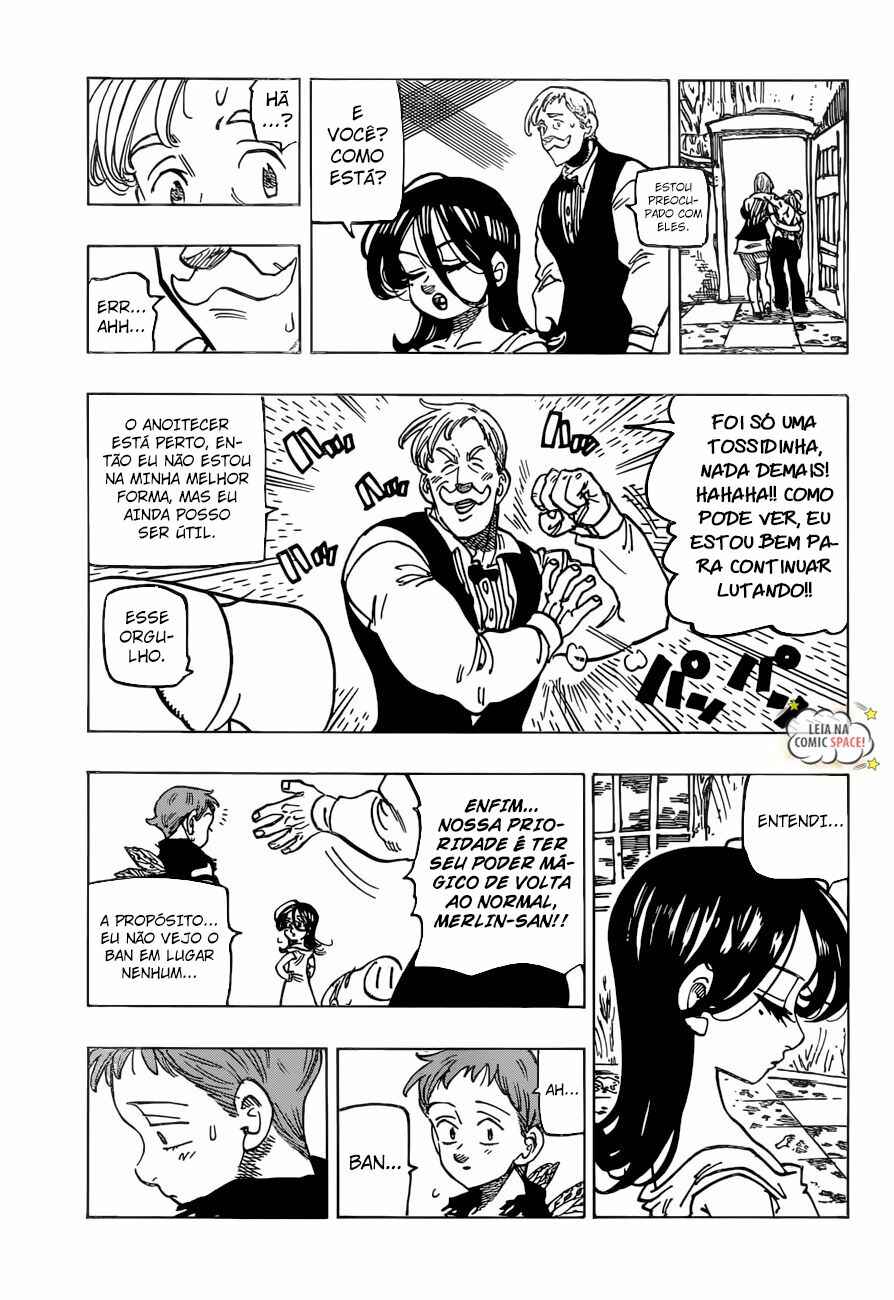 Capítulo 0Capítulo 1 - Os Sete Pecados CapitaisCapítulo 2 - A Espada do PaladinoCapítulo 3 - Algo que Eu Devo FazerCapítulo 4 - O Pecado da Floresta AdormecidaCapítulo 5 - Memória na EscuridãoCapítulo 6 - O Paladino GilthunderCapítulo 7 - O Prisioneiro da EscuridãoCapítulo 8 - O Sonho da GarotaCapítulo 9 - Não Pode Ser TocadoCapítulo 10 - A Maldade InvisívelCapítulo 11 - Mesmo se Você MorrerCapítulo 12 - Uma Festa de ConfusõesCapítulo 13 - Determinação DedicadaCapítulo 14 - ExplosãoCapítulo 15 - O Pequeno EncontroCapítulo 16 - Balada do ComeçoCapítulo 17 - Premonição de TempestadeCapítulo 18 - Reunião TocanteCapítulo 19 - Pecado da GanânciaCapítulo 20 - Dois CaminhosCapítulo 21 - Cavaleiro VingadorCapítulo 22 - Perseguidor TerrívelCapítulo 23 - Algum Dia, DefinitivamenteCapítulo 24 - Lendas EncurraladasCapítulo 25 - Quatro Contra Um, Por FavorCapítulo 26 - Partindo com o MortoCapítulo 27 - A Chuva Sem EmoçõesCapítulo 28 - Homem PerigosoCapítulo 29 - Pulso SombrioCapítulo 30 - Venham! O Festival dos CanalhasCapítulo 31 - Festival de Luta de ByzelCapítulo 32 - Grupo de Lutadores PoderososCapítulo 33 - Previsão de Grande CaosCapítulo 34 - Meliodaz Contra BaanCapítulo 35 - Meliodas RoubadoCapítulo 36 - O Momento de PiscarCapítulo 37 - Se Aproximando da Chance de EncontroCapítulo 38 - Necessidade e AcasoCapítulo 39 - Sentimento de MuitosCapítulo 40 - As Finais do Festival de Luta de ByzelCapítulo 41 - O Choque AssustadorCapítulo 42 - Reator DemônioCapítulo 43 - Aposta PerigosaCapítulo 44 - Contagem Regressiva para o DesesperoCapítulo 45 - Carnaval ViolentoCapítulo 46 - Porque Somos IrmãsCapítulo 47 - Discípulo da DestruiçãoCapítulo 48 - Feliz AniquilaçãoCapítulo 49 - Retirada ForçadaCapítulo 50 - Após o FestivalCapítulo 51 - Profundamente no CoraçãoCapítulo 52 - A Verdade do RumorCapítulo 53 - O Gigante Armado Contra Dawn RoarCapítulo 54 - O Homem que Não se MoveCapítulo 55 - Aquele Homem que Não tem EmoçõesCapítulo 56 - O Cavaleiro ProfanoCapítulo 57 - Acontecimentos de Muito Tempo AtrásCapítulo 58 - Decisão ForçadaCapítulo 59 - Um Homem Imprevisível Entra em CenaCapítulo 60 - Se Metendo em ConfusãoCapítulo 61 - Lendas Não CitadasCapítulo 62 - Vilões ImparáveisCapítulo 63 - Arthur PendragonCapítulo 64 - A Estratégia de Infiltração do Reino!!Capítulo 65 - Um Conflito InevitávelCapítulo 66 - Primeiro InfortúnioCapítulo 67 - FendaCapítulo 68 - Diferença Esmagadora de PoderCapítulo 69 - Todo Mundo Tem uma Primeira VezCapítulo 70 - Grande Paladino AtormentadoCapítulo 71 - Aquilo que Vive na EscuridãoCapítulo 72 - O Homem que Estava Muito AtrasadoCapítulo 73 - Mesmo que Eu Tenha que Destruir Minha VidaCapítulo 74 - A Promessa CumpridaCapítulo 75 - O Que Faz um ReiCapítulo 76 - As Convicções das PrincesasCapítulo 77 - Sentimentos por ElaCapítulo 78 - Em Troca da Minha VidaCapítulo 79 - Mais Uma VezCapítulo 80 - Virando a MesaCapítulo 81 - Único Ataque do MeliodasCapítulo 82 - Feitiço da CoragemCapítulo 83 - Porco CarmesimCapítulo 84 - Tudo Está Bem Quando Termina BemCapítulo 85 - O Começo da FestaCapítulo 86 - Ameaça IminenteCapítulo 87 - A Fúria e a GanânciaCapítulo 88 - Esse Mundo é Como um InfernoCapítulo 89 - Desejo SinceroCapítulo 90 - O Que eu Posso Fazer Por VocêCapítulo 91 - Existência DetestávelCapítulo 92 - A Luta Final ComeçaCapítulo 93 - Vermelho e CinzaCapítulo 94 - Caindo em DesesperoCapítulo 95 - Esperança que DesvaneceCapítulo 96 - HawkCapítulo 97 - ElizabethCapítulo 98 - PreceCapítulo 99 - ConclusãoCapítulo 100 - Os HeróisCapítulo 101 - O Poder do AmorCapítulo 102 - Premonição de um AdeusCapítulo 103 - A Nova JornadaCapítulo 104 - O Retorno do Rei das FadasCapítulo 105 - Um NinguémCapítulo 106 - O Olho Demoníaco de BalorCapítulo 107 - À Procura da VerdadeCapítulo 108 - Despertar GentilCapítulo 109 - TerremotoCapítulo 110 - ConfissãoCapítulo 111 - Como Um Homem DiziaCapítulo 112 - Existência e ProvaCapítulo 113 - RevelaçãoCapítulo 114 - Heróis HesitantesCapítulo 115 - De Volta ao PesadeloCapítulo 116 - O Tesouro Sagrado LostvayneCapítulo 117 - Os Dois Reis das FadasCapítulo 118 - Confronto!! A Floresta do Rei das FadasCapítulo 119 - Os Dez Mandamentos Começam a AgirCapítulo 120 - Violência EsmagadoraCapítulo 121 - Previsão ImpossívelCapítulo 122 - O Massacre dos DemôniosCapítulo 123 - A Redenção do Capitão dos PaladinosCapítulo 124 - O Que a Amizade nos TrouxeCapítulo 125 - Acabem com os "Dez Mandamentos"!!Capítulo 126 - Para Onde as Memórias VãoCapítulo 127 - Reunião com o DesesperoCapítulo 128 - Existência ArroganteCapítulo 129 - A Terra Sagrada dos DruidasCapítulo 130 - A Dor que Gentilmente MataCapítulo 131 - A Promessa Com a Minha AmadaCapítulo 132 - Aquilo que nos FaltaCapítulo 133 - Impaciência e AnsiedadeCapítulo 134 - À Você, Que Não é Mais Meu CapitãoCapítulo 135 - Meras Boas VindasCapítulo 136 - Disseminando o MedoCapítulo 137 - Aqui Entre Eu e VocêCapítulo 138 - Batalha Contra as TrevasCapítulo 139 - Conte-me Sobre o Seu PassadoCapítulo 140 - O Ladrão e o GarotoCapítulo 141 - Pai e FilhoCapítulo 142 - Onde o Amor EstáCapítulo 143 - O Grito da Donzela SagradaCapítulo 144 - Aquele Homem da "Ganância"Capítulo 145 - Bela AlmaCapítulo 146 - Adeus, Meu Amado LadrãoCapítulo 147 - Perseguição MortalCapítulo 148 - Galan GameCapítulo 149 - A Magia de GalanCapítulo 150 - Mestre do SolCapítulo 151 - O Palco Espera por NósCapítulo 152 - Atraídos pela Luz da VelaCapítulo 153 - A Confissão AterrorizanteCapítulo 154 - O Diabo SorriCapítulo 155 - Labirinto da Armadilha da MorteCapítulo 156 - Desafio de Exploração do LabirintoCapítulo 157 - A Dança Caótica dos DesafiantesCapítulo 158 - Os Heróis da FoliaCapítulo 159 - Palavras Não São NecessáriasCapítulo 160 - Vão!! SuperemCapítulo 161 - Aqueles da LendaCapítulo 162 -