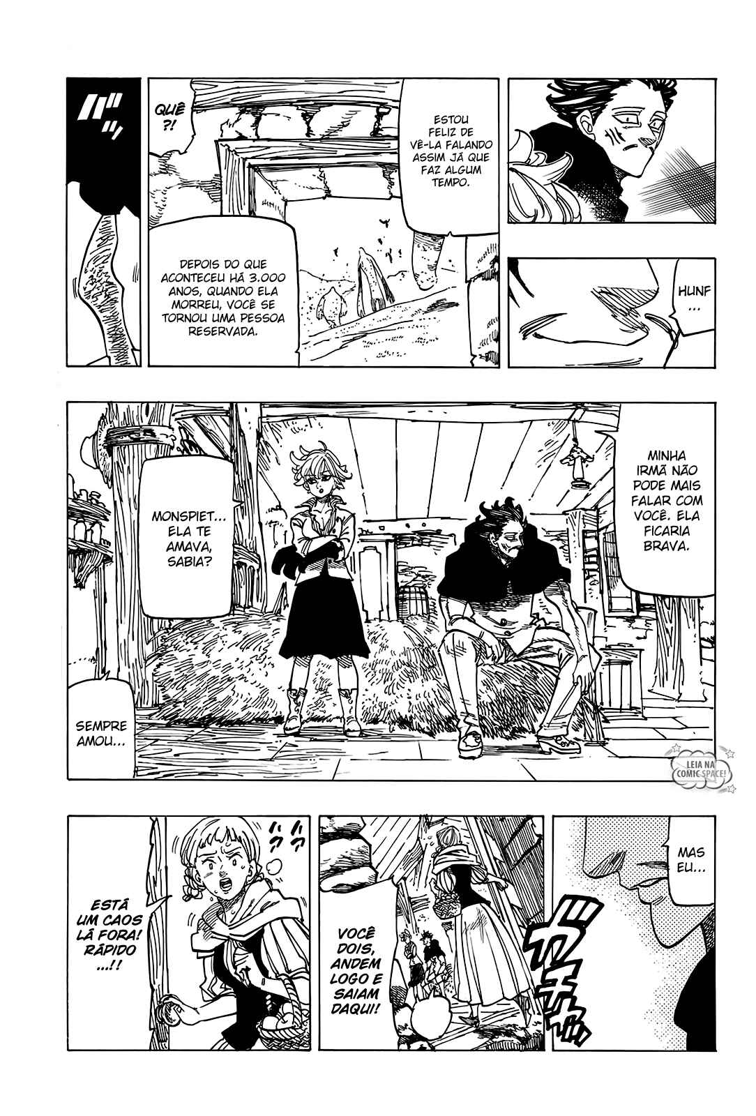Capítulo 0Capítulo 1 - Os Sete Pecados CapitaisCapítulo 2 - A Espada do PaladinoCapítulo 3 - Algo que Eu Devo FazerCapítulo 4 - O Pecado da Floresta AdormecidaCapítulo 5 - Memória na EscuridãoCapítulo 6 - O Paladino GilthunderCapítulo 7 - O Prisioneiro da EscuridãoCapítulo 8 - O Sonho da GarotaCapítulo 9 - Não Pode Ser TocadoCapítulo 10 - A Maldade InvisívelCapítulo 11 - Mesmo se Você MorrerCapítulo 12 - Uma Festa de ConfusõesCapítulo 13 - Determinação DedicadaCapítulo 14 - ExplosãoCapítulo 15 - O Pequeno EncontroCapítulo 16 - Balada do ComeçoCapítulo 17 - Premonição de TempestadeCapítulo 18 - Reunião TocanteCapítulo 19 - Pecado da GanânciaCapítulo 20 - Dois CaminhosCapítulo 21 - Cavaleiro VingadorCapítulo 22 - Perseguidor TerrívelCapítulo 23 - Algum Dia, DefinitivamenteCapítulo 24 - Lendas EncurraladasCapítulo 25 - Quatro Contra Um, Por FavorCapítulo 26 - Partindo com o MortoCapítulo 27 - A Chuva Sem EmoçõesCapítulo 28 - Homem PerigosoCapítulo 29 - Pulso SombrioCapítulo 30 - Venham! O Festival dos CanalhasCapítulo 31 - Festival de Luta de ByzelCapítulo 32 - Grupo de Lutadores PoderososCapítulo 33 - Previsão de Grande CaosCapítulo 34 - Meliodaz Contra BaanCapítulo 35 - Meliodas RoubadoCapítulo 36 - O Momento de PiscarCapítulo 37 - Se Aproximando da Chance de EncontroCapítulo 38 - Necessidade e AcasoCapítulo 39 - Sentimento de MuitosCapítulo 40 - As Finais do Festival de Luta de ByzelCapítulo 41 - O Choque AssustadorCapítulo 42 - Reator DemônioCapítulo 43 - Aposta PerigosaCapítulo 44 - Contagem Regressiva para o DesesperoCapítulo 45 - Carnaval ViolentoCapítulo 46 - Porque Somos IrmãsCapítulo 47 - Discípulo da DestruiçãoCapítulo 48 - Feliz AniquilaçãoCapítulo 49 - Retirada ForçadaCapítulo 50 - Após o FestivalCapítulo 51 - Profundamente no CoraçãoCapítulo 52 - A Verdade do RumorCapítulo 53 - O Gigante Armado Contra Dawn RoarCapítulo 54 - O Homem que Não se MoveCapítulo 55 - Aquele Homem que Não tem EmoçõesCapítulo 56 - O Cavaleiro ProfanoCapítulo 57 - Acontecimentos de Muito Tempo AtrásCapítulo 58 - Decisão ForçadaCapítulo 59 - Um Homem Imprevisível Entra em CenaCapítulo 60 - Se Metendo em ConfusãoCapítulo 61 - Lendas Não CitadasCapítulo 62 - Vilões ImparáveisCapítulo 63 - Arthur PendragonCapítulo 64 - A Estratégia de Infiltração do Reino!!Capítulo 65 - Um Conflito InevitávelCapítulo 66 - Primeiro InfortúnioCapítulo 67 - FendaCapítulo 68 - Diferença Esmagadora de PoderCapítulo 69 - Todo Mundo Tem uma Primeira VezCapítulo 70 - Grande Paladino AtormentadoCapítulo 71 - Aquilo que Vive na EscuridãoCapítulo 72 - O Homem que Estava Muito AtrasadoCapítulo 73 - Mesmo que Eu Tenha que Destruir Minha VidaCapítulo 74 - A Promessa CumpridaCapítulo 75 - O Que Faz um ReiCapítulo 76 - As Convicções das PrincesasCapítulo 77 - Sentimentos por ElaCapítulo 78 - Em Troca da Minha VidaCapítulo 79 - Mais Uma VezCapítulo 80 - Virando a MesaCapítulo 81 - Único Ataque do MeliodasCapítulo 82 - Feitiço da CoragemCapítulo 83 - Porco CarmesimCapítulo 84 - Tudo Está Bem Quando Termina BemCapítulo 85 - O Começo da FestaCapítulo 86 - Ameaça IminenteCapítulo 87 - A Fúria e a GanânciaCapítulo 88 - Esse Mundo é Como um InfernoCapítulo 89 - Desejo SinceroCapítulo 90 - O Que eu Posso Fazer Por VocêCapítulo 91 - Existência DetestávelCapítulo 92 - A Luta Final ComeçaCapítulo 93 - Vermelho e CinzaCapítulo 94 - Caindo em DesesperoCapítulo 95 - Esperança que DesvaneceCapítulo 96 - HawkCapítulo 97 - ElizabethCapítulo 98 - PreceCapítulo 99 - ConclusãoCapítulo 100 - Os HeróisCapítulo 101 - O Poder do AmorCapítulo 102 - Premonição de um AdeusCapítulo 103 - A Nova JornadaCapítulo 104 - O Retorno do Rei das FadasCapítulo 105 - Um NinguémCapítulo 106 - O Olho Demoníaco de BalorCapítulo 107 - À Procura da VerdadeCapítulo 108 - Despertar GentilCapítulo 109 - TerremotoCapítulo 110 - ConfissãoCapítulo 111 - Como Um Homem DiziaCapítulo 112 - Existência e ProvaCapítulo 113 - RevelaçãoCapítulo 114 - Heróis HesitantesCapítulo 115 - De Volta ao PesadeloCapítulo 116 - O Tesouro Sagrado LostvayneCapítulo 117 - Os Dois Reis das FadasCapítulo 118 - Confronto!! A Floresta do Rei das FadasCapítulo 119 - Os Dez Mandamentos Começam a AgirCapítulo 120 - Violência EsmagadoraCapítulo 121 - Previsão ImpossívelCapítulo 122 - O Massacre dos DemôniosCapítulo 123 - A Redenção do Capitão dos PaladinosCapítulo 124 - O Que a Amizade nos TrouxeCapítulo 125 - Acabem com os "Dez Mandamentos"!!Capítulo 126 - Para Onde as Memórias VãoCapítulo 127 - Reunião com o DesesperoCapítulo 128 - Existência ArroganteCapítulo 129 - A Terra Sagrada dos DruidasCapítulo 130 - A Dor que Gentilmente MataCapítulo 131 - A Promessa Com a Minha AmadaCapítulo 132 - Aquilo que nos FaltaCapítulo 133 - Impaciência e AnsiedadeCapítulo 134 - À Você, Que Não é Mais Meu CapitãoCapítulo 135 - Meras Boas VindasCapítulo 136 - Disseminando o MedoCapítulo 137 - Aqui Entre Eu e VocêCapítulo 138 - Batalha Contra as TrevasCapítulo 139 - Conte-me Sobre o Seu PassadoCapítulo 140 - O Ladrão e o GarotoCapítulo 141 - Pai e FilhoCapítulo 142 - Onde o Amor EstáCapítulo 143 - O Grito da Donzela SagradaCapítulo 144 - Aquele Homem da "Ganância"Capítulo 145 - Bela AlmaCapítulo 146 - Adeus, Meu Amado LadrãoCapítulo 147 - Perseguição MortalCapítulo 148 - Galan GameCapítulo 149 - A Magia de GalanCapítulo 150 - Mestre do SolCapítulo 151 - O Palco Espera por NósCapítulo 152 - Atraídos pela Luz da VelaCapítulo 153 - A Confissão AterrorizanteCapítulo 154 - O Diabo SorriCapítulo 155 - Labirinto da Armadilha da MorteCapítulo 156 - Desafio de Exploração do LabirintoCapítulo 157 - A Dança Caótica dos DesafiantesCapítulo 158 - Os Heróis da FoliaCapítulo 159 - Palavras Não São NecessáriasCapítulo 160 - Vão!! SuperemCapítulo 161 - Aqueles da LendaCapítulo 162 -