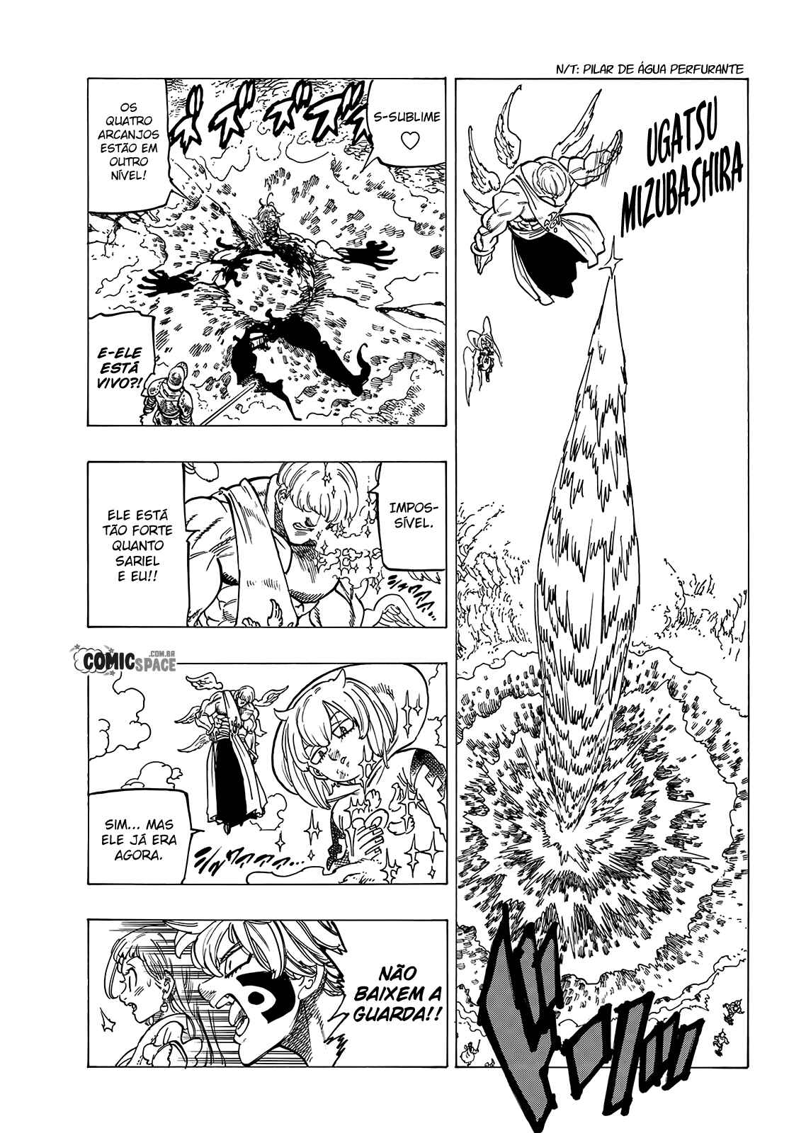 Capítulo 0Capítulo 1 - Os Sete Pecados CapitaisCapítulo 2 - A Espada do PaladinoCapítulo 3 - Algo que Eu Devo FazerCapítulo 4 - O Pecado da Floresta AdormecidaCapítulo 5 - Memória na EscuridãoCapítulo 6 - O Paladino GilthunderCapítulo 7 - O Prisioneiro da EscuridãoCapítulo 8 - O Sonho da GarotaCapítulo 9 - Não Pode Ser TocadoCapítulo 10 - A Maldade InvisívelCapítulo 11 - Mesmo se Você MorrerCapítulo 12 - Uma Festa de ConfusõesCapítulo 13 - Determinação DedicadaCapítulo 14 - ExplosãoCapítulo 15 - O Pequeno EncontroCapítulo 16 - Balada do ComeçoCapítulo 17 - Premonição de TempestadeCapítulo 18 - Reunião TocanteCapítulo 19 - Pecado da GanânciaCapítulo 20 - Dois CaminhosCapítulo 21 - Cavaleiro VingadorCapítulo 22 - Perseguidor TerrívelCapítulo 23 - Algum Dia, DefinitivamenteCapítulo 24 - Lendas EncurraladasCapítulo 25 - Quatro Contra Um, Por FavorCapítulo 26 - Partindo com o MortoCapítulo 27 - A Chuva Sem EmoçõesCapítulo 28 - Homem PerigosoCapítulo 29 - Pulso SombrioCapítulo 30 - Venham! O Festival dos CanalhasCapítulo 31 - Festival de Luta de ByzelCapítulo 32 - Grupo de Lutadores PoderososCapítulo 33 - Previsão de Grande CaosCapítulo 34 - Meliodaz Contra BaanCapítulo 35 - Meliodas RoubadoCapítulo 36 - O Momento de PiscarCapítulo 37 - Se Aproximando da Chance de EncontroCapítulo 38 - Necessidade e AcasoCapítulo 39 - Sentimento de MuitosCapítulo 40 - As Finais do Festival de Luta de ByzelCapítulo 41 - O Choque AssustadorCapítulo 42 - Reator DemônioCapítulo 43 - Aposta PerigosaCapítulo 44 - Contagem Regressiva para o DesesperoCapítulo 45 - Carnaval ViolentoCapítulo 46 - Porque Somos IrmãsCapítulo 47 - Discípulo da DestruiçãoCapítulo 48 - Feliz AniquilaçãoCapítulo 49 - Retirada ForçadaCapítulo 50 - Após o FestivalCapítulo 51 - Profundamente no CoraçãoCapítulo 52 - A Verdade do RumorCapítulo 53 - O Gigante Armado Contra Dawn RoarCapítulo 54 - O Homem que Não se MoveCapítulo 55 - Aquele Homem que Não tem EmoçõesCapítulo 56 - O Cavaleiro ProfanoCapítulo 57 - Acontecimentos de Muito Tempo AtrásCapítulo 58 - Decisão ForçadaCapítulo 59 - Um Homem Imprevisível Entra em CenaCapítulo 60 - Se Metendo em ConfusãoCapítulo 61 - Lendas Não CitadasCapítulo 62 - Vilões ImparáveisCapítulo 63 - Arthur PendragonCapítulo 64 - A Estratégia de Infiltração do Reino!!Capítulo 65 - Um Conflito InevitávelCapítulo 66 - Primeiro InfortúnioCapítulo 67 - FendaCapítulo 68 - Diferença Esmagadora de PoderCapítulo 69 - Todo Mundo Tem uma Primeira VezCapítulo 70 - Grande Paladino AtormentadoCapítulo 71 - Aquilo que Vive na EscuridãoCapítulo 72 - O Homem que Estava Muito AtrasadoCapítulo 73 - Mesmo que Eu Tenha que Destruir Minha VidaCapítulo 74 - A Promessa CumpridaCapítulo 75 - O Que Faz um ReiCapítulo 76 - As Convicções das PrincesasCapítulo 77 - Sentimentos por ElaCapítulo 78 - Em Troca da Minha VidaCapítulo 79 - Mais Uma VezCapítulo 80 - Virando a MesaCapítulo 81 - Único Ataque do MeliodasCapítulo 82 - Feitiço da CoragemCapítulo 83 - Porco CarmesimCapítulo 84 - Tudo Está Bem Quando Termina BemCapítulo 85 - O Começo da FestaCapítulo 86 - Ameaça IminenteCapítulo 87 - A Fúria e a GanânciaCapítulo 88 - Esse Mundo é Como um InfernoCapítulo 89 - Desejo SinceroCapítulo 90 - O Que eu Posso Fazer Por VocêCapítulo 91 - Existência DetestávelCapítulo 92 - A Luta Final ComeçaCapítulo 93 - Vermelho e CinzaCapítulo 94 - Caindo em DesesperoCapítulo 95 - Esperança que DesvaneceCapítulo 96 - HawkCapítulo 97 - ElizabethCapítulo 98 - PreceCapítulo 99 - ConclusãoCapítulo 100 - Os HeróisCapítulo 101 - O Poder do AmorCapítulo 102 - Premonição de um AdeusCapítulo 103 - A Nova JornadaCapítulo 104 - O Retorno do Rei das FadasCapítulo 105 - Um NinguémCapítulo 106 - O Olho Demoníaco de BalorCapítulo 107 - À Procura da VerdadeCapítulo 108 - Despertar GentilCapítulo 109 - TerremotoCapítulo 110 - ConfissãoCapítulo 111 - Como Um Homem DiziaCapítulo 112 - Existência e ProvaCapítulo 113 - RevelaçãoCapítulo 114 - Heróis HesitantesCapítulo 115 - De Volta ao PesadeloCapítulo 116 - O Tesouro Sagrado LostvayneCapítulo 117 - Os Dois Reis das FadasCapítulo 118 - Confronto!! A Floresta do Rei das FadasCapítulo 119 - Os Dez Mandamentos Começam a AgirCapítulo 120 - Violência EsmagadoraCapítulo 121 - Previsão ImpossívelCapítulo 122 - O Massacre dos DemôniosCapítulo 123 - A Redenção do Capitão dos PaladinosCapítulo 124 - O Que a Amizade nos TrouxeCapítulo 125 - Acabem com os "Dez Mandamentos"!!Capítulo 126 - Para Onde as Memórias VãoCapítulo 127 - Reunião com o DesesperoCapítulo 128 - Existência ArroganteCapítulo 129 - A Terra Sagrada dos DruidasCapítulo 130 - A Dor que Gentilmente MataCapítulo 131 - A Promessa Com a Minha AmadaCapítulo 132 - Aquilo que nos FaltaCapítulo 133 - Impaciência e AnsiedadeCapítulo 134 - À Você, Que Não é Mais Meu CapitãoCapítulo 135 - Meras Boas VindasCapítulo 136 - Disseminando o MedoCapítulo 137 - Aqui Entre Eu e VocêCapítulo 138 - Batalha Contra as TrevasCapítulo 139 - Conte-me Sobre o Seu PassadoCapítulo 140 - O Ladrão e o GarotoCapítulo 141 - Pai e FilhoCapítulo 142 - Onde o Amor EstáCapítulo 143 - O Grito da Donzela SagradaCapítulo 144 - Aquele Homem da "Ganância"Capítulo 145 - Bela AlmaCapítulo 146 - Adeus, Meu Amado LadrãoCapítulo 147 - Perseguição MortalCapítulo 148 - Galan GameCapítulo 149 - A Magia de GalanCapítulo 150 - Mestre do SolCapítulo 151 - O Palco Espera por NósCapítulo 152 - Atraídos pela Luz da VelaCapítulo 153 - A Confissão AterrorizanteCapítulo 154 - O Diabo SorriCapítulo 155 - Labirinto da Armadilha da MorteCapítulo 156 - Desafio de Exploração do LabirintoCapítulo 157 - A Dança Caótica dos DesafiantesCapítulo 158 - Os Heróis da FoliaCapítulo 159 - Palavras Não São NecessáriasCapítulo 160 - Vão!! SuperemCapítulo 161 - Aqueles da LendaCapítulo 162 -