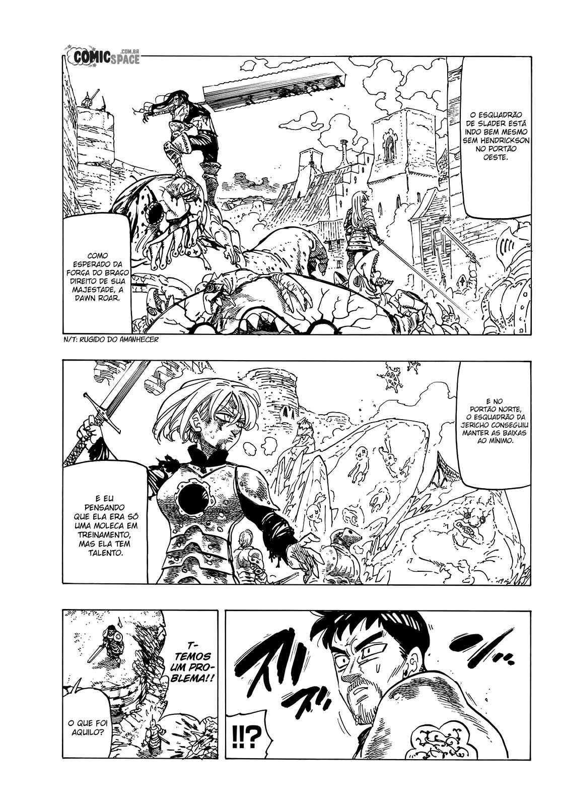 Capítulo 0Capítulo 1 - Os Sete Pecados CapitaisCapítulo 2 - A Espada do PaladinoCapítulo 3 - Algo que Eu Devo FazerCapítulo 4 - O Pecado da Floresta AdormecidaCapítulo 5 - Memória na EscuridãoCapítulo 6 - O Paladino GilthunderCapítulo 7 - O Prisioneiro da EscuridãoCapítulo 8 - O Sonho da GarotaCapítulo 9 - Não Pode Ser TocadoCapítulo 10 - A Maldade InvisívelCapítulo 11 - Mesmo se Você MorrerCapítulo 12 - Uma Festa de ConfusõesCapítulo 13 - Determinação DedicadaCapítulo 14 - ExplosãoCapítulo 15 - O Pequeno EncontroCapítulo 16 - Balada do ComeçoCapítulo 17 - Premonição de TempestadeCapítulo 18 - Reunião TocanteCapítulo 19 - Pecado da GanânciaCapítulo 20 - Dois CaminhosCapítulo 21 - Cavaleiro VingadorCapítulo 22 - Perseguidor TerrívelCapítulo 23 - Algum Dia, DefinitivamenteCapítulo 24 - Lendas EncurraladasCapítulo 25 - Quatro Contra Um, Por FavorCapítulo 26 - Partindo com o MortoCapítulo 27 - A Chuva Sem EmoçõesCapítulo 28 - Homem PerigosoCapítulo 29 - Pulso SombrioCapítulo 30 - Venham! O Festival dos CanalhasCapítulo 31 - Festival de Luta de ByzelCapítulo 32 - Grupo de Lutadores PoderososCapítulo 33 - Previsão de Grande CaosCapítulo 34 - Meliodaz Contra BaanCapítulo 35 - Meliodas RoubadoCapítulo 36 - O Momento de PiscarCapítulo 37 - Se Aproximando da Chance de EncontroCapítulo 38 - Necessidade e AcasoCapítulo 39 - Sentimento de MuitosCapítulo 40 - As Finais do Festival de Luta de ByzelCapítulo 41 - O Choque AssustadorCapítulo 42 - Reator DemônioCapítulo 43 - Aposta PerigosaCapítulo 44 - Contagem Regressiva para o DesesperoCapítulo 45 - Carnaval ViolentoCapítulo 46 - Porque Somos IrmãsCapítulo 47 - Discípulo da DestruiçãoCapítulo 48 - Feliz AniquilaçãoCapítulo 49 - Retirada ForçadaCapítulo 50 - Após o FestivalCapítulo 51 - Profundamente no CoraçãoCapítulo 52 - A Verdade do RumorCapítulo 53 - O Gigante Armado Contra Dawn RoarCapítulo 54 - O Homem que Não se MoveCapítulo 55 - Aquele Homem que Não tem EmoçõesCapítulo 56 - O Cavaleiro ProfanoCapítulo 57 - Acontecimentos de Muito Tempo AtrásCapítulo 58 - Decisão ForçadaCapítulo 59 - Um Homem Imprevisível Entra em CenaCapítulo 60 - Se Metendo em ConfusãoCapítulo 61 - Lendas Não CitadasCapítulo 62 - Vilões ImparáveisCapítulo 63 - Arthur PendragonCapítulo 64 - A Estratégia de Infiltração do Reino!!Capítulo 65 - Um Conflito InevitávelCapítulo 66 - Primeiro InfortúnioCapítulo 67 - FendaCapítulo 68 - Diferença Esmagadora de PoderCapítulo 69 - Todo Mundo Tem uma Primeira VezCapítulo 70 - Grande Paladino AtormentadoCapítulo 71 - Aquilo que Vive na EscuridãoCapítulo 72 - O Homem que Estava Muito AtrasadoCapítulo 73 - Mesmo que Eu Tenha que Destruir Minha VidaCapítulo 74 - A Promessa CumpridaCapítulo 75 - O Que Faz um ReiCapítulo 76 - As Convicções das PrincesasCapítulo 77 - Sentimentos por ElaCapítulo 78 - Em Troca da Minha VidaCapítulo 79 - Mais Uma VezCapítulo 80 - Virando a MesaCapítulo 81 - Único Ataque do MeliodasCapítulo 82 - Feitiço da CoragemCapítulo 83 - Porco CarmesimCapítulo 84 - Tudo Está Bem Quando Termina BemCapítulo 85 - O Começo da FestaCapítulo 86 - Ameaça IminenteCapítulo 87 - A Fúria e a GanânciaCapítulo 88 - Esse Mundo é Como um InfernoCapítulo 89 - Desejo SinceroCapítulo 90 - O Que eu Posso Fazer Por VocêCapítulo 91 - Existência DetestávelCapítulo 92 - A Luta Final ComeçaCapítulo 93 - Vermelho e CinzaCapítulo 94 - Caindo em DesesperoCapítulo 95 - Esperança que DesvaneceCapítulo 96 - HawkCapítulo 97 - ElizabethCapítulo 98 - PreceCapítulo 99 - ConclusãoCapítulo 100 - Os HeróisCapítulo 101 - O Poder do AmorCapítulo 102 - Premonição de um AdeusCapítulo 103 - A Nova JornadaCapítulo 104 - O Retorno do Rei das FadasCapítulo 105 - Um NinguémCapítulo 106 - O Olho Demoníaco de BalorCapítulo 107 - À Procura da VerdadeCapítulo 108 - Despertar GentilCapítulo 109 - TerremotoCapítulo 110 - ConfissãoCapítulo 111 - Como Um Homem DiziaCapítulo 112 - Existência e ProvaCapítulo 113 - RevelaçãoCapítulo 114 - Heróis HesitantesCapítulo 115 - De Volta ao PesadeloCapítulo 116 - O Tesouro Sagrado LostvayneCapítulo 117 - Os Dois Reis das FadasCapítulo 118 - Confronto!! A Floresta do Rei das FadasCapítulo 119 - Os Dez Mandamentos Começam a AgirCapítulo 120 - Violência EsmagadoraCapítulo 121 - Previsão ImpossívelCapítulo 122 - O Massacre dos DemôniosCapítulo 123 - A Redenção do Capitão dos PaladinosCapítulo 124 - O Que a Amizade nos TrouxeCapítulo 125 - Acabem com os "Dez Mandamentos"!!Capítulo 126 - Para Onde as Memórias VãoCapítulo 127 - Reunião com o DesesperoCapítulo 128 - Existência ArroganteCapítulo 129 - A Terra Sagrada dos DruidasCapítulo 130 - A Dor que Gentilmente MataCapítulo 131 - A Promessa Com a Minha AmadaCapítulo 132 - Aquilo que nos FaltaCapítulo 133 - Impaciência e AnsiedadeCapítulo 134 - À Você, Que Não é Mais Meu CapitãoCapítulo 135 - Meras Boas VindasCapítulo 136 - Disseminando o MedoCapítulo 137 - Aqui Entre Eu e VocêCapítulo 138 - Batalha Contra as TrevasCapítulo 139 - Conte-me Sobre o Seu PassadoCapítulo 140 - O Ladrão e o GarotoCapítulo 141 - Pai e FilhoCapítulo 142 - Onde o Amor EstáCapítulo 143 - O Grito da Donzela SagradaCapítulo 144 - Aquele Homem da "Ganância"Capítulo 145 - Bela AlmaCapítulo 146 - Adeus, Meu Amado LadrãoCapítulo 147 - Perseguição MortalCapítulo 148 - Galan GameCapítulo 149 - A Magia de GalanCapítulo 150 - Mestre do SolCapítulo 151 - O Palco Espera por NósCapítulo 152 - Atraídos pela Luz da VelaCapítulo 153 - A Confissão AterrorizanteCapítulo 154 - O Diabo SorriCapítulo 155 - Labirinto da Armadilha da MorteCapítulo 156 - Desafio de Exploração do LabirintoCapítulo 157 - A Dança Caótica dos DesafiantesCapítulo 158 - Os Heróis da FoliaCapítulo 159 - Palavras Não São NecessáriasCapítulo 160 - Vão!! SuperemCapítulo 161 - Aqueles da LendaCapítulo 162 -