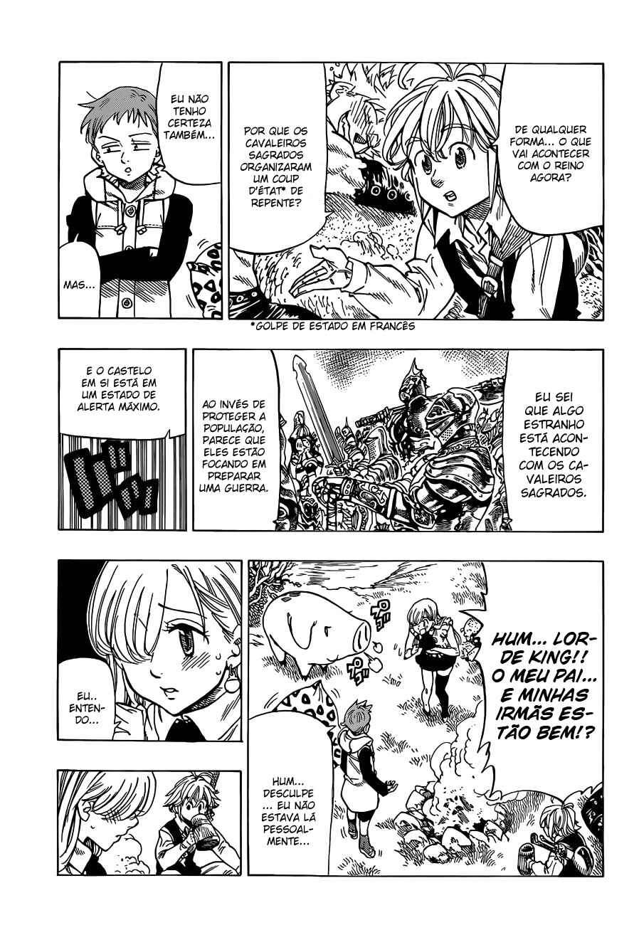 Capítulo 0Capítulo 1 - Os Sete Pecados CapitaisCapítulo 2 - A Espada do PaladinoCapítulo 3 - Algo que Eu Devo FazerCapítulo 4 - O Pecado da Floresta AdormecidaCapítulo 5 - Memória na EscuridãoCapítulo 6 - O Paladino GilthunderCapítulo 7 - O Prisioneiro da EscuridãoCapítulo 8 - O Sonho da GarotaCapítulo 9 - Não Pode Ser TocadoCapítulo 10 - A Maldade InvisívelCapítulo 11 - Mesmo se Você MorrerCapítulo 12 - Uma Festa de ConfusõesCapítulo 13 - Determinação DedicadaCapítulo 14 - ExplosãoCapítulo 15 - O Pequeno EncontroCapítulo 16 - Balada do ComeçoCapítulo 17 - Premonição de TempestadeCapítulo 18 - Reunião TocanteCapítulo 19 - Pecado da GanânciaCapítulo 20 - Dois CaminhosCapítulo 21 - Cavaleiro VingadorCapítulo 22 - Perseguidor TerrívelCapítulo 23 - Algum Dia, DefinitivamenteCapítulo 24 - Lendas EncurraladasCapítulo 25 - Quatro Contra Um, Por FavorCapítulo 26 - Partindo com o MortoCapítulo 27 - A Chuva Sem EmoçõesCapítulo 28 - Homem PerigosoCapítulo 29 - Pulso SombrioCapítulo 30 - Venham! O Festival dos CanalhasCapítulo 31 - Festival de Luta de ByzelCapítulo 32 - Grupo de Lutadores PoderososCapítulo 33 - Previsão de Grande CaosCapítulo 34 - Meliodaz Contra BaanCapítulo 35 - Meliodas RoubadoCapítulo 36 - O Momento de PiscarCapítulo 37 - Se Aproximando da Chance de EncontroCapítulo 38 - Necessidade e AcasoCapítulo 39 - Sentimento de MuitosCapítulo 40 - As Finais do Festival de Luta de ByzelCapítulo 41 - O Choque AssustadorCapítulo 42 - Reator DemônioCapítulo 43 - Aposta PerigosaCapítulo 44 - Contagem Regressiva para o DesesperoCapítulo 45 - Carnaval ViolentoCapítulo 46 - Porque Somos IrmãsCapítulo 47 - Discípulo da DestruiçãoCapítulo 48 - Feliz AniquilaçãoCapítulo 49 - Retirada ForçadaCapítulo 50 - Após o FestivalCapítulo 51 - Profundamente no CoraçãoCapítulo 52 - A Verdade do RumorCapítulo 53 - O Gigante Armado Contra Dawn RoarCapítulo 54 - O Homem que Não se MoveCapítulo 55 - Aquele Homem que Não tem EmoçõesCapítulo 56 - O Cavaleiro ProfanoCapítulo 57 - Acontecimentos de Muito Tempo AtrásCapítulo 58 - Decisão ForçadaCapítulo 59 - Um Homem Imprevisível Entra em CenaCapítulo 60 - Se Metendo em ConfusãoCapítulo 61 - Lendas Não CitadasCapítulo 62 - Vilões ImparáveisCapítulo 63 - Arthur PendragonCapítulo 64 - A Estratégia de Infiltração do Reino!!Capítulo 65 - Um Conflito InevitávelCapítulo 66 - Primeiro InfortúnioCapítulo 67 - FendaCapítulo 68 - Diferença Esmagadora de PoderCapítulo 69 - Todo Mundo Tem uma Primeira VezCapítulo 70 - Grande Paladino AtormentadoCapítulo 71 - Aquilo que Vive na EscuridãoCapítulo 72 - O Homem que Estava Muito AtrasadoCapítulo 73 - Mesmo que Eu Tenha que Destruir Minha VidaCapítulo 74 - A Promessa CumpridaCapítulo 75 - O Que Faz um ReiCapítulo 76 - As Convicções das PrincesasCapítulo 77 - Sentimentos por ElaCapítulo 78 - Em Troca da Minha VidaCapítulo 79 - Mais Uma VezCapítulo 80 - Virando a MesaCapítulo 81 - Único Ataque do MeliodasCapítulo 82 - Feitiço da CoragemCapítulo 83 - Porco CarmesimCapítulo 84 - Tudo Está Bem Quando Termina BemCapítulo 85 - O Começo da FestaCapítulo 86 - Ameaça IminenteCapítulo 87 - A Fúria e a GanânciaCapítulo 88 - Esse Mundo é Como um InfernoCapítulo 89 - Desejo SinceroCapítulo 90 - O Que eu Posso Fazer Por VocêCapítulo 91 - Existência DetestávelCapítulo 92 - A Luta Final ComeçaCapítulo 93 - Vermelho e CinzaCapítulo 94 - Caindo em DesesperoCapítulo 95 - Esperança que DesvaneceCapítulo 96 - HawkCapítulo 97 - ElizabethCapítulo 98 - PreceCapítulo 99 - ConclusãoCapítulo 100 - Os HeróisCapítulo 101 - O Poder do AmorCapítulo 102 - Premonição de um AdeusCapítulo 103 - A Nova JornadaCapítulo 104 - O Retorno do Rei das FadasCapítulo 105 - Um NinguémCapítulo 106 - O Olho Demoníaco de BalorCapítulo 107 - À Procura da VerdadeCapítulo 108 - Despertar GentilCapítulo 109 - TerremotoCapítulo 110 - ConfissãoCapítulo 111 - Como Um Homem DiziaCapítulo 112 - Existência e ProvaCapítulo 113 - RevelaçãoCapítulo 114 - Heróis HesitantesCapítulo 115 - De Volta ao PesadeloCapítulo 116 - O Tesouro Sagrado LostvayneCapítulo 117 - Os Dois Reis das FadasCapítulo 118 - Confronto!! A Floresta do Rei das FadasCapítulo 119 - Os Dez Mandamentos Começam a AgirCapítulo 120 - Violência EsmagadoraCapítulo 121 - Previsão ImpossívelCapítulo 122 - O Massacre dos DemôniosCapítulo 123 - A Redenção do Capitão dos PaladinosCapítulo 124 - O Que a Amizade nos TrouxeCapítulo 125 - Acabem com os "Dez Mandamentos"!!Capítulo 126 - Para Onde as Memórias VãoCapítulo 127 - Reunião com o DesesperoCapítulo 128 - Existência ArroganteCapítulo 129 - A Terra Sagrada dos DruidasCapítulo 130 - A Dor que Gentilmente MataCapítulo 131 - A Promessa Com a Minha AmadaCapítulo 132 - Aquilo que nos FaltaCapítulo 133 - Impaciência e AnsiedadeCapítulo 134 - À Você, Que Não é Mais Meu CapitãoCapítulo 135 - Meras Boas VindasCapítulo 136 - Disseminando o MedoCapítulo 137 - Aqui Entre Eu e VocêCapítulo 138 - Batalha Contra as TrevasCapítulo 139 - Conte-me Sobre o Seu PassadoCapítulo 140 - O Ladrão e o GarotoCapítulo 141 - Pai e FilhoCapítulo 142 - Onde o Amor EstáCapítulo 143 - O Grito da Donzela SagradaCapítulo 144 - Aquele Homem da "Ganância"Capítulo 145 - Bela AlmaCapítulo 146 - Adeus, Meu Amado LadrãoCapítulo 147 - Perseguição MortalCapítulo 148 - Galan GameCapítulo 149 - A Magia de GalanCapítulo 150 - Mestre do SolCapítulo 151 - O Palco Espera por NósCapítulo 152 - Atraídos pela Luz da VelaCapítulo 153 - A Confissão AterrorizanteCapítulo 154 - O Diabo SorriCapítulo 155 - Labirinto da Armadilha da MorteCapítulo 156 - Desafio de Exploração do LabirintoCapítulo 157 - A Dança Caótica dos DesafiantesCapítulo 158 - Os Heróis da FoliaCapítulo 159 - Palavras Não São NecessáriasCapítulo 160 - Vão!! SuperemCapítulo 161 - Aqueles da LendaCapítulo 162 -