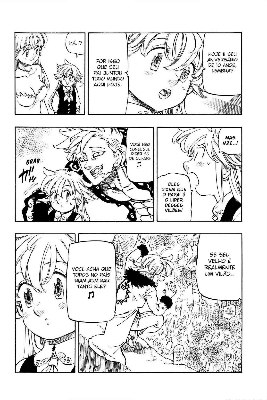 Capítulo 0Capítulo 1 - Os Sete Pecados CapitaisCapítulo 2 - A Espada do PaladinoCapítulo 3 - Algo que Eu Devo FazerCapítulo 4 - O Pecado da Floresta AdormecidaCapítulo 5 - Memória na EscuridãoCapítulo 6 - O Paladino GilthunderCapítulo 7 - O Prisioneiro da EscuridãoCapítulo 8 - O Sonho da GarotaCapítulo 9 - Não Pode Ser TocadoCapítulo 10 - A Maldade InvisívelCapítulo 11 - Mesmo se Você MorrerCapítulo 12 - Uma Festa de ConfusõesCapítulo 13 - Determinação DedicadaCapítulo 14 - ExplosãoCapítulo 15 - O Pequeno EncontroCapítulo 16 - Balada do ComeçoCapítulo 17 - Premonição de TempestadeCapítulo 18 - Reunião TocanteCapítulo 19 - Pecado da GanânciaCapítulo 20 - Dois CaminhosCapítulo 21 - Cavaleiro VingadorCapítulo 22 - Perseguidor TerrívelCapítulo 23 - Algum Dia, DefinitivamenteCapítulo 24 - Lendas EncurraladasCapítulo 25 - Quatro Contra Um, Por FavorCapítulo 26 - Partindo com o MortoCapítulo 27 - A Chuva Sem EmoçõesCapítulo 28 - Homem PerigosoCapítulo 29 - Pulso SombrioCapítulo 30 - Venham! O Festival dos CanalhasCapítulo 31 - Festival de Luta de ByzelCapítulo 32 - Grupo de Lutadores PoderososCapítulo 33 - Previsão de Grande CaosCapítulo 34 - Meliodaz Contra BaanCapítulo 35 - Meliodas RoubadoCapítulo 36 - O Momento de PiscarCapítulo 37 - Se Aproximando da Chance de EncontroCapítulo 38 - Necessidade e AcasoCapítulo 39 - Sentimento de MuitosCapítulo 40 - As Finais do Festival de Luta de ByzelCapítulo 41 - O Choque AssustadorCapítulo 42 - Reator DemônioCapítulo 43 - Aposta PerigosaCapítulo 44 - Contagem Regressiva para o DesesperoCapítulo 45 - Carnaval ViolentoCapítulo 46 - Porque Somos IrmãsCapítulo 47 - Discípulo da DestruiçãoCapítulo 48 - Feliz AniquilaçãoCapítulo 49 - Retirada ForçadaCapítulo 50 - Após o FestivalCapítulo 51 - Profundamente no CoraçãoCapítulo 52 - A Verdade do RumorCapítulo 53 - O Gigante Armado Contra Dawn RoarCapítulo 54 - O Homem que Não se MoveCapítulo 55 - Aquele Homem que Não tem EmoçõesCapítulo 56 - O Cavaleiro ProfanoCapítulo 57 - Acontecimentos de Muito Tempo AtrásCapítulo 58 - Decisão ForçadaCapítulo 59 - Um Homem Imprevisível Entra em CenaCapítulo 60 - Se Metendo em ConfusãoCapítulo 61 - Lendas Não CitadasCapítulo 62 - Vilões ImparáveisCapítulo 63 - Arthur PendragonCapítulo 64 - A Estratégia de Infiltração do Reino!!Capítulo 65 - Um Conflito InevitávelCapítulo 66 - Primeiro InfortúnioCapítulo 67 - FendaCapítulo 68 - Diferença Esmagadora de PoderCapítulo 69 - Todo Mundo Tem uma Primeira VezCapítulo 70 - Grande Paladino AtormentadoCapítulo 71 - Aquilo que Vive na EscuridãoCapítulo 72 - O Homem que Estava Muito AtrasadoCapítulo 73 - Mesmo que Eu Tenha que Destruir Minha VidaCapítulo 74 - A Promessa CumpridaCapítulo 75 - O Que Faz um ReiCapítulo 76 - As Convicções das PrincesasCapítulo 77 - Sentimentos por ElaCapítulo 78 - Em Troca da Minha VidaCapítulo 79 - Mais Uma VezCapítulo 80 - Virando a MesaCapítulo 81 - Único Ataque do MeliodasCapítulo 82 - Feitiço da CoragemCapítulo 83 - Porco CarmesimCapítulo 84 - Tudo Está Bem Quando Termina BemCapítulo 85 - O Começo da FestaCapítulo 86 - Ameaça IminenteCapítulo 87 - A Fúria e a GanânciaCapítulo 88 - Esse Mundo é Como um InfernoCapítulo 89 - Desejo SinceroCapítulo 90 - O Que eu Posso Fazer Por VocêCapítulo 91 - Existência DetestávelCapítulo 92 - A Luta Final ComeçaCapítulo 93 - Vermelho e CinzaCapítulo 94 - Caindo em DesesperoCapítulo 95 - Esperança que DesvaneceCapítulo 96 - HawkCapítulo 97 - ElizabethCapítulo 98 - PreceCapítulo 99 - ConclusãoCapítulo 100 - Os HeróisCapítulo 101 - O Poder do AmorCapítulo 102 - Premonição de um AdeusCapítulo 103 - A Nova JornadaCapítulo 104 - O Retorno do Rei das FadasCapítulo 105 - Um NinguémCapítulo 106 - O Olho Demoníaco de BalorCapítulo 107 - À Procura da VerdadeCapítulo 108 - Despertar GentilCapítulo 109 - TerremotoCapítulo 110 - ConfissãoCapítulo 111 - Como Um Homem DiziaCapítulo 112 - Existência e ProvaCapítulo 113 - RevelaçãoCapítulo 114 - Heróis HesitantesCapítulo 115 - De Volta ao PesadeloCapítulo 116 - O Tesouro Sagrado LostvayneCapítulo 117 - Os Dois Reis das FadasCapítulo 118 - Confronto!! A Floresta do Rei das FadasCapítulo 119 - Os Dez Mandamentos Começam a AgirCapítulo 120 - Violência EsmagadoraCapítulo 121 - Previsão ImpossívelCapítulo 122 - O Massacre dos DemôniosCapítulo 123 - A Redenção do Capitão dos PaladinosCapítulo 124 - O Que a Amizade nos TrouxeCapítulo 125 - Acabem com os "Dez Mandamentos"!!Capítulo 126 - Para Onde as Memórias VãoCapítulo 127 - Reunião com o DesesperoCapítulo 128 - Existência ArroganteCapítulo 129 - A Terra Sagrada dos DruidasCapítulo 130 - A Dor que Gentilmente MataCapítulo 131 - A Promessa Com a Minha AmadaCapítulo 132 - Aquilo que nos FaltaCapítulo 133 - Impaciência e AnsiedadeCapítulo 134 - À Você, Que Não é Mais Meu CapitãoCapítulo 135 - Meras Boas VindasCapítulo 136 - Disseminando o MedoCapítulo 137 - Aqui Entre Eu e VocêCapítulo 138 - Batalha Contra as TrevasCapítulo 139 - Conte-me Sobre o Seu PassadoCapítulo 140 - O Ladrão e o GarotoCapítulo 141 - Pai e FilhoCapítulo 142 - Onde o Amor EstáCapítulo 143 - O Grito da Donzela SagradaCapítulo 144 - Aquele Homem da "Ganância"Capítulo 145 - Bela AlmaCapítulo 146 - Adeus, Meu Amado LadrãoCapítulo 147 - Perseguição MortalCapítulo 148 - Galan GameCapítulo 149 - A Magia de GalanCapítulo 150 - Mestre do SolCapítulo 151 - O Palco Espera por NósCapítulo 152 - Atraídos pela Luz da VelaCapítulo 153 - A Confissão AterrorizanteCapítulo 154 - O Diabo SorriCapítulo 155 - Labirinto da Armadilha da MorteCapítulo 156 - Desafio de Exploração do LabirintoCapítulo 157 - A Dança Caótica dos DesafiantesCapítulo 158 - Os Heróis da FoliaCapítulo 159 - Palavras Não São NecessáriasCapítulo 160 - Vão!! SuperemCapítulo 161 - Aqueles da LendaCapítulo 162 -