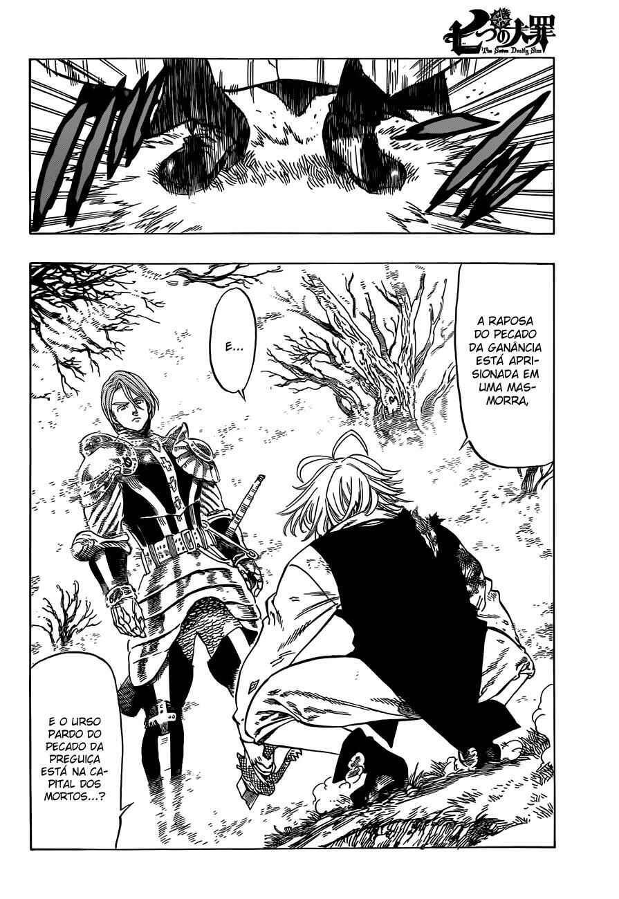 Capítulo 0Capítulo 1 - Os Sete Pecados CapitaisCapítulo 2 - A Espada do PaladinoCapítulo 3 - Algo que Eu Devo FazerCapítulo 4 - O Pecado da Floresta AdormecidaCapítulo 5 - Memória na EscuridãoCapítulo 6 - O Paladino GilthunderCapítulo 7 - O Prisioneiro da EscuridãoCapítulo 8 - O Sonho da GarotaCapítulo 9 - Não Pode Ser TocadoCapítulo 10 - A Maldade InvisívelCapítulo 11 - Mesmo se Você MorrerCapítulo 12 - Uma Festa de ConfusõesCapítulo 13 - Determinação DedicadaCapítulo 14 - ExplosãoCapítulo 15 - O Pequeno EncontroCapítulo 16 - Balada do ComeçoCapítulo 17 - Premonição de TempestadeCapítulo 18 - Reunião TocanteCapítulo 19 - Pecado da GanânciaCapítulo 20 - Dois CaminhosCapítulo 21 - Cavaleiro VingadorCapítulo 22 - Perseguidor TerrívelCapítulo 23 - Algum Dia, DefinitivamenteCapítulo 24 - Lendas EncurraladasCapítulo 25 - Quatro Contra Um, Por FavorCapítulo 26 - Partindo com o MortoCapítulo 27 - A Chuva Sem EmoçõesCapítulo 28 - Homem PerigosoCapítulo 29 - Pulso SombrioCapítulo 30 - Venham! O Festival dos CanalhasCapítulo 31 - Festival de Luta de ByzelCapítulo 32 - Grupo de Lutadores PoderososCapítulo 33 - Previsão de Grande CaosCapítulo 34 - Meliodaz Contra BaanCapítulo 35 - Meliodas RoubadoCapítulo 36 - O Momento de PiscarCapítulo 37 - Se Aproximando da Chance de EncontroCapítulo 38 - Necessidade e AcasoCapítulo 39 - Sentimento de MuitosCapítulo 40 - As Finais do Festival de Luta de ByzelCapítulo 41 - O Choque AssustadorCapítulo 42 - Reator DemônioCapítulo 43 - Aposta PerigosaCapítulo 44 - Contagem Regressiva para o DesesperoCapítulo 45 - Carnaval ViolentoCapítulo 46 - Porque Somos IrmãsCapítulo 47 - Discípulo da DestruiçãoCapítulo 48 - Feliz AniquilaçãoCapítulo 49 - Retirada ForçadaCapítulo 50 - Após o FestivalCapítulo 51 - Profundamente no CoraçãoCapítulo 52 - A Verdade do RumorCapítulo 53 - O Gigante Armado Contra Dawn RoarCapítulo 54 - O Homem que Não se MoveCapítulo 55 - Aquele Homem que Não tem EmoçõesCapítulo 56 - O Cavaleiro ProfanoCapítulo 57 - Acontecimentos de Muito Tempo AtrásCapítulo 58 - Decisão ForçadaCapítulo 59 - Um Homem Imprevisível Entra em CenaCapítulo 60 - Se Metendo em ConfusãoCapítulo 61 - Lendas Não CitadasCapítulo 62 - Vilões ImparáveisCapítulo 63 - Arthur PendragonCapítulo 64 - A Estratégia de Infiltração do Reino!!Capítulo 65 - Um Conflito InevitávelCapítulo 66 - Primeiro InfortúnioCapítulo 67 - FendaCapítulo 68 - Diferença Esmagadora de PoderCapítulo 69 - Todo Mundo Tem uma Primeira VezCapítulo 70 - Grande Paladino AtormentadoCapítulo 71 - Aquilo que Vive na EscuridãoCapítulo 72 - O Homem que Estava Muito AtrasadoCapítulo 73 - Mesmo que Eu Tenha que Destruir Minha VidaCapítulo 74 - A Promessa CumpridaCapítulo 75 - O Que Faz um ReiCapítulo 76 - As Convicções das PrincesasCapítulo 77 - Sentimentos por ElaCapítulo 78 - Em Troca da Minha VidaCapítulo 79 - Mais Uma VezCapítulo 80 - Virando a MesaCapítulo 81 - Único Ataque do MeliodasCapítulo 82 - Feitiço da CoragemCapítulo 83 - Porco CarmesimCapítulo 84 - Tudo Está Bem Quando Termina BemCapítulo 85 - O Começo da FestaCapítulo 86 - Ameaça IminenteCapítulo 87 - A Fúria e a GanânciaCapítulo 88 - Esse Mundo é Como um InfernoCapítulo 89 - Desejo SinceroCapítulo 90 - O Que eu Posso Fazer Por VocêCapítulo 91 - Existência DetestávelCapítulo 92 - A Luta Final ComeçaCapítulo 93 - Vermelho e CinzaCapítulo 94 - Caindo em DesesperoCapítulo 95 - Esperança que DesvaneceCapítulo 96 - HawkCapítulo 97 - ElizabethCapítulo 98 - PreceCapítulo 99 - ConclusãoCapítulo 100 - Os HeróisCapítulo 101 - O Poder do AmorCapítulo 102 - Premonição de um AdeusCapítulo 103 - A Nova JornadaCapítulo 104 - O Retorno do Rei das FadasCapítulo 105 - Um NinguémCapítulo 106 - O Olho Demoníaco de BalorCapítulo 107 - À Procura da VerdadeCapítulo 108 - Despertar GentilCapítulo 109 - TerremotoCapítulo 110 - ConfissãoCapítulo 111 - Como Um Homem DiziaCapítulo 112 - Existência e ProvaCapítulo 113 - RevelaçãoCapítulo 114 - Heróis HesitantesCapítulo 115 - De Volta ao PesadeloCapítulo 116 - O Tesouro Sagrado LostvayneCapítulo 117 - Os Dois Reis das FadasCapítulo 118 - Confronto!! A Floresta do Rei das FadasCapítulo 119 - Os Dez Mandamentos Começam a AgirCapítulo 120 - Violência EsmagadoraCapítulo 121 - Previsão ImpossívelCapítulo 122 - O Massacre dos DemôniosCapítulo 123 - A Redenção do Capitão dos PaladinosCapítulo 124 - O Que a Amizade nos TrouxeCapítulo 125 - Acabem com os "Dez Mandamentos"!!Capítulo 126 - Para Onde as Memórias VãoCapítulo 127 - Reunião com o DesesperoCapítulo 128 - Existência ArroganteCapítulo 129 - A Terra Sagrada dos DruidasCapítulo 130 - A Dor que Gentilmente MataCapítulo 131 - A Promessa Com a Minha AmadaCapítulo 132 - Aquilo que nos FaltaCapítulo 133 - Impaciência e AnsiedadeCapítulo 134 - À Você, Que Não é Mais Meu CapitãoCapítulo 135 - Meras Boas VindasCapítulo 136 - Disseminando o MedoCapítulo 137 - Aqui Entre Eu e VocêCapítulo 138 - Batalha Contra as TrevasCapítulo 139 - Conte-me Sobre o Seu PassadoCapítulo 140 - O Ladrão e o GarotoCapítulo 141 - Pai e FilhoCapítulo 142 - Onde o Amor EstáCapítulo 143 - O Grito da Donzela SagradaCapítulo 144 - Aquele Homem da "Ganância"Capítulo 145 - Bela AlmaCapítulo 146 - Adeus, Meu Amado LadrãoCapítulo 147 - Perseguição MortalCapítulo 148 - Galan GameCapítulo 149 - A Magia de GalanCapítulo 150 - Mestre do SolCapítulo 151 - O Palco Espera por NósCapítulo 152 - Atraídos pela Luz da VelaCapítulo 153 - A Confissão AterrorizanteCapítulo 154 - O Diabo SorriCapítulo 155 - Labirinto da Armadilha da MorteCapítulo 156 - Desafio de Exploração do LabirintoCapítulo 157 - A Dança Caótica dos DesafiantesCapítulo 158 - Os Heróis da FoliaCapítulo 159 - Palavras Não São NecessáriasCapítulo 160 - Vão!! SuperemCapítulo 161 - Aqueles da LendaCapítulo 162 -
