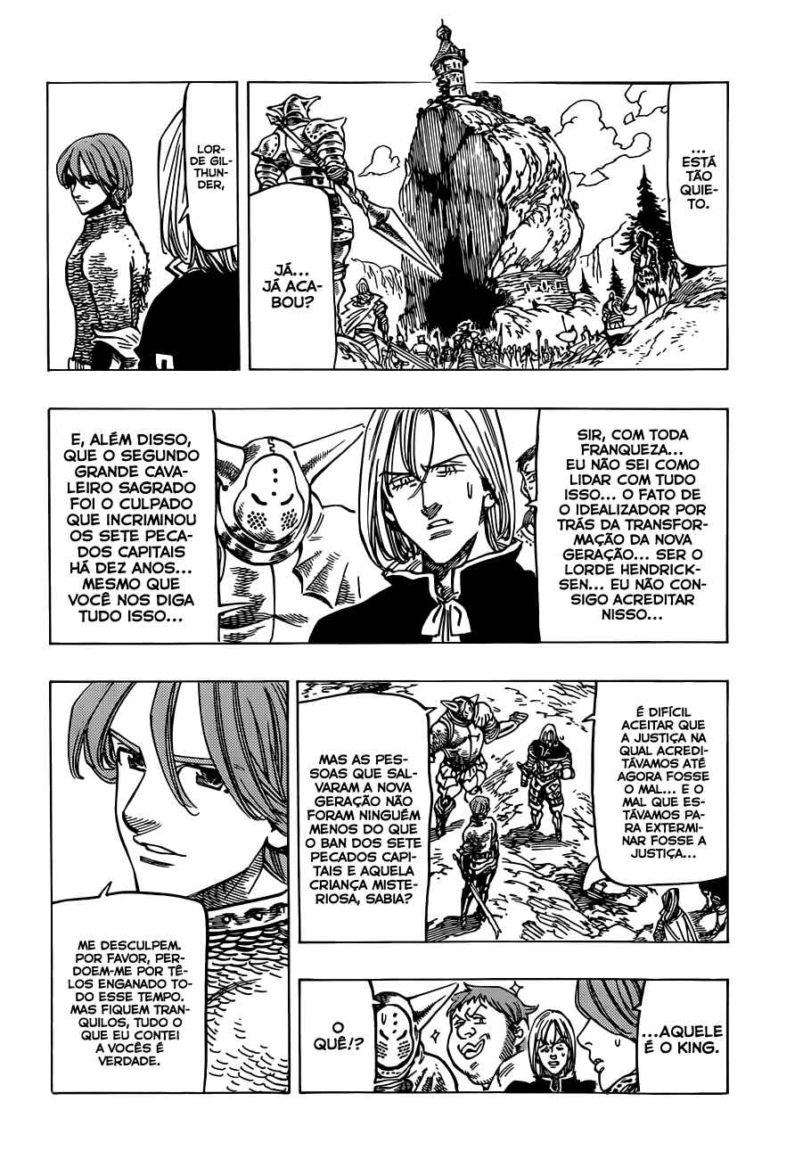 Capítulo 0Capítulo 1 - Os Sete Pecados CapitaisCapítulo 2 - A Espada do PaladinoCapítulo 3 - Algo que Eu Devo FazerCapítulo 4 - O Pecado da Floresta AdormecidaCapítulo 5 - Memória na EscuridãoCapítulo 6 - O Paladino GilthunderCapítulo 7 - O Prisioneiro da EscuridãoCapítulo 8 - O Sonho da GarotaCapítulo 9 - Não Pode Ser TocadoCapítulo 10 - A Maldade InvisívelCapítulo 11 - Mesmo se Você MorrerCapítulo 12 - Uma Festa de ConfusõesCapítulo 13 - Determinação DedicadaCapítulo 14 - ExplosãoCapítulo 15 - O Pequeno EncontroCapítulo 16 - Balada do ComeçoCapítulo 17 - Premonição de TempestadeCapítulo 18 - Reunião TocanteCapítulo 19 - Pecado da GanânciaCapítulo 20 - Dois CaminhosCapítulo 21 - Cavaleiro VingadorCapítulo 22 - Perseguidor TerrívelCapítulo 23 - Algum Dia, DefinitivamenteCapítulo 24 - Lendas EncurraladasCapítulo 25 - Quatro Contra Um, Por FavorCapítulo 26 - Partindo com o MortoCapítulo 27 - A Chuva Sem EmoçõesCapítulo 28 - Homem PerigosoCapítulo 29 - Pulso SombrioCapítulo 30 - Venham! O Festival dos CanalhasCapítulo 31 - Festival de Luta de ByzelCapítulo 32 - Grupo de Lutadores PoderososCapítulo 33 - Previsão de Grande CaosCapítulo 34 - Meliodaz Contra BaanCapítulo 35 - Meliodas RoubadoCapítulo 36 - O Momento de PiscarCapítulo 37 - Se Aproximando da Chance de EncontroCapítulo 38 - Necessidade e AcasoCapítulo 39 - Sentimento de MuitosCapítulo 40 - As Finais do Festival de Luta de ByzelCapítulo 41 - O Choque AssustadorCapítulo 42 - Reator DemônioCapítulo 43 - Aposta PerigosaCapítulo 44 - Contagem Regressiva para o DesesperoCapítulo 45 - Carnaval ViolentoCapítulo 46 - Porque Somos IrmãsCapítulo 47 - Discípulo da DestruiçãoCapítulo 48 - Feliz AniquilaçãoCapítulo 49 - Retirada ForçadaCapítulo 50 - Após o FestivalCapítulo 51 - Profundamente no CoraçãoCapítulo 52 - A Verdade do RumorCapítulo 53 - O Gigante Armado Contra Dawn RoarCapítulo 54 - O Homem que Não se MoveCapítulo 55 - Aquele Homem que Não tem EmoçõesCapítulo 56 - O Cavaleiro ProfanoCapítulo 57 - Acontecimentos de Muito Tempo AtrásCapítulo 58 - Decisão ForçadaCapítulo 59 - Um Homem Imprevisível Entra em CenaCapítulo 60 - Se Metendo em ConfusãoCapítulo 61 - Lendas Não CitadasCapítulo 62 - Vilões ImparáveisCapítulo 63 - Arthur PendragonCapítulo 64 - A Estratégia de Infiltração do Reino!!Capítulo 65 - Um Conflito InevitávelCapítulo 66 - Primeiro InfortúnioCapítulo 67 - FendaCapítulo 68 - Diferença Esmagadora de PoderCapítulo 69 - Todo Mundo Tem uma Primeira VezCapítulo 70 - Grande Paladino AtormentadoCapítulo 71 - Aquilo que Vive na EscuridãoCapítulo 72 - O Homem que Estava Muito AtrasadoCapítulo 73 - Mesmo que Eu Tenha que Destruir Minha VidaCapítulo 74 - A Promessa CumpridaCapítulo 75 - O Que Faz um ReiCapítulo 76 - As Convicções das PrincesasCapítulo 77 - Sentimentos por ElaCapítulo 78 - Em Troca da Minha VidaCapítulo 79 - Mais Uma VezCapítulo 80 - Virando a MesaCapítulo 81 - Único Ataque do MeliodasCapítulo 82 - Feitiço da CoragemCapítulo 83 - Porco CarmesimCapítulo 84 - Tudo Está Bem Quando Termina BemCapítulo 85 - O Começo da FestaCapítulo 86 - Ameaça IminenteCapítulo 87 - A Fúria e a GanânciaCapítulo 88 - Esse Mundo é Como um InfernoCapítulo 89 - Desejo SinceroCapítulo 90 - O Que eu Posso Fazer Por VocêCapítulo 91 - Existência DetestávelCapítulo 92 - A Luta Final ComeçaCapítulo 93 - Vermelho e CinzaCapítulo 94 - Caindo em DesesperoCapítulo 95 - Esperança que DesvaneceCapítulo 96 - HawkCapítulo 97 - ElizabethCapítulo 98 - PreceCapítulo 99 - ConclusãoCapítulo 100 - Os HeróisCapítulo 101 - O Poder do AmorCapítulo 102 - Premonição de um AdeusCapítulo 103 - A Nova JornadaCapítulo 104 - O Retorno do Rei das FadasCapítulo 105 - Um NinguémCapítulo 106 - O Olho Demoníaco de BalorCapítulo 107 - À Procura da VerdadeCapítulo 108 - Despertar GentilCapítulo 109 - TerremotoCapítulo 110 - ConfissãoCapítulo 111 - Como Um Homem DiziaCapítulo 112 - Existência e ProvaCapítulo 113 - RevelaçãoCapítulo 114 - Heróis HesitantesCapítulo 115 - De Volta ao PesadeloCapítulo 116 - O Tesouro Sagrado LostvayneCapítulo 117 - Os Dois Reis das FadasCapítulo 118 - Confronto!! A Floresta do Rei das FadasCapítulo 119 - Os Dez Mandamentos Começam a AgirCapítulo 120 - Violência EsmagadoraCapítulo 121 - Previsão ImpossívelCapítulo 122 - O Massacre dos DemôniosCapítulo 123 - A Redenção do Capitão dos PaladinosCapítulo 124 - O Que a Amizade nos TrouxeCapítulo 125 - Acabem com os "Dez Mandamentos"!!Capítulo 126 - Para Onde as Memórias VãoCapítulo 127 - Reunião com o DesesperoCapítulo 128 - Existência ArroganteCapítulo 129 - A Terra Sagrada dos DruidasCapítulo 130 - A Dor que Gentilmente MataCapítulo 131 - A Promessa Com a Minha AmadaCapítulo 132 - Aquilo que nos FaltaCapítulo 133 - Impaciência e AnsiedadeCapítulo 134 - À Você, Que Não é Mais Meu CapitãoCapítulo 135 - Meras Boas VindasCapítulo 136 - Disseminando o MedoCapítulo 137 - Aqui Entre Eu e VocêCapítulo 138 - Batalha Contra as TrevasCapítulo 139 - Conte-me Sobre o Seu PassadoCapítulo 140 - O Ladrão e o GarotoCapítulo 141 - Pai e FilhoCapítulo 142 - Onde o Amor EstáCapítulo 143 - O Grito da Donzela SagradaCapítulo 144 - Aquele Homem da "Ganância"Capítulo 145 - Bela AlmaCapítulo 146 - Adeus, Meu Amado LadrãoCapítulo 147 - Perseguição MortalCapítulo 148 - Galan GameCapítulo 149 - A Magia de GalanCapítulo 150 - Mestre do SolCapítulo 151 - O Palco Espera por NósCapítulo 152 - Atraídos pela Luz da VelaCapítulo 153 - A Confissão AterrorizanteCapítulo 154 - O Diabo SorriCapítulo 155 - Labirinto da Armadilha da MorteCapítulo 156 - Desafio de Exploração do LabirintoCapítulo 157 - A Dança Caótica dos DesafiantesCapítulo 158 - Os Heróis da FoliaCapítulo 159 - Palavras Não São NecessáriasCapítulo 160 - Vão!! SuperemCapítulo 161 - Aqueles da LendaCapítulo 162 -