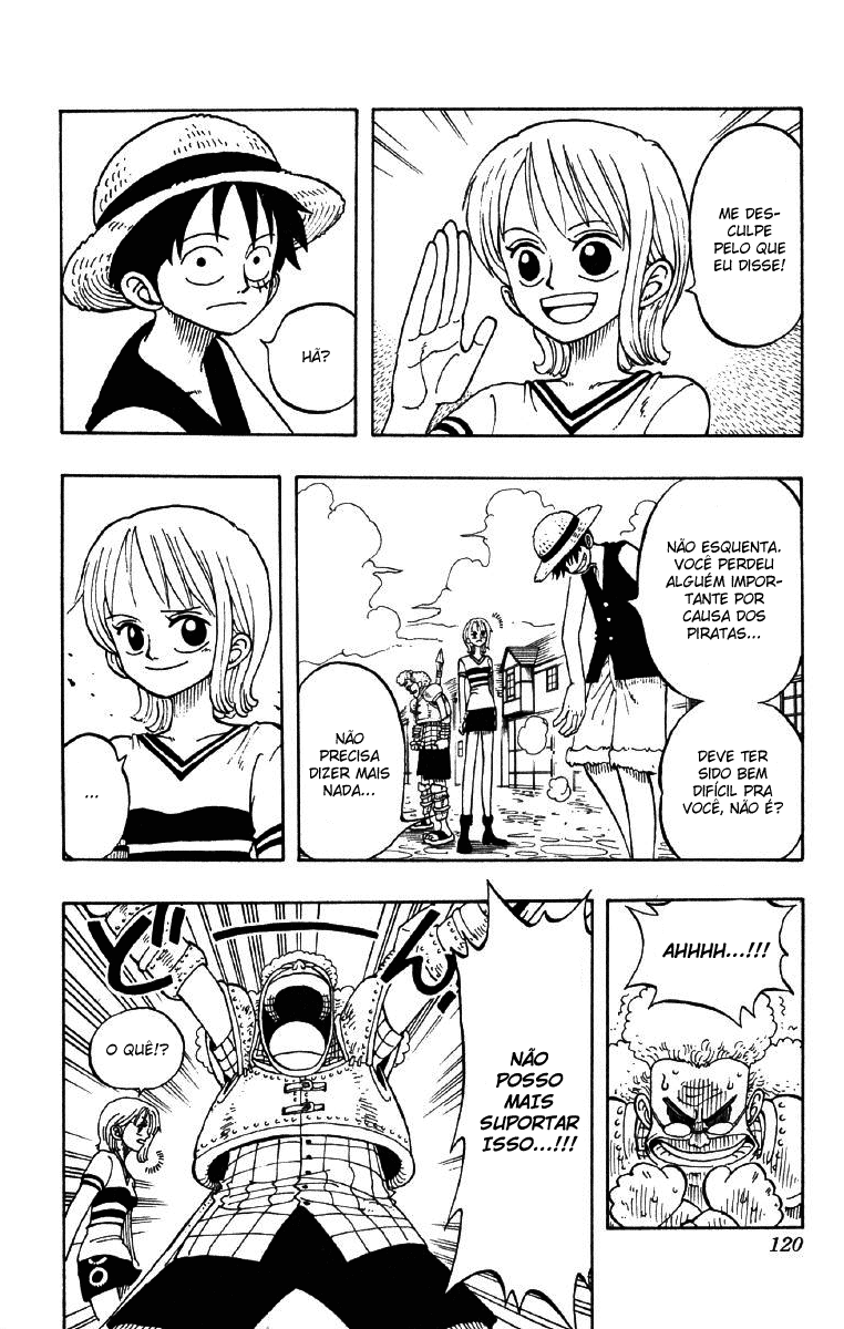 Capítulo 1 - Romance DawnCapítulo 1 - Romance Dawn ~O Alvorecer da Aventura~Capítulo 2 - O Garoto "Luffy do Chapéu de Palha"Capítulo 3 - Surge Zoro, o Caçador de PiratasCapítulo 3 - Zoro, O Caçador de PiratasCapítulo 4 - O Capitão da Marinha "Morgan Braço de Machado"Capítulo 5 - O Rei dos Piratas e o Melhor EspadachimCapítulo 6 - O Primeiro do BandoCapítulo 7 - AmigosCapítulo 8 - Apresentando NamiCapítulo 9 - Mulher DiabólicaCapítulo 10 - Incidente na TavernaCapítulo 11 - VôoCapítulo 12 - CãoCapítulo 13 - TesouroCapítulo 14 - Imprudência!!Capítulo 15 - GongoCapítulo 16 - Contra!! O Bando Pirata do BuggyCapítulo 17 - AvaliaçãoCapítulo 18 - O Pirata "Buggy, o Palhaço"Capítulo 19 - Akuma no MiCapítulo 20 - A Filosofia da LadraCapítulo 21 - CidadãosCapítulo 22 - Você é um Espécime RaroCapítulo 23 - Apresentando Capitão UsoppCapítulo 24 - Coisas Que Não se Pode MentirCapítulo 25 - 800 MentirasCapítulo 26 - O Plano do Capitão KuroCapítulo 27 - PlanoCapítulo 28 - Lua CrescenteCapítulo 29 - A LadeiraCapítulo 30 - Excelente!!!Capítulo 31 - A VerdadeCapítulo 32 - Grande InfortúnioCapítulo 33 - O Homem SorrateiroCapítulo 34 - O Mordomo KlahadorCapítulo 35 - Ladeira ÍngremeCapítulo 36 - Perseguição!!Capítulo 37 - O Pirata "Kuro dos Mil Truques"Capítulo 38 - O Bando PirataCapítulo 39 - Para Quem o Sino TocaCapítulo 40 - O Bando Pirata do UsoppCapítulo 41 - Para o MarCapítulo 42 - Yosaku e JohnnyCapítulo 43 - Apresentando SanjiCapítulo 44 - Os Três CozinheirosCapítulo 45 - Antes da TempestadeCapítulo 46 - Convidado InesperadoCapítulo 47 - Almirante da Frota Pirata, "Don Krieg"Capítulo 48 - Não Vá Para Aquela RotaCapítulo 49 - TempestadeCapítulo 50 - Meu Próprio DestinoCapítulo 51 - Roronoa Zoro Cai no MarCapítulo 52 - JuramentoCapítulo 53 - Peixe Pequeno Nº 1Capítulo 54 - Pearl-sanCapítulo 55 - Floresta SangrentaCapítulo 56 - De Jeito NenhumCapítulo 57 - Por Trás do SonhoCapítulo 58 - Velho de MerdaCapítulo 59 - DívidaCapítulo 60 - Pagando a DívidaCapítulo 61 - DemônioCapítulo 62 - MH5Capítulo 63 - Não Vou MorrerCapítulo 64 - A Arma SupremaCapítulo 65 - Prepare-seCapítulo 66 - A Lança é DestruídaCapítulo 67 - SopaCapítulo 68 - O Quarto do BandoCapítulo 69 - Arlong ParkCapítulo 70 - A Grande Aventura do Homem UsoppCapítulo 71 - O Senhor da CriaçãoCapítulo 72 - Vivendo AdequadamenteCapítulo 73 - O Monstro Vindo da Grand LineCapítulo 74 - NegóciosCapítulo 75 - Mapas e TritõesCapítulo 76 - DormirCapítulo 77 - O Primeiro Passo do SonhoCapítulo 78 - Bellemère-sanCapítulo 79 - ViverCapítulo 80 - Uma Ladra é uma LadraCapítulo 81 - LágrimasCapítulo 82 - Certo, Vamos LEVANTAR!Capítulo 83 - Luffy de PretoCapítulo 84 - ZumbiCapítulo 85 - Santouryuu Contra RokutouryuuCapítulo 86 - Heroísmo VS Karate TritãoCapítulo 87 - Acabou!!Capítulo 88 - Morra!!!Capítulo 89 - TrocaCapítulo 90 - O Que Você Pode Fazer?Capítulo 91 - DardosCapítulo 92 - FelicidadeCapítulo 93 - DemolindoCapítulo 94 - A Segunda do BandoCapítulo 95 - Gire Cata-ventoCapítulo 96 - O Pior Homem do LesteCapítulo 97 - Kitetsu TerceiraCapítulo 98 - Nunvens NegrasCapítulo 99 - Luffy é MortoCapítulo 100 - O Início de uma LendaCapítulo 101 - Reverse MountainCapítulo 102 - Agora, a Grand LineCapítulo 103 - BaleiaCapítulo 104 - O Cabo da PromessaCapítulo 105 - Log PoseCapítulo 106 - A Cidade HospitaleiraCapítulo 107 - Luar e SepulturasCapítulo 108 - 100 Caçadores de RecompensasCapítulo 109 - Problemas de ResponsabilidadeCapítulo 110 - Noite Sem FimCapítulo 111 - Sindicato Secreto de CrimesCapítulo 112 - ZoroCapítulo 113 - Está Tudo Bem!!!Capítulo 114 - RotaCapítulo 115 - Aventura em Little GardenCapítulo 116 - GigantesCapítulo 117 - BrogyCapítulo 118 - Há Alguém AquiCapítulo 119 - Golpe BaixoCapítulo 120 - O Ogro Vermelho ChoraCapítulo 121 - Eu SabiaCapítulo 122 - Um Peso Morto Não AjudaCapítulo 123 - Mr. 3Capítulo 124 - Maldito Chá DeliciosoCapítulo 125 - Candle ChampionCapítulo 126 - InstintoCapítulo 127 - Denden-mushiCapítulo 128 - Orgulho PirataCapítulo 129 - Seguir em Frente!!!Capítulo 130 - Velocidade MáximaCapítulo 131 - Wapol, o BlikCapítulo 132 - Vê?Capítulo 133 - Aventura no País Sem NomeCapítulo 134 - Dra. KurehaCapítulo 135 - LapahnCapítulo 136 - O Homem Chamado DoltonCapítulo 137 - AvalancheCapítulo 138 - TopoCapítulo 139 - Apresentando Tony Tony ChopperCapítulo 140 - Vivendo num Castelo de NeveCapítulo 141 - CurandeiroCapítulo 142 - Caveira e Flores de CerejeiraCapítulo 143 - DesajeitadoCapítulo 144 - Um Conto de InvernoCapítulo 145 - Determinação HerdadaCapítulo 146 - Batalha para Defender o PaísCapítulo 147 - FraudeCapítulo 148 - IndestrutívelCapítulo 149 - Estrondo!!Capítulo 150 - O Canhão Bliking de 7 Tiros da Coroa Real de DrumCapítulo 151 - O Céu de DrumCapítulo 152 - Lua CheiaCapítulo 153 - As Flores de Cerejeira do HirulukCapítulo 154 - Para AlabastaCapítulo 155 - O Pirata Sir CrocodileCapítulo 156 - Clima OkamaCapítulo 157 - Apresentando AceCapítulo 158 - Desembracando em AlabastaCapítulo 159 - VenhaCapítulo 160 - 8:00 pm no Spiders CaféCapítulo 161 - Erumalu, a Cidade VerdeCapítulo 162 - Aventura no País DesérticoCapítulo 163 - Yuba, a Cidade da Armada RebeldeCapítulo 164 - Eu Amo Esse PaísCapítulo 165 - Operação: UtopiaCapítulo 166 - Luffy VS ViviCapítulo 167 - Linha de FrenteCapítulo 168 - Rainbase, a Cidade dos SonhosCapítulo 169 - O Guerreiro Mais Forte do ReinoCapítulo 170 - ComeçaCapítulo 171 - Koza, o Líder da Armada RebeldeCapítulo 172 - RebeliãoCapítulo 173 - Crocodilos-bananaCapítulo 174 - Mr. PríncipeCapítulo 175 - LibertaçãoCapítulo 176 - Corram!!Capítulo 177 - 30 Milhões VS 81 MilhõesCapítulo 178 - Nível G. L.Capítulo 179 - Batalha Decisiva em AlubarnaCapítulo 180 - A Fauna de AlabastaCapítulo 181 - O Quiz dos Super Patos-de-Bico-ListradoCapítulo 182 - RugidoCapítulo 