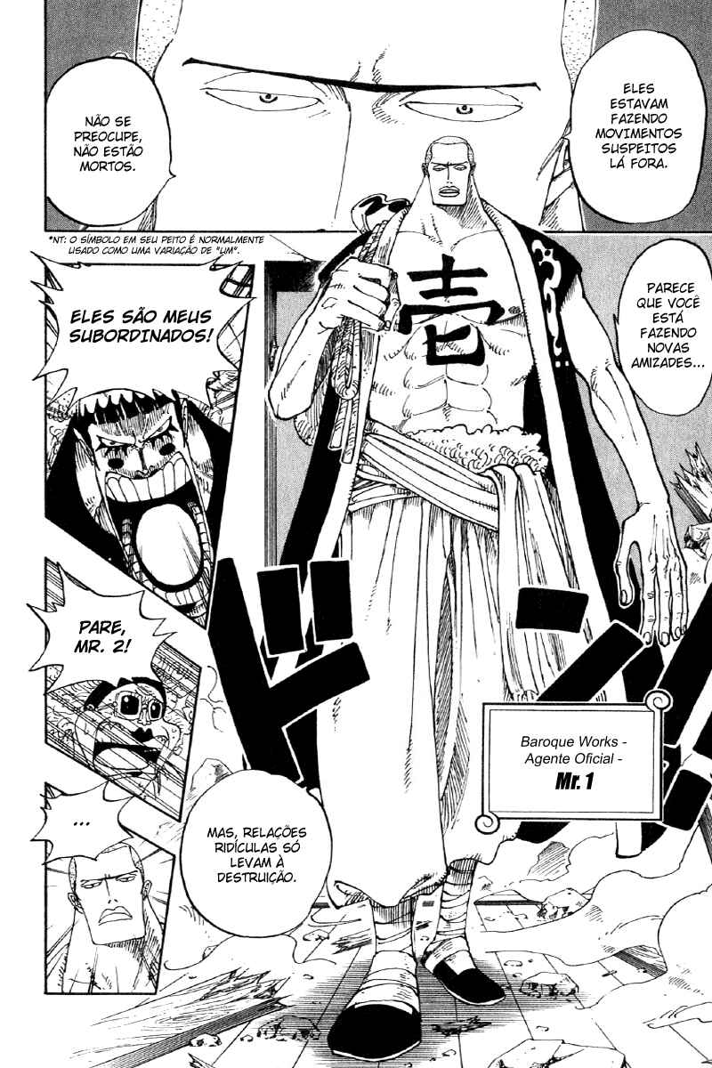 Capítulo 1 - Romance DawnCapítulo 1 - Romance Dawn ~O Alvorecer da Aventura~Capítulo 2 - O Garoto "Luffy do Chapéu de Palha"Capítulo 3 - Surge Zoro, o Caçador de PiratasCapítulo 3 - Zoro, O Caçador de PiratasCapítulo 4 - O Capitão da Marinha "Morgan Braço de Machado"Capítulo 5 - O Rei dos Piratas e o Melhor EspadachimCapítulo 6 - O Primeiro do BandoCapítulo 7 - AmigosCapítulo 8 - Apresentando NamiCapítulo 9 - Mulher DiabólicaCapítulo 10 - Incidente na TavernaCapítulo 11 - VôoCapítulo 12 - CãoCapítulo 13 - TesouroCapítulo 14 - Imprudência!!Capítulo 15 - GongoCapítulo 16 - Contra!! O Bando Pirata do BuggyCapítulo 17 - AvaliaçãoCapítulo 18 - O Pirata "Buggy, o Palhaço"Capítulo 19 - Akuma no MiCapítulo 20 - A Filosofia da LadraCapítulo 21 - CidadãosCapítulo 22 - Você é um Espécime RaroCapítulo 23 - Apresentando Capitão UsoppCapítulo 24 - Coisas Que Não se Pode MentirCapítulo 25 - 800 MentirasCapítulo 26 - O Plano do Capitão KuroCapítulo 27 - PlanoCapítulo 28 - Lua CrescenteCapítulo 29 - A LadeiraCapítulo 30 - Excelente!!!Capítulo 31 - A VerdadeCapítulo 32 - Grande InfortúnioCapítulo 33 - O Homem SorrateiroCapítulo 34 - O Mordomo KlahadorCapítulo 35 - Ladeira ÍngremeCapítulo 36 - Perseguição!!Capítulo 37 - O Pirata "Kuro dos Mil Truques"Capítulo 38 - O Bando PirataCapítulo 39 - Para Quem o Sino TocaCapítulo 40 - O Bando Pirata do UsoppCapítulo 41 - Para o MarCapítulo 42 - Yosaku e JohnnyCapítulo 43 - Apresentando SanjiCapítulo 44 - Os Três CozinheirosCapítulo 45 - Antes da TempestadeCapítulo 46 - Convidado InesperadoCapítulo 47 - Almirante da Frota Pirata, "Don Krieg"Capítulo 48 - Não Vá Para Aquela RotaCapítulo 49 - TempestadeCapítulo 50 - Meu Próprio DestinoCapítulo 51 - Roronoa Zoro Cai no MarCapítulo 52 - JuramentoCapítulo 53 - Peixe Pequeno Nº 1Capítulo 54 - Pearl-sanCapítulo 55 - Floresta SangrentaCapítulo 56 - De Jeito NenhumCapítulo 57 - Por Trás do SonhoCapítulo 58 - Velho de MerdaCapítulo 59 - DívidaCapítulo 60 - Pagando a DívidaCapítulo 61 - DemônioCapítulo 62 - MH5Capítulo 63 - Não Vou MorrerCapítulo 64 - A Arma SupremaCapítulo 65 - Prepare-seCapítulo 66 - A Lança é DestruídaCapítulo 67 - SopaCapítulo 68 - O Quarto do BandoCapítulo 69 - Arlong ParkCapítulo 70 - A Grande Aventura do Homem UsoppCapítulo 71 - O Senhor da CriaçãoCapítulo 72 - Vivendo AdequadamenteCapítulo 73 - O Monstro Vindo da Grand LineCapítulo 74 - NegóciosCapítulo 75 - Mapas e TritõesCapítulo 76 - DormirCapítulo 77 - O Primeiro Passo do SonhoCapítulo 78 - Bellemère-sanCapítulo 79 - ViverCapítulo 80 - Uma Ladra é uma LadraCapítulo 81 - LágrimasCapítulo 82 - Certo, Vamos LEVANTAR!Capítulo 83 - Luffy de PretoCapítulo 84 - ZumbiCapítulo 85 - Santouryuu Contra RokutouryuuCapítulo 86 - Heroísmo VS Karate TritãoCapítulo 87 - Acabou!!Capítulo 88 - Morra!!!Capítulo 89 - TrocaCapítulo 90 - O Que Você Pode Fazer?Capítulo 91 - DardosCapítulo 92 - FelicidadeCapítulo 93 - DemolindoCapítulo 94 - A Segunda do BandoCapítulo 95 - Gire Cata-ventoCapítulo 96 - O Pior Homem do LesteCapítulo 97 - Kitetsu TerceiraCapítulo 98 - Nunvens NegrasCapítulo 99 - Luffy é MortoCapítulo 100 - O Início de uma LendaCapítulo 101 - Reverse MountainCapítulo 102 - Agora, a Grand LineCapítulo 103 - BaleiaCapítulo 104 - O Cabo da PromessaCapítulo 105 - Log PoseCapítulo 106 - A Cidade HospitaleiraCapítulo 107 - Luar e SepulturasCapítulo 108 - 100 Caçadores de RecompensasCapítulo 109 - Problemas de ResponsabilidadeCapítulo 110 - Noite Sem FimCapítulo 111 - Sindicato Secreto de CrimesCapítulo 112 - ZoroCapítulo 113 - Está Tudo Bem!!!Capítulo 114 - RotaCapítulo 115 - Aventura em Little GardenCapítulo 116 - GigantesCapítulo 117 - BrogyCapítulo 118 - Há Alguém AquiCapítulo 119 - Golpe BaixoCapítulo 120 - O Ogro Vermelho ChoraCapítulo 121 - Eu SabiaCapítulo 122 - Um Peso Morto Não AjudaCapítulo 123 - Mr. 3Capítulo 124 - Maldito Chá DeliciosoCapítulo 125 - Candle ChampionCapítulo 126 - InstintoCapítulo 127 - Denden-mushiCapítulo 128 - Orgulho PirataCapítulo 129 - Seguir em Frente!!!Capítulo 130 - Velocidade MáximaCapítulo 131 - Wapol, o BlikCapítulo 132 - Vê?Capítulo 133 - Aventura no País Sem NomeCapítulo 134 - Dra. KurehaCapítulo 135 - LapahnCapítulo 136 - O Homem Chamado DoltonCapítulo 137 - AvalancheCapítulo 138 - TopoCapítulo 139 - Apresentando Tony Tony ChopperCapítulo 140 - Vivendo num Castelo de NeveCapítulo 141 - CurandeiroCapítulo 142 - Caveira e Flores de CerejeiraCapítulo 143 - DesajeitadoCapítulo 144 - Um Conto de InvernoCapítulo 145 - Determinação HerdadaCapítulo 146 - Batalha para Defender o PaísCapítulo 147 - FraudeCapítulo 148 - IndestrutívelCapítulo 149 - Estrondo!!Capítulo 150 - O Canhão Bliking de 7 Tiros da Coroa Real de DrumCapítulo 151 - O Céu de DrumCapítulo 152 - Lua CheiaCapítulo 153 - As Flores de Cerejeira do HirulukCapítulo 154 - Para AlabastaCapítulo 155 - O Pirata Sir CrocodileCapítulo 156 - Clima OkamaCapítulo 157 - Apresentando AceCapítulo 158 - Desembracando em AlabastaCapítulo 159 - VenhaCapítulo 160 - 8:00 pm no Spiders CaféCapítulo 161 - Erumalu, a Cidade VerdeCapítulo 162 - Aventura no País DesérticoCapítulo 163 - Yuba, a Cidade da Armada RebeldeCapítulo 164 - Eu Amo Esse PaísCapítulo 165 - Operação: UtopiaCapítulo 166 - Luffy VS ViviCapítulo 167 - Linha de FrenteCapítulo 168 - Rainbase, a Cidade dos SonhosCapítulo 169 - O Guerreiro Mais Forte do ReinoCapítulo 170 - ComeçaCapítulo 171 - Koza, o Líder da Armada RebeldeCapítulo 172 - RebeliãoCapítulo 173 - Crocodilos-bananaCapítulo 174 - Mr. PríncipeCapítulo 175 - LibertaçãoCapítulo 176 - Corram!!Capítulo 177 - 30 Milhões VS 81 MilhõesCapítulo 178 - Nível G. L.Capítulo 179 - Batalha Decisiva em AlubarnaCapítulo 180 - A Fauna de AlabastaCapítulo 181 - O Quiz dos Super Patos-de-Bico-ListradoCapítulo 182 - RugidoCapítulo 