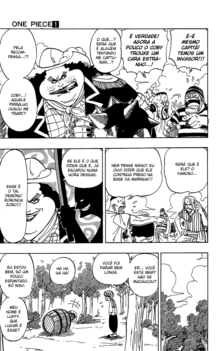 Capítulo 1 - Romance DawnCapítulo 1 - Romance Dawn ~O Alvorecer da Aventura~Capítulo 2 - O Garoto "Luffy do Chapéu de Palha"Capítulo 3 - Surge Zoro, o Caçador de PiratasCapítulo 3 - Zoro, O Caçador de PiratasCapítulo 4 - O Capitão da Marinha "Morgan Braço de Machado"Capítulo 5 - O Rei dos Piratas e o Melhor EspadachimCapítulo 6 - O Primeiro do BandoCapítulo 7 - AmigosCapítulo 8 - Apresentando NamiCapítulo 9 - Mulher DiabólicaCapítulo 10 - Incidente na TavernaCapítulo 11 - VôoCapítulo 12 - CãoCapítulo 13 - TesouroCapítulo 14 - Imprudência!!Capítulo 15 - GongoCapítulo 16 - Contra!! O Bando Pirata do BuggyCapítulo 17 - AvaliaçãoCapítulo 18 - O Pirata "Buggy, o Palhaço"Capítulo 19 - Akuma no MiCapítulo 20 - A Filosofia da LadraCapítulo 21 - CidadãosCapítulo 22 - Você é um Espécime RaroCapítulo 23 - Apresentando Capitão UsoppCapítulo 24 - Coisas Que Não se Pode MentirCapítulo 25 - 800 MentirasCapítulo 26 - O Plano do Capitão KuroCapítulo 27 - PlanoCapítulo 28 - Lua CrescenteCapítulo 29 - A LadeiraCapítulo 30 - Excelente!!!Capítulo 31 - A VerdadeCapítulo 32 - Grande InfortúnioCapítulo 33 - O Homem SorrateiroCapítulo 34 - O Mordomo KlahadorCapítulo 35 - Ladeira ÍngremeCapítulo 36 - Perseguição!!Capítulo 37 - O Pirata "Kuro dos Mil Truques"Capítulo 38 - O Bando PirataCapítulo 39 - Para Quem o Sino TocaCapítulo 40 - O Bando Pirata do UsoppCapítulo 41 - Para o MarCapítulo 42 - Yosaku e JohnnyCapítulo 43 - Apresentando SanjiCapítulo 44 - Os Três CozinheirosCapítulo 45 - Antes da TempestadeCapítulo 46 - Convidado InesperadoCapítulo 47 - Almirante da Frota Pirata, "Don Krieg"Capítulo 48 - Não Vá Para Aquela RotaCapítulo 49 - TempestadeCapítulo 50 - Meu Próprio DestinoCapítulo 51 - Roronoa Zoro Cai no MarCapítulo 52 - JuramentoCapítulo 53 - Peixe Pequeno Nº 1Capítulo 54 - Pearl-sanCapítulo 55 - Floresta SangrentaCapítulo 56 - De Jeito NenhumCapítulo 57 - Por Trás do SonhoCapítulo 58 - Velho de MerdaCapítulo 59 - DívidaCapítulo 60 - Pagando a DívidaCapítulo 61 - DemônioCapítulo 62 - MH5Capítulo 63 - Não Vou MorrerCapítulo 64 - A Arma SupremaCapítulo 65 - Prepare-seCapítulo 66 - A Lança é DestruídaCapítulo 67 - SopaCapítulo 68 - O Quarto do BandoCapítulo 69 - Arlong ParkCapítulo 70 - A Grande Aventura do Homem UsoppCapítulo 71 - O Senhor da CriaçãoCapítulo 72 - Vivendo AdequadamenteCapítulo 73 - O Monstro Vindo da Grand LineCapítulo 74 - NegóciosCapítulo 75 - Mapas e TritõesCapítulo 76 - DormirCapítulo 77 - O Primeiro Passo do SonhoCapítulo 78 - Bellemère-sanCapítulo 79 - ViverCapítulo 80 - Uma Ladra é uma LadraCapítulo 81 - LágrimasCapítulo 82 - Certo, Vamos LEVANTAR!Capítulo 83 - Luffy de PretoCapítulo 84 - ZumbiCapítulo 85 - Santouryuu Contra RokutouryuuCapítulo 86 - Heroísmo VS Karate TritãoCapítulo 87 - Acabou!!Capítulo 88 - Morra!!!Capítulo 89 - TrocaCapítulo 90 - O Que Você Pode Fazer?Capítulo 91 - DardosCapítulo 92 - FelicidadeCapítulo 93 - DemolindoCapítulo 94 - A Segunda do BandoCapítulo 95 - Gire Cata-ventoCapítulo 96 - O Pior Homem do LesteCapítulo 97 - Kitetsu TerceiraCapítulo 98 - Nunvens NegrasCapítulo 99 - Luffy é MortoCapítulo 100 - O Início de uma LendaCapítulo 101 - Reverse MountainCapítulo 102 - Agora, a Grand LineCapítulo 103 - BaleiaCapítulo 104 - O Cabo da PromessaCapítulo 105 - Log PoseCapítulo 106 - A Cidade HospitaleiraCapítulo 107 - Luar e SepulturasCapítulo 108 - 100 Caçadores de RecompensasCapítulo 109 - Problemas de ResponsabilidadeCapítulo 110 - Noite Sem FimCapítulo 111 - Sindicato Secreto de CrimesCapítulo 112 - ZoroCapítulo 113 - Está Tudo Bem!!!Capítulo 114 - RotaCapítulo 115 - Aventura em Little GardenCapítulo 116 - GigantesCapítulo 117 - BrogyCapítulo 118 - Há Alguém AquiCapítulo 119 - Golpe BaixoCapítulo 120 - O Ogro Vermelho ChoraCapítulo 121 - Eu SabiaCapítulo 122 - Um Peso Morto Não AjudaCapítulo 123 - Mr. 3Capítulo 124 - Maldito Chá DeliciosoCapítulo 125 - Candle ChampionCapítulo 126 - InstintoCapítulo 127 - Denden-mushiCapítulo 128 - Orgulho PirataCapítulo 129 - Seguir em Frente!!!Capítulo 130 - Velocidade MáximaCapítulo 131 - Wapol, o BlikCapítulo 132 - Vê?Capítulo 133 - Aventura no País Sem NomeCapítulo 134 - Dra. KurehaCapítulo 135 - LapahnCapítulo 136 - O Homem Chamado DoltonCapítulo 137 - AvalancheCapítulo 138 - TopoCapítulo 139 - Apresentando Tony Tony ChopperCapítulo 140 - Vivendo num Castelo de NeveCapítulo 141 - CurandeiroCapítulo 142 - Caveira e Flores de CerejeiraCapítulo 143 - DesajeitadoCapítulo 144 - Um Conto de InvernoCapítulo 145 - Determinação HerdadaCapítulo 146 - Batalha para Defender o PaísCapítulo 147 - FraudeCapítulo 148 - IndestrutívelCapítulo 149 - Estrondo!!Capítulo 150 - O Canhão Bliking de 7 Tiros da Coroa Real de DrumCapítulo 151 - O Céu de DrumCapítulo 152 - Lua CheiaCapítulo 153 - As Flores de Cerejeira do HirulukCapítulo 154 - Para AlabastaCapítulo 155 - O Pirata Sir CrocodileCapítulo 156 - Clima OkamaCapítulo 157 - Apresentando AceCapítulo 158 - Desembracando em AlabastaCapítulo 159 - VenhaCapítulo 160 - 8:00 pm no Spiders CaféCapítulo 161 - Erumalu, a Cidade VerdeCapítulo 162 - Aventura no País DesérticoCapítulo 163 - Yuba, a Cidade da Armada RebeldeCapítulo 164 - Eu Amo Esse PaísCapítulo 165 - Operação: UtopiaCapítulo 166 - Luffy VS ViviCapítulo 167 - Linha de FrenteCapítulo 168 - Rainbase, a Cidade dos SonhosCapítulo 169 - O Guerreiro Mais Forte do ReinoCapítulo 170 - ComeçaCapítulo 171 - Koza, o Líder da Armada RebeldeCapítulo 172 - RebeliãoCapítulo 173 - Crocodilos-bananaCapítulo 174 - Mr. PríncipeCapítulo 175 - LibertaçãoCapítulo 176 - Corram!!Capítulo 177 - 30 Milhões VS 81 MilhõesCapítulo 178 - Nível G. L.Capítulo 179 - Batalha Decisiva em AlubarnaCapítulo 180 - A Fauna de AlabastaCapítulo 181 - O Quiz dos Super Patos-de-Bico-ListradoCapítulo 182 - RugidoCapítulo 