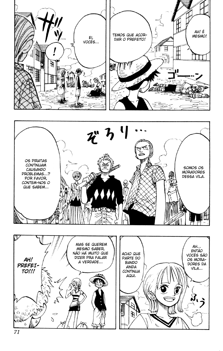 Capítulo 1 - Romance DawnCapítulo 1 - Romance Dawn ~O Alvorecer da Aventura~Capítulo 2 - O Garoto "Luffy do Chapéu de Palha"Capítulo 3 - Surge Zoro, o Caçador de PiratasCapítulo 3 - Zoro, O Caçador de PiratasCapítulo 4 - O Capitão da Marinha "Morgan Braço de Machado"Capítulo 5 - O Rei dos Piratas e o Melhor EspadachimCapítulo 6 - O Primeiro do BandoCapítulo 7 - AmigosCapítulo 8 - Apresentando NamiCapítulo 9 - Mulher DiabólicaCapítulo 10 - Incidente na TavernaCapítulo 11 - VôoCapítulo 12 - CãoCapítulo 13 - TesouroCapítulo 14 - Imprudência!!Capítulo 15 - GongoCapítulo 16 - Contra!! O Bando Pirata do BuggyCapítulo 17 - AvaliaçãoCapítulo 18 - O Pirata "Buggy, o Palhaço"Capítulo 19 - Akuma no MiCapítulo 20 - A Filosofia da LadraCapítulo 21 - CidadãosCapítulo 22 - Você é um Espécime RaroCapítulo 23 - Apresentando Capitão UsoppCapítulo 24 - Coisas Que Não se Pode MentirCapítulo 25 - 800 MentirasCapítulo 26 - O Plano do Capitão KuroCapítulo 27 - PlanoCapítulo 28 - Lua CrescenteCapítulo 29 - A LadeiraCapítulo 30 - Excelente!!!Capítulo 31 - A VerdadeCapítulo 32 - Grande InfortúnioCapítulo 33 - O Homem SorrateiroCapítulo 34 - O Mordomo KlahadorCapítulo 35 - Ladeira ÍngremeCapítulo 36 - Perseguição!!Capítulo 37 - O Pirata "Kuro dos Mil Truques"Capítulo 38 - O Bando PirataCapítulo 39 - Para Quem o Sino TocaCapítulo 40 - O Bando Pirata do UsoppCapítulo 41 - Para o MarCapítulo 42 - Yosaku e JohnnyCapítulo 43 - Apresentando SanjiCapítulo 44 - Os Três CozinheirosCapítulo 45 - Antes da TempestadeCapítulo 46 - Convidado InesperadoCapítulo 47 - Almirante da Frota Pirata, "Don Krieg"Capítulo 48 - Não Vá Para Aquela RotaCapítulo 49 - TempestadeCapítulo 50 - Meu Próprio DestinoCapítulo 51 - Roronoa Zoro Cai no MarCapítulo 52 - JuramentoCapítulo 53 - Peixe Pequeno Nº 1Capítulo 54 - Pearl-sanCapítulo 55 - Floresta SangrentaCapítulo 56 - De Jeito NenhumCapítulo 57 - Por Trás do SonhoCapítulo 58 - Velho de MerdaCapítulo 59 - DívidaCapítulo 60 - Pagando a DívidaCapítulo 61 - DemônioCapítulo 62 - MH5Capítulo 63 - Não Vou MorrerCapítulo 64 - A Arma SupremaCapítulo 65 - Prepare-seCapítulo 66 - A Lança é DestruídaCapítulo 67 - SopaCapítulo 68 - O Quarto do BandoCapítulo 69 - Arlong ParkCapítulo 70 - A Grande Aventura do Homem UsoppCapítulo 71 - O Senhor da CriaçãoCapítulo 72 - Vivendo AdequadamenteCapítulo 73 - O Monstro Vindo da Grand LineCapítulo 74 - NegóciosCapítulo 75 - Mapas e TritõesCapítulo 76 - DormirCapítulo 77 - O Primeiro Passo do SonhoCapítulo 78 - Bellemère-sanCapítulo 79 - ViverCapítulo 80 - Uma Ladra é uma LadraCapítulo 81 - LágrimasCapítulo 82 - Certo, Vamos LEVANTAR!Capítulo 83 - Luffy de PretoCapítulo 84 - ZumbiCapítulo 85 - Santouryuu Contra RokutouryuuCapítulo 86 - Heroísmo VS Karate TritãoCapítulo 87 - Acabou!!Capítulo 88 - Morra!!!Capítulo 89 - TrocaCapítulo 90 - O Que Você Pode Fazer?Capítulo 91 - DardosCapítulo 92 - FelicidadeCapítulo 93 - DemolindoCapítulo 94 - A Segunda do BandoCapítulo 95 - Gire Cata-ventoCapítulo 96 - O Pior Homem do LesteCapítulo 97 - Kitetsu TerceiraCapítulo 98 - Nunvens NegrasCapítulo 99 - Luffy é MortoCapítulo 100 - O Início de uma LendaCapítulo 101 - Reverse MountainCapítulo 102 - Agora, a Grand LineCapítulo 103 - BaleiaCapítulo 104 - O Cabo da PromessaCapítulo 105 - Log PoseCapítulo 106 - A Cidade HospitaleiraCapítulo 107 - Luar e SepulturasCapítulo 108 - 100 Caçadores de RecompensasCapítulo 109 - Problemas de ResponsabilidadeCapítulo 110 - Noite Sem FimCapítulo 111 - Sindicato Secreto de CrimesCapítulo 112 - ZoroCapítulo 113 - Está Tudo Bem!!!Capítulo 114 - RotaCapítulo 115 - Aventura em Little GardenCapítulo 116 - GigantesCapítulo 117 - BrogyCapítulo 118 - Há Alguém AquiCapítulo 119 - Golpe BaixoCapítulo 120 - O Ogro Vermelho ChoraCapítulo 121 - Eu SabiaCapítulo 122 - Um Peso Morto Não AjudaCapítulo 123 - Mr. 3Capítulo 124 - Maldito Chá DeliciosoCapítulo 125 - Candle ChampionCapítulo 126 - InstintoCapítulo 127 - Denden-mushiCapítulo 128 - Orgulho PirataCapítulo 129 - Seguir em Frente!!!Capítulo 130 - Velocidade MáximaCapítulo 131 - Wapol, o BlikCapítulo 132 - Vê?Capítulo 133 - Aventura no País Sem NomeCapítulo 134 - Dra. KurehaCapítulo 135 - LapahnCapítulo 136 - O Homem Chamado DoltonCapítulo 137 - AvalancheCapítulo 138 - TopoCapítulo 139 - Apresentando Tony Tony ChopperCapítulo 140 - Vivendo num Castelo de NeveCapítulo 141 - CurandeiroCapítulo 142 - Caveira e Flores de CerejeiraCapítulo 143 - DesajeitadoCapítulo 144 - Um Conto de InvernoCapítulo 145 - Determinação HerdadaCapítulo 146 - Batalha para Defender o PaísCapítulo 147 - FraudeCapítulo 148 - IndestrutívelCapítulo 149 - Estrondo!!Capítulo 150 - O Canhão Bliking de 7 Tiros da Coroa Real de DrumCapítulo 151 - O Céu de DrumCapítulo 152 - Lua CheiaCapítulo 153 - As Flores de Cerejeira do HirulukCapítulo 154 - Para AlabastaCapítulo 155 - O Pirata Sir CrocodileCapítulo 156 - Clima OkamaCapítulo 157 - Apresentando AceCapítulo 158 - Desembracando em AlabastaCapítulo 159 - VenhaCapítulo 160 - 8:00 pm no Spiders CaféCapítulo 161 - Erumalu, a Cidade VerdeCapítulo 162 - Aventura no País DesérticoCapítulo 163 - Yuba, a Cidade da Armada RebeldeCapítulo 164 - Eu Amo Esse PaísCapítulo 165 - Operação: UtopiaCapítulo 166 - Luffy VS ViviCapítulo 167 - Linha de FrenteCapítulo 168 - Rainbase, a Cidade dos SonhosCapítulo 169 - O Guerreiro Mais Forte do ReinoCapítulo 170 - ComeçaCapítulo 171 - Koza, o Líder da Armada RebeldeCapítulo 172 - RebeliãoCapítulo 173 - Crocodilos-bananaCapítulo 174 - Mr. PríncipeCapítulo 175 - LibertaçãoCapítulo 176 - Corram!!Capítulo 177 - 30 Milhões VS 81 MilhõesCapítulo 178 - Nível G. L.Capítulo 179 - Batalha Decisiva em AlubarnaCapítulo 180 - A Fauna de AlabastaCapítulo 181 - O Quiz dos Super Patos-de-Bico-ListradoCapítulo 182 - RugidoCapítulo 