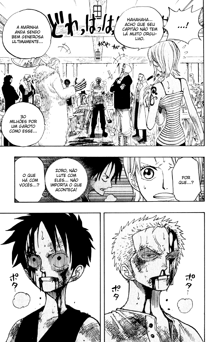 Capítulo 1 - Romance DawnCapítulo 1 - Romance Dawn ~O Alvorecer da Aventura~Capítulo 2 - O Garoto "Luffy do Chapéu de Palha"Capítulo 3 - Surge Zoro, o Caçador de PiratasCapítulo 3 - Zoro, O Caçador de PiratasCapítulo 4 - O Capitão da Marinha "Morgan Braço de Machado"Capítulo 5 - O Rei dos Piratas e o Melhor EspadachimCapítulo 6 - O Primeiro do BandoCapítulo 7 - AmigosCapítulo 8 - Apresentando NamiCapítulo 9 - Mulher DiabólicaCapítulo 10 - Incidente na TavernaCapítulo 11 - VôoCapítulo 12 - CãoCapítulo 13 - TesouroCapítulo 14 - Imprudência!!Capítulo 15 - GongoCapítulo 16 - Contra!! O Bando Pirata do BuggyCapítulo 17 - AvaliaçãoCapítulo 18 - O Pirata "Buggy, o Palhaço"Capítulo 19 - Akuma no MiCapítulo 20 - A Filosofia da LadraCapítulo 21 - CidadãosCapítulo 22 - Você é um Espécime RaroCapítulo 23 - Apresentando Capitão UsoppCapítulo 24 - Coisas Que Não se Pode MentirCapítulo 25 - 800 MentirasCapítulo 26 - O Plano do Capitão KuroCapítulo 27 - PlanoCapítulo 28 - Lua CrescenteCapítulo 29 - A LadeiraCapítulo 30 - Excelente!!!Capítulo 31 - A VerdadeCapítulo 32 - Grande InfortúnioCapítulo 33 - O Homem SorrateiroCapítulo 34 - O Mordomo KlahadorCapítulo 35 - Ladeira ÍngremeCapítulo 36 - Perseguição!!Capítulo 37 - O Pirata "Kuro dos Mil Truques"Capítulo 38 - O Bando PirataCapítulo 39 - Para Quem o Sino TocaCapítulo 40 - O Bando Pirata do UsoppCapítulo 41 - Para o MarCapítulo 42 - Yosaku e JohnnyCapítulo 43 - Apresentando SanjiCapítulo 44 - Os Três CozinheirosCapítulo 45 - Antes da TempestadeCapítulo 46 - Convidado InesperadoCapítulo 47 - Almirante da Frota Pirata, "Don Krieg"Capítulo 48 - Não Vá Para Aquela RotaCapítulo 49 - TempestadeCapítulo 50 - Meu Próprio DestinoCapítulo 51 - Roronoa Zoro Cai no MarCapítulo 52 - JuramentoCapítulo 53 - Peixe Pequeno Nº 1Capítulo 54 - Pearl-sanCapítulo 55 - Floresta SangrentaCapítulo 56 - De Jeito NenhumCapítulo 57 - Por Trás do SonhoCapítulo 58 - Velho de MerdaCapítulo 59 - DívidaCapítulo 60 - Pagando a DívidaCapítulo 61 - DemônioCapítulo 62 - MH5Capítulo 63 - Não Vou MorrerCapítulo 64 - A Arma SupremaCapítulo 65 - Prepare-seCapítulo 66 - A Lança é DestruídaCapítulo 67 - SopaCapítulo 68 - O Quarto do BandoCapítulo 69 - Arlong ParkCapítulo 70 - A Grande Aventura do Homem UsoppCapítulo 71 - O Senhor da CriaçãoCapítulo 72 - Vivendo AdequadamenteCapítulo 73 - O Monstro Vindo da Grand LineCapítulo 74 - NegóciosCapítulo 75 - Mapas e TritõesCapítulo 76 - DormirCapítulo 77 - O Primeiro Passo do SonhoCapítulo 78 - Bellemère-sanCapítulo 79 - ViverCapítulo 80 - Uma Ladra é uma LadraCapítulo 81 - LágrimasCapítulo 82 - Certo, Vamos LEVANTAR!Capítulo 83 - Luffy de PretoCapítulo 84 - ZumbiCapítulo 85 - Santouryuu Contra RokutouryuuCapítulo 86 - Heroísmo VS Karate TritãoCapítulo 87 - Acabou!!Capítulo 88 - Morra!!!Capítulo 89 - TrocaCapítulo 90 - O Que Você Pode Fazer?Capítulo 91 - DardosCapítulo 92 - FelicidadeCapítulo 93 - DemolindoCapítulo 94 - A Segunda do BandoCapítulo 95 - Gire Cata-ventoCapítulo 96 - O Pior Homem do LesteCapítulo 97 - Kitetsu TerceiraCapítulo 98 - Nunvens NegrasCapítulo 99 - Luffy é MortoCapítulo 100 - O Início de uma LendaCapítulo 101 - Reverse MountainCapítulo 102 - Agora, a Grand LineCapítulo 103 - BaleiaCapítulo 104 - O Cabo da PromessaCapítulo 105 - Log PoseCapítulo 106 - A Cidade HospitaleiraCapítulo 107 - Luar e SepulturasCapítulo 108 - 100 Caçadores de RecompensasCapítulo 109 - Problemas de ResponsabilidadeCapítulo 110 - Noite Sem FimCapítulo 111 - Sindicato Secreto de CrimesCapítulo 112 - ZoroCapítulo 113 - Está Tudo Bem!!!Capítulo 114 - RotaCapítulo 115 - Aventura em Little GardenCapítulo 116 - GigantesCapítulo 117 - BrogyCapítulo 118 - Há Alguém AquiCapítulo 119 - Golpe BaixoCapítulo 120 - O Ogro Vermelho ChoraCapítulo 121 - Eu SabiaCapítulo 122 - Um Peso Morto Não AjudaCapítulo 123 - Mr. 3Capítulo 124 - Maldito Chá DeliciosoCapítulo 125 - Candle ChampionCapítulo 126 - InstintoCapítulo 127 - Denden-mushiCapítulo 128 - Orgulho PirataCapítulo 129 - Seguir em Frente!!!Capítulo 130 - Velocidade MáximaCapítulo 131 - Wapol, o BlikCapítulo 132 - Vê?Capítulo 133 - Aventura no País Sem NomeCapítulo 134 - Dra. KurehaCapítulo 135 - LapahnCapítulo 136 - O Homem Chamado DoltonCapítulo 137 - AvalancheCapítulo 138 - TopoCapítulo 139 - Apresentando Tony Tony ChopperCapítulo 140 - Vivendo num Castelo de NeveCapítulo 141 - CurandeiroCapítulo 142 - Caveira e Flores de CerejeiraCapítulo 143 - DesajeitadoCapítulo 144 - Um Conto de InvernoCapítulo 145 - Determinação HerdadaCapítulo 146 - Batalha para Defender o PaísCapítulo 147 - FraudeCapítulo 148 - IndestrutívelCapítulo 149 - Estrondo!!Capítulo 150 - O Canhão Bliking de 7 Tiros da Coroa Real de DrumCapítulo 151 - O Céu de DrumCapítulo 152 - Lua CheiaCapítulo 153 - As Flores de Cerejeira do HirulukCapítulo 154 - Para AlabastaCapítulo 155 - O Pirata Sir CrocodileCapítulo 156 - Clima OkamaCapítulo 157 - Apresentando AceCapítulo 158 - Desembracando em AlabastaCapítulo 159 - VenhaCapítulo 160 - 8:00 pm no Spiders CaféCapítulo 161 - Erumalu, a Cidade VerdeCapítulo 162 - Aventura no País DesérticoCapítulo 163 - Yuba, a Cidade da Armada RebeldeCapítulo 164 - Eu Amo Esse PaísCapítulo 165 - Operação: UtopiaCapítulo 166 - Luffy VS ViviCapítulo 167 - Linha de FrenteCapítulo 168 - Rainbase, a Cidade dos SonhosCapítulo 169 - O Guerreiro Mais Forte do ReinoCapítulo 170 - ComeçaCapítulo 171 - Koza, o Líder da Armada RebeldeCapítulo 172 - RebeliãoCapítulo 173 - Crocodilos-bananaCapítulo 174 - Mr. PríncipeCapítulo 175 - LibertaçãoCapítulo 176 - Corram!!Capítulo 177 - 30 Milhões VS 81 MilhõesCapítulo 178 - Nível G. L.Capítulo 179 - Batalha Decisiva em AlubarnaCapítulo 180 - A Fauna de AlabastaCapítulo 181 - O Quiz dos Super Patos-de-Bico-ListradoCapítulo 182 - RugidoCapítulo 