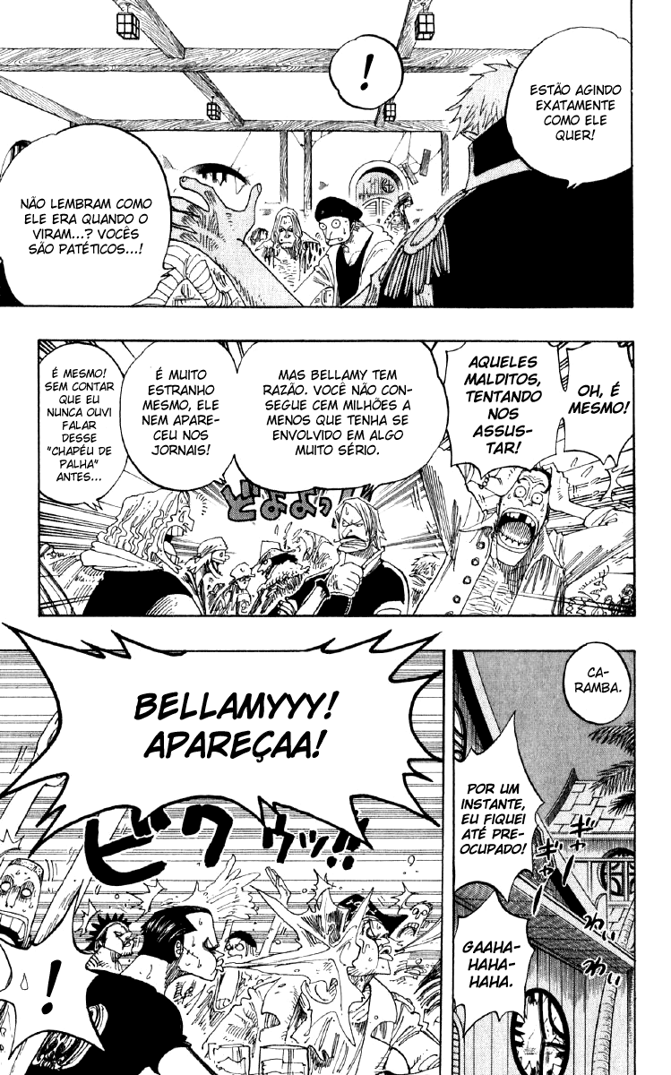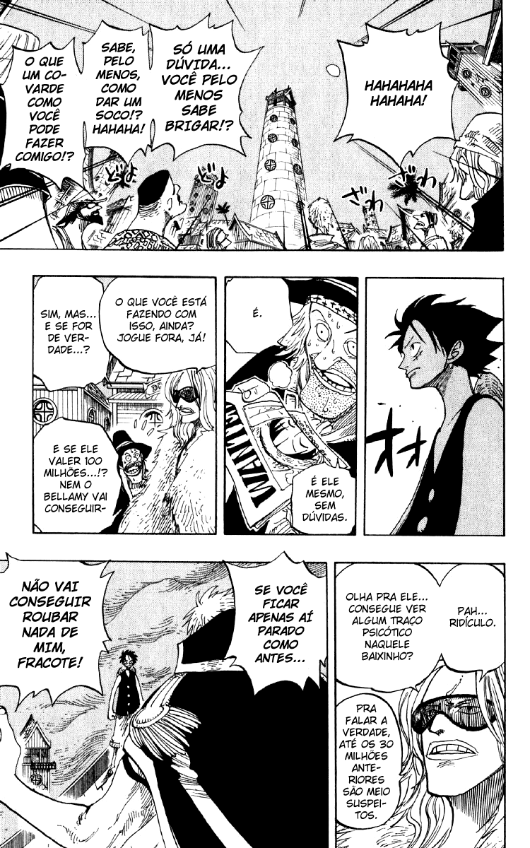 Capítulo 1 - Romance DawnCapítulo 1 - Romance Dawn ~O Alvorecer da Aventura~Capítulo 2 - O Garoto "Luffy do Chapéu de Palha"Capítulo 3 - Surge Zoro, o Caçador de PiratasCapítulo 3 - Zoro, O Caçador de PiratasCapítulo 4 - O Capitão da Marinha "Morgan Braço de Machado"Capítulo 5 - O Rei dos Piratas e o Melhor EspadachimCapítulo 6 - O Primeiro do BandoCapítulo 7 - AmigosCapítulo 8 - Apresentando NamiCapítulo 9 - Mulher DiabólicaCapítulo 10 - Incidente na TavernaCapítulo 11 - VôoCapítulo 12 - CãoCapítulo 13 - TesouroCapítulo 14 - Imprudência!!Capítulo 15 - GongoCapítulo 16 - Contra!! O Bando Pirata do BuggyCapítulo 17 - AvaliaçãoCapítulo 18 - O Pirata "Buggy, o Palhaço"Capítulo 19 - Akuma no MiCapítulo 20 - A Filosofia da LadraCapítulo 21 - CidadãosCapítulo 22 - Você é um Espécime RaroCapítulo 23 - Apresentando Capitão UsoppCapítulo 24 - Coisas Que Não se Pode MentirCapítulo 25 - 800 MentirasCapítulo 26 - O Plano do Capitão KuroCapítulo 27 - PlanoCapítulo 28 - Lua CrescenteCapítulo 29 - A LadeiraCapítulo 30 - Excelente!!!Capítulo 31 - A VerdadeCapítulo 32 - Grande InfortúnioCapítulo 33 - O Homem SorrateiroCapítulo 34 - O Mordomo KlahadorCapítulo 35 - Ladeira ÍngremeCapítulo 36 - Perseguição!!Capítulo 37 - O Pirata "Kuro dos Mil Truques"Capítulo 38 - O Bando PirataCapítulo 39 - Para Quem o Sino TocaCapítulo 40 - O Bando Pirata do UsoppCapítulo 41 - Para o MarCapítulo 42 - Yosaku e JohnnyCapítulo 43 - Apresentando SanjiCapítulo 44 - Os Três CozinheirosCapítulo 45 - Antes da TempestadeCapítulo 46 - Convidado InesperadoCapítulo 47 - Almirante da Frota Pirata, "Don Krieg"Capítulo 48 - Não Vá Para Aquela RotaCapítulo 49 - TempestadeCapítulo 50 - Meu Próprio DestinoCapítulo 51 - Roronoa Zoro Cai no MarCapítulo 52 - JuramentoCapítulo 53 - Peixe Pequeno Nº 1Capítulo 54 - Pearl-sanCapítulo 55 - Floresta SangrentaCapítulo 56 - De Jeito NenhumCapítulo 57 - Por Trás do SonhoCapítulo 58 - Velho de MerdaCapítulo 59 - DívidaCapítulo 60 - Pagando a DívidaCapítulo 61 - DemônioCapítulo 62 - MH5Capítulo 63 - Não Vou MorrerCapítulo 64 - A Arma SupremaCapítulo 65 - Prepare-seCapítulo 66 - A Lança é DestruídaCapítulo 67 - SopaCapítulo 68 - O Quarto do BandoCapítulo 69 - Arlong ParkCapítulo 70 - A Grande Aventura do Homem UsoppCapítulo 71 - O Senhor da CriaçãoCapítulo 72 - Vivendo AdequadamenteCapítulo 73 - O Monstro Vindo da Grand LineCapítulo 74 - NegóciosCapítulo 75 - Mapas e TritõesCapítulo 76 - DormirCapítulo 77 - O Primeiro Passo do SonhoCapítulo 78 - Bellemère-sanCapítulo 79 - ViverCapítulo 80 - Uma Ladra é uma LadraCapítulo 81 - LágrimasCapítulo 82 - Certo, Vamos LEVANTAR!Capítulo 83 - Luffy de PretoCapítulo 84 - ZumbiCapítulo 85 - Santouryuu Contra RokutouryuuCapítulo 86 - Heroísmo VS Karate TritãoCapítulo 87 - Acabou!!Capítulo 88 - Morra!!!Capítulo 89 - TrocaCapítulo 90 - O Que Você Pode Fazer?Capítulo 91 - DardosCapítulo 92 - FelicidadeCapítulo 93 - DemolindoCapítulo 94 - A Segunda do BandoCapítulo 95 - Gire Cata-ventoCapítulo 96 - O Pior Homem do LesteCapítulo 97 - Kitetsu TerceiraCapítulo 98 - Nunvens NegrasCapítulo 99 - Luffy é MortoCapítulo 100 - O Início de uma LendaCapítulo 101 - Reverse MountainCapítulo 102 - Agora, a Grand LineCapítulo 103 - BaleiaCapítulo 104 - O Cabo da PromessaCapítulo 105 - Log PoseCapítulo 106 - A Cidade HospitaleiraCapítulo 107 - Luar e SepulturasCapítulo 108 - 100 Caçadores de RecompensasCapítulo 109 - Problemas de ResponsabilidadeCapítulo 110 - Noite Sem FimCapítulo 111 - Sindicato Secreto de CrimesCapítulo 112 - ZoroCapítulo 113 - Está Tudo Bem!!!Capítulo 114 - RotaCapítulo 115 - Aventura em Little GardenCapítulo 116 - GigantesCapítulo 117 - BrogyCapítulo 118 - Há Alguém AquiCapítulo 119 - Golpe BaixoCapítulo 120 - O Ogro Vermelho ChoraCapítulo 121 - Eu SabiaCapítulo 122 - Um Peso Morto Não AjudaCapítulo 123 - Mr. 3Capítulo 124 - Maldito Chá DeliciosoCapítulo 125 - Candle ChampionCapítulo 126 - InstintoCapítulo 127 - Denden-mushiCapítulo 128 - Orgulho PirataCapítulo 129 - Seguir em Frente!!!Capítulo 130 - Velocidade MáximaCapítulo 131 - Wapol, o BlikCapítulo 132 - Vê?Capítulo 133 - Aventura no País Sem NomeCapítulo 134 - Dra. KurehaCapítulo 135 - LapahnCapítulo 136 - O Homem Chamado DoltonCapítulo 137 - AvalancheCapítulo 138 - TopoCapítulo 139 - Apresentando Tony Tony ChopperCapítulo 140 - Vivendo num Castelo de NeveCapítulo 141 - CurandeiroCapítulo 142 - Caveira e Flores de CerejeiraCapítulo 143 - DesajeitadoCapítulo 144 - Um Conto de InvernoCapítulo 145 - Determinação HerdadaCapítulo 146 - Batalha para Defender o PaísCapítulo 147 - FraudeCapítulo 148 - IndestrutívelCapítulo 149 - Estrondo!!Capítulo 150 - O Canhão Bliking de 7 Tiros da Coroa Real de DrumCapítulo 151 - O Céu de DrumCapítulo 152 - Lua CheiaCapítulo 153 - As Flores de Cerejeira do HirulukCapítulo 154 - Para AlabastaCapítulo 155 - O Pirata Sir CrocodileCapítulo 156 - Clima OkamaCapítulo 157 - Apresentando AceCapítulo 158 - Desembracando em AlabastaCapítulo 159 - VenhaCapítulo 160 - 8:00 pm no Spiders CaféCapítulo 161 - Erumalu, a Cidade VerdeCapítulo 162 - Aventura no País DesérticoCapítulo 163 - Yuba, a Cidade da Armada RebeldeCapítulo 164 - Eu Amo Esse PaísCapítulo 165 - Operação: UtopiaCapítulo 166 - Luffy VS ViviCapítulo 167 - Linha de FrenteCapítulo 168 - Rainbase, a Cidade dos SonhosCapítulo 169 - O Guerreiro Mais Forte do ReinoCapítulo 170 - ComeçaCapítulo 171 - Koza, o Líder da Armada RebeldeCapítulo 172 - RebeliãoCapítulo 173 - Crocodilos-bananaCapítulo 174 - Mr. PríncipeCapítulo 175 - LibertaçãoCapítulo 176 - Corram!!Capítulo 177 - 30 Milhões VS 81 MilhõesCapítulo 178 - Nível G. L.Capítulo 179 - Batalha Decisiva em AlubarnaCapítulo 180 - A Fauna de AlabastaCapítulo 181 - O Quiz dos Super Patos-de-Bico-ListradoCapítulo 182 - RugidoCapítulo 