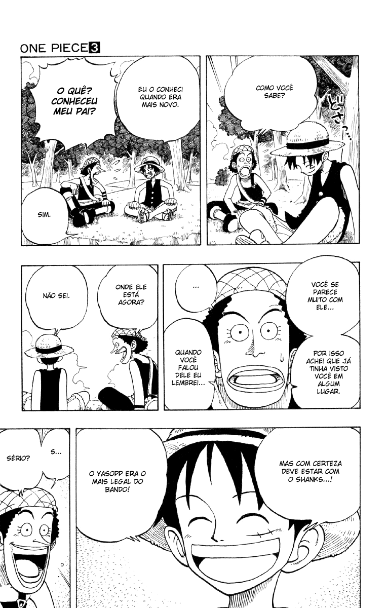Capítulo 1 - Romance DawnCapítulo 1 - Romance Dawn ~O Alvorecer da Aventura~Capítulo 2 - O Garoto "Luffy do Chapéu de Palha"Capítulo 3 - Surge Zoro, o Caçador de PiratasCapítulo 3 - Zoro, O Caçador de PiratasCapítulo 4 - O Capitão da Marinha "Morgan Braço de Machado"Capítulo 5 - O Rei dos Piratas e o Melhor EspadachimCapítulo 6 - O Primeiro do BandoCapítulo 7 - AmigosCapítulo 8 - Apresentando NamiCapítulo 9 - Mulher DiabólicaCapítulo 10 - Incidente na TavernaCapítulo 11 - VôoCapítulo 12 - CãoCapítulo 13 - TesouroCapítulo 14 - Imprudência!!Capítulo 15 - GongoCapítulo 16 - Contra!! O Bando Pirata do BuggyCapítulo 17 - AvaliaçãoCapítulo 18 - O Pirata "Buggy, o Palhaço"Capítulo 19 - Akuma no MiCapítulo 20 - A Filosofia da LadraCapítulo 21 - CidadãosCapítulo 22 - Você é um Espécime RaroCapítulo 23 - Apresentando Capitão UsoppCapítulo 24 - Coisas Que Não se Pode MentirCapítulo 25 - 800 MentirasCapítulo 26 - O Plano do Capitão KuroCapítulo 27 - PlanoCapítulo 28 - Lua CrescenteCapítulo 29 - A LadeiraCapítulo 30 - Excelente!!!Capítulo 31 - A VerdadeCapítulo 32 - Grande InfortúnioCapítulo 33 - O Homem SorrateiroCapítulo 34 - O Mordomo KlahadorCapítulo 35 - Ladeira ÍngremeCapítulo 36 - Perseguição!!Capítulo 37 - O Pirata "Kuro dos Mil Truques"Capítulo 38 - O Bando PirataCapítulo 39 - Para Quem o Sino TocaCapítulo 40 - O Bando Pirata do UsoppCapítulo 41 - Para o MarCapítulo 42 - Yosaku e JohnnyCapítulo 43 - Apresentando SanjiCapítulo 44 - Os Três CozinheirosCapítulo 45 - Antes da TempestadeCapítulo 46 - Convidado InesperadoCapítulo 47 - Almirante da Frota Pirata, "Don Krieg"Capítulo 48 - Não Vá Para Aquela RotaCapítulo 49 - TempestadeCapítulo 50 - Meu Próprio DestinoCapítulo 51 - Roronoa Zoro Cai no MarCapítulo 52 - JuramentoCapítulo 53 - Peixe Pequeno Nº 1Capítulo 54 - Pearl-sanCapítulo 55 - Floresta SangrentaCapítulo 56 - De Jeito NenhumCapítulo 57 - Por Trás do SonhoCapítulo 58 - Velho de MerdaCapítulo 59 - DívidaCapítulo 60 - Pagando a DívidaCapítulo 61 - DemônioCapítulo 62 - MH5Capítulo 63 - Não Vou MorrerCapítulo 64 - A Arma SupremaCapítulo 65 - Prepare-seCapítulo 66 - A Lança é DestruídaCapítulo 67 - SopaCapítulo 68 - O Quarto do BandoCapítulo 69 - Arlong ParkCapítulo 70 - A Grande Aventura do Homem UsoppCapítulo 71 - O Senhor da CriaçãoCapítulo 72 - Vivendo AdequadamenteCapítulo 73 - O Monstro Vindo da Grand LineCapítulo 74 - NegóciosCapítulo 75 - Mapas e TritõesCapítulo 76 - DormirCapítulo 77 - O Primeiro Passo do SonhoCapítulo 78 - Bellemère-sanCapítulo 79 - ViverCapítulo 80 - Uma Ladra é uma LadraCapítulo 81 - LágrimasCapítulo 82 - Certo, Vamos LEVANTAR!Capítulo 83 - Luffy de PretoCapítulo 84 - ZumbiCapítulo 85 - Santouryuu Contra RokutouryuuCapítulo 86 - Heroísmo VS Karate TritãoCapítulo 87 - Acabou!!Capítulo 88 - Morra!!!Capítulo 89 - TrocaCapítulo 90 - O Que Você Pode Fazer?Capítulo 91 - DardosCapítulo 92 - FelicidadeCapítulo 93 - DemolindoCapítulo 94 - A Segunda do BandoCapítulo 95 - Gire Cata-ventoCapítulo 96 - O Pior Homem do LesteCapítulo 97 - Kitetsu TerceiraCapítulo 98 - Nunvens NegrasCapítulo 99 - Luffy é MortoCapítulo 100 - O Início de uma LendaCapítulo 101 - Reverse MountainCapítulo 102 - Agora, a Grand LineCapítulo 103 - BaleiaCapítulo 104 - O Cabo da PromessaCapítulo 105 - Log PoseCapítulo 106 - A Cidade HospitaleiraCapítulo 107 - Luar e SepulturasCapítulo 108 - 100 Caçadores de RecompensasCapítulo 109 - Problemas de ResponsabilidadeCapítulo 110 - Noite Sem FimCapítulo 111 - Sindicato Secreto de CrimesCapítulo 112 - ZoroCapítulo 113 - Está Tudo Bem!!!Capítulo 114 - RotaCapítulo 115 - Aventura em Little GardenCapítulo 116 - GigantesCapítulo 117 - BrogyCapítulo 118 - Há Alguém AquiCapítulo 119 - Golpe BaixoCapítulo 120 - O Ogro Vermelho ChoraCapítulo 121 - Eu SabiaCapítulo 122 - Um Peso Morto Não AjudaCapítulo 123 - Mr. 3Capítulo 124 - Maldito Chá DeliciosoCapítulo 125 - Candle ChampionCapítulo 126 - InstintoCapítulo 127 - Denden-mushiCapítulo 128 - Orgulho PirataCapítulo 129 - Seguir em Frente!!!Capítulo 130 - Velocidade MáximaCapítulo 131 - Wapol, o BlikCapítulo 132 - Vê?Capítulo 133 - Aventura no País Sem NomeCapítulo 134 - Dra. KurehaCapítulo 135 - LapahnCapítulo 136 - O Homem Chamado DoltonCapítulo 137 - AvalancheCapítulo 138 - TopoCapítulo 139 - Apresentando Tony Tony ChopperCapítulo 140 - Vivendo num Castelo de NeveCapítulo 141 - CurandeiroCapítulo 142 - Caveira e Flores de CerejeiraCapítulo 143 - DesajeitadoCapítulo 144 - Um Conto de InvernoCapítulo 145 - Determinação HerdadaCapítulo 146 - Batalha para Defender o PaísCapítulo 147 - FraudeCapítulo 148 - IndestrutívelCapítulo 149 - Estrondo!!Capítulo 150 - O Canhão Bliking de 7 Tiros da Coroa Real de DrumCapítulo 151 - O Céu de DrumCapítulo 152 - Lua CheiaCapítulo 153 - As Flores de Cerejeira do HirulukCapítulo 154 - Para AlabastaCapítulo 155 - O Pirata Sir CrocodileCapítulo 156 - Clima OkamaCapítulo 157 - Apresentando AceCapítulo 158 - Desembracando em AlabastaCapítulo 159 - VenhaCapítulo 160 - 8:00 pm no Spiders CaféCapítulo 161 - Erumalu, a Cidade VerdeCapítulo 162 - Aventura no País DesérticoCapítulo 163 - Yuba, a Cidade da Armada RebeldeCapítulo 164 - Eu Amo Esse PaísCapítulo 165 - Operação: UtopiaCapítulo 166 - Luffy VS ViviCapítulo 167 - Linha de FrenteCapítulo 168 - Rainbase, a Cidade dos SonhosCapítulo 169 - O Guerreiro Mais Forte do ReinoCapítulo 170 - ComeçaCapítulo 171 - Koza, o Líder da Armada RebeldeCapítulo 172 - RebeliãoCapítulo 173 - Crocodilos-bananaCapítulo 174 - Mr. PríncipeCapítulo 175 - LibertaçãoCapítulo 176 - Corram!!Capítulo 177 - 30 Milhões VS 81 MilhõesCapítulo 178 - Nível G. L.Capítulo 179 - Batalha Decisiva em AlubarnaCapítulo 180 - A Fauna de AlabastaCapítulo 181 - O Quiz dos Super Patos-de-Bico-ListradoCapítulo 182 - RugidoCapítulo 