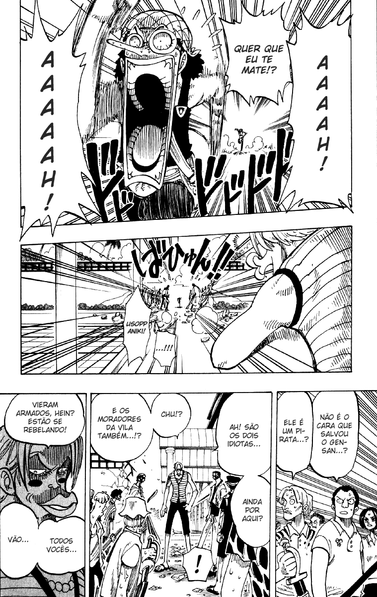 Capítulo 1 - Romance DawnCapítulo 1 - Romance Dawn ~O Alvorecer da Aventura~Capítulo 2 - O Garoto "Luffy do Chapéu de Palha"Capítulo 3 - Surge Zoro, o Caçador de PiratasCapítulo 3 - Zoro, O Caçador de PiratasCapítulo 4 - O Capitão da Marinha "Morgan Braço de Machado"Capítulo 5 - O Rei dos Piratas e o Melhor EspadachimCapítulo 6 - O Primeiro do BandoCapítulo 7 - AmigosCapítulo 8 - Apresentando NamiCapítulo 9 - Mulher DiabólicaCapítulo 10 - Incidente na TavernaCapítulo 11 - VôoCapítulo 12 - CãoCapítulo 13 - TesouroCapítulo 14 - Imprudência!!Capítulo 15 - GongoCapítulo 16 - Contra!! O Bando Pirata do BuggyCapítulo 17 - AvaliaçãoCapítulo 18 - O Pirata "Buggy, o Palhaço"Capítulo 19 - Akuma no MiCapítulo 20 - A Filosofia da LadraCapítulo 21 - CidadãosCapítulo 22 - Você é um Espécime RaroCapítulo 23 - Apresentando Capitão UsoppCapítulo 24 - Coisas Que Não se Pode MentirCapítulo 25 - 800 MentirasCapítulo 26 - O Plano do Capitão KuroCapítulo 27 - PlanoCapítulo 28 - Lua CrescenteCapítulo 29 - A LadeiraCapítulo 30 - Excelente!!!Capítulo 31 - A VerdadeCapítulo 32 - Grande InfortúnioCapítulo 33 - O Homem SorrateiroCapítulo 34 - O Mordomo KlahadorCapítulo 35 - Ladeira ÍngremeCapítulo 36 - Perseguição!!Capítulo 37 - O Pirata "Kuro dos Mil Truques"Capítulo 38 - O Bando PirataCapítulo 39 - Para Quem o Sino TocaCapítulo 40 - O Bando Pirata do UsoppCapítulo 41 - Para o MarCapítulo 42 - Yosaku e JohnnyCapítulo 43 - Apresentando SanjiCapítulo 44 - Os Três CozinheirosCapítulo 45 - Antes da TempestadeCapítulo 46 - Convidado InesperadoCapítulo 47 - Almirante da Frota Pirata, "Don Krieg"Capítulo 48 - Não Vá Para Aquela RotaCapítulo 49 - TempestadeCapítulo 50 - Meu Próprio DestinoCapítulo 51 - Roronoa Zoro Cai no MarCapítulo 52 - JuramentoCapítulo 53 - Peixe Pequeno Nº 1Capítulo 54 - Pearl-sanCapítulo 55 - Floresta SangrentaCapítulo 56 - De Jeito NenhumCapítulo 57 - Por Trás do SonhoCapítulo 58 - Velho de MerdaCapítulo 59 - DívidaCapítulo 60 - Pagando a DívidaCapítulo 61 - DemônioCapítulo 62 - MH5Capítulo 63 - Não Vou MorrerCapítulo 64 - A Arma SupremaCapítulo 65 - Prepare-seCapítulo 66 - A Lança é DestruídaCapítulo 67 - SopaCapítulo 68 - O Quarto do BandoCapítulo 69 - Arlong ParkCapítulo 70 - A Grande Aventura do Homem UsoppCapítulo 71 - O Senhor da CriaçãoCapítulo 72 - Vivendo AdequadamenteCapítulo 73 - O Monstro Vindo da Grand LineCapítulo 74 - NegóciosCapítulo 75 - Mapas e TritõesCapítulo 76 - DormirCapítulo 77 - O Primeiro Passo do SonhoCapítulo 78 - Bellemère-sanCapítulo 79 - ViverCapítulo 80 - Uma Ladra é uma LadraCapítulo 81 - LágrimasCapítulo 82 - Certo, Vamos LEVANTAR!Capítulo 83 - Luffy de PretoCapítulo 84 - ZumbiCapítulo 85 - Santouryuu Contra RokutouryuuCapítulo 86 - Heroísmo VS Karate TritãoCapítulo 87 - Acabou!!Capítulo 88 - Morra!!!Capítulo 89 - TrocaCapítulo 90 - O Que Você Pode Fazer?Capítulo 91 - DardosCapítulo 92 - FelicidadeCapítulo 93 - DemolindoCapítulo 94 - A Segunda do BandoCapítulo 95 - Gire Cata-ventoCapítulo 96 - O Pior Homem do LesteCapítulo 97 - Kitetsu TerceiraCapítulo 98 - Nunvens NegrasCapítulo 99 - Luffy é MortoCapítulo 100 - O Início de uma LendaCapítulo 101 - Reverse MountainCapítulo 102 - Agora, a Grand LineCapítulo 103 - BaleiaCapítulo 104 - O Cabo da PromessaCapítulo 105 - Log PoseCapítulo 106 - A Cidade HospitaleiraCapítulo 107 - Luar e SepulturasCapítulo 108 - 100 Caçadores de RecompensasCapítulo 109 - Problemas de ResponsabilidadeCapítulo 110 - Noite Sem FimCapítulo 111 - Sindicato Secreto de CrimesCapítulo 112 - ZoroCapítulo 113 - Está Tudo Bem!!!Capítulo 114 - RotaCapítulo 115 - Aventura em Little GardenCapítulo 116 - GigantesCapítulo 117 - BrogyCapítulo 118 - Há Alguém AquiCapítulo 119 - Golpe BaixoCapítulo 120 - O Ogro Vermelho ChoraCapítulo 121 - Eu SabiaCapítulo 122 - Um Peso Morto Não AjudaCapítulo 123 - Mr. 3Capítulo 124 - Maldito Chá DeliciosoCapítulo 125 - Candle ChampionCapítulo 126 - InstintoCapítulo 127 - Denden-mushiCapítulo 128 - Orgulho PirataCapítulo 129 - Seguir em Frente!!!Capítulo 130 - Velocidade MáximaCapítulo 131 - Wapol, o BlikCapítulo 132 - Vê?Capítulo 133 - Aventura no País Sem NomeCapítulo 134 - Dra. KurehaCapítulo 135 - LapahnCapítulo 136 - O Homem Chamado DoltonCapítulo 137 - AvalancheCapítulo 138 - TopoCapítulo 139 - Apresentando Tony Tony ChopperCapítulo 140 - Vivendo num Castelo de NeveCapítulo 141 - CurandeiroCapítulo 142 - Caveira e Flores de CerejeiraCapítulo 143 - DesajeitadoCapítulo 144 - Um Conto de InvernoCapítulo 145 - Determinação HerdadaCapítulo 146 - Batalha para Defender o PaísCapítulo 147 - FraudeCapítulo 148 - IndestrutívelCapítulo 149 - Estrondo!!Capítulo 150 - O Canhão Bliking de 7 Tiros da Coroa Real de DrumCapítulo 151 - O Céu de DrumCapítulo 152 - Lua CheiaCapítulo 153 - As Flores de Cerejeira do HirulukCapítulo 154 - Para AlabastaCapítulo 155 - O Pirata Sir CrocodileCapítulo 156 - Clima OkamaCapítulo 157 - Apresentando AceCapítulo 158 - Desembracando em AlabastaCapítulo 159 - VenhaCapítulo 160 - 8:00 pm no Spiders CaféCapítulo 161 - Erumalu, a Cidade VerdeCapítulo 162 - Aventura no País DesérticoCapítulo 163 - Yuba, a Cidade da Armada RebeldeCapítulo 164 - Eu Amo Esse PaísCapítulo 165 - Operação: UtopiaCapítulo 166 - Luffy VS ViviCapítulo 167 - Linha de FrenteCapítulo 168 - Rainbase, a Cidade dos SonhosCapítulo 169 - O Guerreiro Mais Forte do ReinoCapítulo 170 - ComeçaCapítulo 171 - Koza, o Líder da Armada RebeldeCapítulo 172 - RebeliãoCapítulo 173 - Crocodilos-bananaCapítulo 174 - Mr. PríncipeCapítulo 175 - LibertaçãoCapítulo 176 - Corram!!Capítulo 177 - 30 Milhões VS 81 MilhõesCapítulo 178 - Nível G. L.Capítulo 179 - Batalha Decisiva em AlubarnaCapítulo 180 - A Fauna de AlabastaCapítulo 181 - O Quiz dos Super Patos-de-Bico-ListradoCapítulo 182 - RugidoCapítulo 