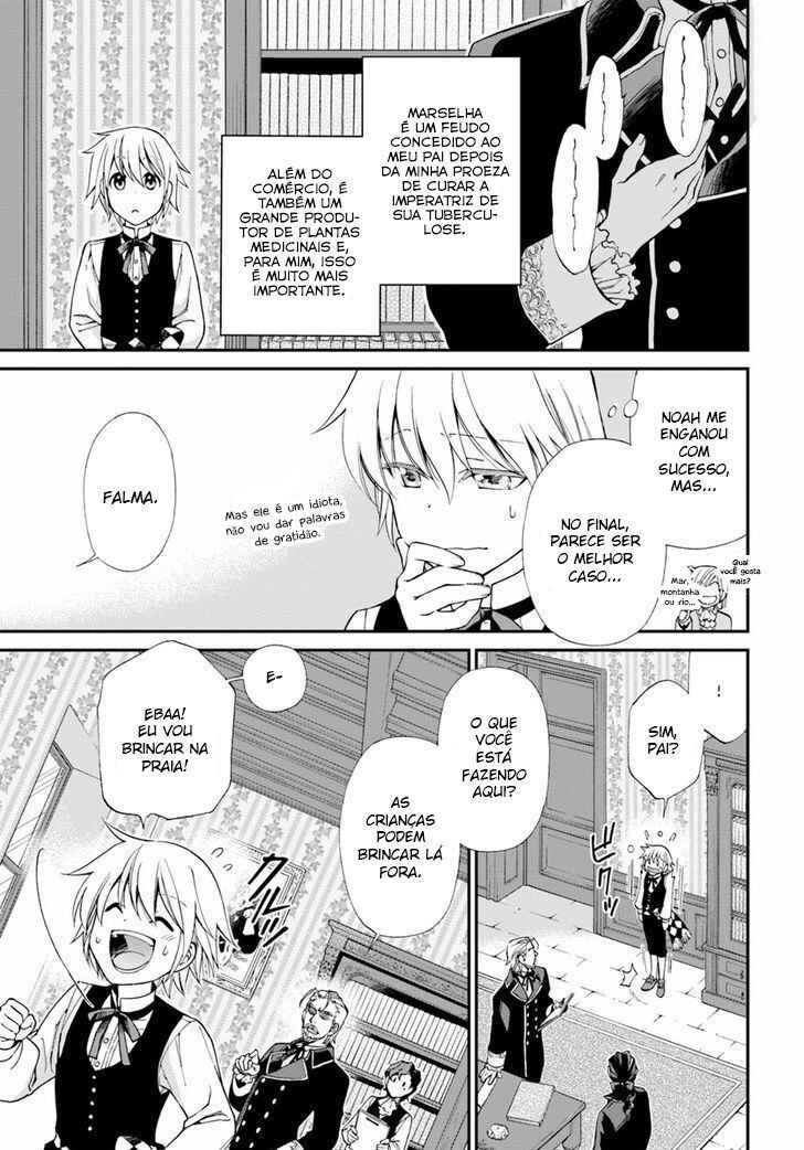 Capítulo 1 - O Farmacêutico que reviveu em outro mundoCapítulo 2 - Curso de artes divinas da EleanoraCapítulo 3Capítulo 4 - O exame médico da imperatriz Elizabeth IICapítulo 5Capítulo 6 - O ato constituinte da imperatrizCapítulo 7 - Estabelecendo a farmáciaCapítulo 8 - Abrindo uma farmácia em outro mundoCapítulo 9 - Cosméticos e tratamento bucalCapítulo 10.1 - A inspeção de Marselha, e o futuro da medicina (1)Capítulo 10.2 - A inspeção de Marselha, e o futuro da medicina (2)Capítulo 11 - Cotidiano em outro mundo farmacêutico, com a brigada do jaleco branco chegandoCapítulo 12 - O garoto sem sombra e a inquisição (1)Capítulo 13 - O garoto sem sombra e a inquisição (2)Capítulo 14 - O garoto sem sombra e a inquisição (3)Capítulo 15 - Baronesa Melodie Le RouxCapítulo 16 - Melodie, especialista e artesã das chamas médicas Capítulo 17.1 - Influenza e o caso de um certo farmacêutico (1)Capítulo 17.2 - Influenza e o caso de um certo farmacêutico (2)Capítulo 17.3 - Influenza e o caso de um certo farmacêutico (3)Capítulo 18 - Magia de FalmaCapítulo 19 - Cajado do Deus da medicina Capítulo 20.1 - O retorno de Palle (1)Capítulo 20.2 - O retorno de Palle (2)Capítulo 21 - Tecnologia de ponta Capítulo 22 - Os soluços da LotteCapítulo 23 - A expedição de Palle pela capitalCapítulo 24.1 - A chegada da Peste Negra (1)Capítulo 24.2 - A chegada da Peste Negra (2)Capítulo 25 - O caminho para a quarentena (1)Capítulo 26 - O caminho para a quarentena (2)Capítulo 27.1 - Um presságio Milagroso e a destacável Actinobactéria (1)Capítulo 27.2 - Um presságio Milagroso e a destacável Actinobactéria (2)Capítulo 28 - O início dos diagnósticos Capítulo 29 - A medicina moderna e as artes divinasCapítulo 30.1 - O melhor de cada um (1)Capítulo 30.2 - O melhor de cada um (2)Capítulo 31 - O vestígio de um culpadoCapítulo 32 - A capital de San Fleuve é atacadaCapítulo 33 - A capital em caosCapítulo 34 - A história de um certo homem mauCapítulo 35.1 - "Voltando à capital" (1)Capítulo 35.2 - "Voltando à capital" (2)Capítulo 36 - A presa venenosa do espírito malignoCapítulo 37 - Aquele que não pode ser salvoCapítulo 38 - A luta dos farmacêuticosCapítulo 39 - O fim da peste negraCapítulo 40 - Buscadores de conhecimentoCapítulo 41 - Petição da universidade dos farmacêuticos imperiaisCapítulo 42 - Lord Melody Lu Lou e a invenção do estêncilCapítulo 43 - Termas e a marca incompleta do Deus do FogoCapítulo 44 - Presente para LotteCapítulo 44.2 - Presente para LotteCapítulo 45Capítulo 46 - Primeira Fábrica de Marseille