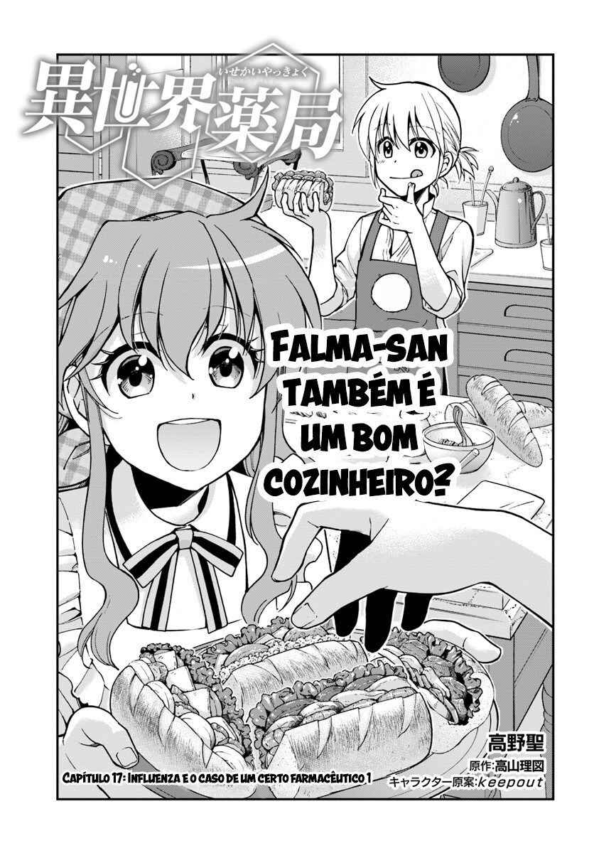 Capítulo 1 - O Farmacêutico que reviveu em outro mundoCapítulo 2 - Curso de artes divinas da EleanoraCapítulo 3Capítulo 4 - O exame médico da imperatriz Elizabeth IICapítulo 5Capítulo 6 - O ato constituinte da imperatrizCapítulo 7 - Estabelecendo a farmáciaCapítulo 8 - Abrindo uma farmácia em outro mundoCapítulo 9 - Cosméticos e tratamento bucalCapítulo 10.1 - A inspeção de Marselha, e o futuro da medicina (1)Capítulo 10.2 - A inspeção de Marselha, e o futuro da medicina (2)Capítulo 11 - Cotidiano em outro mundo farmacêutico, com a brigada do jaleco branco chegandoCapítulo 12 - O garoto sem sombra e a inquisição (1)Capítulo 13 - O garoto sem sombra e a inquisição (2)Capítulo 14 - O garoto sem sombra e a inquisição (3)Capítulo 15 - Baronesa Melodie Le RouxCapítulo 16 - Melodie, especialista e artesã das chamas médicas Capítulo 17.1 - Influenza e o caso de um certo farmacêutico (1)Capítulo 17.2 - Influenza e o caso de um certo farmacêutico (2)Capítulo 17.3 - Influenza e o caso de um certo farmacêutico (3)Capítulo 18 - Magia de FalmaCapítulo 19 - Cajado do Deus da medicina Capítulo 20.1 - O retorno de Palle (1)Capítulo 20.2 - O retorno de Palle (2)Capítulo 21 - Tecnologia de ponta Capítulo 22 - Os soluços da LotteCapítulo 23 - A expedição de Palle pela capitalCapítulo 24.1 - A chegada da Peste Negra (1)Capítulo 24.2 - A chegada da Peste Negra (2)Capítulo 25 - O caminho para a quarentena (1)Capítulo 26 - O caminho para a quarentena (2)Capítulo 27.1 - Um presságio Milagroso e a destacável Actinobactéria (1)Capítulo 27.2 - Um presságio Milagroso e a destacável Actinobactéria (2)Capítulo 28 - O início dos diagnósticos Capítulo 29 - A medicina moderna e as artes divinasCapítulo 30.1 - O melhor de cada um (1)Capítulo 30.2 - O melhor de cada um (2)Capítulo 31 - O vestígio de um culpadoCapítulo 32 - A capital de San Fleuve é atacadaCapítulo 33 - A capital em caosCapítulo 34 - A história de um certo homem mauCapítulo 35.1 - "Voltando à capital" (1)Capítulo 35.2 - "Voltando à capital" (2)Capítulo 36 - A presa venenosa do espírito malignoCapítulo 37 - Aquele que não pode ser salvoCapítulo 38 - A luta dos farmacêuticosCapítulo 39 - O fim da peste negraCapítulo 40 - Buscadores de conhecimentoCapítulo 41 - Petição da universidade dos farmacêuticos imperiaisCapítulo 42 - Lord Melody Lu Lou e a invenção do estêncilCapítulo 43 - Termas e a marca incompleta do Deus do FogoCapítulo 44 - Presente para LotteCapítulo 44.2 - Presente para LotteCapítulo 45Capítulo 46 - Primeira Fábrica de Marseille