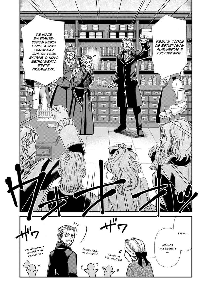 Capítulo 1 - O Farmacêutico que reviveu em outro mundoCapítulo 2 - Curso de artes divinas da EleanoraCapítulo 3Capítulo 4 - O exame médico da imperatriz Elizabeth IICapítulo 5Capítulo 6 - O ato constituinte da imperatrizCapítulo 7 - Estabelecendo a farmáciaCapítulo 8 - Abrindo uma farmácia em outro mundoCapítulo 9 - Cosméticos e tratamento bucalCapítulo 10.1 - A inspeção de Marselha, e o futuro da medicina (1)Capítulo 10.2 - A inspeção de Marselha, e o futuro da medicina (2)Capítulo 11 - Cotidiano em outro mundo farmacêutico, com a brigada do jaleco branco chegandoCapítulo 12 - O garoto sem sombra e a inquisição (1)Capítulo 13 - O garoto sem sombra e a inquisição (2)Capítulo 14 - O garoto sem sombra e a inquisição (3)Capítulo 15 - Baronesa Melodie Le RouxCapítulo 16 - Melodie, especialista e artesã das chamas médicas Capítulo 17.1 - Influenza e o caso de um certo farmacêutico (1)Capítulo 17.2 - Influenza e o caso de um certo farmacêutico (2)Capítulo 17.3 - Influenza e o caso de um certo farmacêutico (3)Capítulo 18 - Magia de FalmaCapítulo 19 - Cajado do Deus da medicina Capítulo 20.1 - O retorno de Palle (1)Capítulo 20.2 - O retorno de Palle (2)Capítulo 21 - Tecnologia de ponta Capítulo 22 - Os soluços da LotteCapítulo 23 - A expedição de Palle pela capitalCapítulo 24.1 - A chegada da Peste Negra (1)Capítulo 24.2 - A chegada da Peste Negra (2)Capítulo 25 - O caminho para a quarentena (1)Capítulo 26 - O caminho para a quarentena (2)Capítulo 27.1 - Um presságio Milagroso e a destacável Actinobactéria (1)Capítulo 27.2 - Um presságio Milagroso e a destacável Actinobactéria (2)Capítulo 28 - O início dos diagnósticos Capítulo 29 - A medicina moderna e as artes divinasCapítulo 30.1 - O melhor de cada um (1)Capítulo 30.2 - O melhor de cada um (2)Capítulo 31 - O vestígio de um culpadoCapítulo 32 - A capital de San Fleuve é atacadaCapítulo 33 - A capital em caosCapítulo 34 - A história de um certo homem mauCapítulo 35.1 - "Voltando à capital" (1)Capítulo 35.2 - "Voltando à capital" (2)Capítulo 36 - A presa venenosa do espírito malignoCapítulo 37 - Aquele que não pode ser salvoCapítulo 38 - A luta dos farmacêuticosCapítulo 39 - O fim da peste negraCapítulo 40 - Buscadores de conhecimentoCapítulo 41 - Petição da universidade dos farmacêuticos imperiaisCapítulo 42 - Lord Melody Lu Lou e a invenção do estêncilCapítulo 43 - Termas e a marca incompleta do Deus do FogoCapítulo 44 - Presente para LotteCapítulo 44.2 - Presente para LotteCapítulo 45Capítulo 46 - Primeira Fábrica de Marseille