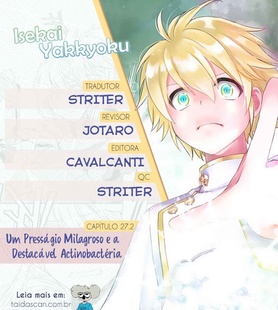 Capítulo 1 - O Farmacêutico que reviveu em outro mundoCapítulo 2 - Curso de artes divinas da EleanoraCapítulo 3Capítulo 4 - O exame médico da imperatriz Elizabeth IICapítulo 5Capítulo 6 - O ato constituinte da imperatrizCapítulo 7 - Estabelecendo a farmáciaCapítulo 8 - Abrindo uma farmácia em outro mundoCapítulo 9 - Cosméticos e tratamento bucalCapítulo 10.1 - A inspeção de Marselha, e o futuro da medicina (1)Capítulo 10.2 - A inspeção de Marselha, e o futuro da medicina (2)Capítulo 11 - Cotidiano em outro mundo farmacêutico, com a brigada do jaleco branco chegandoCapítulo 12 - O garoto sem sombra e a inquisição (1)Capítulo 13 - O garoto sem sombra e a inquisição (2)Capítulo 14 - O garoto sem sombra e a inquisição (3)Capítulo 15 - Baronesa Melodie Le RouxCapítulo 16 - Melodie, especialista e artesã das chamas médicas Capítulo 17.1 - Influenza e o caso de um certo farmacêutico (1)Capítulo 17.2 - Influenza e o caso de um certo farmacêutico (2)Capítulo 17.3 - Influenza e o caso de um certo farmacêutico (3)Capítulo 18 - Magia de FalmaCapítulo 19 - Cajado do Deus da medicina Capítulo 20.1 - O retorno de Palle (1)Capítulo 20.2 - O retorno de Palle (2)Capítulo 21 - Tecnologia de ponta Capítulo 22 - Os soluços da LotteCapítulo 23 - A expedição de Palle pela capitalCapítulo 24.1 - A chegada da Peste Negra (1)Capítulo 24.2 - A chegada da Peste Negra (2)Capítulo 25 - O caminho para a quarentena (1)Capítulo 26 - O caminho para a quarentena (2)Capítulo 27.1 - Um presságio Milagroso e a destacável Actinobactéria (1)Capítulo 27.2 - Um presságio Milagroso e a destacável Actinobactéria (2)Capítulo 28 - O início dos diagnósticos Capítulo 29 - A medicina moderna e as artes divinasCapítulo 30.1 - O melhor de cada um (1)Capítulo 30.2 - O melhor de cada um (2)Capítulo 31 - O vestígio de um culpadoCapítulo 32 - A capital de San Fleuve é atacadaCapítulo 33 - A capital em caosCapítulo 34 - A história de um certo homem mauCapítulo 35.1 - "Voltando à capital" (1)Capítulo 35.2 - "Voltando à capital" (2)Capítulo 36 - A presa venenosa do espírito malignoCapítulo 37 - Aquele que não pode ser salvoCapítulo 38 - A luta dos farmacêuticosCapítulo 39 - O fim da peste negraCapítulo 40 - Buscadores de conhecimentoCapítulo 41 - Petição da universidade dos farmacêuticos imperiaisCapítulo 42 - Lord Melody Lu Lou e a invenção do estêncilCapítulo 43 - Termas e a marca incompleta do Deus do FogoCapítulo 44 - Presente para LotteCapítulo 44.2 - Presente para LotteCapítulo 45Capítulo 46 - Primeira Fábrica de Marseille