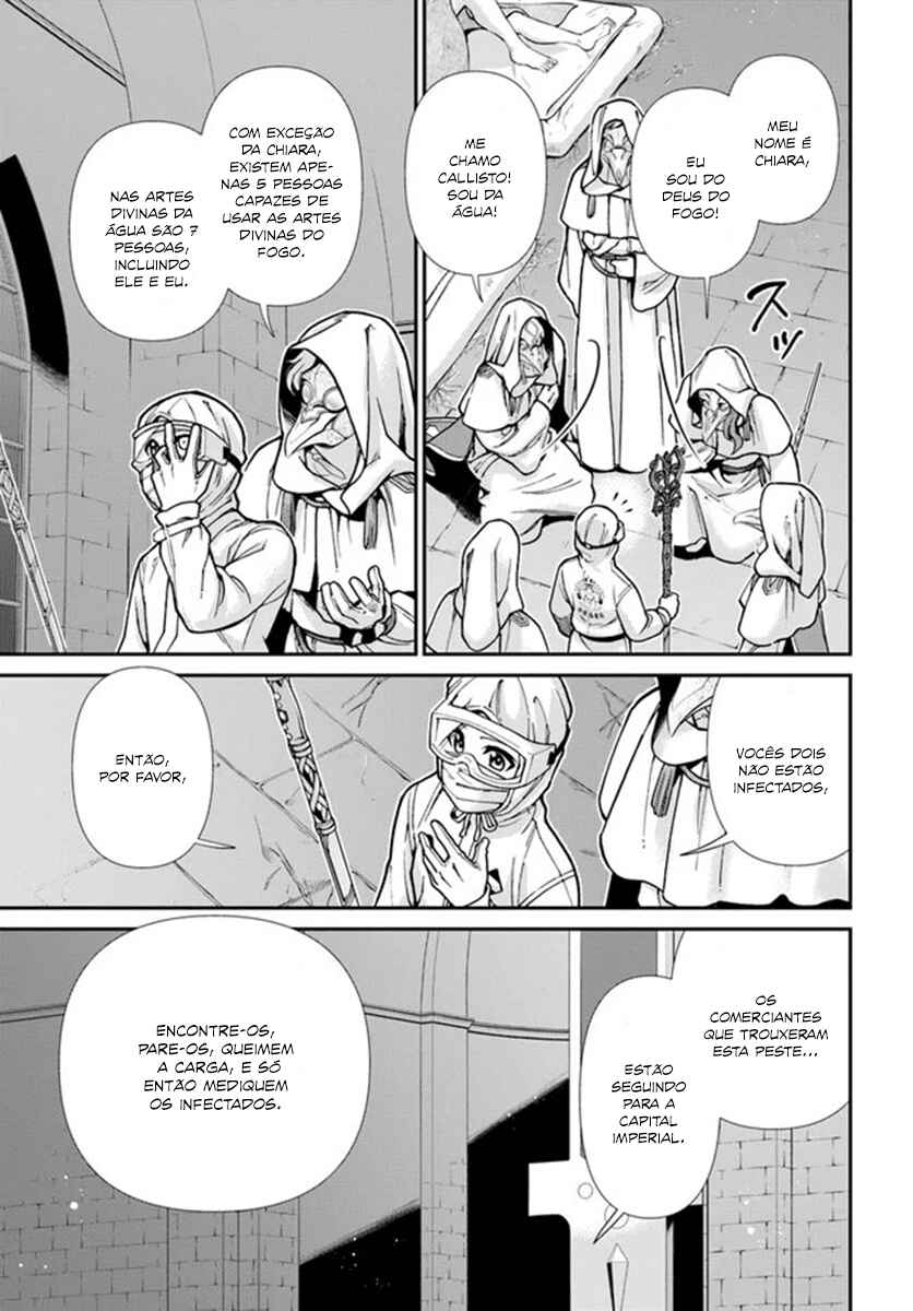 Capítulo 1 - O Farmacêutico que reviveu em outro mundoCapítulo 2 - Curso de artes divinas da EleanoraCapítulo 3Capítulo 4 - O exame médico da imperatriz Elizabeth IICapítulo 5Capítulo 6 - O ato constituinte da imperatrizCapítulo 7 - Estabelecendo a farmáciaCapítulo 8 - Abrindo uma farmácia em outro mundoCapítulo 9 - Cosméticos e tratamento bucalCapítulo 10.1 - A inspeção de Marselha, e o futuro da medicina (1)Capítulo 10.2 - A inspeção de Marselha, e o futuro da medicina (2)Capítulo 11 - Cotidiano em outro mundo farmacêutico, com a brigada do jaleco branco chegandoCapítulo 12 - O garoto sem sombra e a inquisição (1)Capítulo 13 - O garoto sem sombra e a inquisição (2)Capítulo 14 - O garoto sem sombra e a inquisição (3)Capítulo 15 - Baronesa Melodie Le RouxCapítulo 16 - Melodie, especialista e artesã das chamas médicas Capítulo 17.1 - Influenza e o caso de um certo farmacêutico (1)Capítulo 17.2 - Influenza e o caso de um certo farmacêutico (2)Capítulo 17.3 - Influenza e o caso de um certo farmacêutico (3)Capítulo 18 - Magia de FalmaCapítulo 19 - Cajado do Deus da medicina Capítulo 20.1 - O retorno de Palle (1)Capítulo 20.2 - O retorno de Palle (2)Capítulo 21 - Tecnologia de ponta Capítulo 22 - Os soluços da LotteCapítulo 23 - A expedição de Palle pela capitalCapítulo 24.1 - A chegada da Peste Negra (1)Capítulo 24.2 - A chegada da Peste Negra (2)Capítulo 25 - O caminho para a quarentena (1)Capítulo 26 - O caminho para a quarentena (2)Capítulo 27.1 - Um presságio Milagroso e a destacável Actinobactéria (1)Capítulo 27.2 - Um presságio Milagroso e a destacável Actinobactéria (2)Capítulo 28 - O início dos diagnósticos Capítulo 29 - A medicina moderna e as artes divinasCapítulo 30.1 - O melhor de cada um (1)Capítulo 30.2 - O melhor de cada um (2)Capítulo 31 - O vestígio de um culpadoCapítulo 32 - A capital de San Fleuve é atacadaCapítulo 33 - A capital em caosCapítulo 34 - A história de um certo homem mauCapítulo 35.1 - "Voltando à capital" (1)Capítulo 35.2 - "Voltando à capital" (2)Capítulo 36 - A presa venenosa do espírito malignoCapítulo 37 - Aquele que não pode ser salvoCapítulo 38 - A luta dos farmacêuticosCapítulo 39 - O fim da peste negraCapítulo 40 - Buscadores de conhecimentoCapítulo 41 - Petição da universidade dos farmacêuticos imperiaisCapítulo 42 - Lord Melody Lu Lou e a invenção do estêncilCapítulo 43 - Termas e a marca incompleta do Deus do FogoCapítulo 44 - Presente para LotteCapítulo 44.2 - Presente para LotteCapítulo 45Capítulo 46 - Primeira Fábrica de Marseille