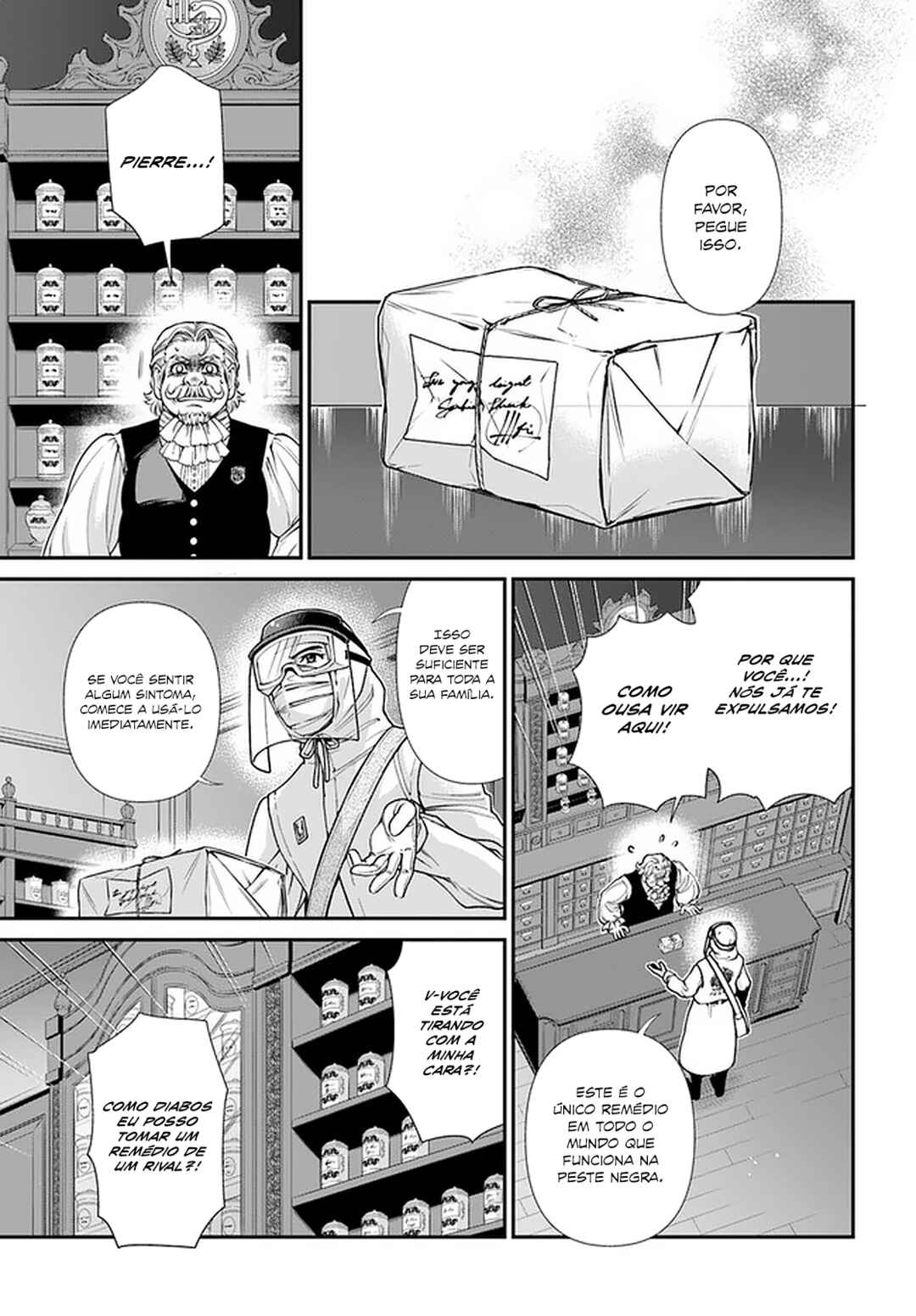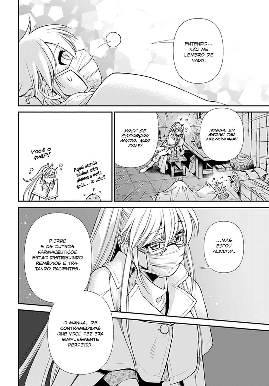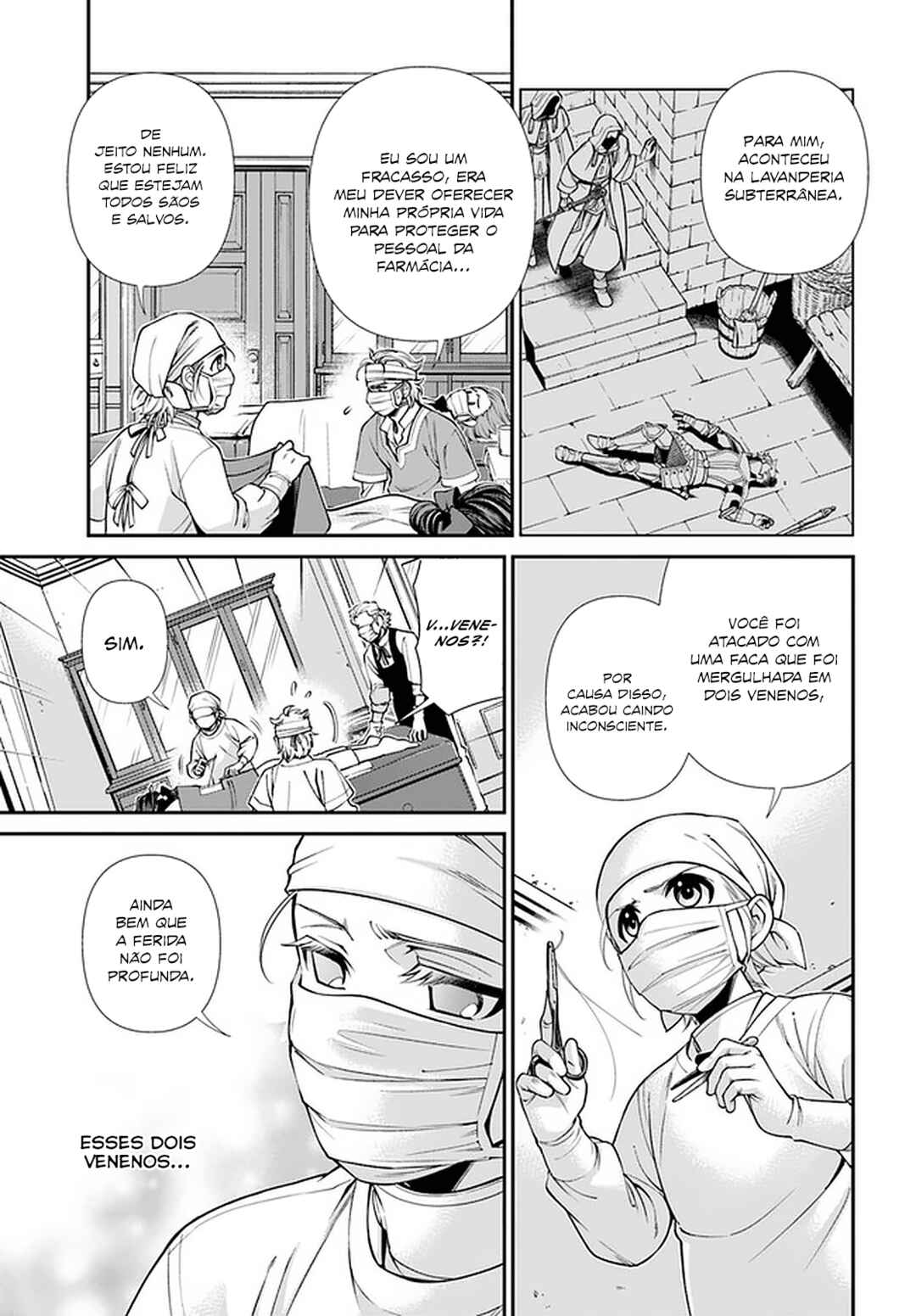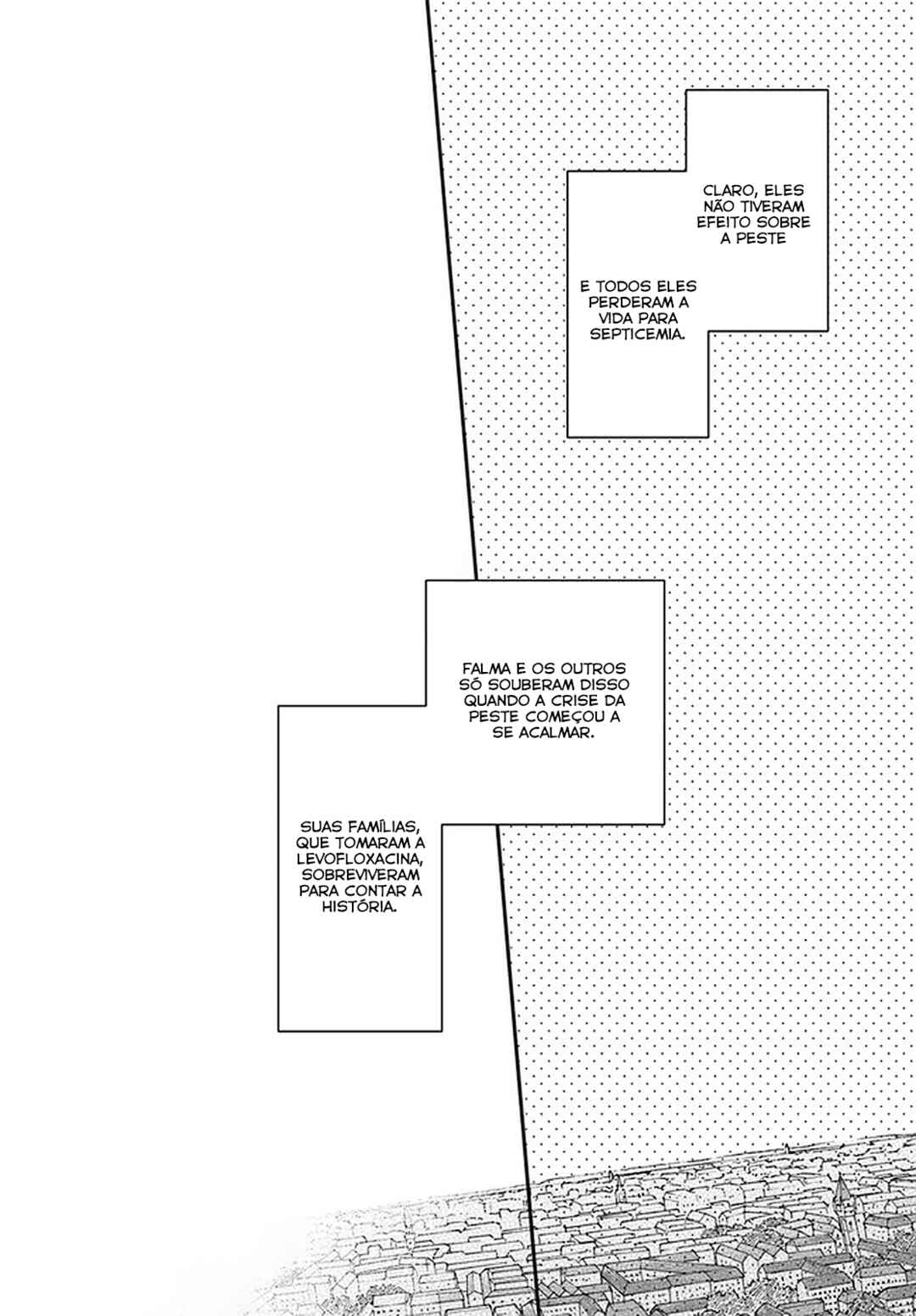 Capítulo 1 - O Farmacêutico que reviveu em outro mundoCapítulo 2 - Curso de artes divinas da EleanoraCapítulo 3Capítulo 4 - O exame médico da imperatriz Elizabeth IICapítulo 5Capítulo 6 - O ato constituinte da imperatrizCapítulo 7 - Estabelecendo a farmáciaCapítulo 8 - Abrindo uma farmácia em outro mundoCapítulo 9 - Cosméticos e tratamento bucalCapítulo 10.1 - A inspeção de Marselha, e o futuro da medicina (1)Capítulo 10.2 - A inspeção de Marselha, e o futuro da medicina (2)Capítulo 11 - Cotidiano em outro mundo farmacêutico, com a brigada do jaleco branco chegandoCapítulo 12 - O garoto sem sombra e a inquisição (1)Capítulo 13 - O garoto sem sombra e a inquisição (2)Capítulo 14 - O garoto sem sombra e a inquisição (3)Capítulo 15 - Baronesa Melodie Le RouxCapítulo 16 - Melodie, especialista e artesã das chamas médicas Capítulo 17.1 - Influenza e o caso de um certo farmacêutico (1)Capítulo 17.2 - Influenza e o caso de um certo farmacêutico (2)Capítulo 17.3 - Influenza e o caso de um certo farmacêutico (3)Capítulo 18 - Magia de FalmaCapítulo 19 - Cajado do Deus da medicina Capítulo 20.1 - O retorno de Palle (1)Capítulo 20.2 - O retorno de Palle (2)Capítulo 21 - Tecnologia de ponta Capítulo 22 - Os soluços da LotteCapítulo 23 - A expedição de Palle pela capitalCapítulo 24.1 - A chegada da Peste Negra (1)Capítulo 24.2 - A chegada da Peste Negra (2)Capítulo 25 - O caminho para a quarentena (1)Capítulo 26 - O caminho para a quarentena (2)Capítulo 27.1 - Um presságio Milagroso e a destacável Actinobactéria (1)Capítulo 27.2 - Um presságio Milagroso e a destacável Actinobactéria (2)Capítulo 28 - O início dos diagnósticos Capítulo 29 - A medicina moderna e as artes divinasCapítulo 30.1 - O melhor de cada um (1)Capítulo 30.2 - O melhor de cada um (2)Capítulo 31 - O vestígio de um culpadoCapítulo 32 - A capital de San Fleuve é atacadaCapítulo 33 - A capital em caosCapítulo 34 - A história de um certo homem mauCapítulo 35.1 - "Voltando à capital" (1)Capítulo 35.2 - "Voltando à capital" (2)Capítulo 36 - A presa venenosa do espírito malignoCapítulo 37 - Aquele que não pode ser salvoCapítulo 38 - A luta dos farmacêuticosCapítulo 39 - O fim da peste negraCapítulo 40 - Buscadores de conhecimentoCapítulo 41 - Petição da universidade dos farmacêuticos imperiaisCapítulo 42 - Lord Melody Lu Lou e a invenção do estêncilCapítulo 43 - Termas e a marca incompleta do Deus do FogoCapítulo 44 - Presente para LotteCapítulo 44.2 - Presente para LotteCapítulo 45Capítulo 46 - Primeira Fábrica de Marseille