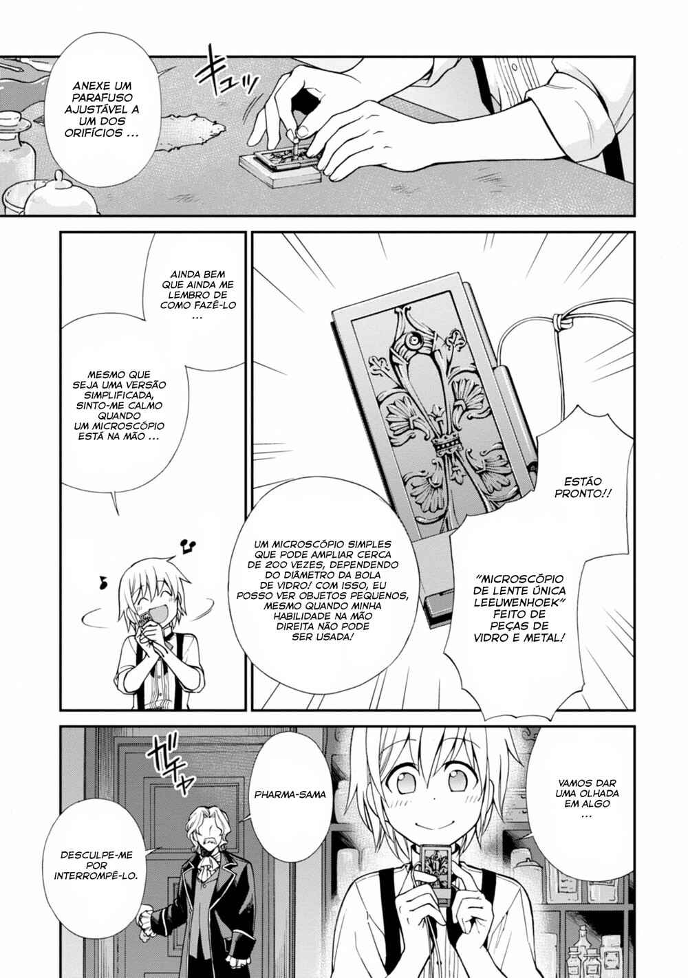 Capítulo 1 - O Farmacêutico que reviveu em outro mundoCapítulo 2 - Curso de artes divinas da EleanoraCapítulo 3Capítulo 4 - O exame médico da imperatriz Elizabeth IICapítulo 5Capítulo 6 - O ato constituinte da imperatrizCapítulo 7 - Estabelecendo a farmáciaCapítulo 8 - Abrindo uma farmácia em outro mundoCapítulo 9 - Cosméticos e tratamento bucalCapítulo 10.1 - A inspeção de Marselha, e o futuro da medicina (1)Capítulo 10.2 - A inspeção de Marselha, e o futuro da medicina (2)Capítulo 11 - Cotidiano em outro mundo farmacêutico, com a brigada do jaleco branco chegandoCapítulo 12 - O garoto sem sombra e a inquisição (1)Capítulo 13 - O garoto sem sombra e a inquisição (2)Capítulo 14 - O garoto sem sombra e a inquisição (3)Capítulo 15 - Baronesa Melodie Le RouxCapítulo 16 - Melodie, especialista e artesã das chamas médicas Capítulo 17.1 - Influenza e o caso de um certo farmacêutico (1)Capítulo 17.2 - Influenza e o caso de um certo farmacêutico (2)Capítulo 17.3 - Influenza e o caso de um certo farmacêutico (3)Capítulo 18 - Magia de FalmaCapítulo 19 - Cajado do Deus da medicina Capítulo 20.1 - O retorno de Palle (1)Capítulo 20.2 - O retorno de Palle (2)Capítulo 21 - Tecnologia de ponta Capítulo 22 - Os soluços da LotteCapítulo 23 - A expedição de Palle pela capitalCapítulo 24.1 - A chegada da Peste Negra (1)Capítulo 24.2 - A chegada da Peste Negra (2)Capítulo 25 - O caminho para a quarentena (1)Capítulo 26 - O caminho para a quarentena (2)Capítulo 27.1 - Um presságio Milagroso e a destacável Actinobactéria (1)Capítulo 27.2 - Um presságio Milagroso e a destacável Actinobactéria (2)Capítulo 28 - O início dos diagnósticos Capítulo 29 - A medicina moderna e as artes divinasCapítulo 30.1 - O melhor de cada um (1)Capítulo 30.2 - O melhor de cada um (2)Capítulo 31 - O vestígio de um culpadoCapítulo 32 - A capital de San Fleuve é atacadaCapítulo 33 - A capital em caosCapítulo 34 - A história de um certo homem mauCapítulo 35.1 - "Voltando à capital" (1)Capítulo 35.2 - "Voltando à capital" (2)Capítulo 36 - A presa venenosa do espírito malignoCapítulo 37 - Aquele que não pode ser salvoCapítulo 38 - A luta dos farmacêuticosCapítulo 39 - O fim da peste negraCapítulo 40 - Buscadores de conhecimentoCapítulo 41 - Petição da universidade dos farmacêuticos imperiaisCapítulo 42 - Lord Melody Lu Lou e a invenção do estêncilCapítulo 43 - Termas e a marca incompleta do Deus do FogoCapítulo 44 - Presente para LotteCapítulo 44.2 - Presente para LotteCapítulo 45Capítulo 46 - Primeira Fábrica de Marseille