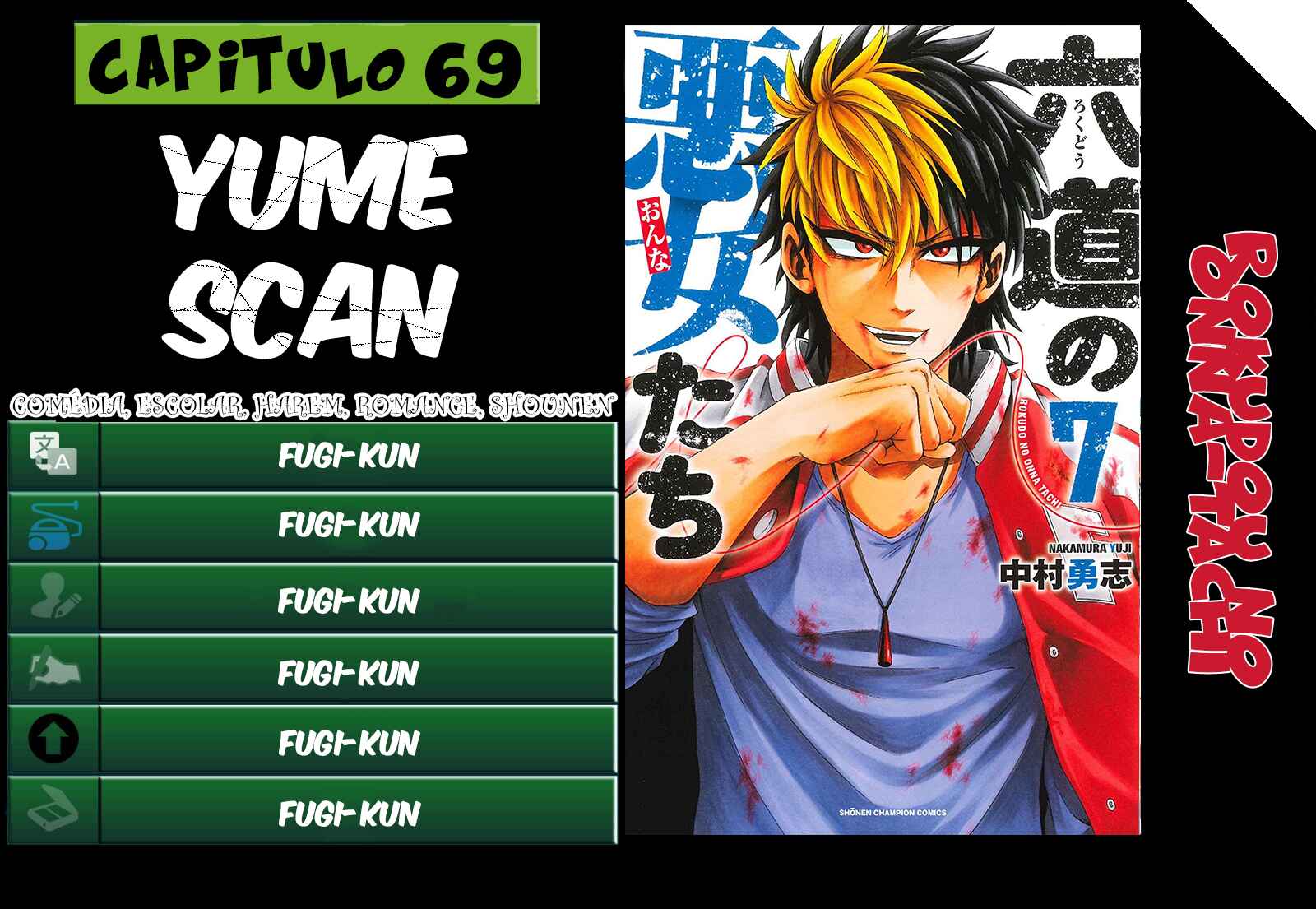 Capítulo 1 - Uma vida escolar pacífica e divertidaCapítulo 2 - Um estranho encontroCapítulo 3 - Verdadeira virilidadeCapítulo 4 - Falando demaisCapítulo 5 - Ele mudouCapítulo 6 - Um desvio chocanteCapítulo 7 - Manhã alegremente outra vezCapítulo 8 - Tempo para morrerCapítulo 9 - O que é o primeiro amor?Capítulo 10 - A ideia de RokudouCapítulo 11 - Banchou OsanadaCapítulo 12 - EgoístaCapítulo 13 - Eu os assistiCapítulo 14 - Um feliz retorno para casaCapítulo 15 - O que a Ranna-san gostaCapítulo 16 - Moto perigosaCapítulo 16.5 - O dia de um BanchouCapítulo 17 - Sonho do cavalo brancoCapítulo 18 - EncantadaCapítulo 19 - Azami - A princesa motociclistaCapítulo 20 - A terceira garota máCapítulo 21 - É algo naturalCapítulo 22 - Enfrentando a gangue dos motoqueirosCapítulo 23 - Não te soltareiCapítulo 24 - Amigos de RokudouCapítulo 25 - FéCapítulo 25.5 - A forma das motos do HaruyaCapítulo 26 - A maldição da morteCapítulo 27 - A magia de RokudouCapítulo 28 - O símbolo da liberdadeCapítulo 29 - Ranna e OsanadaCapítulo 30 - Laço de cabeloCapítulo 31 - A ameaça OnishimaCapítulo 32 - O tenebroso DoujiCapítulo 33 - Uma garota má continua sendo uma garotaCapítulo 34 - A garota de coração fechadoCapítulo 35 - O aliado mais assustadorCapítulo 36 - Não se assusteCapítulo 37 - Plantando o medoCapítulo 38 - Preparação do festivalCapítulo 39 - Carta de amorCapítulo 40 - Equipe RyuugoCapítulo 41 - Prova de amizadeCapítulo 42 - Amizade entre homensCapítulo 43 - PazCapítulo 44 - A investigação de DoujiCapítulo 45 - O encurralado RokudouCapítulo 46 - A chave para RannaCapítulo 47 - Mundo ocultoCapítulo 48 - Manhã do festivalCapítulo 49 - Papel reversoCapítulo 50 - A última esperançaCapítulo 51 - Líder das RyuugoCapítulo 52 - Para cuja felicidadeCapítulo 52.5 - A Ranna-san de hojeCapítulo 53 - Caminho para o telhadoCapítulo 54 - Um homem estúpidamente forteCapítulo 55 - Uma competição de forçaCapítulo 56 - No.2 Akai KouheiCapítulo 57 - Dor inútilCapítulo 58 - Cuidar é compartilharCapítulo 59 - As garras para seguir adianteCapítulo 60 - Sentimentos da RainoCapítulo 61 - Os trigêmeos SumireCapítulo 61.5 - O aniversário dos irmão SumireCapítulo 62 - Uma luta entre irmãosCapítulo 63 - Vejo amorCapítulo 64 - O homem mais forteCapítulo 65 - Violência encarnadaCapítulo 66 - Tempo para uma despedidaCapítulo 67 - O que mais odeioCapítulo 68 - O poder de RokudouCapítulo 69 - Matsugamiya DoujiCapítulo 70 - FlashCapítulo 71 - O homem que eu temoCapítulo 72 - A escolha de RannaCapítulo 73 - ObrigadoCapítulo 74 - Primeira vez em um Game CenterCapítulo 75 - O entregador mais rápidoCapítulo 76 - O problema de Iinuma com as redes sociais!Capítulo 77 - A professora do RokudouCapítulo 78 - Treinamento intensoCapítulo 79 - O morcegoCapítulo 80 - Minami, a agiotaCapítulo 81 - SanguessugaCapítulo 82 - A alegria de ganhar (dinheiro)Capítulo 83 - Cenário evidenteCapítulo 84 - Apenas desistaCapítulo 85 - Um inimigo perigosoCapítulo 86 - De qual lado você está?Capítulo 87 - Aqueles que desistiramCapítulo 88 - A verdadeira natureza de JinCapítulo 89 - O trabalho de RannaCapítulo 90 - Serviço gratuitoCapítulo 91 - Guarda costas do JinCapítulo 92 - Mandíbula ameaçante Capítulo 93 - Sakura, a patrocinadoraCapítulo 94 - Emprestar e empréstimo Capítulo 95 - CalorCapítulo 96 - Viagem para as fontes termais !!Capítulo 97 - Promessa de natalCapítulo 98 - O encontroCapítulo 99 - Uma proposta chocante Capítulo 100 - Himawari RannaCapítulo 101 - Nascida máCapítulo 102 - Quando a magia desaparecer Capítulo 103 - A tristeza de InumaCapítulo 104 - O terceiro melhor amigoCapítulo 105 - Destino compartilhadoCapítulo 106 - GremlinCapítulo 107 - Presos nas artes marciaisCapítulo 108 - Ling LanCapítulo 109 - Estúpido! Idiota!Capítulo 110 - Coisas que você precisa saber sobre Kung FuCapítulo 110.5 - A motoqueira extrema AzamiCapítulo 111 - O estilo da arte marcialCapítulo 112 - Ling Lan ensinandoCapítulo 113 - Significados empilhadosCapítulo 114 - Garota reabilitada Capítulo 115 - O verdadeiro TateshimaCapítulo 115.5Capítulo 116 - Os três que foram desonestos.Capítulo 118Capítulo 119 - Batalha dinâmicaCapítulo 120 - Especialista em kung FuCapítulo 121 - Situação de ErimoCapítulo 122 - Minha história Capítulo 123 - Superando o mestreCapítulo 124 - Esse é momentoCapítulo 124.5 - Coleção de Tsukkomi da Yamabuki MinamiCapítulo 125 - Estudante número 1Capítulo 126 - Colegas aprendizesCapítulo 127 - Amado por quem eu souCapítulo 128 - Eu vou te protegerCapítulo 129 - A mesma pessoaCapítulo 130 - Linuma purificadoCapítulo 131 - Minami se prepara para ir a escola!Capítulo 132 - Onde Eu pertenço.Capítulo 133 - Direto do Coração.Capítulo 134 - Amori e HarikuraCapítulo 135 - Banchou se Preparando.Capítulo 136 - Estrelhas DelinquentesCapítulo 137 - O Banchou Covarde.Capítulo 138 - Um Casal.Capítulo 139 - Primeira Confissão.Capítulo 140 - Resposta SinceraCapítulo 141 - Emboscada CromossômicaCapítulo 142 - Yasha está Apaixonada.Capítulo 143 - A condição de um BanchouCapítulo 144 - O Time dos Sonhos!Capítulo 145 - O que é um Homem?Capítulo 146 - Yagen DesencadeadoCapítulo 147 - Sentimentos Transbordando.Capítulo 148 - RevelaçãoCapítulo 149 - Yashiya QuebradaCapítulo 150 - Uma Costa de uma Garota.Capítulo 151 - Um Homem entre HomensCapítulo 152 - O Que Faz um Homem!Capítulo 153 - Nossa LutaCapítulo 154 - A Força de Vontade das Garotas.Capítulo 155 - Eu Não Aguentava Mais.Capítulo 156 - Decepção.Capítulo 157 - Qual sua Felicidade?Capítulo 158 - O Chefão.Capítulo 159 - A Escolha CertaCapítulo 160 - Na Forma de um Banchou!Capítulo 161 - A RespostaCapítulo 162 - O último PresenteCapítulo 163 - O dia de Folga da Aoi!Capítulo 164 - Minami e Ling LanCapítulo 165 - Rapsódia de AkibaCapítulo 166 - o Sofrimento de Tsuyukusa MizueCapítulo 16