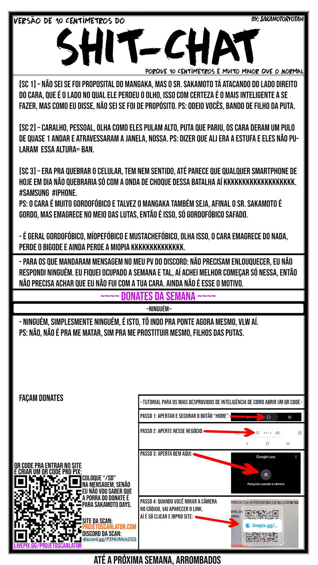 Capítulo 1 - O lendário assassinoCapítulo 1 - O Assassino LendárioCapítulo 1 - O lendário assasinoCapítulo 2 - Regras da Família SakamotoCapítulo 2 - As Regras da Família SakamotoCapítulo 2 - Regras da Família SakamotoCapítulo 2 - Regras da família SakamotoCapítulo 3 - Oficial Nakase e o Herói MisteriosoCapítulo 3 - Policial Nakase e o Herói MisteriosoCapítulo 4 - Invasão em ChinatownCapítulo 4 - Invasão Chinesa!Capítulo 4 - Invasão ChinesaCapítulo 5 - Contra Son Hee e BachoCapítulo 5 - Contra Son Hee e BachoCapítulo 5 - vs. Son Hee e ChakoCapítulo 6 - NagumoCapítulo 6 - NagumoCapítulo 6.1 - Viagem de negóciosCapítulo 6.2 - Suzuki YuutoCapítulo 7 - Bem-vindo ao Sugar ParkCapítulo 7 - Bem-vindo ao Parque Sugar!Capítulo 8 - Hora do showCapítulo 8 - ShowtimeCapítulo 9 - Boyle e ObiguroCapítulo 9 - Boiled e ObiguroCapítulo 10 - DurãoCapítulo 11 - Sakamoto vs BoyleCapítulo 11 - Sakamoto vs. BoiledCapítulo 12 - Fonte de ForçaCapítulo 12 - Fonte da forçaCapítulo 13 - Vídeo locadoraCapítulo 13 - LocadoraCapítulo 14 - Missão furtivaCapítulo 14 - Missão FurtivaCapítulo 15 - IniciaçãoCapítulo 16 - Guerra de lojas de departamentosCapítulo 16 - Guerra no shoppingCapítulo 17 - Heisuke MashimoCapítulo 17 - Mashimo HeisukeCapítulo 18 - Contra um sniperCapítulo 18 - Contra SniperCapítulo 19 - BrigaCapítulo 19 - LutaCapítulo 20 - Rodovia invisívelCapítulo 21 - Vamos ao museu!Capítulo 21 - Vamos ao museu!Capítulo 22 - Desgraçado jurássicoCapítulo 22 - Desgraçado jurássicoCapítulo 23 - Asakura e ShinCapítulo 23 - Asakura e ShinCapítulo 24 - Assassinos x CiênciaCapítulo 24 - Assassinos x CiênciaCapítulo 25 - Desgraçado da ciênciaCapítulo 26 - OrderCapítulo 26 - OrderCapítulo 27 - Os Sakamoto vs O laboratórioCapítulo 27Capítulo 28 - Top de linhaCapítulo 28Capítulo 29 - Todos a bordoCapítulo 29Capítulo 30 - Silêncio no tremCapítulo 31 - Viu?Capítulo 32Capítulo 32 - Modo casa de banhoCapítulo 33Capítulo 33 - SurpresaCapítulo 34Capítulo 34 - WutangCapítulo 35 - Wutang (parte 2)Capítulo 36 - Wutang (parte 3)Capítulo 36Capítulo 37 - Prisioneiro no corrredor da morteCapítulo 37Capítulo 38 - Sem freiosCapítulo 39Capítulo 39 - EncontroCapítulo 40 - SobrecargaCapítulo 41 - Como viverCapítulo 41Capítulo 42Capítulo 42 - Karma ruimCapítulo 43 - Eu te amoCapítulo 43Capítulo 44 - Em todos os sentidosCapítulo 44Capítulo 45 - Ataque pesadoCapítulo 46Capítulo 46 - Má sorteCapítulo 47 - SubindoCapítulo 47Capítulo 48Capítulo 48 - O fio do coraçãoCapítulo 49Capítulo 49 - Dando voltas ao redor da torreCapítulo 50Capítulo 51 - DesfileCapítulo 51Capítulo 52 - Dança da espadaCapítulo 52Capítulo 53Capítulo 53 - Nem pensarCapítulo 54 - Eu consigoCapítulo 54 - Deixa ComigoCapítulo 55 - DescansoCapítulo 56 - JCCCapítulo 56 - JCCCapítulo 57 - Tenha um bom vôoCapítulo 57 - Tenham uma boa viagemCapítulo 58 - NovatosCapítulo 58 - NovatosCapítulo 59Capítulo 59 - CortaCapítulo 60 - KanaguriCapítulo 61 - Bem decenteCapítulo 61 - Até que boaCapítulo 62 - Exame, terceiro estágioCapítulo 62 - Exame, fase 3Capítulo 63 - SobrevivênciaCapítulo 63 - SobrevivênciaCapítulo 64 - CursoCapítulo 64 - CaminhoCapítulo 65 - Fãs mútuosCapítulo 66 - LAGCapítulo 67 - Trabalho remotoCapítulo 67 - Home officeCapítulo 68 - "Mim" sigaCapítulo 68 - Me chigaCapítulo 69 - KajiCapítulo 70 - Sons vs GakuCapítulo 71 - Hard modeCapítulo 71 - Modo hardCapítulo 72 - Até logoCapítulo 72 - Até maisCapítulo 73 - Raspadinha de qssassinosCapítulo 73 - Raspadinha assasinaCapítulo 74 - DisfarçadoCapítulo 74 - DisfarceCapítulo 75 - Maldito telepataCapítulo 76 - A missão de cada umCapítulo 76 - A missão de cada umCapítulo 77 - M-A-T-A-N-D-OCapítulo 77 - M-A-T-E-ICapítulo 78 - BanidoCapítulo 78 - BanidoCapítulo 79 - Intenção Invisível de MatarCapítulo 79 - Intenção de matar invisívelCapítulo 80 - Reencontro Capítulo 81 - TestCapítulo 82 - AikidoCapítulo 82 - AikidoCapítulo 83 - A arte de um gênioCapítulo 83 - Estilo GenialCapítulo 84 - Que cheiro bomCapítulo 84 - Que cheiro bomCapítulo 85 - PesadeloCapítulo 86 - Estilo de terceira categoriaCapítulo 86 - Estilo de TerceiraCapítulo 87Capítulo 87 - Banco de dadosCapítulo 88Capítulo 88 - ClapCapítulo 89Capítulo 89 - SenseiCapítulo 90Capítulo 91Capítulo 91 - Kanaguri vs. SakamotoCapítulo 92Capítulo 92 - AcordoCapítulo 93 - ConexãoCapítulo 93Capítulo 94 - PerturbadoCapítulo 94Capítulo 95Capítulo 96 - SaudávelCapítulo 96Capítulo 97 - Um só golpeCapítulo 97Capítulo 98Capítulo 98 - Tora ToraCapítulo 99Capítulo 99 - Aquele diaCapítulo 100 - Trovões e RelâmpagosCapítulo 101Capítulo 101 - Manobras SecretasCapítulo 102 - Cena FinalCapítulo 102Capítulo 103 - Início das FilmagensCapítulo 103Capítulo 104 - Sentimento EstranhoCapítulo 104Capítulo 105 - Os objetivos de cada umCapítulo 106 - MotivoCapítulo 106Capítulo 107Capítulo 107 - RecordaçãoCapítulo 108Capítulo 108 - Loja de departamento assassinoCapítulo 109 - KindakaCapítulo 109 - KindakaCapítulo 110 - MissãoCapítulo 111 - Serviço de guarda-costasCapítulo 111 - Tarefa de Guarda-CostasCapítulo 112 - Mini MissãoCapítulo 113 - Perseguição de carroCapítulo 113 - PerseguiçãoCapítulo 114 - A tarefa de cada umCapítulo 114 - A função de cada umCapítulo 115 - O colecionador de boas açõesCapítulo 116 - AmigosCapítulo 116 - AmigosCapítulo 117 - Matar sem se moverCapítulo 117 - Matar sem se mexerCapítulo 118 - ForçaCapítulo 118 - ForçaCapítulo 119 - AdeusCapítulo 119 - AdeusCapítulo 120 - FinalCapítulo 121 - Dados EstranhosCapítulo 121 - Rastro misteriosoCapítulo 122 - Sentimento ruimCapítulo 122 - Sentimento RuimCapítulo 123 - Um tiroCapítulo 124 - KumanomiCapítulo 124 - KumanomiCapítulo 125 - Minha vezCapítulo 126 - Eu vou te matar depoisCapítulo 126 - Eu vou te matar depois!!Capítulo 127 - Até maisCapítu