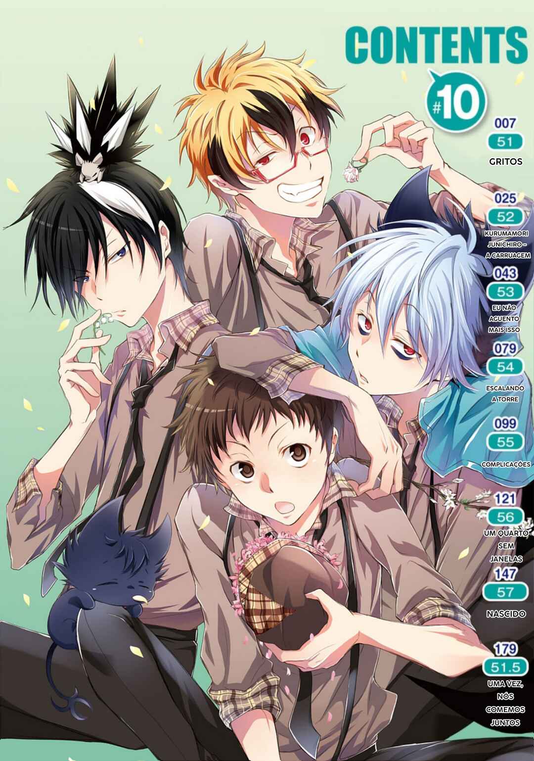 Capítulo 1 - mahiru e kuroCapítulo 2 - "tsubaki"Capítulo 3 - 7+1Capítulo 4 - Alice no jardimCapítulo 5 - escolhaCapítulo 6 - qual de nós é o mentiroso Capítulo 7 - um futuro que nunca aconteceráCapítulo 8 - o que significa carregar uma armaCapítulo 9 - sakuyaCapítulo 10 - irmão mais velhoCapítulo 10.5 - a vida de um servampCapítulo 11 - o homem do caixãoCapítulo 12 - o quarto membroCapítulo 13 - em direção a férias de verão felizesCapítulo 14 - eu sou adulto e essa é a sociedade Capítulo 15 - coisas que não foram ditasCapítulo 16 - contagem regressivaCapítulo 16.5Capítulo 17 - um jardim seguroCapítulo 18 - bem-vindo a mansão alicein Capítulo 19 - snow lilly 1Capítulo 20 - snow lilly 2 Capítulo 21 - "luxúria"Capítulo 21.5Capítulo 22 - anjo ou demônio?Capítulo 23 - qual é o seu nome?Capítulo 24 - lágrimasCapítulo 25 - SOSCapítulo 26 - a vida é apenas uma sombra ambulanteCapítulo 27 - é porque eu...Capítulo 27.5 - o primeiro e único Capítulo 28 - sozinhoCapítulo 29 - dando os primeiros passosCapítulo 30 - "amaldiçoado"Capítulo 31 - eu não estou errado Capítulo 32 - erro de cálculoCapítulo 33 - lawless 1Capítulo 34 - lawless 2Capítulo 35 - a chama do escorpião Capítulo 36 - covardeCapítulo 37 - por não me perdoar Capítulo 38 - o método chamado "eu"Capítulo 39 - cães de caçaCapítulo 40 - desastreCapítulo 41 - os homens mágicos - o mágicoCapítulo 42 - conselhoCapítulo 43 - vocês são parecidosCapítulo 43.5 - aspirações sufocadas em cinzas: o mundo todo é um palcoCapítulo 44 - eu sou o seu tesouroCapítulo 45 - dorCapítulo 46 - aceCapítulo 47 - a torre Capítulo 48 - o homem mais próximo de deusCapítulo 49 - pedidoCapítulo 50 - o homem enforcadoCapítulo 51 - gritosCapítulo 51.5 - uma vez, nós comemos juntosCapítulo 52 - junichirou kurumamori - a carruagemCapítulo 53 - eu não aguento mais issoCapítulo 54 - escalando a torreCapítulo 55 - complicaçõesCapítulo 56 - um quarto sem janelasCapítulo 57 - nascidoCapítulo 58 - eu não fui capaz de crescerCapítulo 59 - forçaCapítulo 60 - impostorCapítulo 61 - a raiva se assemelha ao medoCapítulo 62 - qual é o número na parte inferior do dado?Capítulo 63 - fingindo não verCapítulo 64 - cúmpliceCapítulo 65 - filhos da iraCapítulo 66 - ele e eu Capítulo 66 - ele e euCapítulo 67 - eu vou bater neles por vocêCapítulo 68 - para que a gente não fique solitárioCapítulo 69 - TSUKIMITSU YUMIKAGE -A LUA-Capítulo 70 - chore pela luaCapítulo 71 - é por essa razãoCapítulo 71.5 - aquele que busca pela chaveCapítulo 72 - shamrock - o demônioCapítulo 73 - izuna nobel - a estrelaCapítulo 74 - a estrela do falcão noturnoCapítulo 75 - tsuyuki shuuhei - o hierofanteCapítulo 76 - eu disse para você se sentarCapítulo 77 - do fundoCapítulo 78 - taishi touma - a torreCapítulo 79 - adeusCapítulo 80 - ao acordar em uma manhãCapítulo 81 - a história dele sobre xxCapítulo 82 - mudança repentinaCapítulo 83 - hugh the dark algernonCapítulo 84 - enquanto a lua se levanta, chuva e carnificina caemCapítulo 85 - deus do trovãoCapítulo 86 - as qualidades de um heróiCapítulo 87 - se você for me deixar para trás...Capítulo 88 - tsukimitsu ioriCapítulo 88 - tsukimitsu ioriCapítulo 89 - refémCapítulo 89 - refémCapítulo 90 - orgulho do chefeCapítulo 91 - a cidade onde ele viveuCapítulo 92 - lobisomemCapítulo 93 - você não sabe o nome dessa florCapítulo 94 - colaboradorCapítulo 95 - forma humanaCapítulo 96 - uma vidaCapítulo 97 - tem que ser euCapítulo 98 - pão ﹠ borboletaCapítulo 98 - pão ﹠ borboleta Capítulo 99 - sempre que eu olho para as estrelasCapítulo 100 - o objetivo do 8° servampCapítulo 101 - a espada do loboCapítulo 102 - shogi ﹠ xadrez Capítulo 103 - parceiro abandonadoCapítulo 104 - gambitoCapítulo 105 - um homem que mata,um homem que não pode matarCapítulo 106 - escolha a flor do diaCapítulo 107 - zugzwangCapítulo 108 - não importa o quão forte uma criatura possa ser...Capítulo 109 - meu deverCapítulo 110 - um único tronoCapítulo 110 - um único tronoCapítulo 111 - quem é você?