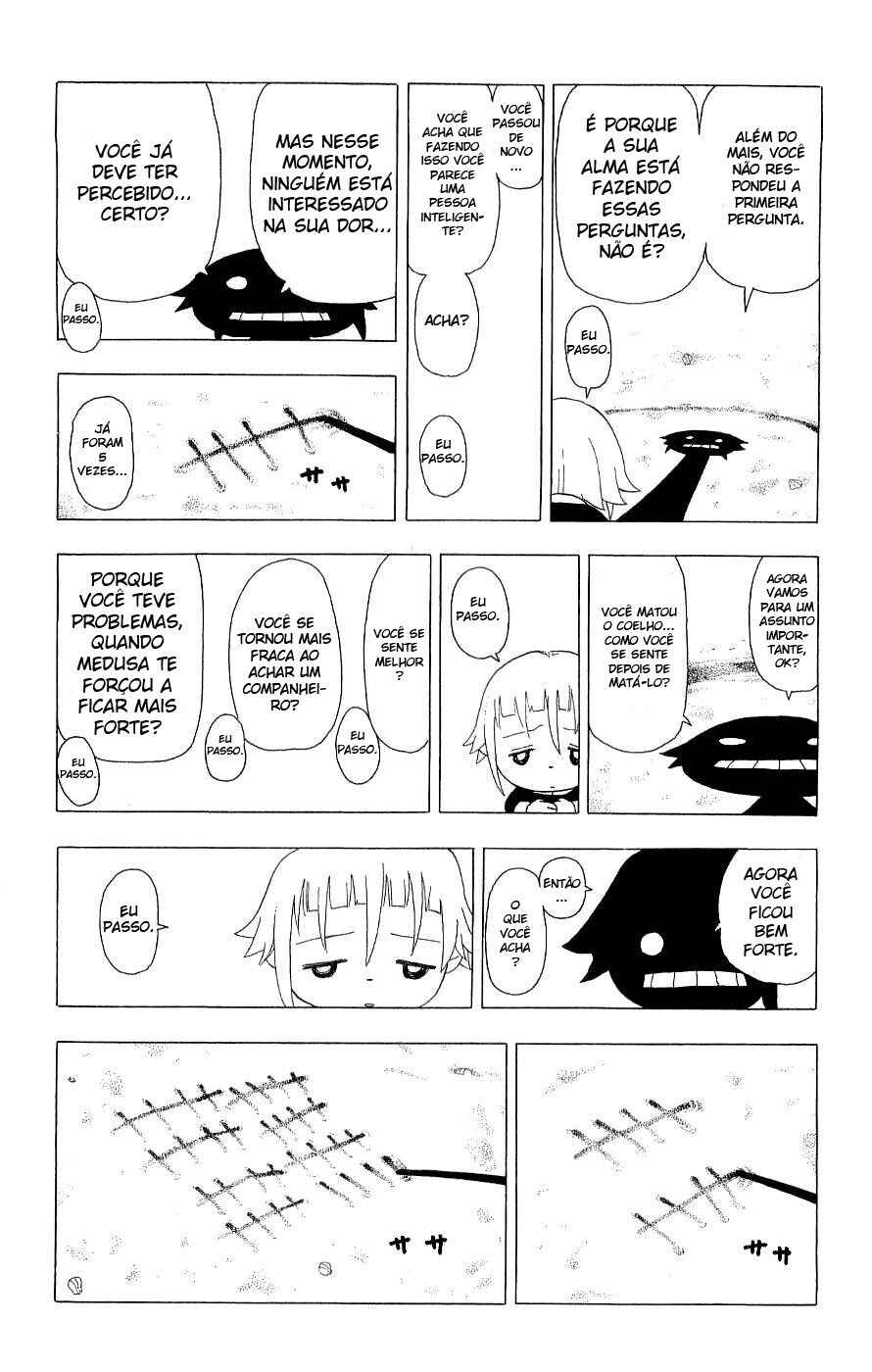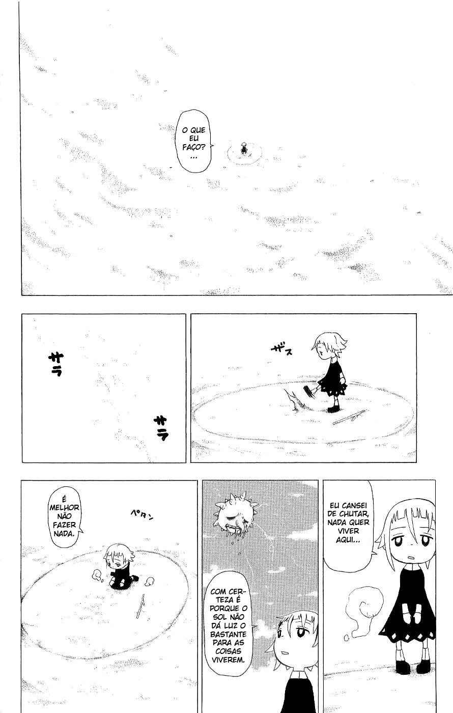 Capítulo 0.1 - Soul EaterCapítulo 0.2 - Black StarCapítulo 0.3 - Death the KiddCapítulo 1 - Lições Extras (Parte 1)Capítulo 2 - Lições Extras (Parte 2)Capítulo 3 - "O Novo Estudante" e "Observação da Alma"Capítulo 4 - A Espada Demoníaca Ragnarok (Parte 1)Capítulo 5 - A Espada Demoníaca Ragnarok (Parte 2)Capítulo 6 - SeikenCapítulo 7 - Lâmina Demônio (Parte 1)Capítulo 8 - Lâmina Demônio (Parte 2)Capítulo 9 - Alma Perseverante Capítulo 10 - Experimento (Parte 1)Capítulo 11 - Experimento (Parte 2)Capítulo 12 - (Super) Exame CopiadorCapítulo 13 - Dragão Negro (Parte 1)Capítulo 14 - Dragão Negro (Parte 2)Capítulo 15 - Aniversário de fundação, véspera de NatalCapítulo 16 - Lutando até a Morte (Parte 1)Capítulo 17 - Lutando até a Morte (Parte 2)Capítulo 18 - Lutando até a Morte (Parte 3)Capítulo 19 - Lutando até a Morte (Parte 4)Capítulo 20 - Lutando até a Morte (Parte 5)Capítulo 21 - Lutando até a Morte (Parte 6)Capítulo 22 - Lutando até a Morte (Parte 7)Capítulo 23 - NormalCapítulo 24 - Estudante em Teste (Parte 1)Capítulo 25 - Estudante em Teste (Parte 2)Capítulo 26 - Estudante em Teste (Parte 3)Capítulo 27 - Guarda-Costas (Parte 1)Capítulo 28 - Guarda-Costas (Parte 2)Capítulo 29 - CobraCapítulo 30 - Reunião-Expresso (Parte 1)Capítulo 31 - Reunião-Expresso (Parte 2)Capítulo 32 - O canto do quartoCapítulo 32.5 - EspecialCapítulo 33 - Arte do DueloCapítulo 34 - Tempestade de "Fermento" (Parte 1)Capítulo 35 - Tempestade de "Fermento" (Parte 2)Capítulo 36 - Tempestade de "Fermento" (Parte 3)Capítulo 37 - Tempestade de "Fermento" (Parte 4)Capítulo 38 - Assuntos Internos (Parte 1)Capítulo 39 - Assuntos Internos (Parte 2)Capítulo 40 - Decisão Capítulo 41 - O Palhaço (Parte 1)Capítulo 42 - O Palhaço (Parte 2)Capítulo 43 - O Palhaço (Parte 3)Capítulo 44 - EscolhaCapítulo 45 - AcordoCapítulo 46 - Operação: Captura do castelo de Baba Yaga (Parte 1)Capítulo 47 - Operação: Captura do castelo de Baba Yaga (Parte 2)Capítulo 48 - Operação: Captura do castelo de Baba Yaga (Parte 3)Capítulo 49 - Operação: Captura do castelo de Baba Yaga (Parte 4)Capítulo 50 - Operação: Captura do castelo de Baba Yaga (Parte 5)Capítulo 51 - Operação: Captura do castelo de Baba Yaga (Parte 6)Capítulo 52 - Operação: Captura do castelo de Baba Yaga (Parte 7)Capítulo 53 - Operação: Captura do castelo de Baba Yaga (Parte 8)Capítulo 54 - Operação: Captura do castelo de Baba Yaga (Parte 9)Capítulo 55 - Operação: Captura do castelo de Baba Yaga (Parte 10)Capítulo 56 - Operação para Invadir o Castelo de Baba Yaga (Parte 11)Capítulo 57 - Operação para Invadir o Castelo de Baba Yaga (Parte 12)Capítulo 58 - Operação para Invadir o Castelo de Baba Yaga (Parte 13)Capítulo 59 - Operação para Invadir o Castelo de Baba Yaga (Parte 14)Capítulo 60 - Operação para Invadir o Castelo de Baba Yaga (Parte 15)Capítulo 61 - Ajeitando as Coisas, e Novos Começos.Capítulo 62 - FormaçãoCapítulo 63 - Vou Ser um AnjoCapítulo 64 - ProntidãoCapítulo 65 - Asas Negras VS Asas BrancasCapítulo 66 - A Pesquisa da Bruxa (Início)Capítulo 67 - A Pesquisa da Bruxa (Fim)Capítulo 68 - Abismo, Imundice, EscuridãoCapítulo 69 - Triângulo AmorosoCapítulo 70 - Viagem de NegóciosCapítulo 71 - O Antigo GovernanteCapítulo 71.5 - Salvamento (Parte 1)Capítulo 73 - Salvamento (Parte 2)Capítulo 74 - Salvamento (Parte 3)Capítulo 75 - Salvamento (Parte 4)Capítulo 76 - Salvamento (Parte 5)Capítulo 77 - Salvamento (Parte 6)Capítulo 78 - Salvamento (Parte 7)Capítulo 79 - Salvamento (Parte 8)Capítulo 80 - Salvamento (Parte 9)Capítulo 81 - Salvamento (Parte 10)Capítulo 82 - ParadeiroCapítulo 83 - Sangue InsanoCapítulo 84 - RecuperaçãoCapítulo 85 - PerseguiçãoCapítulo 86 - Fogo do InfernoCapítulo 87 - Apenas uma Simples História Sobre Matar PessoasCapítulo 88 - CaçaCapítulo 89 - Há Alguém para AdmirarCapítulo 90 - LuaCapítulo 91 - A Batalha na Lua (Parte 1)Capítulo 92 - A Batalha na Lua (Parte 2)Capítulo 93 - A Batalha na Lua (Parte 3)Capítulo 94 - A Batalha na Lua (Parte 4)Capítulo 95 - A Batalha na Lua (Parte 5)Capítulo 96 - A Batalha na Lua (Parte 6)Capítulo 97 - A Batalha na Lua (Parte 7)Capítulo 98 - O Julgamento da BruxaCapítulo 99 - Roger!Capítulo 100 - Para a LuaCapítulo 101 - 2ª Batalha na Lua (Parte 1)Capítulo 102 - 2ª Batalha na Lua (Parte 2)Capítulo 103 - 2ª Batalha na Lua (Parte 3)Capítulo 104 - O Lado Negro da Lua ICapítulo 105 - O Lado Negro da Lua IICapítulo 106 - O Lado Negro da Lua IIICapítulo 107 - O Lado Negro da Lua IVCapítulo 108 - O Lado Negro da Lua VCapítulo 109 - O Lado Negro da Lua VICapítulo 110 - O Lado Negro da Lua VIICapítulo 111 - O Lado Negro da Lua VIIICapítulo 112 - O Lado Negro da Lua IXCapítulo 113 - Uma Alma Sã Reside em um Espírito São e um Corpo São