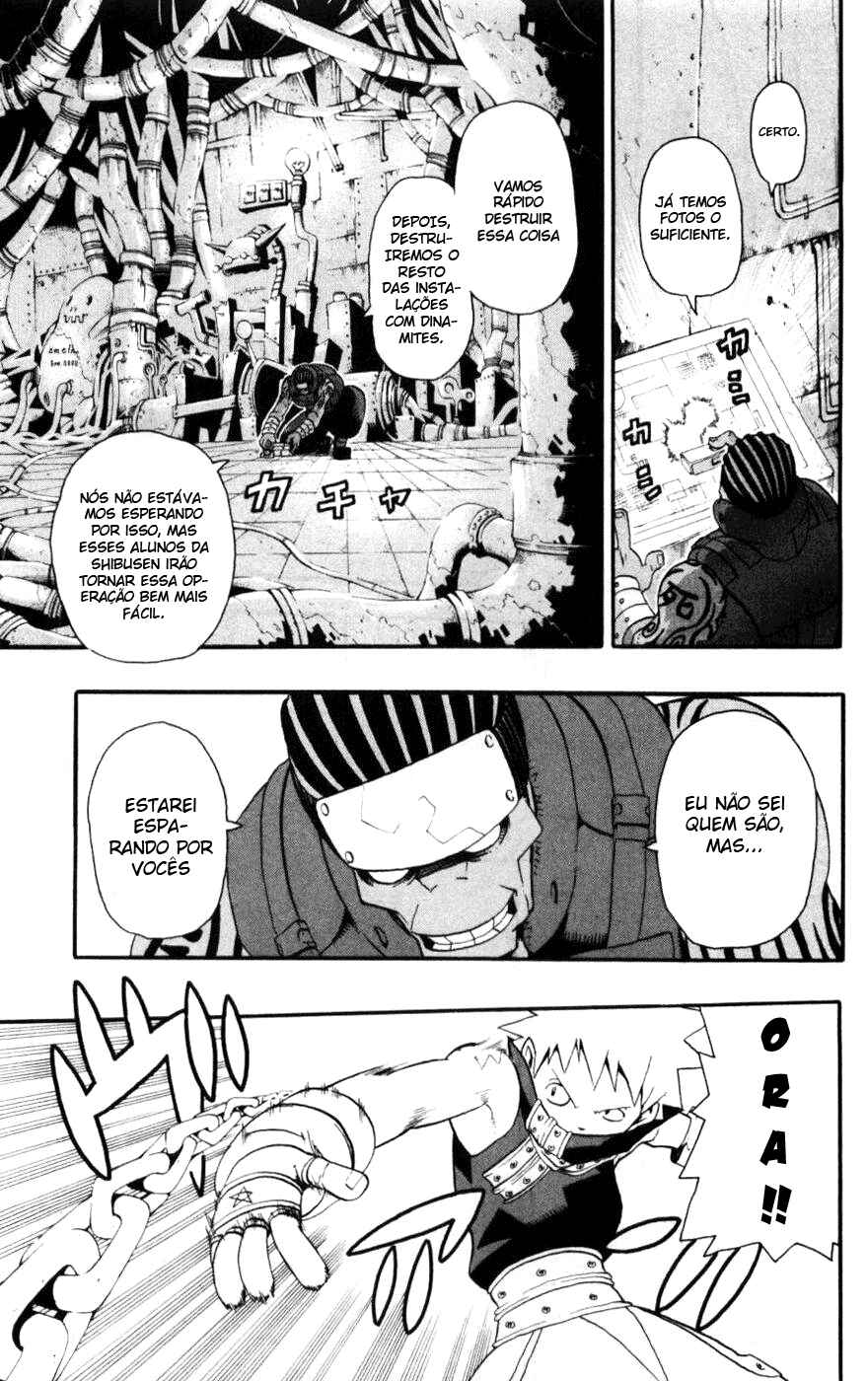 Capítulo 0.1 - Soul EaterCapítulo 0.2 - Black StarCapítulo 0.3 - Death the KiddCapítulo 1 - Lições Extras (Parte 1)Capítulo 2 - Lições Extras (Parte 2)Capítulo 3 - "O Novo Estudante" e "Observação da Alma"Capítulo 4 - A Espada Demoníaca Ragnarok (Parte 1)Capítulo 5 - A Espada Demoníaca Ragnarok (Parte 2)Capítulo 6 - SeikenCapítulo 7 - Lâmina Demônio (Parte 1)Capítulo 8 - Lâmina Demônio (Parte 2)Capítulo 9 - Alma Perseverante Capítulo 10 - Experimento (Parte 1)Capítulo 11 - Experimento (Parte 2)Capítulo 12 - (Super) Exame CopiadorCapítulo 13 - Dragão Negro (Parte 1)Capítulo 14 - Dragão Negro (Parte 2)Capítulo 15 - Aniversário de fundação, véspera de NatalCapítulo 16 - Lutando até a Morte (Parte 1)Capítulo 17 - Lutando até a Morte (Parte 2)Capítulo 18 - Lutando até a Morte (Parte 3)Capítulo 19 - Lutando até a Morte (Parte 4)Capítulo 20 - Lutando até a Morte (Parte 5)Capítulo 21 - Lutando até a Morte (Parte 6)Capítulo 22 - Lutando até a Morte (Parte 7)Capítulo 23 - NormalCapítulo 24 - Estudante em Teste (Parte 1)Capítulo 25 - Estudante em Teste (Parte 2)Capítulo 26 - Estudante em Teste (Parte 3)Capítulo 27 - Guarda-Costas (Parte 1)Capítulo 28 - Guarda-Costas (Parte 2)Capítulo 29 - CobraCapítulo 30 - Reunião-Expresso (Parte 1)Capítulo 31 - Reunião-Expresso (Parte 2)Capítulo 32 - O canto do quartoCapítulo 32.5 - EspecialCapítulo 33 - Arte do DueloCapítulo 34 - Tempestade de "Fermento" (Parte 1)Capítulo 35 - Tempestade de "Fermento" (Parte 2)Capítulo 36 - Tempestade de "Fermento" (Parte 3)Capítulo 37 - Tempestade de "Fermento" (Parte 4)Capítulo 38 - Assuntos Internos (Parte 1)Capítulo 39 - Assuntos Internos (Parte 2)Capítulo 40 - Decisão Capítulo 41 - O Palhaço (Parte 1)Capítulo 42 - O Palhaço (Parte 2)Capítulo 43 - O Palhaço (Parte 3)Capítulo 44 - EscolhaCapítulo 45 - AcordoCapítulo 46 - Operação: Captura do castelo de Baba Yaga (Parte 1)Capítulo 47 - Operação: Captura do castelo de Baba Yaga (Parte 2)Capítulo 48 - Operação: Captura do castelo de Baba Yaga (Parte 3)Capítulo 49 - Operação: Captura do castelo de Baba Yaga (Parte 4)Capítulo 50 - Operação: Captura do castelo de Baba Yaga (Parte 5)Capítulo 51 - Operação: Captura do castelo de Baba Yaga (Parte 6)Capítulo 52 - Operação: Captura do castelo de Baba Yaga (Parte 7)Capítulo 53 - Operação: Captura do castelo de Baba Yaga (Parte 8)Capítulo 54 - Operação: Captura do castelo de Baba Yaga (Parte 9)Capítulo 55 - Operação: Captura do castelo de Baba Yaga (Parte 10)Capítulo 56 - Operação para Invadir o Castelo de Baba Yaga (Parte 11)Capítulo 57 - Operação para Invadir o Castelo de Baba Yaga (Parte 12)Capítulo 58 - Operação para Invadir o Castelo de Baba Yaga (Parte 13)Capítulo 59 - Operação para Invadir o Castelo de Baba Yaga (Parte 14)Capítulo 60 - Operação para Invadir o Castelo de Baba Yaga (Parte 15)Capítulo 61 - Ajeitando as Coisas, e Novos Começos.Capítulo 62 - FormaçãoCapítulo 63 - Vou Ser um AnjoCapítulo 64 - ProntidãoCapítulo 65 - Asas Negras VS Asas BrancasCapítulo 66 - A Pesquisa da Bruxa (Início)Capítulo 67 - A Pesquisa da Bruxa (Fim)Capítulo 68 - Abismo, Imundice, EscuridãoCapítulo 69 - Triângulo AmorosoCapítulo 70 - Viagem de NegóciosCapítulo 71 - O Antigo GovernanteCapítulo 71.5 - Salvamento (Parte 1)Capítulo 73 - Salvamento (Parte 2)Capítulo 74 - Salvamento (Parte 3)Capítulo 75 - Salvamento (Parte 4)Capítulo 76 - Salvamento (Parte 5)Capítulo 77 - Salvamento (Parte 6)Capítulo 78 - Salvamento (Parte 7)Capítulo 79 - Salvamento (Parte 8)Capítulo 80 - Salvamento (Parte 9)Capítulo 81 - Salvamento (Parte 10)Capítulo 82 - ParadeiroCapítulo 83 - Sangue InsanoCapítulo 84 - RecuperaçãoCapítulo 85 - PerseguiçãoCapítulo 86 - Fogo do InfernoCapítulo 87 - Apenas uma Simples História Sobre Matar PessoasCapítulo 88 - CaçaCapítulo 89 - Há Alguém para AdmirarCapítulo 90 - LuaCapítulo 91 - A Batalha na Lua (Parte 1)Capítulo 92 - A Batalha na Lua (Parte 2)Capítulo 93 - A Batalha na Lua (Parte 3)Capítulo 94 - A Batalha na Lua (Parte 4)Capítulo 95 - A Batalha na Lua (Parte 5)Capítulo 96 - A Batalha na Lua (Parte 6)Capítulo 97 - A Batalha na Lua (Parte 7)Capítulo 98 - O Julgamento da BruxaCapítulo 99 - Roger!Capítulo 100 - Para a LuaCapítulo 101 - 2ª Batalha na Lua (Parte 1)Capítulo 102 - 2ª Batalha na Lua (Parte 2)Capítulo 103 - 2ª Batalha na Lua (Parte 3)Capítulo 104 - O Lado Negro da Lua ICapítulo 105 - O Lado Negro da Lua IICapítulo 106 - O Lado Negro da Lua IIICapítulo 107 - O Lado Negro da Lua IVCapítulo 108 - O Lado Negro da Lua VCapítulo 109 - O Lado Negro da Lua VICapítulo 110 - O Lado Negro da Lua VIICapítulo 111 - O Lado Negro da Lua VIIICapítulo 112 - O Lado Negro da Lua IXCapítulo 113 - Uma Alma Sã Reside em um Espírito São e um Corpo São