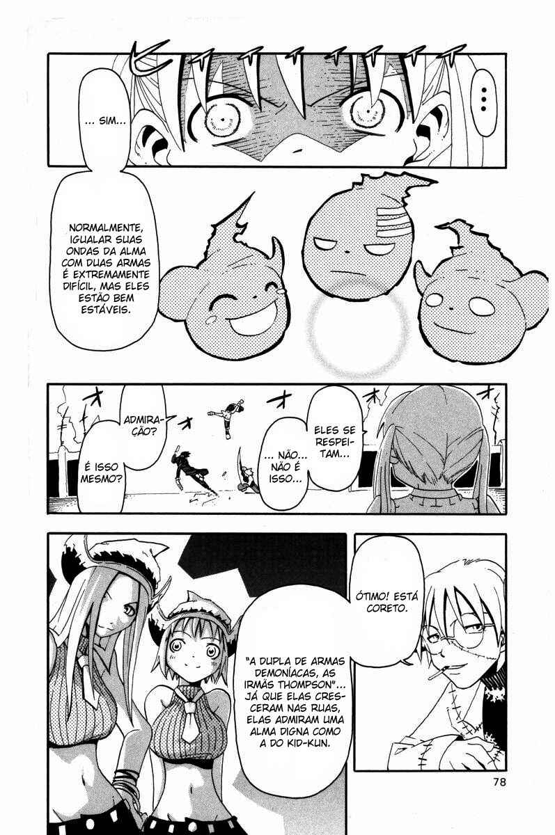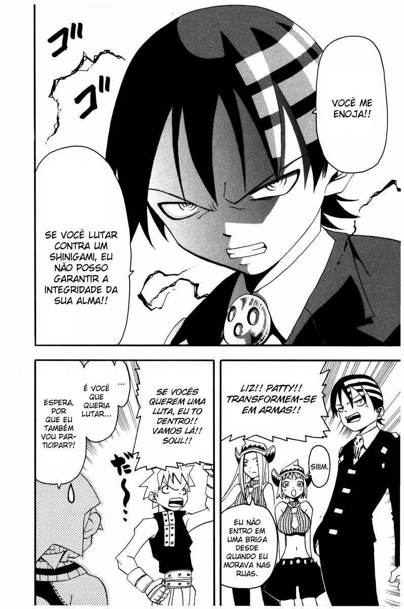 Capítulo 0.1 - Soul EaterCapítulo 0.2 - Black StarCapítulo 0.3 - Death the KiddCapítulo 1 - Lições Extras (Parte 1)Capítulo 2 - Lições Extras (Parte 2)Capítulo 3 - "O Novo Estudante" e "Observação da Alma"Capítulo 4 - A Espada Demoníaca Ragnarok (Parte 1)Capítulo 5 - A Espada Demoníaca Ragnarok (Parte 2)Capítulo 6 - SeikenCapítulo 7 - Lâmina Demônio (Parte 1)Capítulo 8 - Lâmina Demônio (Parte 2)Capítulo 9 - Alma Perseverante Capítulo 10 - Experimento (Parte 1)Capítulo 11 - Experimento (Parte 2)Capítulo 12 - (Super) Exame CopiadorCapítulo 13 - Dragão Negro (Parte 1)Capítulo 14 - Dragão Negro (Parte 2)Capítulo 15 - Aniversário de fundação, véspera de NatalCapítulo 16 - Lutando até a Morte (Parte 1)Capítulo 17 - Lutando até a Morte (Parte 2)Capítulo 18 - Lutando até a Morte (Parte 3)Capítulo 19 - Lutando até a Morte (Parte 4)Capítulo 20 - Lutando até a Morte (Parte 5)Capítulo 21 - Lutando até a Morte (Parte 6)Capítulo 22 - Lutando até a Morte (Parte 7)Capítulo 23 - NormalCapítulo 24 - Estudante em Teste (Parte 1)Capítulo 25 - Estudante em Teste (Parte 2)Capítulo 26 - Estudante em Teste (Parte 3)Capítulo 27 - Guarda-Costas (Parte 1)Capítulo 28 - Guarda-Costas (Parte 2)Capítulo 29 - CobraCapítulo 30 - Reunião-Expresso (Parte 1)Capítulo 31 - Reunião-Expresso (Parte 2)Capítulo 32 - O canto do quartoCapítulo 32.5 - EspecialCapítulo 33 - Arte do DueloCapítulo 34 - Tempestade de "Fermento" (Parte 1)Capítulo 35 - Tempestade de "Fermento" (Parte 2)Capítulo 36 - Tempestade de "Fermento" (Parte 3)Capítulo 37 - Tempestade de "Fermento" (Parte 4)Capítulo 38 - Assuntos Internos (Parte 1)Capítulo 39 - Assuntos Internos (Parte 2)Capítulo 40 - Decisão Capítulo 41 - O Palhaço (Parte 1)Capítulo 42 - O Palhaço (Parte 2)Capítulo 43 - O Palhaço (Parte 3)Capítulo 44 - EscolhaCapítulo 45 - AcordoCapítulo 46 - Operação: Captura do castelo de Baba Yaga (Parte 1)Capítulo 47 - Operação: Captura do castelo de Baba Yaga (Parte 2)Capítulo 48 - Operação: Captura do castelo de Baba Yaga (Parte 3)Capítulo 49 - Operação: Captura do castelo de Baba Yaga (Parte 4)Capítulo 50 - Operação: Captura do castelo de Baba Yaga (Parte 5)Capítulo 51 - Operação: Captura do castelo de Baba Yaga (Parte 6)Capítulo 52 - Operação: Captura do castelo de Baba Yaga (Parte 7)Capítulo 53 - Operação: Captura do castelo de Baba Yaga (Parte 8)Capítulo 54 - Operação: Captura do castelo de Baba Yaga (Parte 9)Capítulo 55 - Operação: Captura do castelo de Baba Yaga (Parte 10)Capítulo 56 - Operação para Invadir o Castelo de Baba Yaga (Parte 11)Capítulo 57 - Operação para Invadir o Castelo de Baba Yaga (Parte 12)Capítulo 58 - Operação para Invadir o Castelo de Baba Yaga (Parte 13)Capítulo 59 - Operação para Invadir o Castelo de Baba Yaga (Parte 14)Capítulo 60 - Operação para Invadir o Castelo de Baba Yaga (Parte 15)Capítulo 61 - Ajeitando as Coisas, e Novos Começos.Capítulo 62 - FormaçãoCapítulo 63 - Vou Ser um AnjoCapítulo 64 - ProntidãoCapítulo 65 - Asas Negras VS Asas BrancasCapítulo 66 - A Pesquisa da Bruxa (Início)Capítulo 67 - A Pesquisa da Bruxa (Fim)Capítulo 68 - Abismo, Imundice, EscuridãoCapítulo 69 - Triângulo AmorosoCapítulo 70 - Viagem de NegóciosCapítulo 71 - O Antigo GovernanteCapítulo 71.5 - Salvamento (Parte 1)Capítulo 73 - Salvamento (Parte 2)Capítulo 74 - Salvamento (Parte 3)Capítulo 75 - Salvamento (Parte 4)Capítulo 76 - Salvamento (Parte 5)Capítulo 77 - Salvamento (Parte 6)Capítulo 78 - Salvamento (Parte 7)Capítulo 79 - Salvamento (Parte 8)Capítulo 80 - Salvamento (Parte 9)Capítulo 81 - Salvamento (Parte 10)Capítulo 82 - ParadeiroCapítulo 83 - Sangue InsanoCapítulo 84 - RecuperaçãoCapítulo 85 - PerseguiçãoCapítulo 86 - Fogo do InfernoCapítulo 87 - Apenas uma Simples História Sobre Matar PessoasCapítulo 88 - CaçaCapítulo 89 - Há Alguém para AdmirarCapítulo 90 - LuaCapítulo 91 - A Batalha na Lua (Parte 1)Capítulo 92 - A Batalha na Lua (Parte 2)Capítulo 93 - A Batalha na Lua (Parte 3)Capítulo 94 - A Batalha na Lua (Parte 4)Capítulo 95 - A Batalha na Lua (Parte 5)Capítulo 96 - A Batalha na Lua (Parte 6)Capítulo 97 - A Batalha na Lua (Parte 7)Capítulo 98 - O Julgamento da BruxaCapítulo 99 - Roger!Capítulo 100 - Para a LuaCapítulo 101 - 2ª Batalha na Lua (Parte 1)Capítulo 102 - 2ª Batalha na Lua (Parte 2)Capítulo 103 - 2ª Batalha na Lua (Parte 3)Capítulo 104 - O Lado Negro da Lua ICapítulo 105 - O Lado Negro da Lua IICapítulo 106 - O Lado Negro da Lua IIICapítulo 107 - O Lado Negro da Lua IVCapítulo 108 - O Lado Negro da Lua VCapítulo 109 - O Lado Negro da Lua VICapítulo 110 - O Lado Negro da Lua VIICapítulo 111 - O Lado Negro da Lua VIIICapítulo 112 - O Lado Negro da Lua IXCapítulo 113 - Uma Alma Sã Reside em um Espírito São e um Corpo São