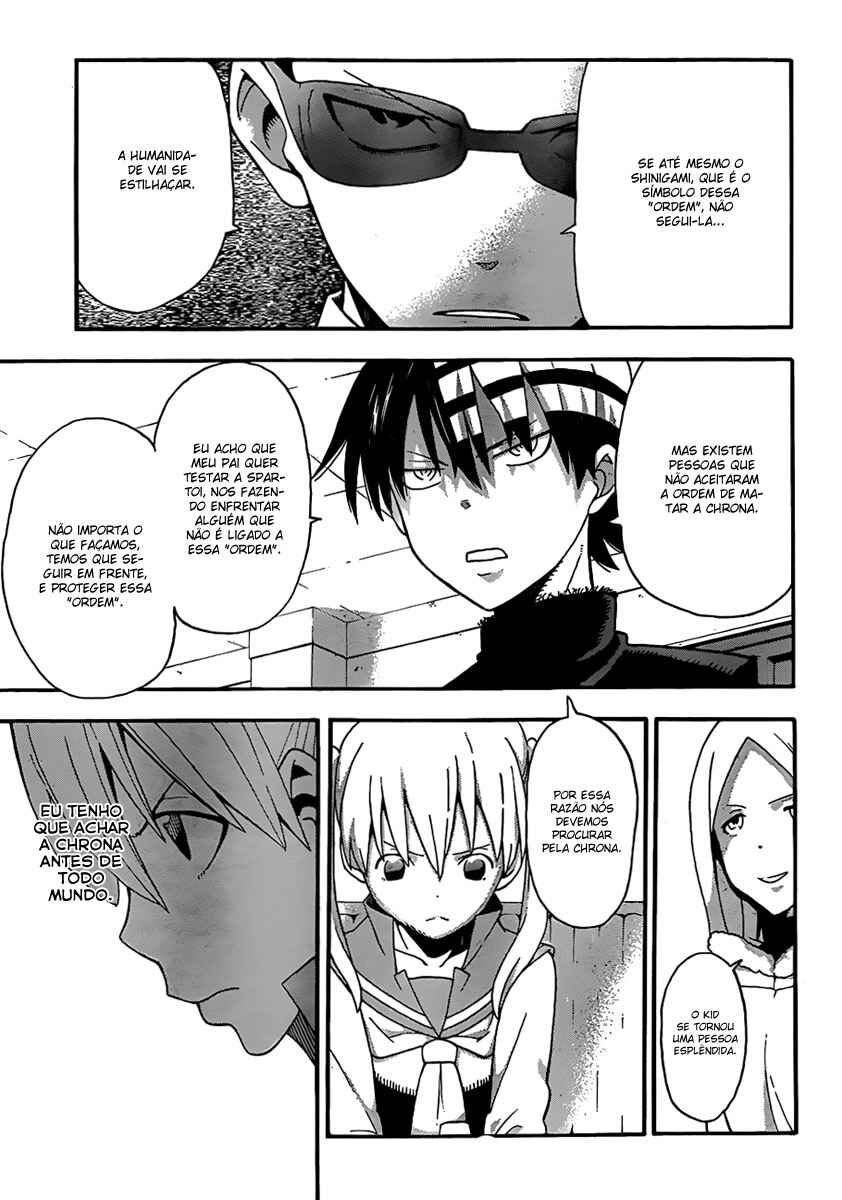 Capítulo 0.1 - Soul EaterCapítulo 0.2 - Black StarCapítulo 0.3 - Death the KiddCapítulo 1 - Lições Extras (Parte 1)Capítulo 2 - Lições Extras (Parte 2)Capítulo 3 - "O Novo Estudante" e "Observação da Alma"Capítulo 4 - A Espada Demoníaca Ragnarok (Parte 1)Capítulo 5 - A Espada Demoníaca Ragnarok (Parte 2)Capítulo 6 - SeikenCapítulo 7 - Lâmina Demônio (Parte 1)Capítulo 8 - Lâmina Demônio (Parte 2)Capítulo 9 - Alma Perseverante Capítulo 10 - Experimento (Parte 1)Capítulo 11 - Experimento (Parte 2)Capítulo 12 - (Super) Exame CopiadorCapítulo 13 - Dragão Negro (Parte 1)Capítulo 14 - Dragão Negro (Parte 2)Capítulo 15 - Aniversário de fundação, véspera de NatalCapítulo 16 - Lutando até a Morte (Parte 1)Capítulo 17 - Lutando até a Morte (Parte 2)Capítulo 18 - Lutando até a Morte (Parte 3)Capítulo 19 - Lutando até a Morte (Parte 4)Capítulo 20 - Lutando até a Morte (Parte 5)Capítulo 21 - Lutando até a Morte (Parte 6)Capítulo 22 - Lutando até a Morte (Parte 7)Capítulo 23 - NormalCapítulo 24 - Estudante em Teste (Parte 1)Capítulo 25 - Estudante em Teste (Parte 2)Capítulo 26 - Estudante em Teste (Parte 3)Capítulo 27 - Guarda-Costas (Parte 1)Capítulo 28 - Guarda-Costas (Parte 2)Capítulo 29 - CobraCapítulo 30 - Reunião-Expresso (Parte 1)Capítulo 31 - Reunião-Expresso (Parte 2)Capítulo 32 - O canto do quartoCapítulo 32.5 - EspecialCapítulo 33 - Arte do DueloCapítulo 34 - Tempestade de "Fermento" (Parte 1)Capítulo 35 - Tempestade de "Fermento" (Parte 2)Capítulo 36 - Tempestade de "Fermento" (Parte 3)Capítulo 37 - Tempestade de "Fermento" (Parte 4)Capítulo 38 - Assuntos Internos (Parte 1)Capítulo 39 - Assuntos Internos (Parte 2)Capítulo 40 - Decisão Capítulo 41 - O Palhaço (Parte 1)Capítulo 42 - O Palhaço (Parte 2)Capítulo 43 - O Palhaço (Parte 3)Capítulo 44 - EscolhaCapítulo 45 - AcordoCapítulo 46 - Operação: Captura do castelo de Baba Yaga (Parte 1)Capítulo 47 - Operação: Captura do castelo de Baba Yaga (Parte 2)Capítulo 48 - Operação: Captura do castelo de Baba Yaga (Parte 3)Capítulo 49 - Operação: Captura do castelo de Baba Yaga (Parte 4)Capítulo 50 - Operação: Captura do castelo de Baba Yaga (Parte 5)Capítulo 51 - Operação: Captura do castelo de Baba Yaga (Parte 6)Capítulo 52 - Operação: Captura do castelo de Baba Yaga (Parte 7)Capítulo 53 - Operação: Captura do castelo de Baba Yaga (Parte 8)Capítulo 54 - Operação: Captura do castelo de Baba Yaga (Parte 9)Capítulo 55 - Operação: Captura do castelo de Baba Yaga (Parte 10)Capítulo 56 - Operação para Invadir o Castelo de Baba Yaga (Parte 11)Capítulo 57 - Operação para Invadir o Castelo de Baba Yaga (Parte 12)Capítulo 58 - Operação para Invadir o Castelo de Baba Yaga (Parte 13)Capítulo 59 - Operação para Invadir o Castelo de Baba Yaga (Parte 14)Capítulo 60 - Operação para Invadir o Castelo de Baba Yaga (Parte 15)Capítulo 61 - Ajeitando as Coisas, e Novos Começos.Capítulo 62 - FormaçãoCapítulo 63 - Vou Ser um AnjoCapítulo 64 - ProntidãoCapítulo 65 - Asas Negras VS Asas BrancasCapítulo 66 - A Pesquisa da Bruxa (Início)Capítulo 67 - A Pesquisa da Bruxa (Fim)Capítulo 68 - Abismo, Imundice, EscuridãoCapítulo 69 - Triângulo AmorosoCapítulo 70 - Viagem de NegóciosCapítulo 71 - O Antigo GovernanteCapítulo 71.5 - Salvamento (Parte 1)Capítulo 73 - Salvamento (Parte 2)Capítulo 74 - Salvamento (Parte 3)Capítulo 75 - Salvamento (Parte 4)Capítulo 76 - Salvamento (Parte 5)Capítulo 77 - Salvamento (Parte 6)Capítulo 78 - Salvamento (Parte 7)Capítulo 79 - Salvamento (Parte 8)Capítulo 80 - Salvamento (Parte 9)Capítulo 81 - Salvamento (Parte 10)Capítulo 82 - ParadeiroCapítulo 83 - Sangue InsanoCapítulo 84 - RecuperaçãoCapítulo 85 - PerseguiçãoCapítulo 86 - Fogo do InfernoCapítulo 87 - Apenas uma Simples História Sobre Matar PessoasCapítulo 88 - CaçaCapítulo 89 - Há Alguém para AdmirarCapítulo 90 - LuaCapítulo 91 - A Batalha na Lua (Parte 1)Capítulo 92 - A Batalha na Lua (Parte 2)Capítulo 93 - A Batalha na Lua (Parte 3)Capítulo 94 - A Batalha na Lua (Parte 4)Capítulo 95 - A Batalha na Lua (Parte 5)Capítulo 96 - A Batalha na Lua (Parte 6)Capítulo 97 - A Batalha na Lua (Parte 7)Capítulo 98 - O Julgamento da BruxaCapítulo 99 - Roger!Capítulo 100 - Para a LuaCapítulo 101 - 2ª Batalha na Lua (Parte 1)Capítulo 102 - 2ª Batalha na Lua (Parte 2)Capítulo 103 - 2ª Batalha na Lua (Parte 3)Capítulo 104 - O Lado Negro da Lua ICapítulo 105 - O Lado Negro da Lua IICapítulo 106 - O Lado Negro da Lua IIICapítulo 107 - O Lado Negro da Lua IVCapítulo 108 - O Lado Negro da Lua VCapítulo 109 - O Lado Negro da Lua VICapítulo 110 - O Lado Negro da Lua VIICapítulo 111 - O Lado Negro da Lua VIIICapítulo 112 - O Lado Negro da Lua IXCapítulo 113 - Uma Alma Sã Reside em um Espírito São e um Corpo São