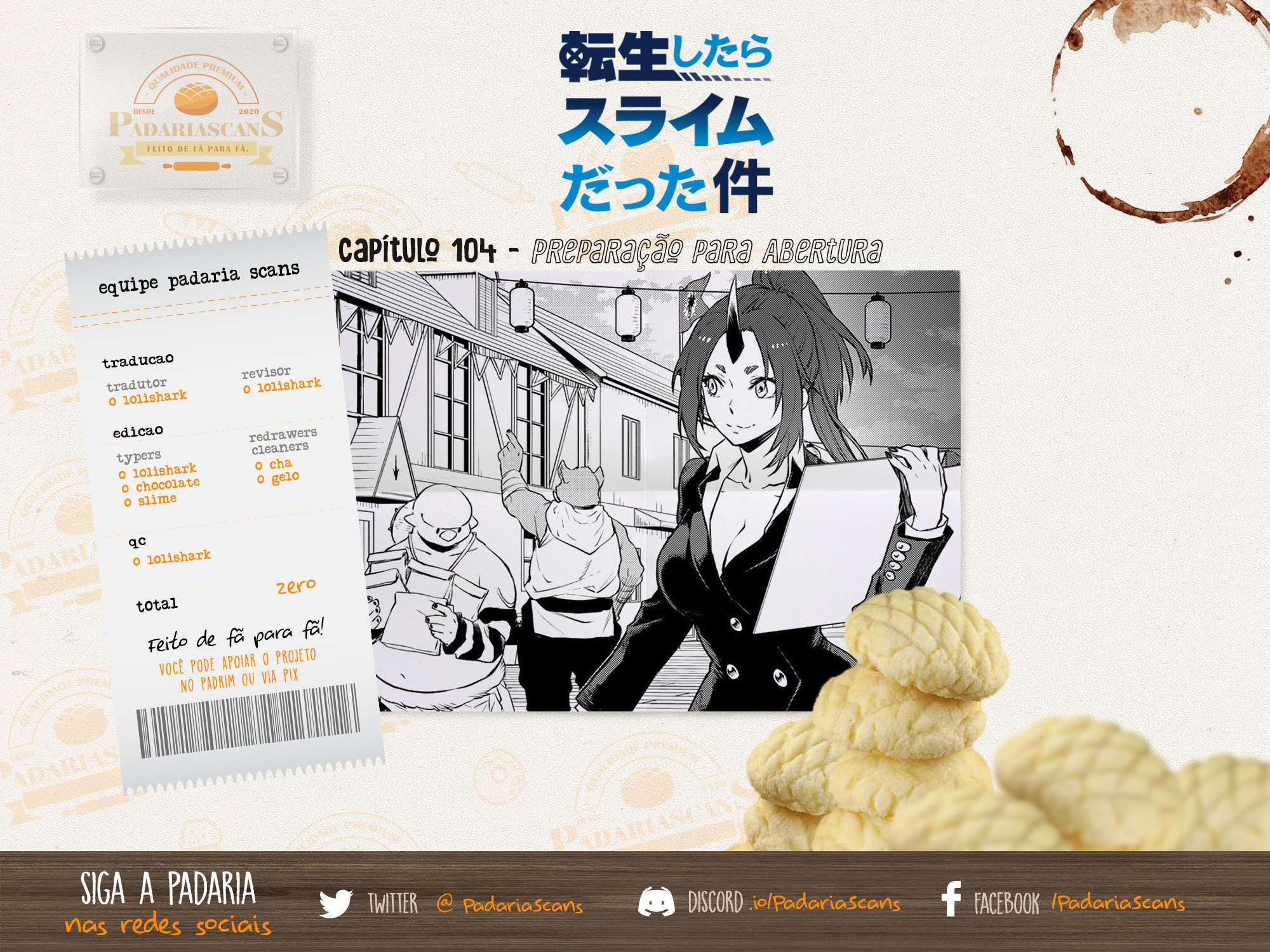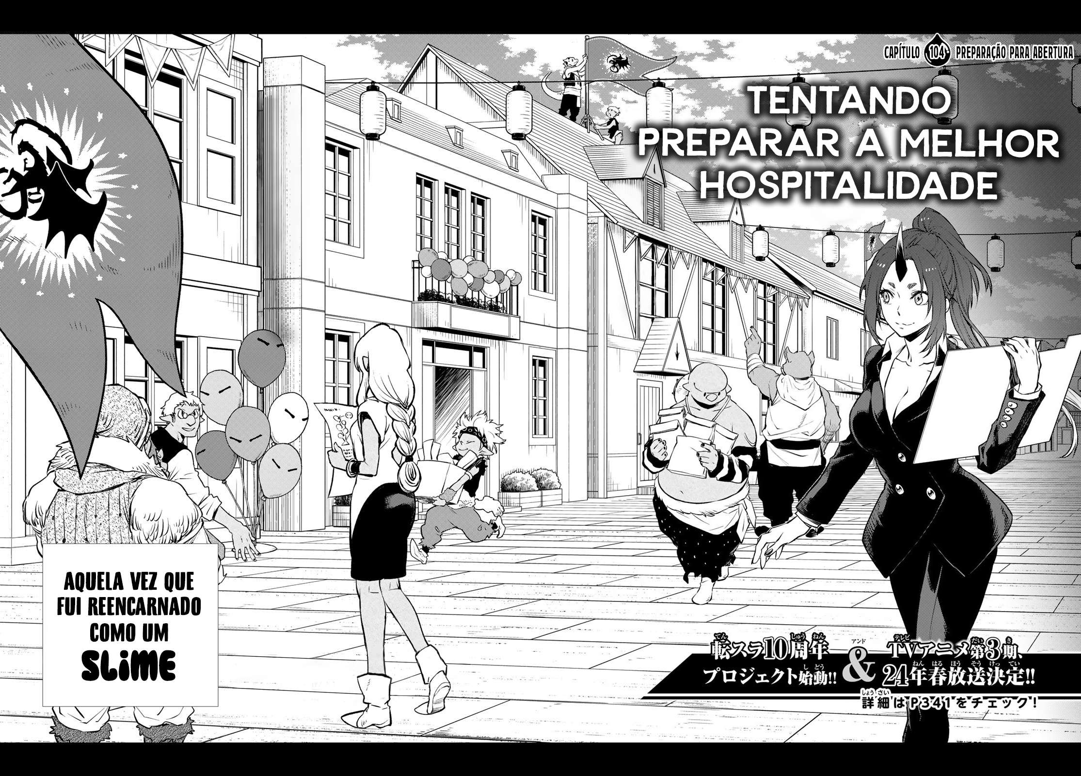 Capítulo 1 - Morte~ e ReencarnaçãoCapítulo 2 - Guardião da Vila GoblinCapítulo 3 - Slime vs Tribo dos Lobos de PresaCapítulo 4 - Destino: Reino dos AnõesCapítulo 5 - Artesão Anão!!Capítulo 6 - A Pessoa DestinadaCapítulo 7 - Julgamento do Rei HeróiCapítulo 8 - Fragrância FamiliarCapítulo 9 - O Demônio das ChamasCapítulo 10 - A Vontade HerdadaCapítulo 11 - O Começo da InquietaçãoCapítulo 12 - O Forte na Floresta JuraCapítulo 13 - Ataque dos OgrosCapítulo 14 - Afazeres de OgroCapítulo 15 - Grande Floresta e Diferentes MudançasCapítulo 16 - A Chegada de GabilCapítulo 17 - Gobuta vs GabilCapítulo 18 - Engrenagens do DestinoCapítulo 19 - Falsa VantagemCapítulo 20 - Início da GuerraCapítulo 21 - Os Efeitos Sobre a GuerraCapítulo 22 - Tempestade da MorteCapítulo 23 - Desastre OrcCapítulo 24 - O Admirável DemônioCapítulo 25 - Aquele que Devora TudoCapítulo 26 - A Grande Aliança da Floresta JuraCapítulo 27 - Um Lugar para RelaxarCapítulo 28 - Aqueles que Observam a Cidade dos DemôniosCapítulo 29 - Reunião do Rei dos DemôniosCapítulo 30 - A Lord DemônioCapítulo 31 - O Furação MilimCapítulo 32 - O Furação Milim (Conclusão)Capítulo 33 - O Plano dos Lordes DemônioCapítulo 34 - Aqueles que se Reúnem na Cidade dos MonstrosCapítulo 35 - O Plano do HeróiCapítulo 36 - Relatório do GerenteCapítulo 37 - CharybidsCapítulo 38 - Tirano da DestruiçãoCapítulo 39 - Como uma NaçãoCapítulo 40 - Negócios com YuurazaniaCapítulo 41 - O Convite do Rei Gazelle (Parte 1)Capítulo 42 - O Convite do Rei Gazelle (Parte 2)Capítulo 43 - Para o Reino HumanoCapítulo 44 - Reino Brumund (Parte 1)Capítulo 45 - Reino Brumund (Parte 2)Capítulo 46 - Yuuki KagurazakaCapítulo 47 - O Fardo dos HeróisCapítulo 48 - O Papel de um ProfessorCapítulo 49 - O Rico Comerciante Garde-MyourmilesCapítulo 50 - A Habilitação dos EspíritosCapítulo 51 - A Rainha dos EspíritosCapítulo 52 - Almas que podem ser salvasCapítulo 53Capítulo 54Capítulo 55Capítulo 56Capítulo 57Capítulo 58Capítulo 59Capítulo 60Capítulo 61Capítulo 62Capítulo 63Capítulo 64Capítulo 65Capítulo 65.5Capítulo 66Capítulo 67Capítulo 68Capítulo 69Capítulo 70Capítulo 71Capítulo 72Capítulo 73Capítulo 74Capítulo 75Capítulo 76 - Lordes Demônios e Dragões VerdadeirosCapítulo 77 - Véspera da batalhaCapítulo 78 - WalpurgisCapítulo 79 - BatalhaCapítulo 80 - O Retorno da Grande BestaCapítulo 81Capítulo 82Capítulo 84Capítulo 85 - Na Terra SagradaCapítulo 86Capítulo 87Capítulo 88Capítulo 89Capítulo 90 - O objetivo dos SantosCapítulo 91 - Nostalgia da Terra NatalCapítulo 92 - Segundo EncontroCapítulo 93 - Conflito entre "Bem" e "Mal"Capítulo 94 - O Sorriso do Demônio AntigoCapítulo 95Capítulo 96 - Deus e Lorde DemônioCapítulo 97Capítulo 98 - Relatório de ProgressoCapítulo 99 - Reconciliação e Acordos (1)Capítulo 100 - Reconciliação e Acordos (2)Capítulo 101 - Reconciliação e Acordos (2.5)Capítulo 102 - Convidando as outras nações Capítulo 103 - A Fada do LabirintoCapítulo 104 - Preparação para AberturaCapítulo 105 - O Começo do Romance da TenguCapítulo 106 - Audiências FormaisCapítulo 107 - O Herói da Velocidade da LuzCapítulo 108 - A Véspera do FestivalCapítulo 109 - Reuniões e EncontrosCapítulo 110 - Conquistas CulináriasCapítulo 111 - O Festival da FundaçãoCapítulo 112 - Um Problema SurgeCapítulo 113 - O Torneio de BatalhaCapítulo 114 - Encontro de MentesCapítulo 115 - As Finais e A ConversaCapítulo 116 - A Grande Abertura do LabirintoCapítulo 117 - Explorando o LabirintoCapítulo 118 - Após o FestivalCapítulo 119 - Uma Breve Negociação do LabirintoCapítulo 120 - A Ameaça SlimeCapítulo 121 - A Caminho do ConselhoCapítulo 122 - Em Direção à EngrassiaCapítulo 123 - O Conselho CaóticoCapítulo 124 - O Conselho Caótico 2Capítulo 125 - Por Trás das CortinasCapítulo 126 - A Armadilha da GanânciaCapítulo 127 - A Cidade Antiga de AmritaCapítulo 128 - Maribel, A GananciosaCapítulo 129 - O Fim da HumilhaçãoCapítulo 129 - O Fim da HumilhaçãoCapítulo 136