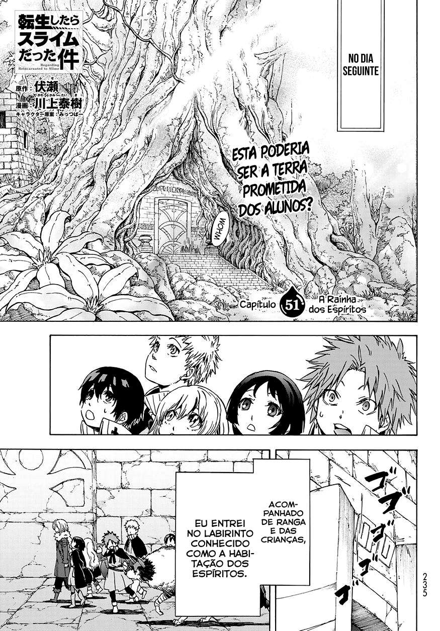 Capítulo 1 - Morte~ e ReencarnaçãoCapítulo 2 - Guardião da Vila GoblinCapítulo 3 - Slime vs Tribo dos Lobos de PresaCapítulo 4 - Destino: Reino dos AnõesCapítulo 5 - Artesão Anão!!Capítulo 6 - A Pessoa DestinadaCapítulo 7 - Julgamento do Rei HeróiCapítulo 8 - Fragrância FamiliarCapítulo 9 - O Demônio das ChamasCapítulo 10 - A Vontade HerdadaCapítulo 11 - O Começo da InquietaçãoCapítulo 12 - O Forte na Floresta JuraCapítulo 13 - Ataque dos OgrosCapítulo 14 - Afazeres de OgroCapítulo 15 - Grande Floresta e Diferentes MudançasCapítulo 16 - A Chegada de GabilCapítulo 17 - Gobuta vs GabilCapítulo 18 - Engrenagens do DestinoCapítulo 19 - Falsa VantagemCapítulo 20 - Início da GuerraCapítulo 21 - Os Efeitos Sobre a GuerraCapítulo 22 - Tempestade da MorteCapítulo 23 - Desastre OrcCapítulo 24 - O Admirável DemônioCapítulo 25 - Aquele que Devora TudoCapítulo 26 - A Grande Aliança da Floresta JuraCapítulo 27 - Um Lugar para RelaxarCapítulo 28 - Aqueles que Observam a Cidade dos DemôniosCapítulo 29 - Reunião do Rei dos DemôniosCapítulo 30 - A Lord DemônioCapítulo 31 - O Furação MilimCapítulo 32 - O Furação Milim (Conclusão)Capítulo 33 - O Plano dos Lordes DemônioCapítulo 34 - Aqueles que se Reúnem na Cidade dos MonstrosCapítulo 35 - O Plano do HeróiCapítulo 36 - Relatório do GerenteCapítulo 37 - CharybidsCapítulo 38 - Tirano da DestruiçãoCapítulo 39 - Como uma NaçãoCapítulo 40 - Negócios com YuurazaniaCapítulo 41 - O Convite do Rei Gazelle (Parte 1)Capítulo 42 - O Convite do Rei Gazelle (Parte 2)Capítulo 43 - Para o Reino HumanoCapítulo 44 - Reino Brumund (Parte 1)Capítulo 45 - Reino Brumund (Parte 2)Capítulo 46 - Yuuki KagurazakaCapítulo 47 - O Fardo dos HeróisCapítulo 48 - O Papel de um ProfessorCapítulo 49 - O Rico Comerciante Garde-MyourmilesCapítulo 50 - A Habilitação dos EspíritosCapítulo 51 - A Rainha dos EspíritosCapítulo 52 - Almas que podem ser salvasCapítulo 53Capítulo 54Capítulo 55Capítulo 56Capítulo 57Capítulo 58Capítulo 59Capítulo 60Capítulo 61Capítulo 62Capítulo 63Capítulo 64Capítulo 65Capítulo 65.5Capítulo 66Capítulo 67Capítulo 68Capítulo 69Capítulo 70Capítulo 71Capítulo 72Capítulo 73Capítulo 74Capítulo 75Capítulo 76 - Lordes Demônios e Dragões VerdadeirosCapítulo 77 - Véspera da batalhaCapítulo 78 - WalpurgisCapítulo 79 - BatalhaCapítulo 80 - O Retorno da Grande BestaCapítulo 81Capítulo 82Capítulo 84Capítulo 85 - Na Terra SagradaCapítulo 86Capítulo 87Capítulo 88Capítulo 89Capítulo 90 - O objetivo dos SantosCapítulo 91 - Nostalgia da Terra NatalCapítulo 92 - Segundo EncontroCapítulo 93 - Conflito entre "Bem" e "Mal"Capítulo 94 - O Sorriso do Demônio AntigoCapítulo 95Capítulo 96 - Deus e Lorde DemônioCapítulo 97Capítulo 98 - Relatório de ProgressoCapítulo 99 - Reconciliação e Acordos (1)Capítulo 100 - Reconciliação e Acordos (2)Capítulo 101 - Reconciliação e Acordos (2.5)Capítulo 102 - Convidando as outras nações Capítulo 103 - A Fada do LabirintoCapítulo 104 - Preparação para AberturaCapítulo 105 - O Começo do Romance da TenguCapítulo 106 - Audiências FormaisCapítulo 107 - O Herói da Velocidade da LuzCapítulo 108 - A Véspera do FestivalCapítulo 109 - Reuniões e EncontrosCapítulo 110 - Conquistas CulináriasCapítulo 111 - O Festival da FundaçãoCapítulo 112 - Um Problema SurgeCapítulo 113 - O Torneio de BatalhaCapítulo 114 - Encontro de MentesCapítulo 115 - As Finais e A ConversaCapítulo 116 - A Grande Abertura do LabirintoCapítulo 117 - Explorando o LabirintoCapítulo 118 - Após o FestivalCapítulo 119 - Uma Breve Negociação do LabirintoCapítulo 120 - A Ameaça SlimeCapítulo 121 - A Caminho do ConselhoCapítulo 122 - Em Direção à EngrassiaCapítulo 123 - O Conselho CaóticoCapítulo 124 - O Conselho Caótico 2Capítulo 125 - Por Trás das CortinasCapítulo 126 - A Armadilha da GanânciaCapítulo 127 - A Cidade Antiga de AmritaCapítulo 128 - Maribel, A GananciosaCapítulo 129 - O Fim da HumilhaçãoCapítulo 129 - O Fim da HumilhaçãoCapítulo 136