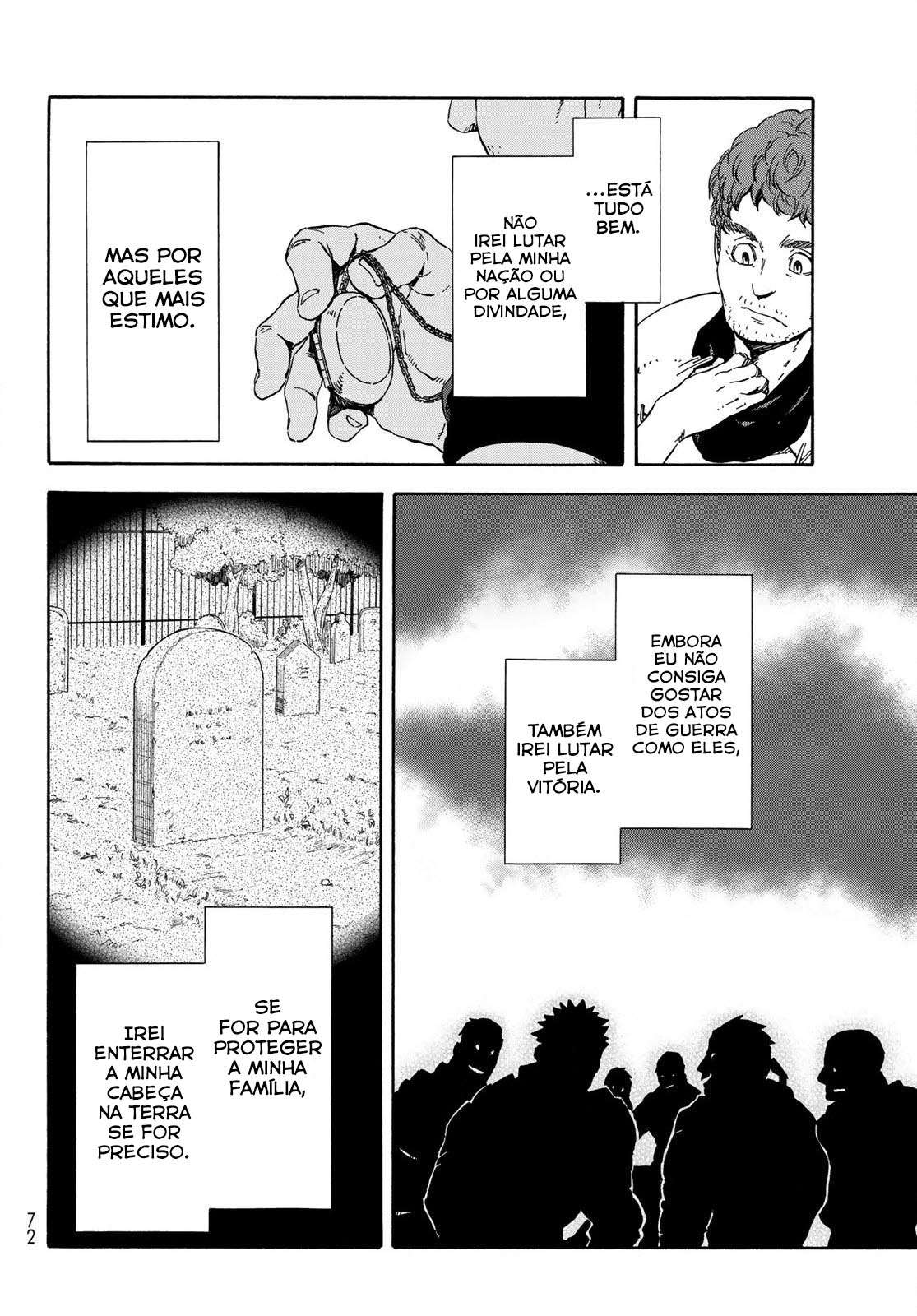 Capítulo 1 - Morte~ e ReencarnaçãoCapítulo 2 - Guardião da Vila GoblinCapítulo 3 - Slime vs Tribo dos Lobos de PresaCapítulo 4 - Destino: Reino dos AnõesCapítulo 5 - Artesão Anão!!Capítulo 6 - A Pessoa DestinadaCapítulo 7 - Julgamento do Rei HeróiCapítulo 8 - Fragrância FamiliarCapítulo 9 - O Demônio das ChamasCapítulo 10 - A Vontade HerdadaCapítulo 11 - O Começo da InquietaçãoCapítulo 12 - O Forte na Floresta JuraCapítulo 13 - Ataque dos OgrosCapítulo 14 - Afazeres de OgroCapítulo 15 - Grande Floresta e Diferentes MudançasCapítulo 16 - A Chegada de GabilCapítulo 17 - Gobuta vs GabilCapítulo 18 - Engrenagens do DestinoCapítulo 19 - Falsa VantagemCapítulo 20 - Início da GuerraCapítulo 21 - Os Efeitos Sobre a GuerraCapítulo 22 - Tempestade da MorteCapítulo 23 - Desastre OrcCapítulo 24 - O Admirável DemônioCapítulo 25 - Aquele que Devora TudoCapítulo 26 - A Grande Aliança da Floresta JuraCapítulo 27 - Um Lugar para RelaxarCapítulo 28 - Aqueles que Observam a Cidade dos DemôniosCapítulo 29 - Reunião do Rei dos DemôniosCapítulo 30 - A Lord DemônioCapítulo 31 - O Furação MilimCapítulo 32 - O Furação Milim (Conclusão)Capítulo 33 - O Plano dos Lordes DemônioCapítulo 34 - Aqueles que se Reúnem na Cidade dos MonstrosCapítulo 35 - O Plano do HeróiCapítulo 36 - Relatório do GerenteCapítulo 37 - CharybidsCapítulo 38 - Tirano da DestruiçãoCapítulo 39 - Como uma NaçãoCapítulo 40 - Negócios com YuurazaniaCapítulo 41 - O Convite do Rei Gazelle (Parte 1)Capítulo 42 - O Convite do Rei Gazelle (Parte 2)Capítulo 43 - Para o Reino HumanoCapítulo 44 - Reino Brumund (Parte 1)Capítulo 45 - Reino Brumund (Parte 2)Capítulo 46 - Yuuki KagurazakaCapítulo 47 - O Fardo dos HeróisCapítulo 48 - O Papel de um ProfessorCapítulo 49 - O Rico Comerciante Garde-MyourmilesCapítulo 50 - A Habilitação dos EspíritosCapítulo 51 - A Rainha dos EspíritosCapítulo 52 - Almas que podem ser salvasCapítulo 53Capítulo 54Capítulo 55Capítulo 56Capítulo 57Capítulo 58Capítulo 59Capítulo 60Capítulo 61Capítulo 62Capítulo 63Capítulo 64Capítulo 65Capítulo 65.5Capítulo 66Capítulo 67Capítulo 68Capítulo 69Capítulo 70Capítulo 71Capítulo 72Capítulo 73Capítulo 74Capítulo 75Capítulo 76 - Lordes Demônios e Dragões VerdadeirosCapítulo 77 - Véspera da batalhaCapítulo 78 - WalpurgisCapítulo 79 - BatalhaCapítulo 80 - O Retorno da Grande BestaCapítulo 81Capítulo 82Capítulo 84Capítulo 85 - Na Terra SagradaCapítulo 86Capítulo 87Capítulo 88Capítulo 89Capítulo 90 - O objetivo dos SantosCapítulo 91 - Nostalgia da Terra NatalCapítulo 92 - Segundo EncontroCapítulo 93 - Conflito entre "Bem" e "Mal"Capítulo 94 - O Sorriso do Demônio AntigoCapítulo 95Capítulo 96 - Deus e Lorde DemônioCapítulo 97Capítulo 98 - Relatório de ProgressoCapítulo 99 - Reconciliação e Acordos (1)Capítulo 100 - Reconciliação e Acordos (2)Capítulo 101 - Reconciliação e Acordos (2.5)Capítulo 102 - Convidando as outras nações Capítulo 103 - A Fada do LabirintoCapítulo 104 - Preparação para AberturaCapítulo 105 - O Começo do Romance da TenguCapítulo 106 - Audiências FormaisCapítulo 107 - O Herói da Velocidade da LuzCapítulo 108 - A Véspera do FestivalCapítulo 109 - Reuniões e EncontrosCapítulo 110 - Conquistas CulináriasCapítulo 111 - O Festival da FundaçãoCapítulo 112 - Um Problema SurgeCapítulo 113 - O Torneio de BatalhaCapítulo 114 - Encontro de MentesCapítulo 115 - As Finais e A ConversaCapítulo 116 - A Grande Abertura do LabirintoCapítulo 117 - Explorando o LabirintoCapítulo 118 - Após o FestivalCapítulo 119 - Uma Breve Negociação do LabirintoCapítulo 120 - A Ameaça SlimeCapítulo 121 - A Caminho do ConselhoCapítulo 122 - Em Direção à EngrassiaCapítulo 123 - O Conselho CaóticoCapítulo 124 - O Conselho Caótico 2Capítulo 125 - Por Trás das CortinasCapítulo 126 - A Armadilha da GanânciaCapítulo 127 - A Cidade Antiga de AmritaCapítulo 128 - Maribel, A GananciosaCapítulo 129 - O Fim da HumilhaçãoCapítulo 129 - O Fim da HumilhaçãoCapítulo 136