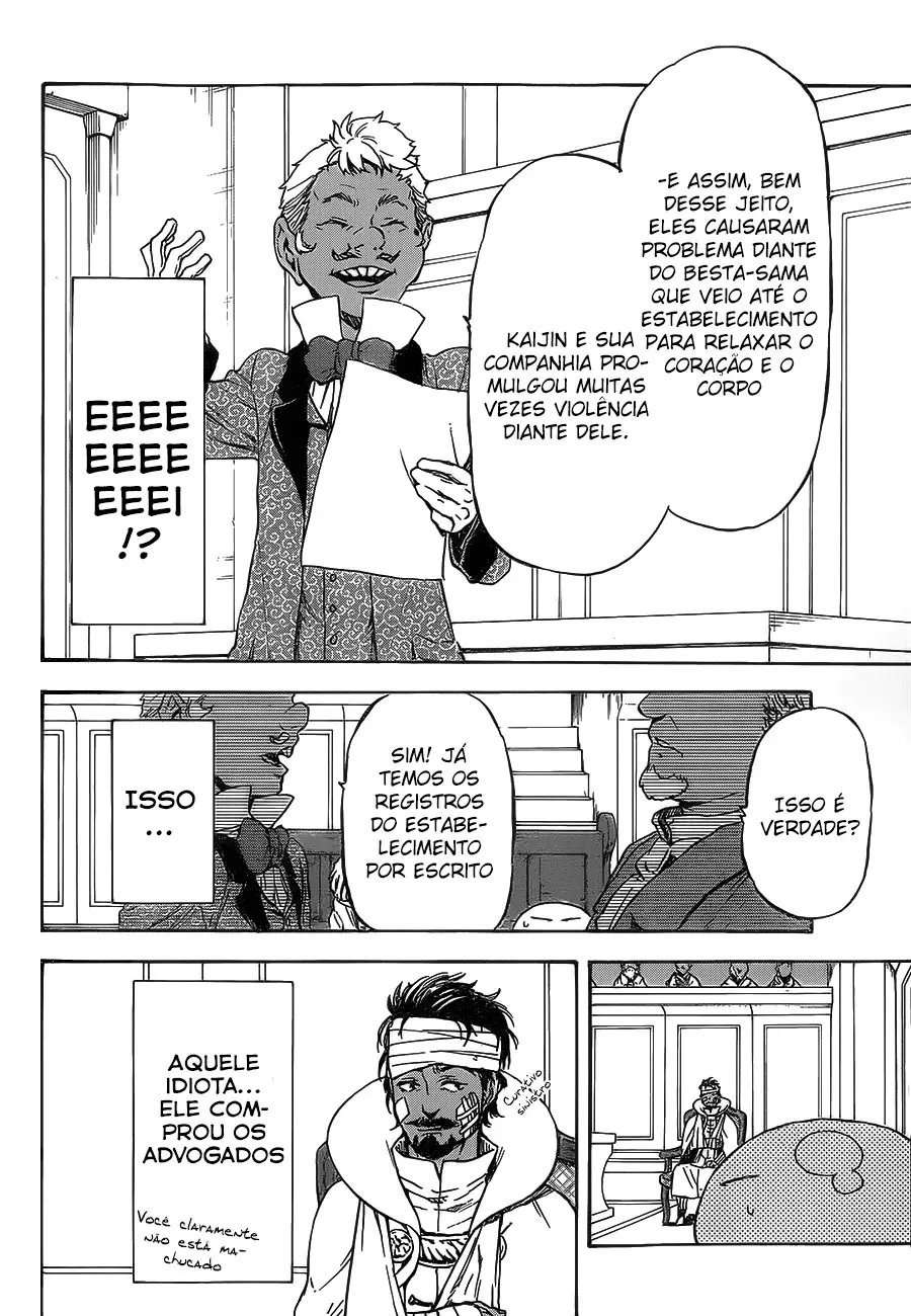 Capítulo 1 - Morte~ e ReencarnaçãoCapítulo 2 - Guardião da Vila GoblinCapítulo 3 - Slime vs Tribo dos Lobos de PresaCapítulo 4 - Destino: Reino dos AnõesCapítulo 5 - Artesão Anão!!Capítulo 6 - A Pessoa DestinadaCapítulo 7 - Julgamento do Rei HeróiCapítulo 8 - Fragrância FamiliarCapítulo 9 - O Demônio das ChamasCapítulo 10 - A Vontade HerdadaCapítulo 11 - O Começo da InquietaçãoCapítulo 12 - O Forte na Floresta JuraCapítulo 13 - Ataque dos OgrosCapítulo 14 - Afazeres de OgroCapítulo 15 - Grande Floresta e Diferentes MudançasCapítulo 16 - A Chegada de GabilCapítulo 17 - Gobuta vs GabilCapítulo 18 - Engrenagens do DestinoCapítulo 19 - Falsa VantagemCapítulo 20 - Início da GuerraCapítulo 21 - Os Efeitos Sobre a GuerraCapítulo 22 - Tempestade da MorteCapítulo 23 - Desastre OrcCapítulo 24 - O Admirável DemônioCapítulo 25 - Aquele que Devora TudoCapítulo 26 - A Grande Aliança da Floresta JuraCapítulo 27 - Um Lugar para RelaxarCapítulo 28 - Aqueles que Observam a Cidade dos DemôniosCapítulo 29 - Reunião do Rei dos DemôniosCapítulo 30 - A Lord DemônioCapítulo 31 - O Furação MilimCapítulo 32 - O Furação Milim (Conclusão)Capítulo 33 - O Plano dos Lordes DemônioCapítulo 34 - Aqueles que se Reúnem na Cidade dos MonstrosCapítulo 35 - O Plano do HeróiCapítulo 36 - Relatório do GerenteCapítulo 37 - CharybidsCapítulo 38 - Tirano da DestruiçãoCapítulo 39 - Como uma NaçãoCapítulo 40 - Negócios com YuurazaniaCapítulo 41 - O Convite do Rei Gazelle (Parte 1)Capítulo 42 - O Convite do Rei Gazelle (Parte 2)Capítulo 43 - Para o Reino HumanoCapítulo 44 - Reino Brumund (Parte 1)Capítulo 45 - Reino Brumund (Parte 2)Capítulo 46 - Yuuki KagurazakaCapítulo 47 - O Fardo dos HeróisCapítulo 48 - O Papel de um ProfessorCapítulo 49 - O Rico Comerciante Garde-MyourmilesCapítulo 50 - A Habilitação dos EspíritosCapítulo 51 - A Rainha dos EspíritosCapítulo 52 - Almas que podem ser salvasCapítulo 53Capítulo 54Capítulo 55Capítulo 56Capítulo 57Capítulo 58Capítulo 59Capítulo 60Capítulo 61Capítulo 62Capítulo 63Capítulo 64Capítulo 65Capítulo 65.5Capítulo 66Capítulo 67Capítulo 68Capítulo 69Capítulo 70Capítulo 71Capítulo 72Capítulo 73Capítulo 74Capítulo 75Capítulo 76 - Lordes Demônios e Dragões VerdadeirosCapítulo 77 - Véspera da batalhaCapítulo 78 - WalpurgisCapítulo 79 - BatalhaCapítulo 80 - O Retorno da Grande BestaCapítulo 81Capítulo 82Capítulo 84Capítulo 85 - Na Terra SagradaCapítulo 86Capítulo 87Capítulo 88Capítulo 89Capítulo 90 - O objetivo dos SantosCapítulo 91 - Nostalgia da Terra NatalCapítulo 92 - Segundo EncontroCapítulo 93 - Conflito entre "Bem" e "Mal"Capítulo 94 - O Sorriso do Demônio AntigoCapítulo 95Capítulo 96 - Deus e Lorde DemônioCapítulo 97Capítulo 98 - Relatório de ProgressoCapítulo 99 - Reconciliação e Acordos (1)Capítulo 100 - Reconciliação e Acordos (2)Capítulo 101 - Reconciliação e Acordos (2.5)Capítulo 102 - Convidando as outras nações Capítulo 103 - A Fada do LabirintoCapítulo 104 - Preparação para AberturaCapítulo 105 - O Começo do Romance da TenguCapítulo 106 - Audiências FormaisCapítulo 107 - O Herói da Velocidade da LuzCapítulo 108 - A Véspera do FestivalCapítulo 109 - Reuniões e EncontrosCapítulo 110 - Conquistas CulináriasCapítulo 111 - O Festival da FundaçãoCapítulo 112 - Um Problema SurgeCapítulo 113 - O Torneio de BatalhaCapítulo 114 - Encontro de MentesCapítulo 115 - As Finais e A ConversaCapítulo 116 - A Grande Abertura do LabirintoCapítulo 117 - Explorando o LabirintoCapítulo 118 - Após o FestivalCapítulo 119 - Uma Breve Negociação do LabirintoCapítulo 120 - A Ameaça SlimeCapítulo 121 - A Caminho do ConselhoCapítulo 122 - Em Direção à EngrassiaCapítulo 123 - O Conselho CaóticoCapítulo 124 - O Conselho Caótico 2Capítulo 125 - Por Trás das CortinasCapítulo 126 - A Armadilha da GanânciaCapítulo 127 - A Cidade Antiga de AmritaCapítulo 128 - Maribel, A GananciosaCapítulo 129 - O Fim da HumilhaçãoCapítulo 129 - O Fim da HumilhaçãoCapítulo 136