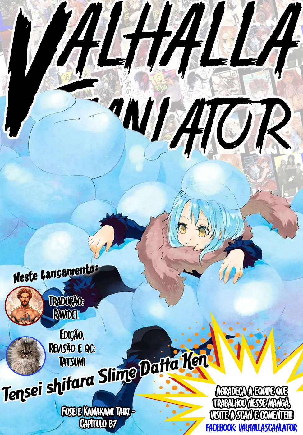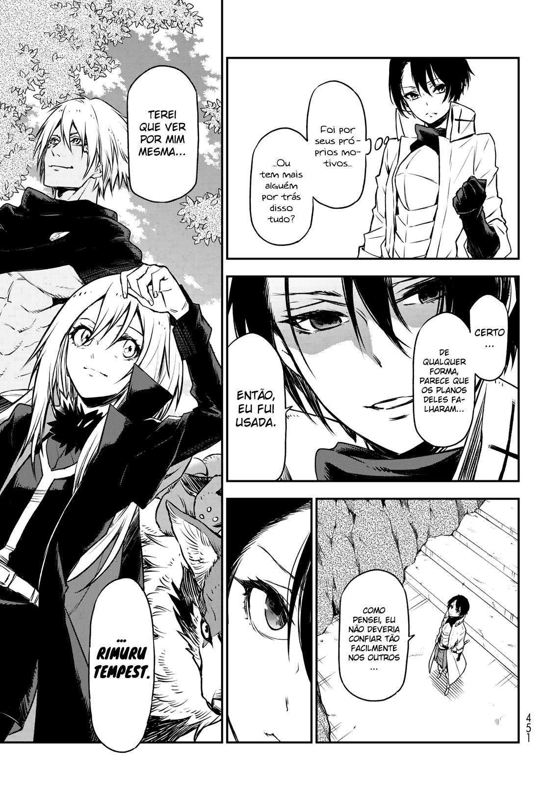 Capítulo 1 - Morte~ e ReencarnaçãoCapítulo 2 - Guardião da Vila GoblinCapítulo 3 - Slime vs Tribo dos Lobos de PresaCapítulo 4 - Destino: Reino dos AnõesCapítulo 5 - Artesão Anão!!Capítulo 6 - A Pessoa DestinadaCapítulo 7 - Julgamento do Rei HeróiCapítulo 8 - Fragrância FamiliarCapítulo 9 - O Demônio das ChamasCapítulo 10 - A Vontade HerdadaCapítulo 11 - O Começo da InquietaçãoCapítulo 12 - O Forte na Floresta JuraCapítulo 13 - Ataque dos OgrosCapítulo 14 - Afazeres de OgroCapítulo 15 - Grande Floresta e Diferentes MudançasCapítulo 16 - A Chegada de GabilCapítulo 17 - Gobuta vs GabilCapítulo 18 - Engrenagens do DestinoCapítulo 19 - Falsa VantagemCapítulo 20 - Início da GuerraCapítulo 21 - Os Efeitos Sobre a GuerraCapítulo 22 - Tempestade da MorteCapítulo 23 - Desastre OrcCapítulo 24 - O Admirável DemônioCapítulo 25 - Aquele que Devora TudoCapítulo 26 - A Grande Aliança da Floresta JuraCapítulo 27 - Um Lugar para RelaxarCapítulo 28 - Aqueles que Observam a Cidade dos DemôniosCapítulo 29 - Reunião do Rei dos DemôniosCapítulo 30 - A Lord DemônioCapítulo 31 - O Furação MilimCapítulo 32 - O Furação Milim (Conclusão)Capítulo 33 - O Plano dos Lordes DemônioCapítulo 34 - Aqueles que se Reúnem na Cidade dos MonstrosCapítulo 35 - O Plano do HeróiCapítulo 36 - Relatório do GerenteCapítulo 37 - CharybidsCapítulo 38 - Tirano da DestruiçãoCapítulo 39 - Como uma NaçãoCapítulo 40 - Negócios com YuurazaniaCapítulo 41 - O Convite do Rei Gazelle (Parte 1)Capítulo 42 - O Convite do Rei Gazelle (Parte 2)Capítulo 43 - Para o Reino HumanoCapítulo 44 - Reino Brumund (Parte 1)Capítulo 45 - Reino Brumund (Parte 2)Capítulo 46 - Yuuki KagurazakaCapítulo 47 - O Fardo dos HeróisCapítulo 48 - O Papel de um ProfessorCapítulo 49 - O Rico Comerciante Garde-MyourmilesCapítulo 50 - A Habilitação dos EspíritosCapítulo 51 - A Rainha dos EspíritosCapítulo 52 - Almas que podem ser salvasCapítulo 53Capítulo 54Capítulo 55Capítulo 56Capítulo 57Capítulo 58Capítulo 59Capítulo 60Capítulo 61Capítulo 62Capítulo 63Capítulo 64Capítulo 65Capítulo 65.5Capítulo 66Capítulo 67Capítulo 68Capítulo 69Capítulo 70Capítulo 71Capítulo 72Capítulo 73Capítulo 74Capítulo 75Capítulo 76 - Lordes Demônios e Dragões VerdadeirosCapítulo 77 - Véspera da batalhaCapítulo 78 - WalpurgisCapítulo 79 - BatalhaCapítulo 80 - O Retorno da Grande BestaCapítulo 81Capítulo 82Capítulo 84Capítulo 85 - Na Terra SagradaCapítulo 86Capítulo 87Capítulo 88Capítulo 89Capítulo 90 - O objetivo dos SantosCapítulo 91 - Nostalgia da Terra NatalCapítulo 92 - Segundo EncontroCapítulo 93 - Conflito entre "Bem" e "Mal"Capítulo 94 - O Sorriso do Demônio AntigoCapítulo 95Capítulo 96 - Deus e Lorde DemônioCapítulo 97Capítulo 98 - Relatório de ProgressoCapítulo 99 - Reconciliação e Acordos (1)Capítulo 100 - Reconciliação e Acordos (2)Capítulo 101 - Reconciliação e Acordos (2.5)Capítulo 102 - Convidando as outras nações Capítulo 103 - A Fada do LabirintoCapítulo 104 - Preparação para AberturaCapítulo 105 - O Começo do Romance da TenguCapítulo 106 - Audiências FormaisCapítulo 107 - O Herói da Velocidade da LuzCapítulo 108 - A Véspera do FestivalCapítulo 109 - Reuniões e EncontrosCapítulo 110 - Conquistas CulináriasCapítulo 111 - O Festival da FundaçãoCapítulo 112 - Um Problema SurgeCapítulo 113 - O Torneio de BatalhaCapítulo 114 - Encontro de MentesCapítulo 115 - As Finais e A ConversaCapítulo 116 - A Grande Abertura do LabirintoCapítulo 117 - Explorando o LabirintoCapítulo 118 - Após o FestivalCapítulo 119 - Uma Breve Negociação do LabirintoCapítulo 120 - A Ameaça SlimeCapítulo 121 - A Caminho do ConselhoCapítulo 122 - Em Direção à EngrassiaCapítulo 123 - O Conselho CaóticoCapítulo 124 - O Conselho Caótico 2Capítulo 125 - Por Trás das CortinasCapítulo 126 - A Armadilha da GanânciaCapítulo 127 - A Cidade Antiga de AmritaCapítulo 128 - Maribel, A GananciosaCapítulo 129 - O Fim da HumilhaçãoCapítulo 129 - O Fim da HumilhaçãoCapítulo 136