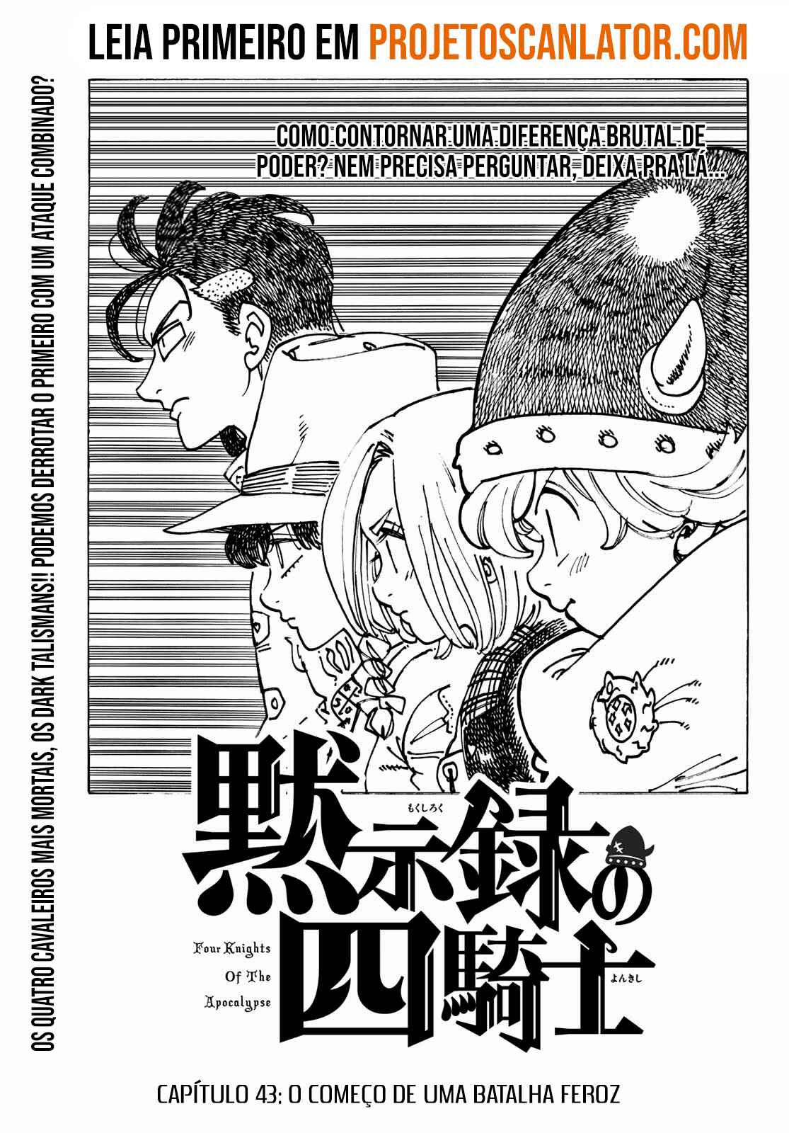 Capítulo 1 - O Menino começa sua Jornada.Capítulo 2 - Um encontro por acasoCapítulo 3 - Pistas do paiCapítulo 4 - Magia DesconhecidaCapítulo 5 - Quatro Cavaleiros do ApocalipseCapítulo 6 - O próximo destinoCapítulo 7 - O demônio do desfiladeiro do ecoCapítulo 8 - Percival, A cobaia.Capítulo 9 - O misturador de venenoCapítulo 10 - Pisando em seus coraçõesCapítulo 11 - A fúria de PercivalCapítulo 12 - É hora do showCapítulo 13 - Uma solução mais afiadaCapítulo 14 - A jovem dama solitáriaCapítulo 15 - Anghalhad e o seu sonhoCapítulo 16 - Sistana abaladaCapítulo 17 - Confrontando o malCapítulo 18 - Determinação para lutarCapítulo 19 - Um ato de maldadeCapítulo 20 - O nome da magiaCapítulo 21 - EsperançaCapítulo 22 - Jovens heróisCapítulo 23 - Arthur PendragonCapítulo 24 - Quem é o líder?Capítulo 25 - Um dia emocionanteCapítulo 26 - Tio e sobrinhoCapítulo 27 - Mestre e aprendizCapítulo 28 - Rugido de destruiçãoCapítulo 29Capítulo 30 - Tempestades violentasCapítulo 31 - Um cavaleiro sagrado de verdadeCapítulo 32 - Os picos do medoCapítulo 33 - O banquete do malCapítulo 34 - Verdadeira natureza expostaCapítulo 35 - Um esforço sinistroCapítulo 36 - A besta lendária, CernunnosCapítulo 37Capítulo 38Capítulo 39 - O pecado da cabraCapítulo 40 - Agressores nefastosCapítulo 41 - FissuraCapítulo 42 - Talismã sombrioCapítulo 43 - O começo de uma batalha ferozCapítulo 44 - Crianças perdidasCapítulo 45 - CavalheirismoCapítulo 46 - PercepçãoCapítulo 47 - O desespero chegaCapítulo 48 - Adeus, SinCapítulo 49 - LancelotCapítulo 50 - Que penaCapítulo 51 - O rei de LionesCapítulo 52 - Meliodas e PercivalCapítulo 53 - O triplo de problemasCapítulo 54 - ArmaçãoCapítulo 55 - TristanCapítulo 56 - Encontro com o cavaleiro da profeciaCapítulo 57 - Pânico em LionesCapítulo 58 - Terror à espreitaCapítulo 59 - Um garoto sendo controladoCapítulo 60 - Liones em chamasCapítulo 61 - Os quatro chegamCapítulo 62 - O começo de uma nova lendaCapítulo 63 - A megera domadaCapítulo 64 - Em busca de vingançaCapítulo 65 - Mais uma vez, um pesadeloCapítulo 66 - AvaliaçãoCapítulo 67 - Os quatro cavaleiros do apocalipse versus Os servos do caosCapítulo 68 - NefilimCapítulo 69 - Aqueles agindo por trás das cenasCapítulo 70 - A lâmina de um traidorCapítulo 71 - A transformação de uma amigaCapítulo 72 - Um congelado coração em chamasCapítulo 73 - O demônio meragalandCapítulo 74 - Uma resistência desesperadaCapítulo 75 - Cavaleiros sagrados reais vs. MeragalandCapítulo 76 - ChegadaCapítulo 77 - A autoridade de um reiCapítulo 78 - O orgulho de um reiCapítulo 79 - HyperionCapítulo 80 - Rei arthur vs LancelotCapítulo 81 - A batalha acabouCapítulo 82 - Conflito de cada umCapítulo 83Capítulo 84Capítulo 85Capítulo 86Capítulo 87Capítulo 88Capítulo 89Capítulo 90Capítulo 91Capítulo 92Capítulo 93Capítulo 94Capítulo 95Capítulo 96Capítulo 97Capítulo 98Capítulo 99Capítulo 100Capítulo 101Capítulo 102Capítulo 103Capítulo 104 - Invasão do reino demoníacoCapítulo 105 - Bem-vindos ao reino demoníacoCapítulo 106 - O SalvadorCapítulo 107 - A Solidão da megeraCapítulo 107.5 - O sofrimento de ChionCapítulo 108 - O devastador behemothCapítulo 109 - A semana do julgamentoCapítulo 110 - Em busca de forçaCapítulo 111 - Melhor que o meu eu de ontem, melhor que o meu eu de hojeCapítulo 112 - Coração oscilante, superando o meu eu de hojeCapítulo 113 - Zarura N'duCapítulo 114 - Para o início da missãoCapítulo 115 - A Batalha de AlbionCapítulo 116 - O menino do destinoCapítulo 117 - Vaz ZigraCapítulo 118 - O início da batalhaCapítulo 119 - Luta! Luta! Luta!Capítulo 120 - Banquete dos poderososCapítulo 121 - Se você não fizer isso, quem o fará?Capítulo 122 - FalhaCapítulo 123 - DeterminaçãoCapítulo 124 - O domínio dos mestresCapítulo 125 - O cavaleiro da guerraCapítulo 126 - PreceCapítulo 127 - O dia em que você nasceuCapítulo 128 - O dia em que você desapareceuCapítulo 129 - InvasãoCapítulo 130 - A Raposa da GanânciaCapítulo 131 - Em Busca de EsperançaCapítulo 132 - Aqueles que resistemCapítulo 150 - Esperança Duma Nova GeraçãoCapítulo 150 - Esperança de Uma Nova GeraçãoCapítulo 151 - Nem Tudo é TragédiaCapítulo 151 - Nem Tudo é Uma TragédiaCapítulo 152 - O RetornoCapítulo 153 - Rumo à Uma Nova AventuraCapítulo 154 - A DespedidaCapítulo 155 - ReuniãoCapítulo 156 - Em Busca de AmigosCapítulo 157 - Vidas EntrelaçadasCapítulo 158 - Não Consigo Largar Esse JeitoCapítulo 158.5 - Uma Tarde Para Os Cavaleiros SagradosCapítulo 159 - Em Seus BraçosCapítulo 160 - Para AnnwfynCapítulo 161 - Uma Estranha ReuniãoCapítulo 162 - Aqueles que anseiamCapítulo 163 - Dança no Banquete SelvagemCapítulo 164 - Quem permanece?Capítulo 165 - O Grupo FinalCapítulo 166 - Tensão no ArCapítulo 167 - Percival vs. GarethCapítulo 168 - Espadachins GêmeosCapítulo 169 - Donny vs. Mystery PackageCapítulo 170 - Anne vs. DiodoraCapítulo 171 - RaivaCapítulo 172 - Nasiens vs. RothesCapítulo 173 - ConversaCapítulo 174 - Gawain vs. TurretCapítulo 175 - Como matar um magoCapítulo 176 - Howzer vs BalinCapítulo 176.5 - Conversa entre meninasCapítulo 177 - Batalha Entre HomensCapítulo 178 - Tantris vs. ChionCapítulo 179 - Tristan e ChionCapítulo 180 - Pelio vs IsoldeCapítulo 181 - Noite de DesesperoCapítulo 182 - Uma Morte CruelCapítulo 183 - Sentimentos Não CorrespondidosCapítulo 184 - Percival vs. Mystery PackageCapítulo 185 - Assunto SérioCapítulo 185.5 - Hora de Necromancia (Extra)Capítulo 186 - Nasiens vs. DiodoraCapítulo 187 - O Garoto Consumido Pela EscuridãoCapítulo 188 - Palavras do Pai, Memórias da MãeCapítulo 189 - Gawain vs. BalinCapítulo 190 - Choque FrontalCapítulo 191 - Resistência de Vida ou MorteCapítulo 192 - A Quebradora de RegrasCapítulo 193 - Para quem?Capítulo 194 - Tantris vs. Isolde Capítulo 194.5 - Extra do Volume 22Capítu