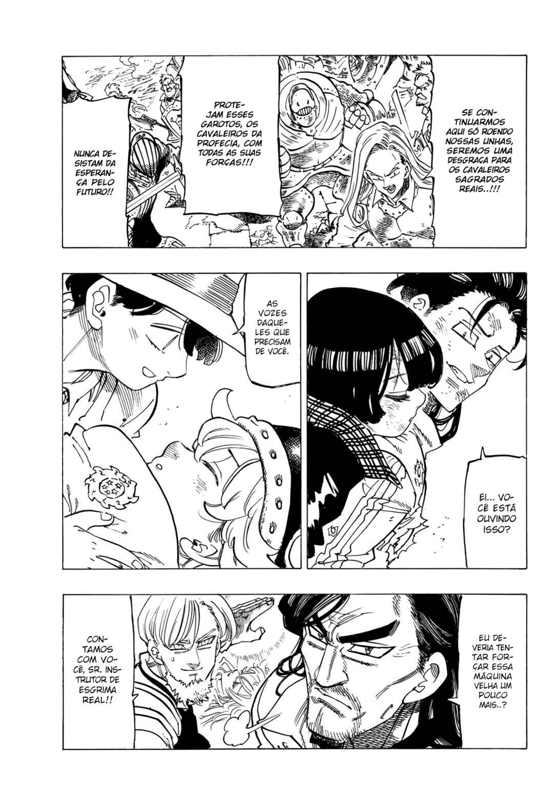 Capítulo 1 - O Menino começa sua Jornada.Capítulo 2 - Um encontro por acasoCapítulo 3 - Pistas do paiCapítulo 4 - Magia DesconhecidaCapítulo 5 - Quatro Cavaleiros do ApocalipseCapítulo 6 - O próximo destinoCapítulo 7 - O demônio do desfiladeiro do ecoCapítulo 8 - Percival, A cobaia.Capítulo 9 - O misturador de venenoCapítulo 10 - Pisando em seus coraçõesCapítulo 11 - A fúria de PercivalCapítulo 12 - É hora do showCapítulo 13 - Uma solução mais afiadaCapítulo 14 - A jovem dama solitáriaCapítulo 15 - Anghalhad e o seu sonhoCapítulo 16 - Sistana abaladaCapítulo 17 - Confrontando o malCapítulo 18 - Determinação para lutarCapítulo 19 - Um ato de maldadeCapítulo 20 - O nome da magiaCapítulo 21 - EsperançaCapítulo 22 - Jovens heróisCapítulo 23 - Arthur PendragonCapítulo 24 - Quem é o líder?Capítulo 25 - Um dia emocionanteCapítulo 26 - Tio e sobrinhoCapítulo 27 - Mestre e aprendizCapítulo 28 - Rugido de destruiçãoCapítulo 29Capítulo 30 - Tempestades violentasCapítulo 31 - Um cavaleiro sagrado de verdadeCapítulo 32 - Os picos do medoCapítulo 33 - O banquete do malCapítulo 34 - Verdadeira natureza expostaCapítulo 35 - Um esforço sinistroCapítulo 36 - A besta lendária, CernunnosCapítulo 37Capítulo 38Capítulo 39 - O pecado da cabraCapítulo 40 - Agressores nefastosCapítulo 41 - FissuraCapítulo 42 - Talismã sombrioCapítulo 43 - O começo de uma batalha ferozCapítulo 44 - Crianças perdidasCapítulo 45 - CavalheirismoCapítulo 46 - PercepçãoCapítulo 47 - O desespero chegaCapítulo 48 - Adeus, SinCapítulo 49 - LancelotCapítulo 50 - Que penaCapítulo 51 - O rei de LionesCapítulo 52 - Meliodas e PercivalCapítulo 53 - O triplo de problemasCapítulo 54 - ArmaçãoCapítulo 55 - TristanCapítulo 56 - Encontro com o cavaleiro da profeciaCapítulo 57 - Pânico em LionesCapítulo 58 - Terror à espreitaCapítulo 59 - Um garoto sendo controladoCapítulo 60 - Liones em chamasCapítulo 61 - Os quatro chegamCapítulo 62 - O começo de uma nova lendaCapítulo 63 - A megera domadaCapítulo 64 - Em busca de vingançaCapítulo 65 - Mais uma vez, um pesadeloCapítulo 66 - AvaliaçãoCapítulo 67 - Os quatro cavaleiros do apocalipse versus Os servos do caosCapítulo 68 - NefilimCapítulo 69 - Aqueles agindo por trás das cenasCapítulo 70 - A lâmina de um traidorCapítulo 71 - A transformação de uma amigaCapítulo 72 - Um congelado coração em chamasCapítulo 73 - O demônio meragalandCapítulo 74 - Uma resistência desesperadaCapítulo 75 - Cavaleiros sagrados reais vs. MeragalandCapítulo 76 - ChegadaCapítulo 77 - A autoridade de um reiCapítulo 78 - O orgulho de um reiCapítulo 79 - HyperionCapítulo 80 - Rei arthur vs LancelotCapítulo 81 - A batalha acabouCapítulo 82 - Conflito de cada umCapítulo 83Capítulo 84Capítulo 85Capítulo 86Capítulo 87Capítulo 88Capítulo 89Capítulo 90Capítulo 91Capítulo 92Capítulo 93Capítulo 94Capítulo 95Capítulo 96Capítulo 97Capítulo 98Capítulo 99Capítulo 100Capítulo 101Capítulo 102Capítulo 103Capítulo 104 - Invasão do reino demoníacoCapítulo 105 - Bem-vindos ao reino demoníacoCapítulo 106 - O SalvadorCapítulo 107 - A Solidão da megeraCapítulo 107.5 - O sofrimento de ChionCapítulo 108 - O devastador behemothCapítulo 109 - A semana do julgamentoCapítulo 110 - Em busca de forçaCapítulo 111 - Melhor que o meu eu de ontem, melhor que o meu eu de hojeCapítulo 112 - Coração oscilante, superando o meu eu de hojeCapítulo 113 - Zarura N'duCapítulo 114 - Para o início da missãoCapítulo 115 - A Batalha de AlbionCapítulo 116 - O menino do destinoCapítulo 117 - Vaz ZigraCapítulo 118 - O início da batalhaCapítulo 119 - Luta! Luta! Luta!Capítulo 120 - Banquete dos poderososCapítulo 121 - Se você não fizer isso, quem o fará?Capítulo 122 - FalhaCapítulo 123 - DeterminaçãoCapítulo 124 - O domínio dos mestresCapítulo 125 - O cavaleiro da guerraCapítulo 126 - PreceCapítulo 127 - O dia em que você nasceuCapítulo 128 - O dia em que você desapareceuCapítulo 129 - InvasãoCapítulo 130 - A Raposa da GanânciaCapítulo 131 - Em Busca de EsperançaCapítulo 132 - Aqueles que resistemCapítulo 150 - Esperança Duma Nova GeraçãoCapítulo 150 - Esperança de Uma Nova GeraçãoCapítulo 151 - Nem Tudo é TragédiaCapítulo 151 - Nem Tudo é Uma TragédiaCapítulo 152 - O RetornoCapítulo 153 - Rumo à Uma Nova AventuraCapítulo 154 - A DespedidaCapítulo 155 - ReuniãoCapítulo 156 - Em Busca de AmigosCapítulo 157 - Vidas EntrelaçadasCapítulo 158 - Não Consigo Largar Esse JeitoCapítulo 158.5 - Uma Tarde Para Os Cavaleiros SagradosCapítulo 159 - Em Seus BraçosCapítulo 160 - Para AnnwfynCapítulo 161 - Uma Estranha ReuniãoCapítulo 162 - Aqueles que anseiamCapítulo 163 - Dança no Banquete SelvagemCapítulo 164 - Quem permanece?Capítulo 165 - O Grupo FinalCapítulo 166 - Tensão no ArCapítulo 167 - Percival vs. GarethCapítulo 168 - Espadachins GêmeosCapítulo 169 - Donny vs. Mystery PackageCapítulo 170 - Anne vs. DiodoraCapítulo 171 - RaivaCapítulo 172 - Nasiens vs. RothesCapítulo 173 - ConversaCapítulo 174 - Gawain vs. TurretCapítulo 175 - Como matar um magoCapítulo 176 - Howzer vs BalinCapítulo 176.5 - Conversa entre meninasCapítulo 177 - Batalha Entre HomensCapítulo 178 - Tantris vs. ChionCapítulo 179 - Tristan e ChionCapítulo 180 - Pelio vs IsoldeCapítulo 181 - Noite de DesesperoCapítulo 182 - Uma Morte CruelCapítulo 183 - Sentimentos Não CorrespondidosCapítulo 184 - Percival vs. Mystery PackageCapítulo 185 - Assunto SérioCapítulo 185.5 - Hora de Necromancia (Extra)Capítulo 186 - Nasiens vs. DiodoraCapítulo 187 - O Garoto Consumido Pela EscuridãoCapítulo 188 - Palavras do Pai, Memórias da MãeCapítulo 189 - Gawain vs. BalinCapítulo 190 - Choque FrontalCapítulo 191 - Resistência de Vida ou MorteCapítulo 192 - A Quebradora de RegrasCapítulo 193 - Para quem?Capítulo 194 - Tantris vs. Isolde Capítulo 194.5 - Extra do Volume 22Capítu