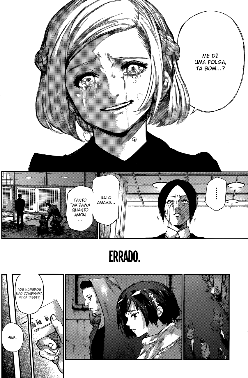 Capítulo 1 - TragédiaCapítulo 1 - TragédiaCapítulo 2 - MetamorfoseCapítulo 2 - EstranhezaCapítulo 3 - PesadeloCapítulo 3 - Pior Capítulo 4 - CaféCapítulo 4 - CaféCapítulo 5 - Território de AlimentaçãoCapítulo 6 - RetornoCapítulo 6 - Voltando para CasaCapítulo 7 - DecepçãoCapítulo 7 - TraiçãoCapítulo 8 - KaguneCapítulo 8 - KaguneCapítulo 9 - IncubaçãoCapítulo 9 - ChocarCapítulo 10 - AntiguidadeCapítulo 10 - AntiguidadesCapítulo 11 - MáscaraCapítulo 11 - MáscaraCapítulo 12 - MissãoCapítulo 12 - MissãoCapítulo 13 - PombaCapítulo 13 - Pombo BrancoCapítulo 14 - Banho de ChuvaCapítulo 14 - Chuva SúbitaCapítulo 15 - Mãe e FilhaCapítulo 15 - Mãe e FilhaCapítulo 16 - PrisãoCapítulo 16 - ConfinamentoCapítulo 17 - Máscara de CoelhoCapítulo 17 - Máscara de CoelhoCapítulo 18 - SelvagemCapítulo 18 - SelvagemCapítulo 19 - Subsolo Capítulo 19 - SubterrâneoCapítulo 20 - Portão BrancoCapítulo 20 - Portão BrancoCapítulo 21 - TristezaCapítulo 21 - CondolênciasCapítulo 22 - JornalCapítulo 22 - JornalCapítulo 23 - DesaparecidoCapítulo 23 - SumiçoCapítulo 24 - Espada OcultaCapítulo 24 - Lâmina OcultaCapítulo 25 - EpifaniaCapítulo 25 - IluminaçãoCapítulo 26 - AdversárioCapítulo 26 - OponenteCapítulo 27 - Três PessoasCapítulo 27 - Três PessoasCapítulo 28 - CírculoCapítulo 28 - CircularCapítulo 29 - MadoCapítulo 29 - MadoCapítulo 30 - AmarguraCapítulo 30 - Sabor AmargoCapítulo 31 - YorikoCapítulo 31 - YorikoCapítulo 32 - GourmetCapítulo 32 - GourmetCapítulo 33 - AdulaçãoCapítulo 33 - BajulaçãoCapítulo 34 - DeslizeCapítulo 34 - DeslizeCapítulo 35 - Batalha SolitáriaCapítulo 35 - Batalha SolitáriaCapítulo 36 - PreparaçãoCapítulo 36 - PreparativoCapítulo 37 - BanqueteCapítulo 38 - DesmontagemCapítulo 38 - EsquartejamentoCapítulo 39 - FestimCapítulo 39 - FestaCapítulo 40 - ConviteCapítulo 40 - ConviteCapítulo 41 - LuarCapítulo 41 - LuarCapítulo 42 - CuretagemCapítulo 42 - CuretagemCapítulo 43 - CicatrizCapítulo 43 - CicatrizCapítulo 44 - EncarnaçãoCapítulo 44 - EncarnaçãoCapítulo 45 - Asa NegraCapítulo 45 - Asas NegrasCapítulo 46 - TochaCapítulo 46 - LuzCapítulo 46.5 - Side Story: RizeCapítulo 47 - PseudônimoCapítulo 47 - PseudônimoCapítulo 48 - Osso AuricularCapítulo 48 - Osso da OrelhaCapítulo 49 - Pássaro EnjauladoCapítulo 49 - Pássaro EngaioladoCapítulo 50 - BanjouCapítulo 51 - DecretoCapítulo 51 - DecretoCapítulo 52 - PilhagemCapítulo 52 - SaquearCapítulo 53 - LiçãoCapítulo 53 - LiçãoCapítulo 54 - AogiriCapítulo 54 - AogiriCapítulo 55 - PlanoCapítulo 56 - Se ContorcendoCapítulo 56 - SquirminoCapítulo 57 - FugaCapítulo 57 - FugaCapítulo 58 - Sorriso DistorcidoCapítulo 58 - Sorriso DeformadoCapítulo 59 - FechadoCapítulo 59 - FechadoCapítulo 60 - Em Alto AstralCapítulo 61 - Luz TênueCapítulo 62 - KanekiCapítulo 63 - GhoulCapítulo 64 - Um IncômodoCapítulo 65 - KakujaCapítulo 66 - ExcisãoCapítulo 67 - CulpaCapítulo 68 - DestinoCapítulo 69 - Aquele DiaCapítulo 70 - Irmã e IrmãoCapítulo 71 - Duas PessoasCapítulo 72 - MetadeCapítulo 73 - FaíscaCapítulo 74 - PersistênciaCapítulo 75 - SegredoCapítulo 76 - Sinais de FumaçaCapítulo 77 - O Sétimo PrédioCapítulo 78 - DesvioCapítulo 79 - Uma Nova LuzCapítulo 80 - PromovidoCapítulo 81 - SubordinadoCapítulo 82 - EspecialistasCapítulo 83 - PadreCapítulo 84 - EmergindoCapítulo 85 - Um OlhoCapítulo 86 - VisitanteCapítulo 87 - FofocaCapítulo 88 - InseguroCapítulo 89 - TruqueCapítulo 90 - PerseguiçãoCapítulo 91 - FortalezaCapítulo 92 - LadyCapítulo 93 - IscaCapítulo 94 - O CoraçãoCapítulo 95 - Moradia TemporáriaCapítulo 96 - InfiltraçãoCapítulo 97 - Lua MinguanteCapítulo 98 - AbismoCapítulo 99 - O DesconhecidoCapítulo 100 - CentopeiaCapítulo 101 - ComplicaçãoCapítulo 102 - Preto e BrancoCapítulo 103 - Corte de EspinhoCapítulo 104 - GásCapítulo 105 - Eu e EuCapítulo 106 - AnistiaCapítulo 107 - FendaCapítulo 108 - EntedianteCapítulo 109 - ForçaCapítulo 110 - RetornandoCapítulo 111 - VestígiosCapítulo 112 - Luzes ApagadasCapítulo 113 - Abrindo AsasCapítulo 114 - EntrelaçadosCapítulo 115 - Quebrando e DesmoronandoCapítulo 116 - Segundo EncontroCapítulo 117 - Campo de Arroz SecoCapítulo 118 - DestrancarCapítulo 119 - Velhas MemóriasCapítulo 120 - PenetraçãoCapítulo 121 - AlvoCapítulo 122 - KisuzuCapítulo 123 - RetaguardaCapítulo 124 - Formas de FalarCapítulo 125 - Paraíso AniquiladoCapítulo 126 - Pecado OriginalCapítulo 127 - Fronteira EstritaCapítulo 128 - Rua dos DesejosCapítulo 129 - TeatroCapítulo 130 - Poder VencedorCapítulo 131 - Perguntas ReformadorasCapítulo 132 - Festival AbertoCapítulo 133 - Massa EsmagadoraCapítulo 134 - Tragédia RecaídaCapítulo 135 - Chuva FinalCapítulo 136 - Prisão OcultaCapítulo 137 - Flor TransbordanteCapítulo 138 - Florescer de CorposCapítulo 139 - Graciosa DesordemCapítulo 140 - Voz CortadaCapítulo 141 - Criança MarcadaCapítulo 142 - Banquete de DramaCapítulo 143 - Punição