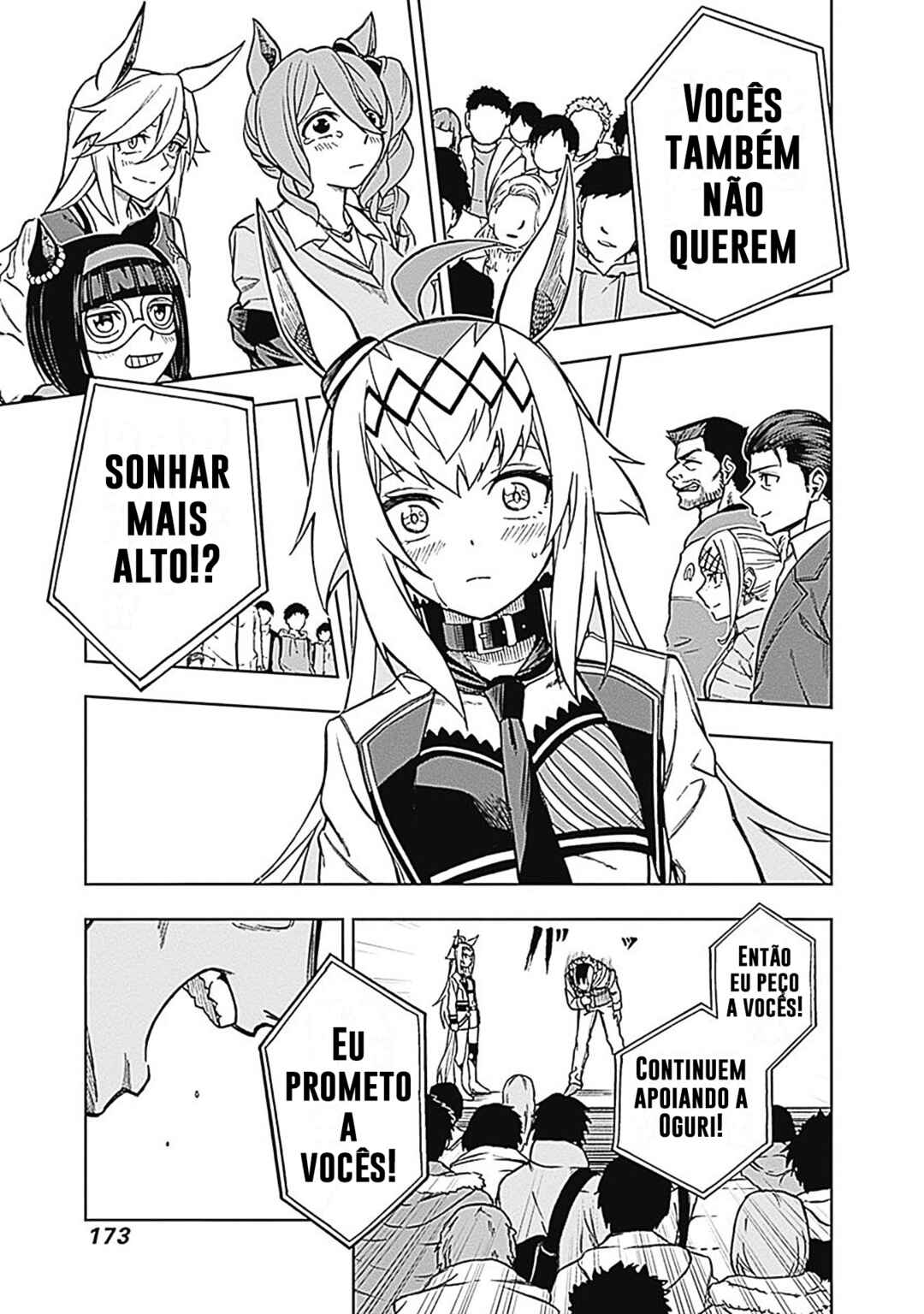 Capítulo 1 - V2 Bem aquiCapítulo 2 - Me arranje uma corridaCapítulo 3 - "Acho que posso confiar nele"Capítulo 4 - Eu vou ganhar da próxima vezCapítulo 5 - Um nível completamente diferenteCapítulo 6 - Vista do topoCapítulo 7 - Junior CrownCapítulo 7.5 - Volume 1 ExtrasCapítulo 8 - Além das expectativasCapítulo 9 - Duas vezesCapítulo 10 - O mais alto padrão na regiãoCapítulo 11 - LicençaCapítulo 12 - A melhor escolhaCapítulo 13 - "Então ganhe a corrida"Capítulo 14 - "O que você está fazendo?"Capítulo 15 - MonstroCapítulo 16 - "Obrigada Kasamatsu"Capítulo 16.5 - Volume 2 ExtrasCapítulo 17 - Academia TracenCapítulo 18 - Registro da classe clássicaCapítulo 19 - Primeira corridaCapítulo 20 - Tremendo de entusiasmoCapítulo 21 - IncomparávelCapítulo 22 - Mainichi HaiCapítulo 23 - "Uma Uma Musume qualquer iria..."Capítulo 24 - "Não há ideais sem sonhos"Capítulo 25 - DignidadeCapítulo 26 - Nippon DerbyCapítulo 26.5 - Volume 3 ExtrasCapítulo 27 - O cume mais altoCapítulo 28 - "Farei meu próprio caminho"Capítulo 29 - A mais forteCapítulo 30 - A melhor Uma Musume do JapãoCapítulo 31 - Férias de verãoCapítulo 32 - Mainichi OkanCapítulo 33 - "Onde ninguém pode te encostar"Capítulo 34 - A Estrela de KasamatsuCapítulo 35 - Uniforme de CorridaCapítulo 36 - "Hoje ela está diferente"Capítulo 36.5 - Volume 4 ExtrasCapítulo 37 - Tennou-Sho (Outono)Capítulo 38 - "Avançar com tudo!"Capítulo 39 - "Tudo para hoje"Capítulo 40 - "Pisadas de um Monstro"Capítulo 41 - Relâmpago BrancoCapítulo 42 - A ZonaCapítulo 43 - A melhor do JapãoCapítulo 44 - "Aquela que eu quero vencer"Capítulo 45 - MilagreCapítulo 46 - "Nossa história"Capítulo 47 - "Eu vou ficar mais forte"Capítulo 47.5 - Volume 5 ExtrasCapítulo 48 - Nível mundialCapítulo 49 - Minha inimigaCapítulo 50 - "Marcado na história"Capítulo 51 - Japan CupCapítulo 52 - Disputa por posiçõesCapítulo 53 - "GOGOGOGO!!"Capítulo 54 - PresençaCapítulo 55 - Wild JokerCapítulo 56 - Se você puderCapítulo 57 - Dangerous ZoneCapítulo 57.5 - Volume 6 ExtrasCapítulo 58 - "Para provar a mim mesma"Capítulo 59 - Até que bem parecidasCapítulo 60 - Não acabe sendo apenas uma derrotaCapítulo 61 - Domínio desconhecidoCapítulo 62 - Estudo de campoCapítulo 63 - Ainda não vou desistirCapítulo 64 - Conheço melhor do que ninguémCapítulo 65 - Neste "Domínio"Capítulo 66 - A RespostaCapítulo 67 - "Take it easy"Capítulo 67.5 - Volume 7 ExtrasCapítulo 68 - Arima KinenCapítulo 69 - Seja você mesmaCapítulo 70 - ChaticeCapítulo 71 - Contagem RegressivaCapítulo 72 - Chute de BalaCapítulo 73 - Fantasma CinzaCapítulo 74 - Venha correr comigoCapítulo 75 - Uma nova eraCapítulo 76 - Bem vinda de voltaCapítulo 76.5 - Volume 8 ExtrasCapítulo 77 - A Arma Suprema de OoiCapítulo 78 - Tokyo DaishotenCapítulo 79 - Nova eraCapítulo 80 - Grande preçoCapítulo 81 - HavaíCapítulo 82 - RecuperadaCapítulo 83 - "Você tirou as palavras da minha boca"Capítulo 84 - Família MejiroCapítulo 85 - Sendo perseguidaCapítulo 85.5 - Volume 9 ExtrasCapítulo 86 - A corrida nunca vai acabarCapítulo 87 - Hábitos